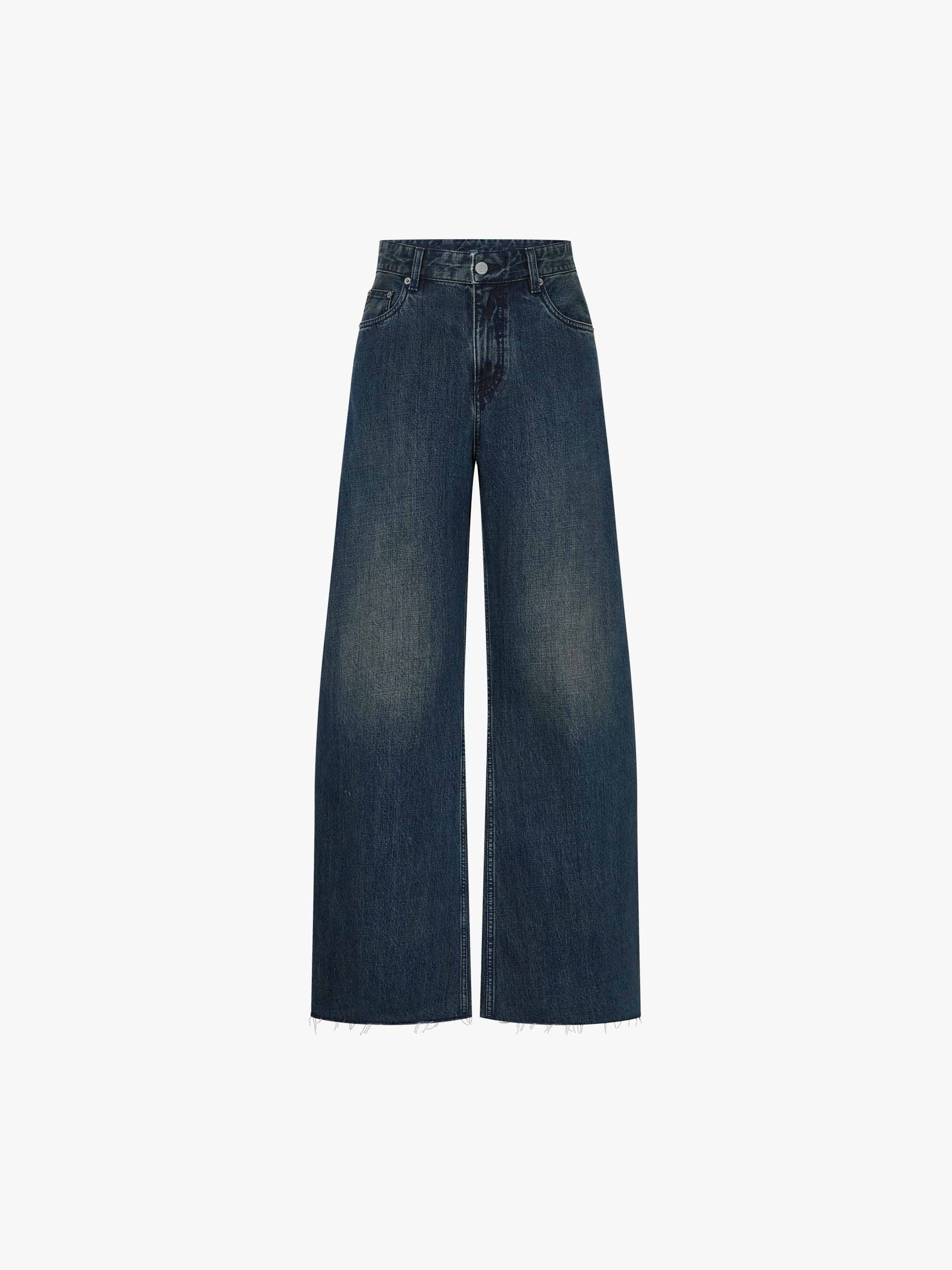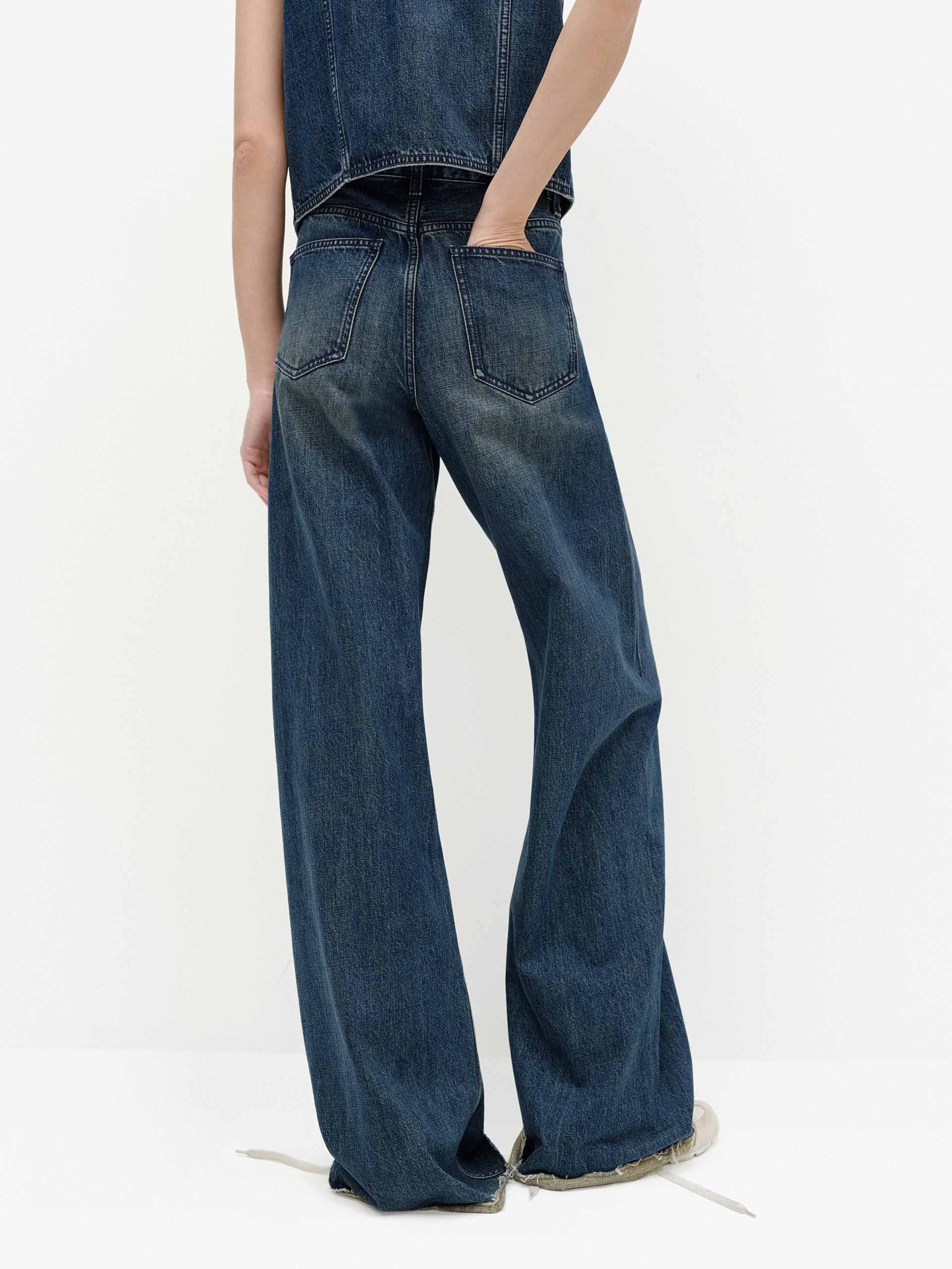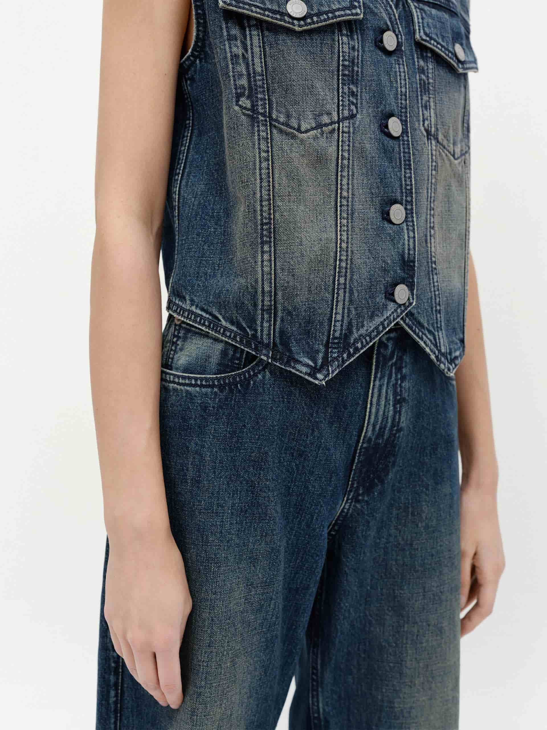 These jeans are made from 100% cotton, ensuring maximum comfort and durability. Featuring vintage wash details with a straight leg and full-length cut, they include raw hem details for a modern edge and classic five-pocket styling for functionality and a traditional denim aesthetic. Wear it with a coordinating waistcoat.
