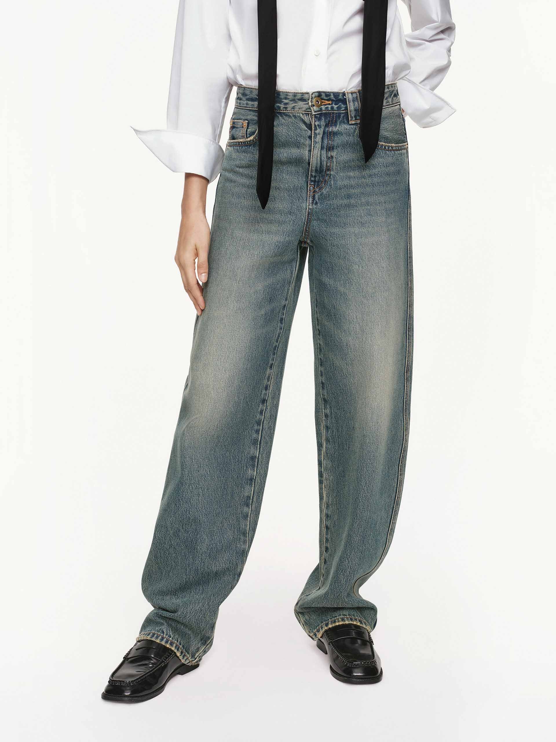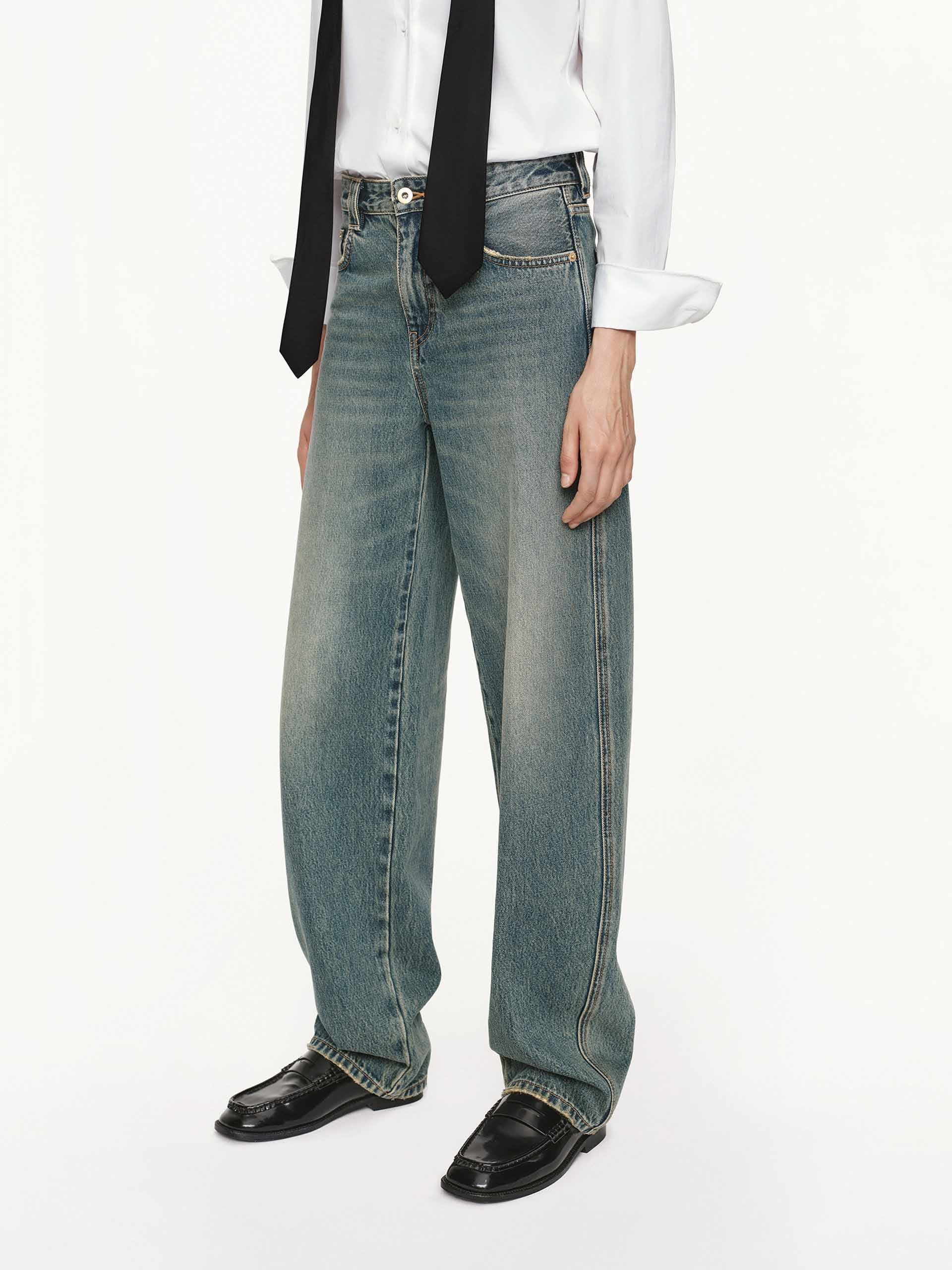 Make a bold yet balanced statement with these jeans, designed for a fashion-forward take on classic denim. The voluminous, tapered silhouette blends '90s nostalgia with contemporary edge, crafted from breathable cotton for all-day ease. The five-pocket design and zip-button closure keep functionality sharp.