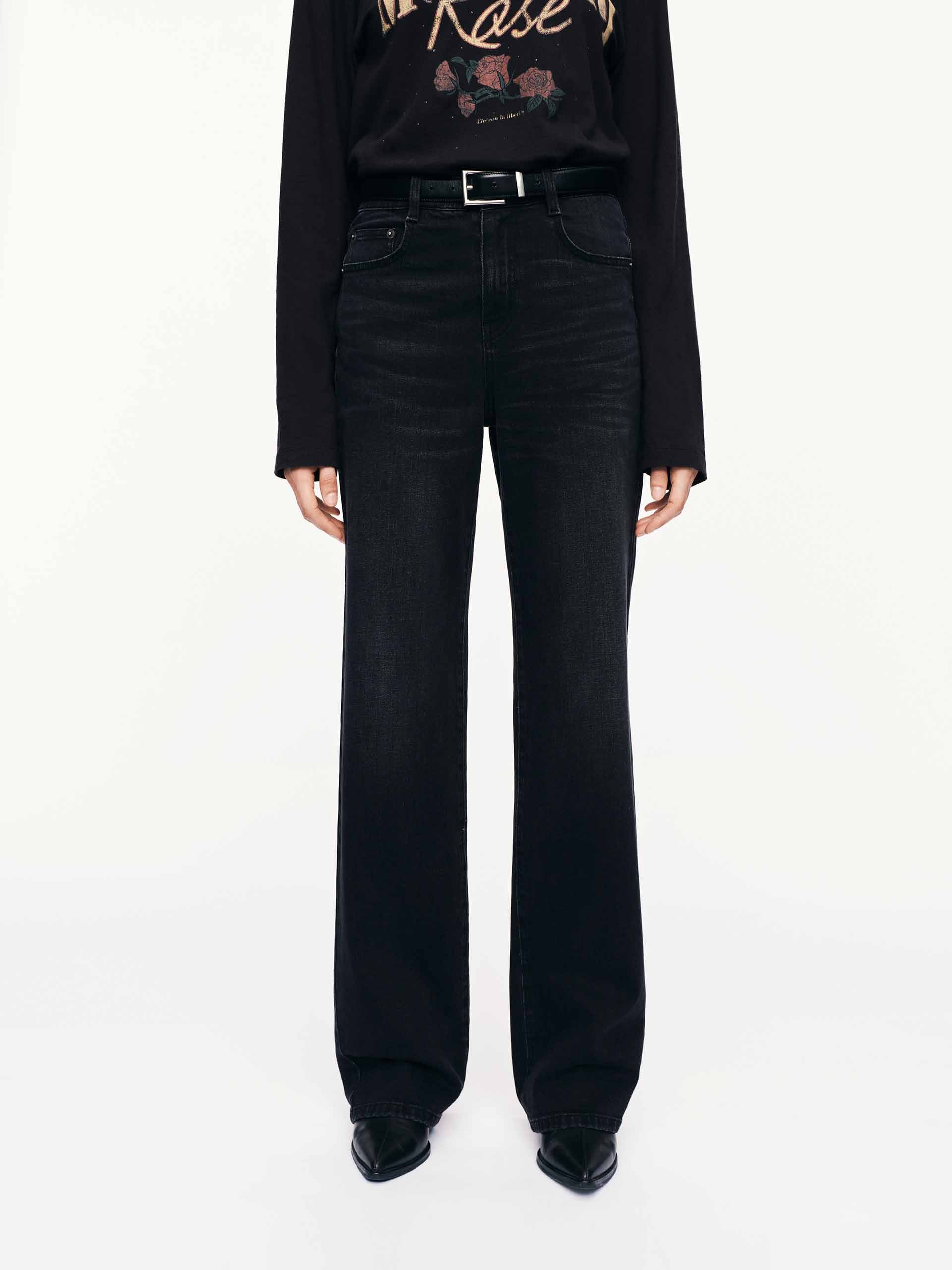 Master the art of effortless cool in these jeans. The regular fit offers a slightly tailored silhouette through the seat and thighs for a flattering shape, while the full-length legs create clean lines. The subtle whisker effect adds just enough vintage-inspired texture to break up the solid black, giving it a lived-in appeal straight from the first wear.