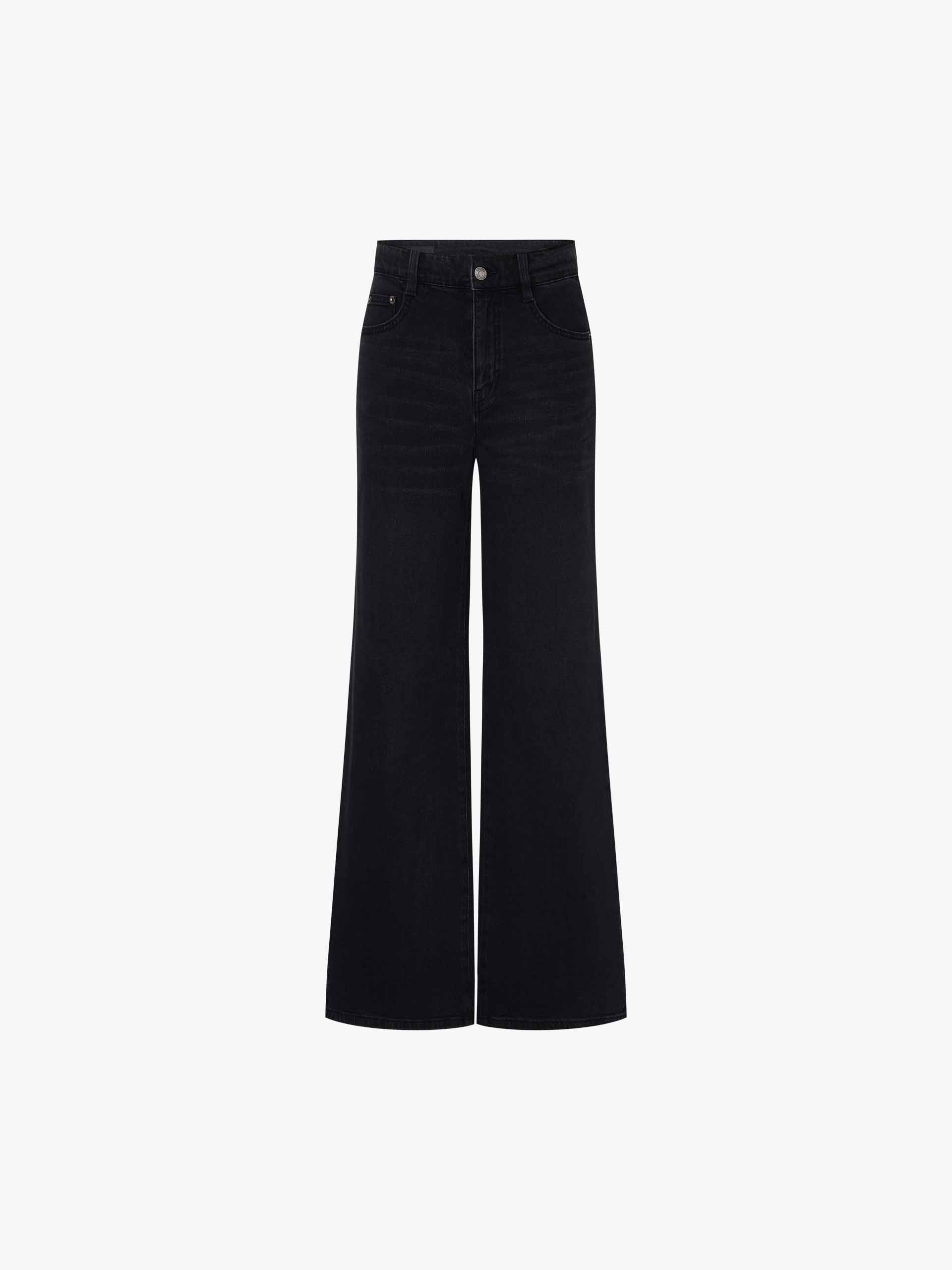 - Zip-button closure, classic five-pocket detail