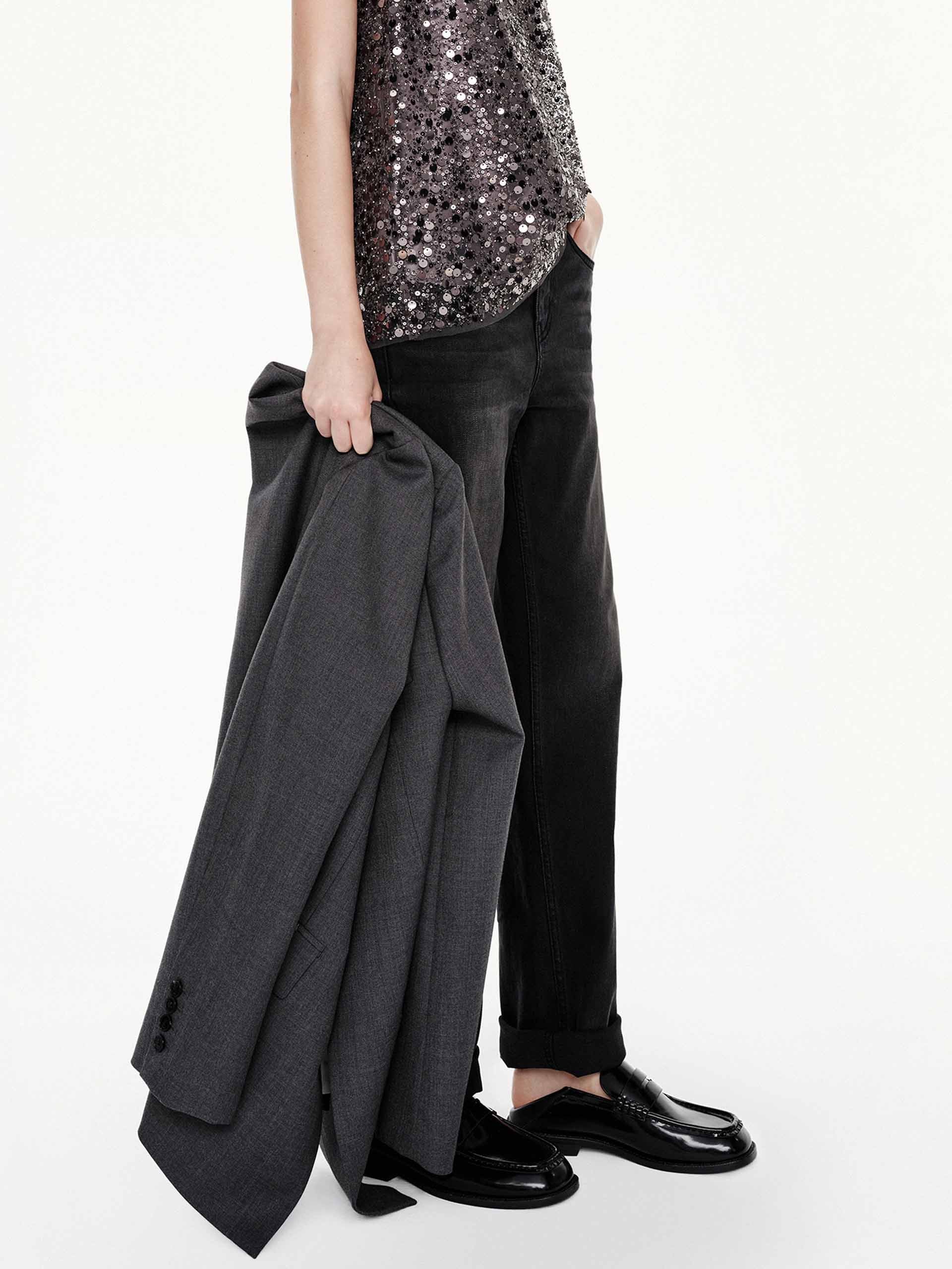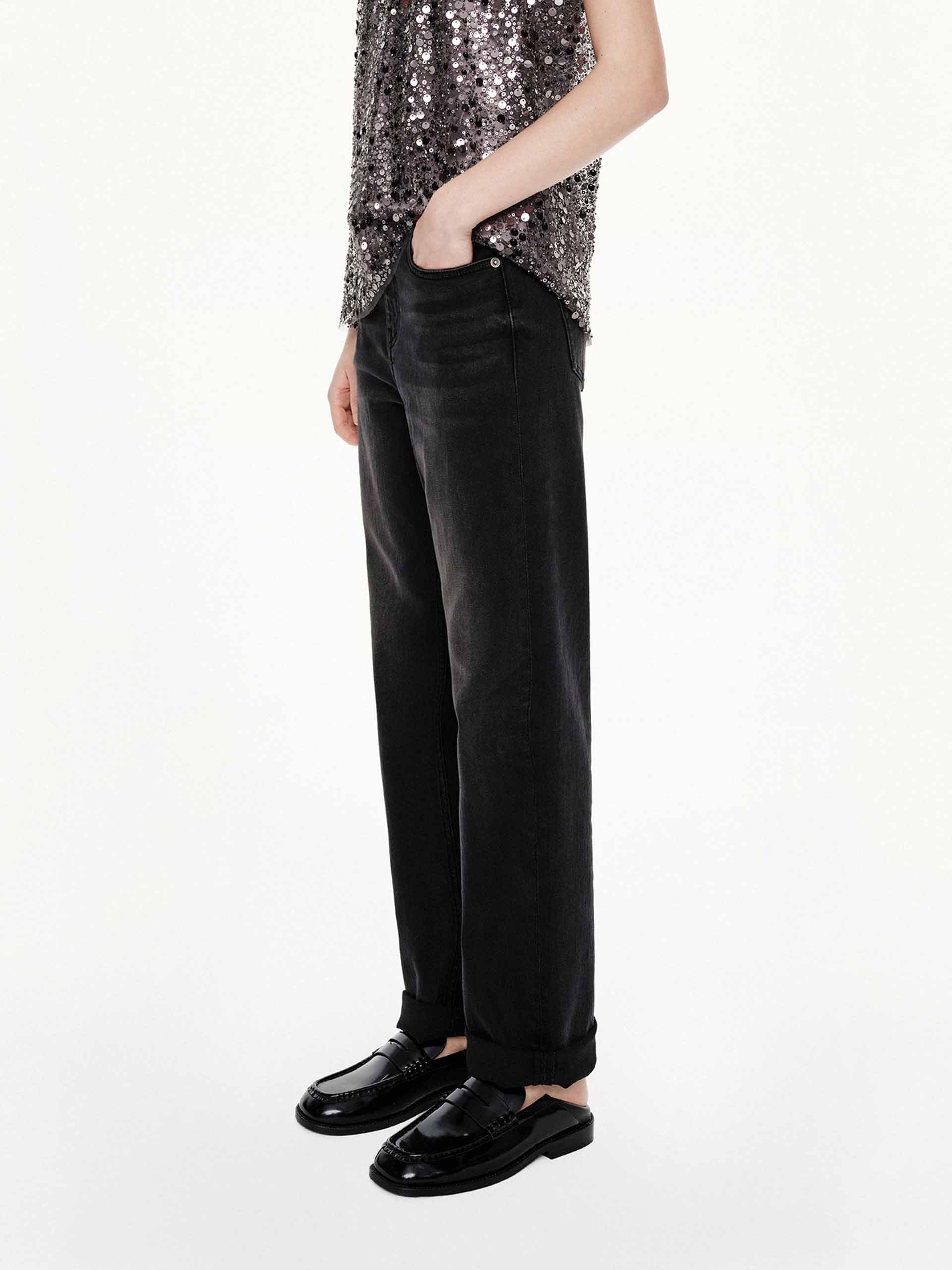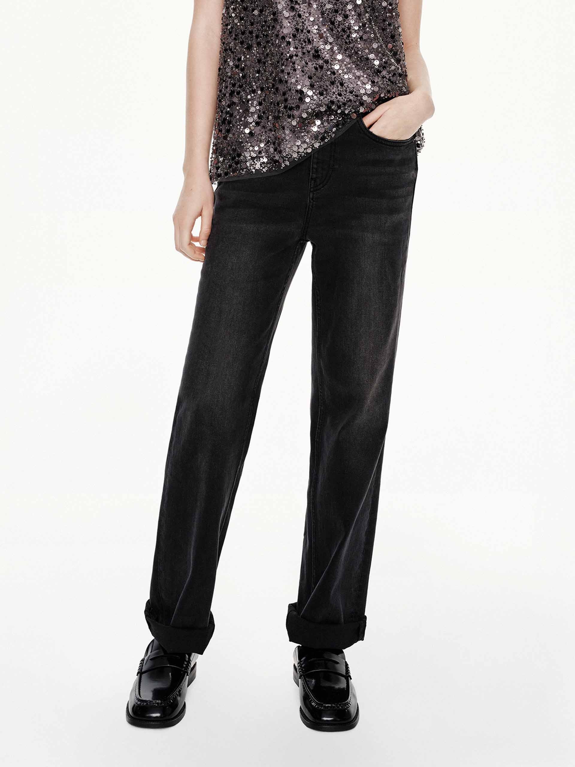 - Regular fit, straight cut, ankle length