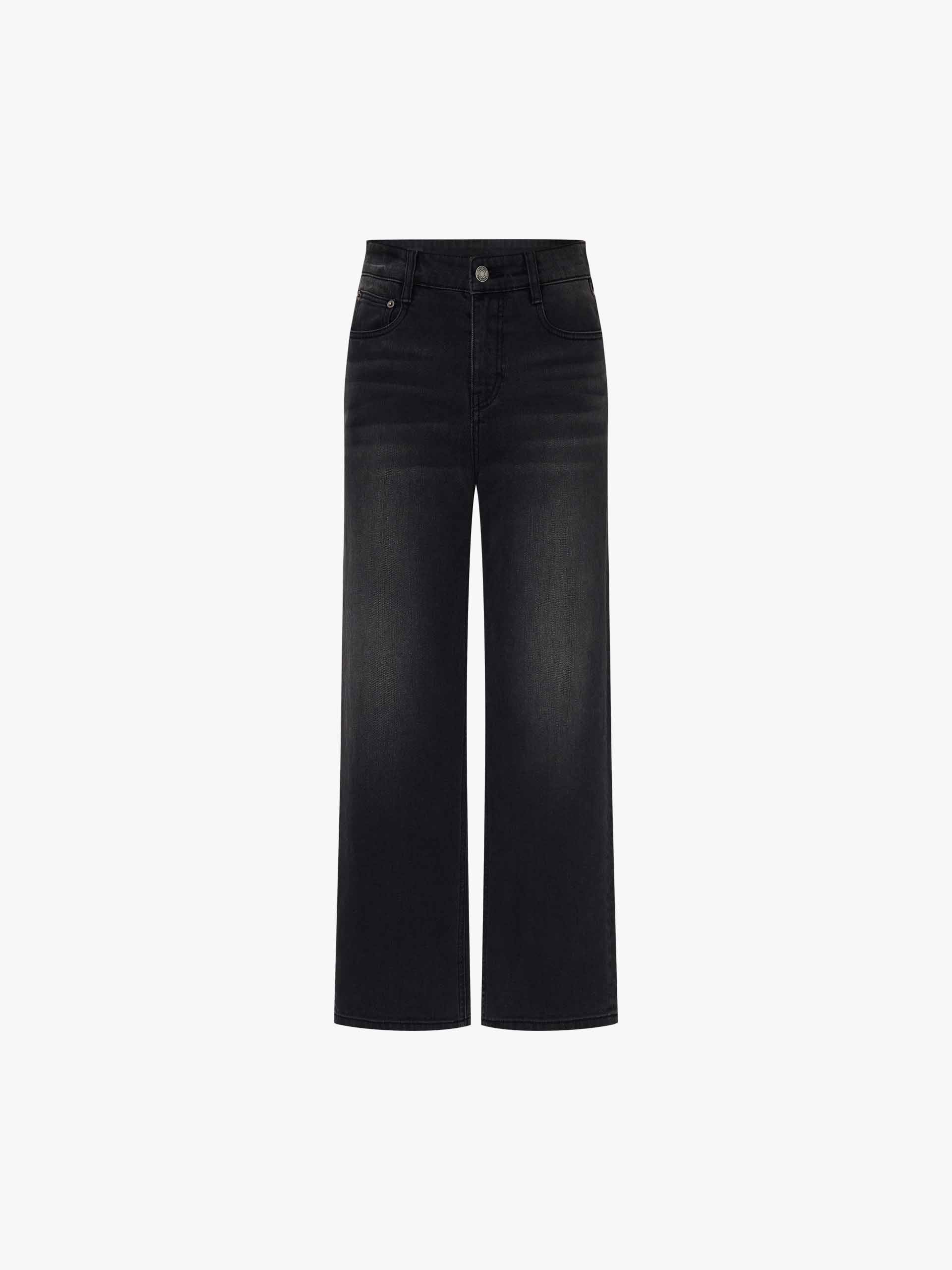 Step into edgy sophistication with these jeans, where urban cool meets timeless versatility. The regular fit and straight-leg silhouette offer a universally flattering shape, while the high-rise waist elongates the legs and provides a sleek, modern finish. Expertly faded and washed for a lived-in look, these jeans boast subtle distressed detailing that adds character without compromising polish.