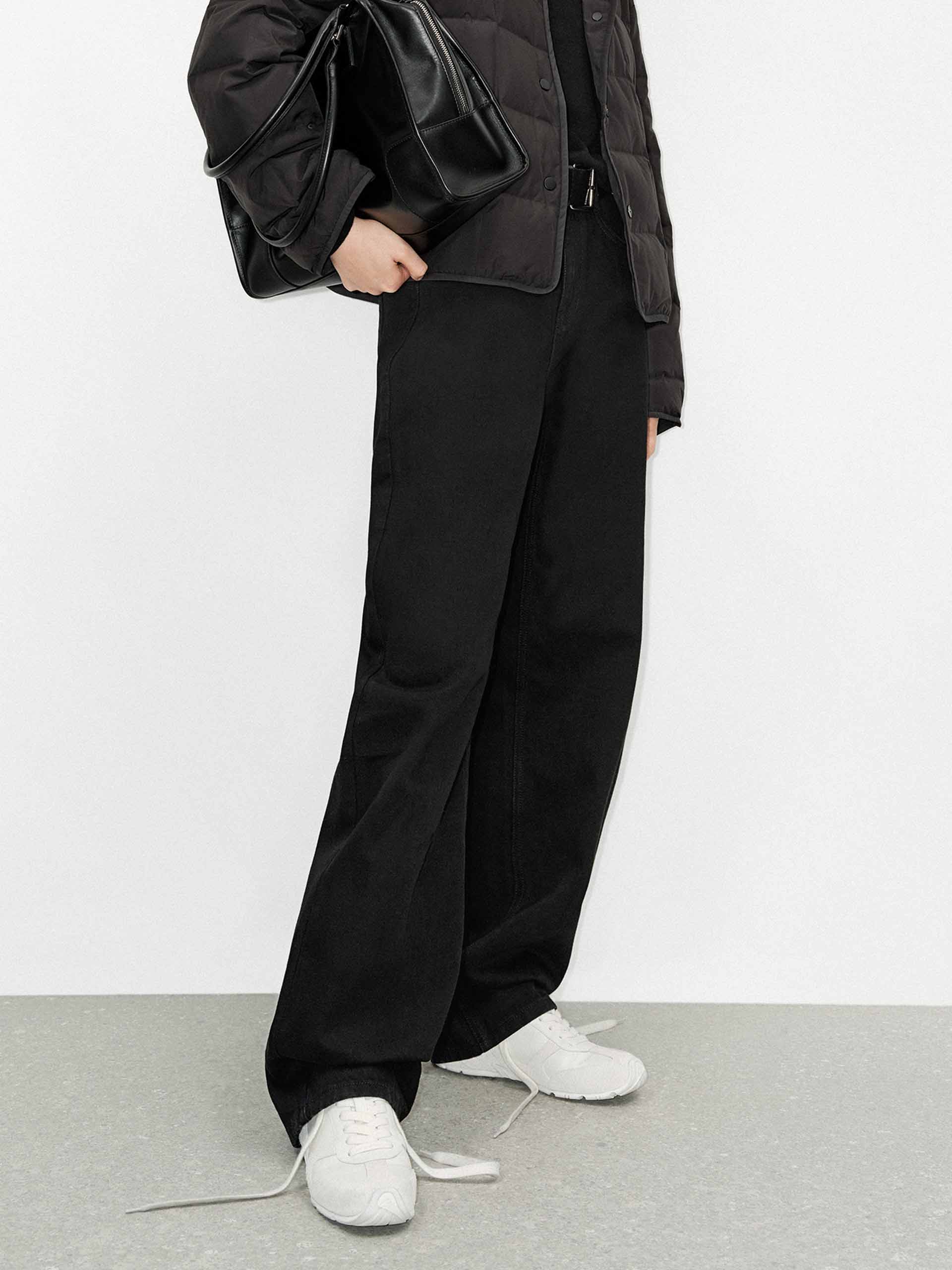 Expertly crafted from 100% pure cotton, these straight jeans offer comfort and style. With a relaxed fit, barrel leg and high waist design, they provide a flattering silhouette perfect for any occasion.