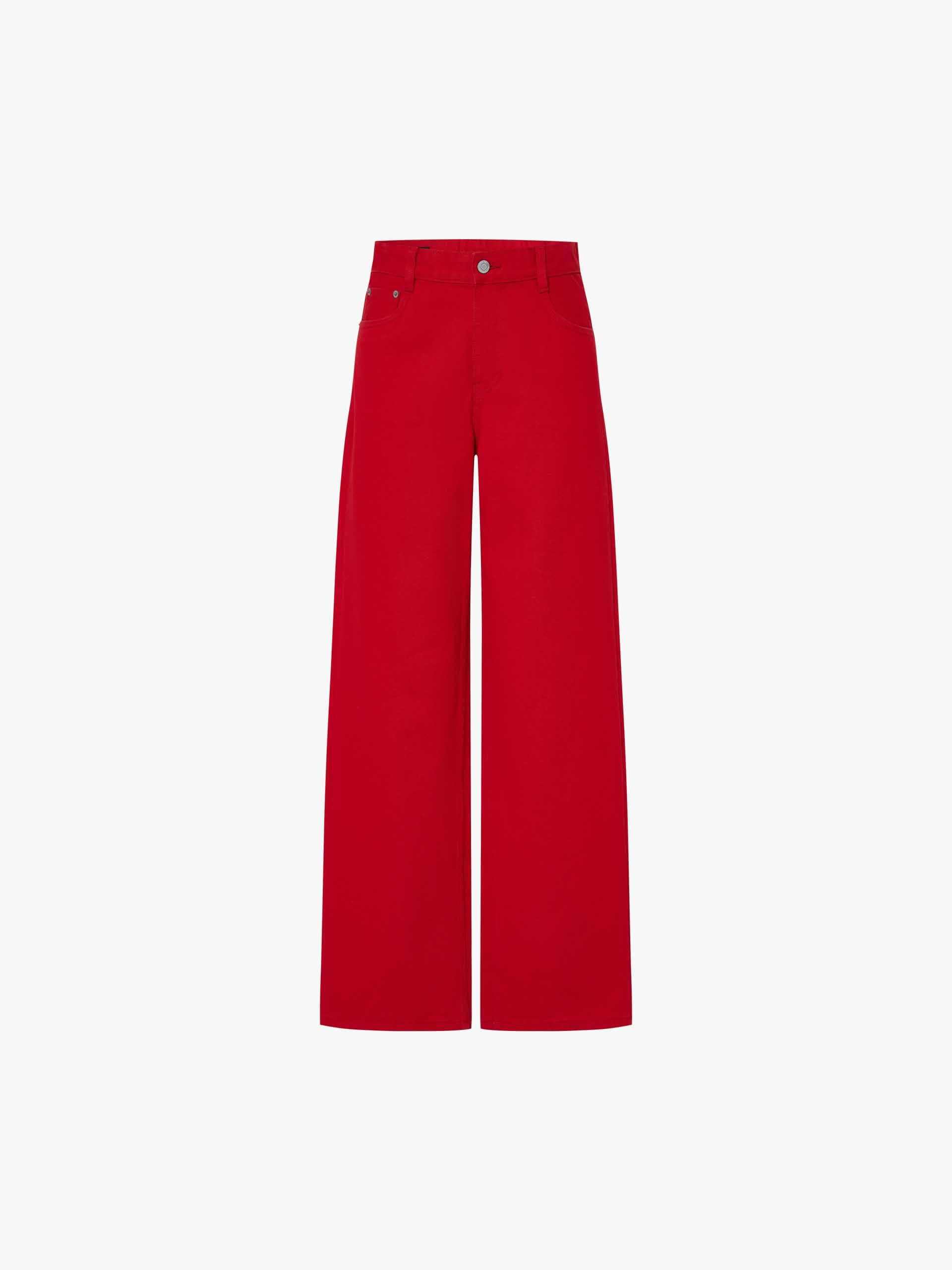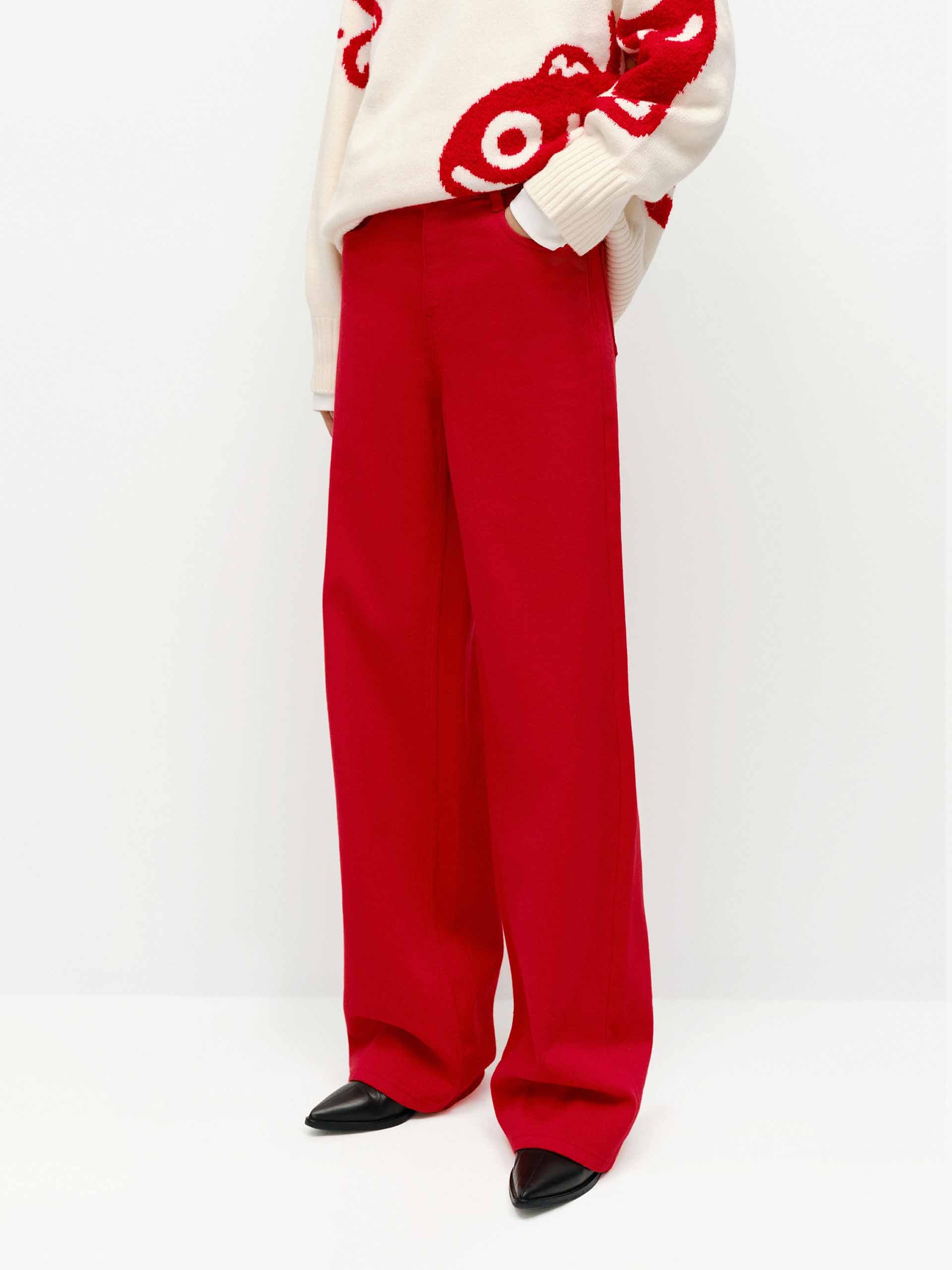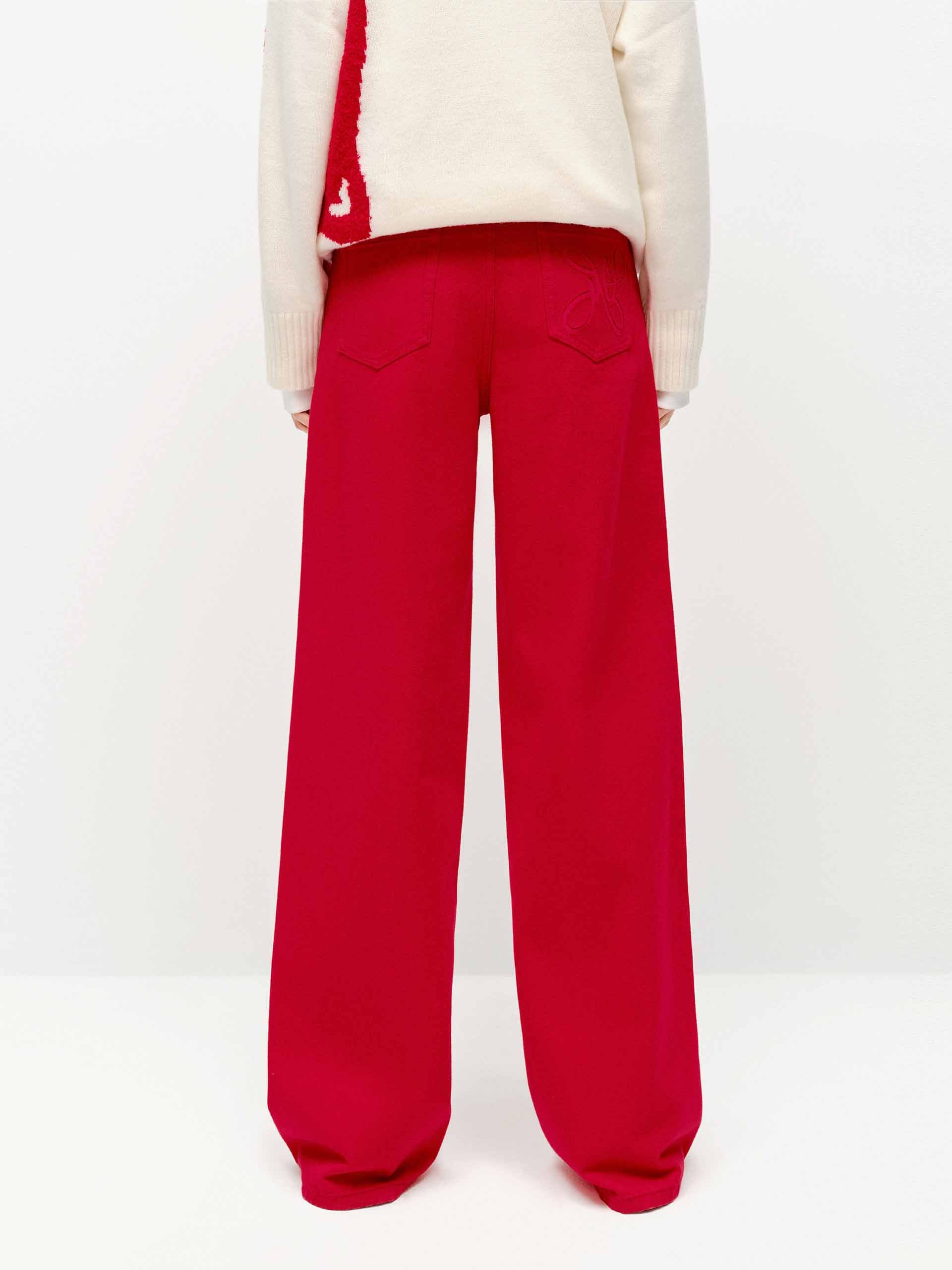 These jeans are crafted from comfortable cotton and available in a striking red hue. Enjoy a relaxed fit with straight legs and classic five pockets for ultimate comfort and style. Complete the look with a coordinating sweater for a stylish New Year look.