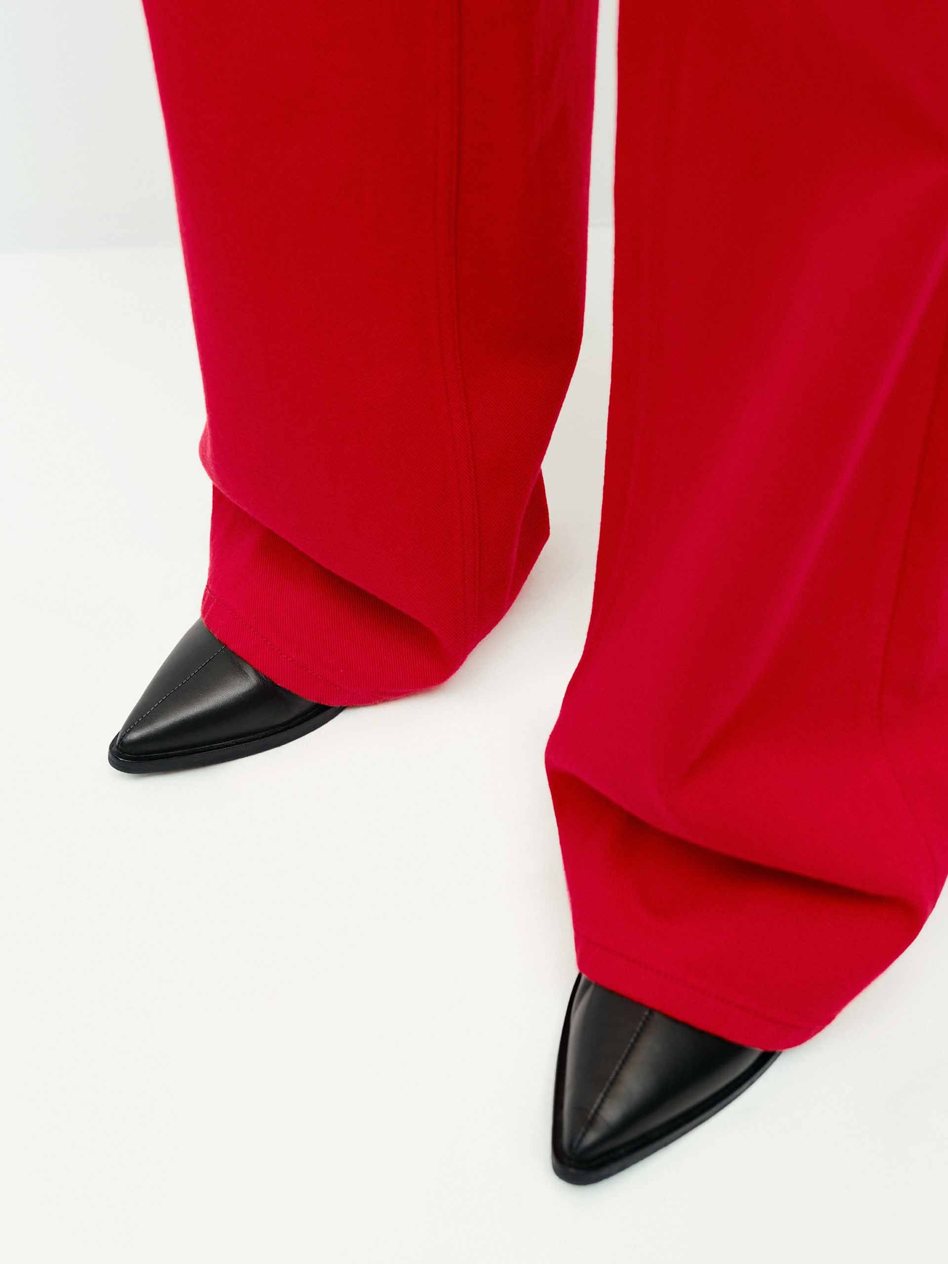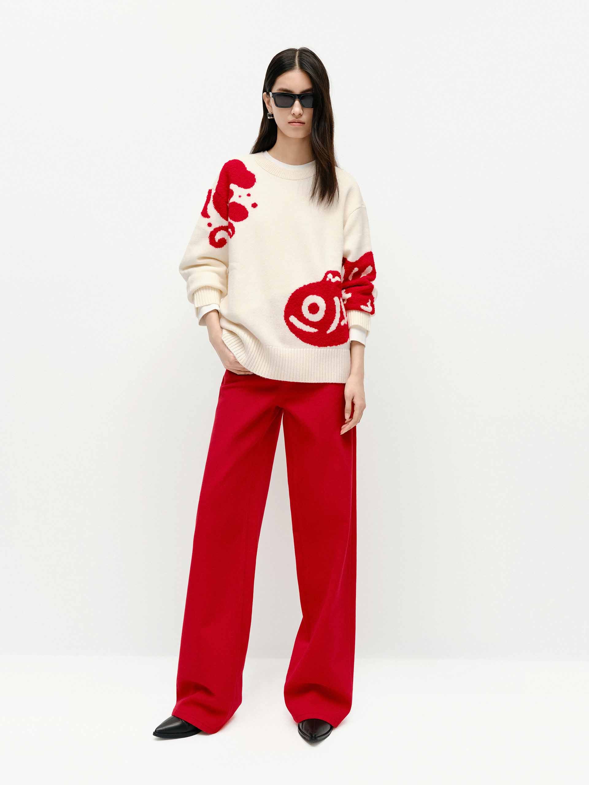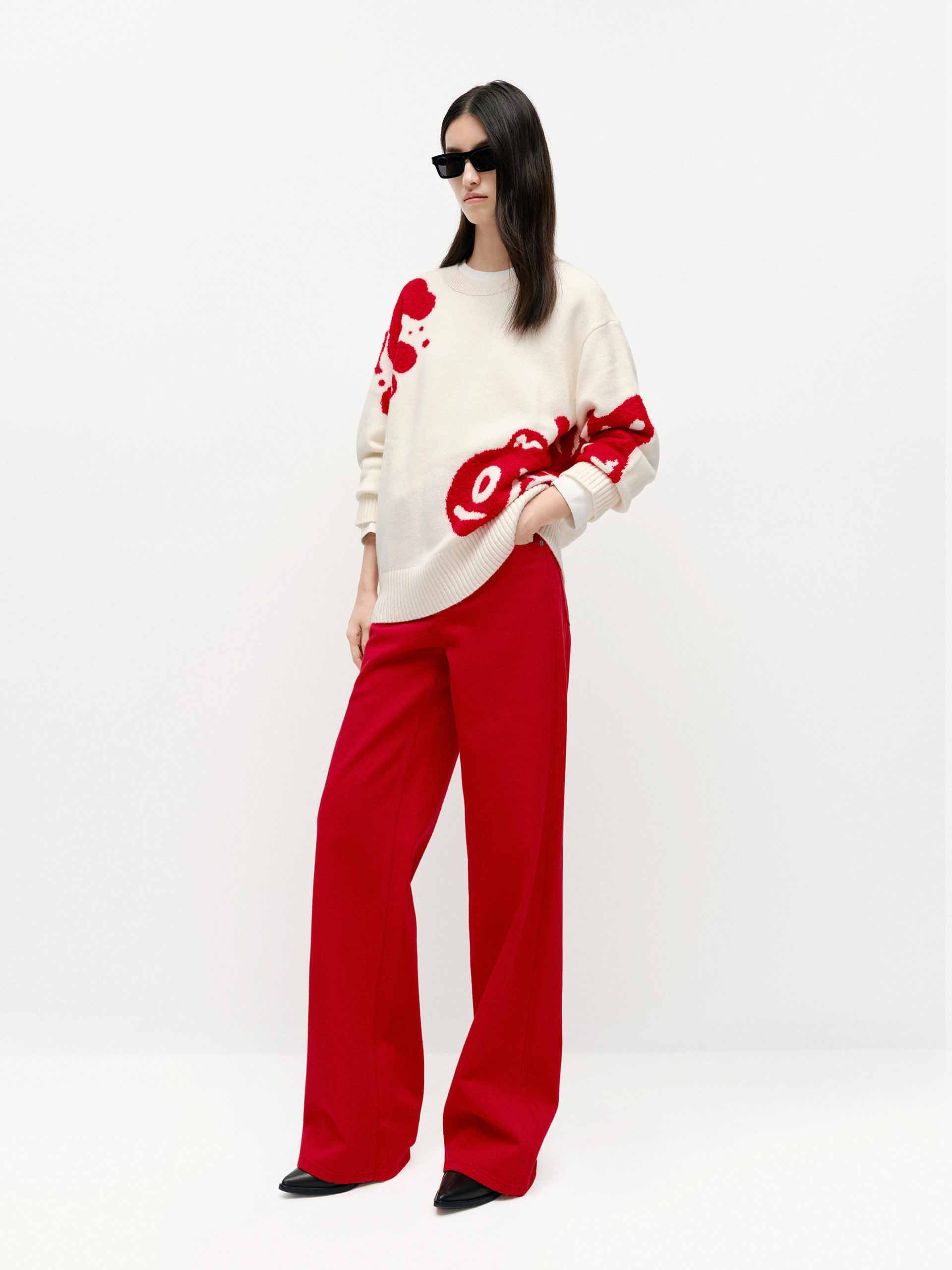 These jeans are crafted from comfortable cotton and available in a striking red hue. Enjoy a relaxed fit with straight legs and classic five pockets for ultimate comfort and style. Complete the look with a coordinating sweater for a stylish New Year look.