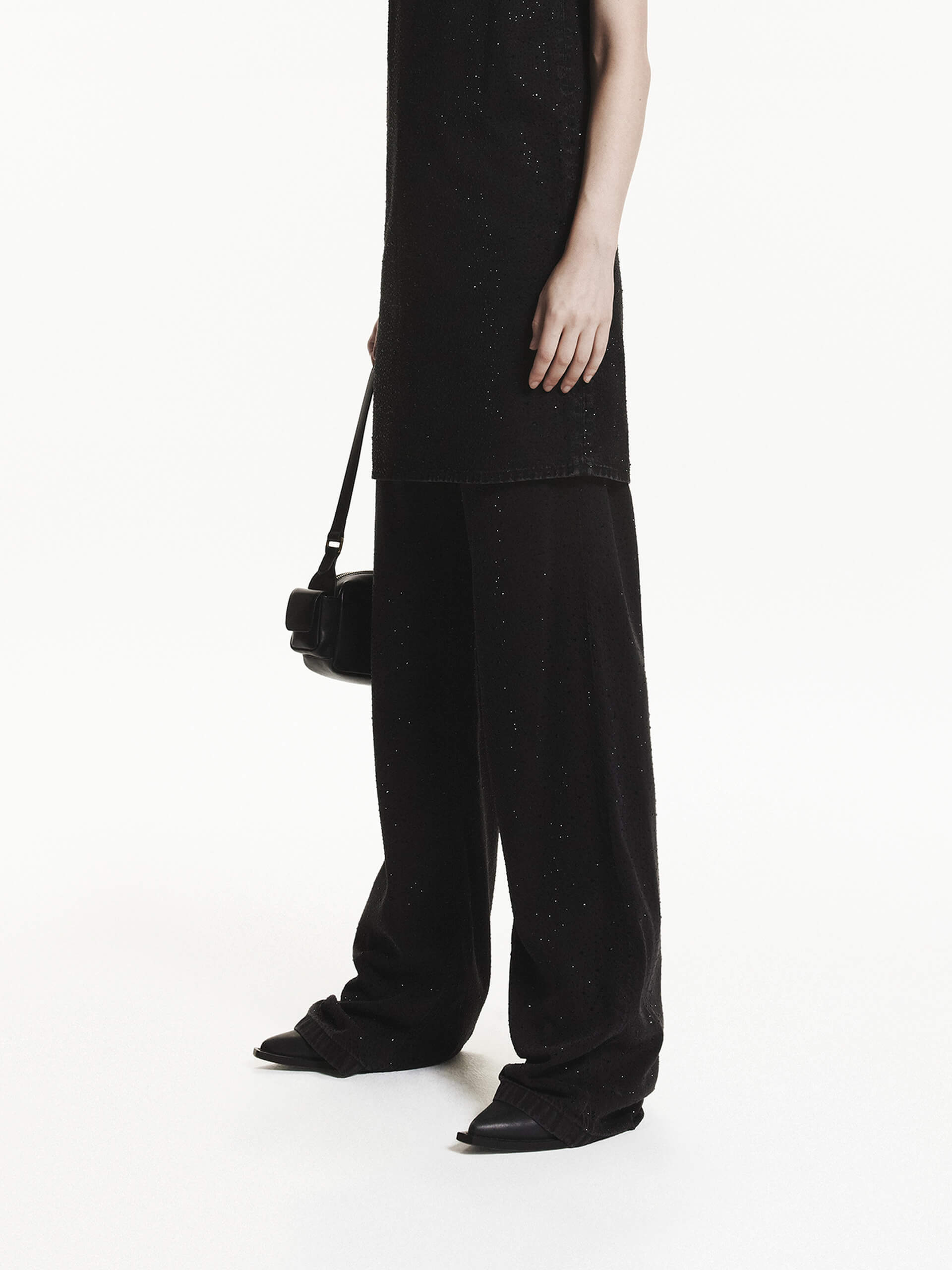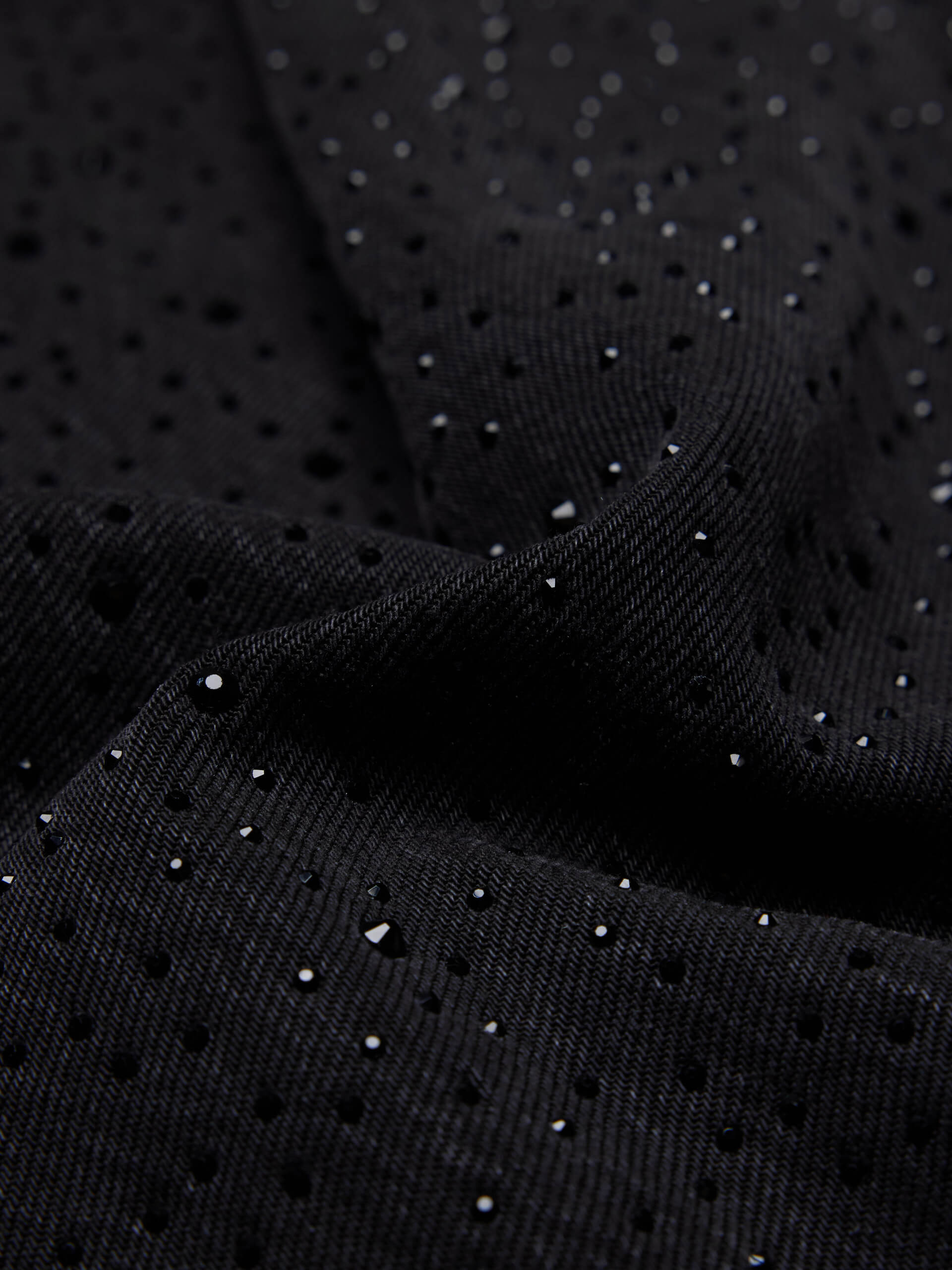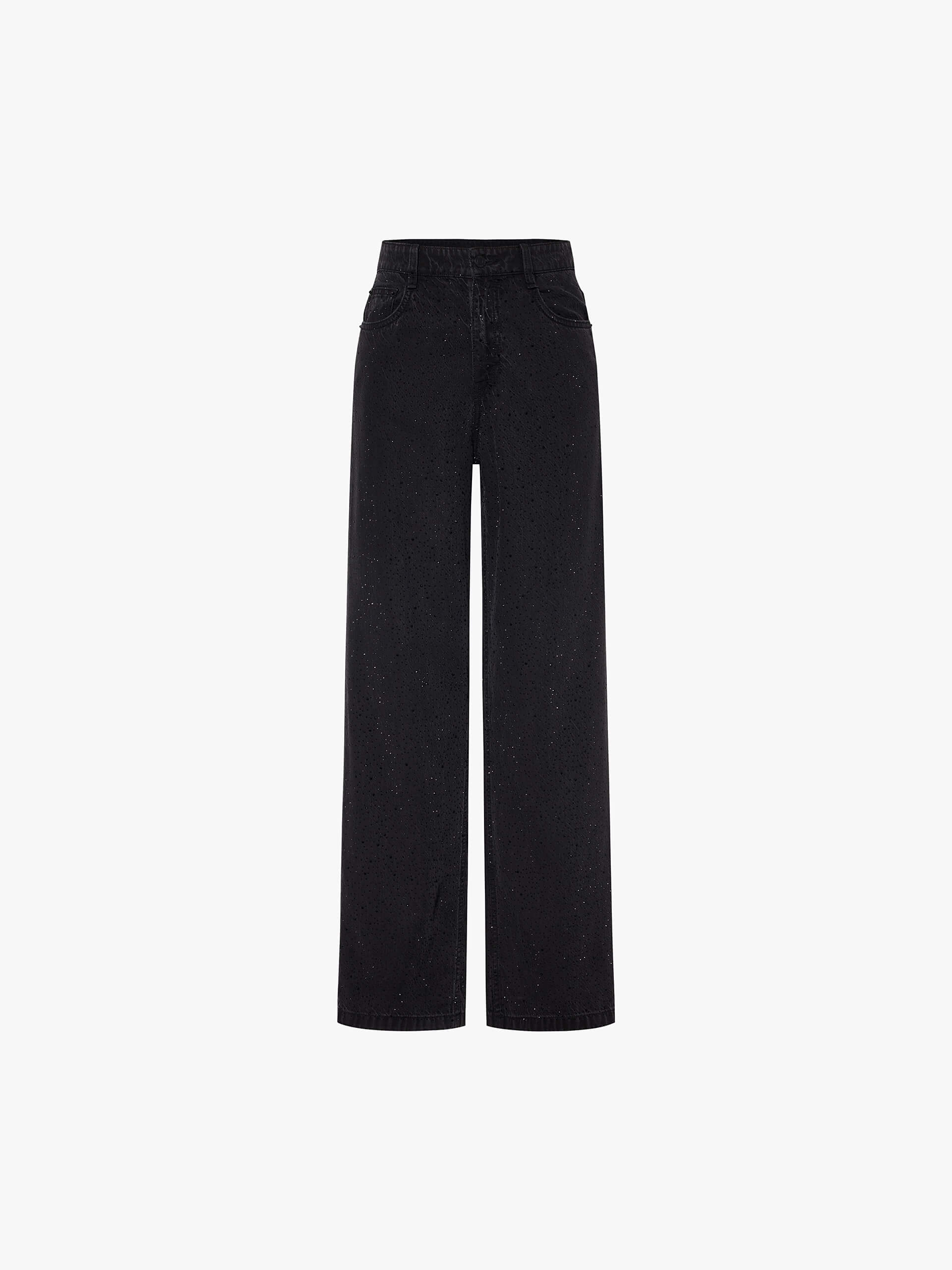 Our team focused on creating fresh takes on wardrobe classics for this season. These versatile jeans feature a loose straight-leg silhouette and rhinestone embellishment. Crafted from 100% Lyocell for fluidity and comfortable fit.
