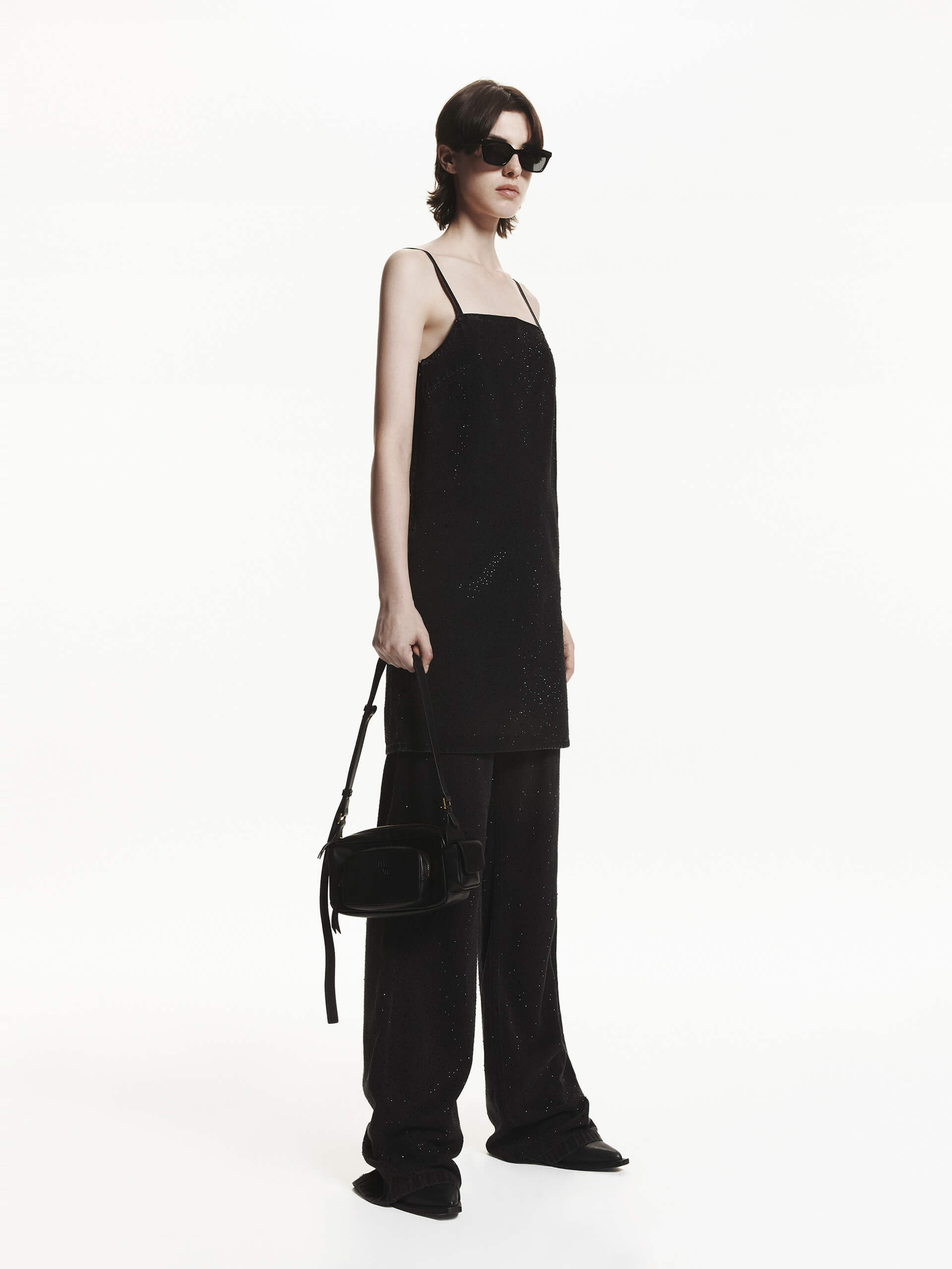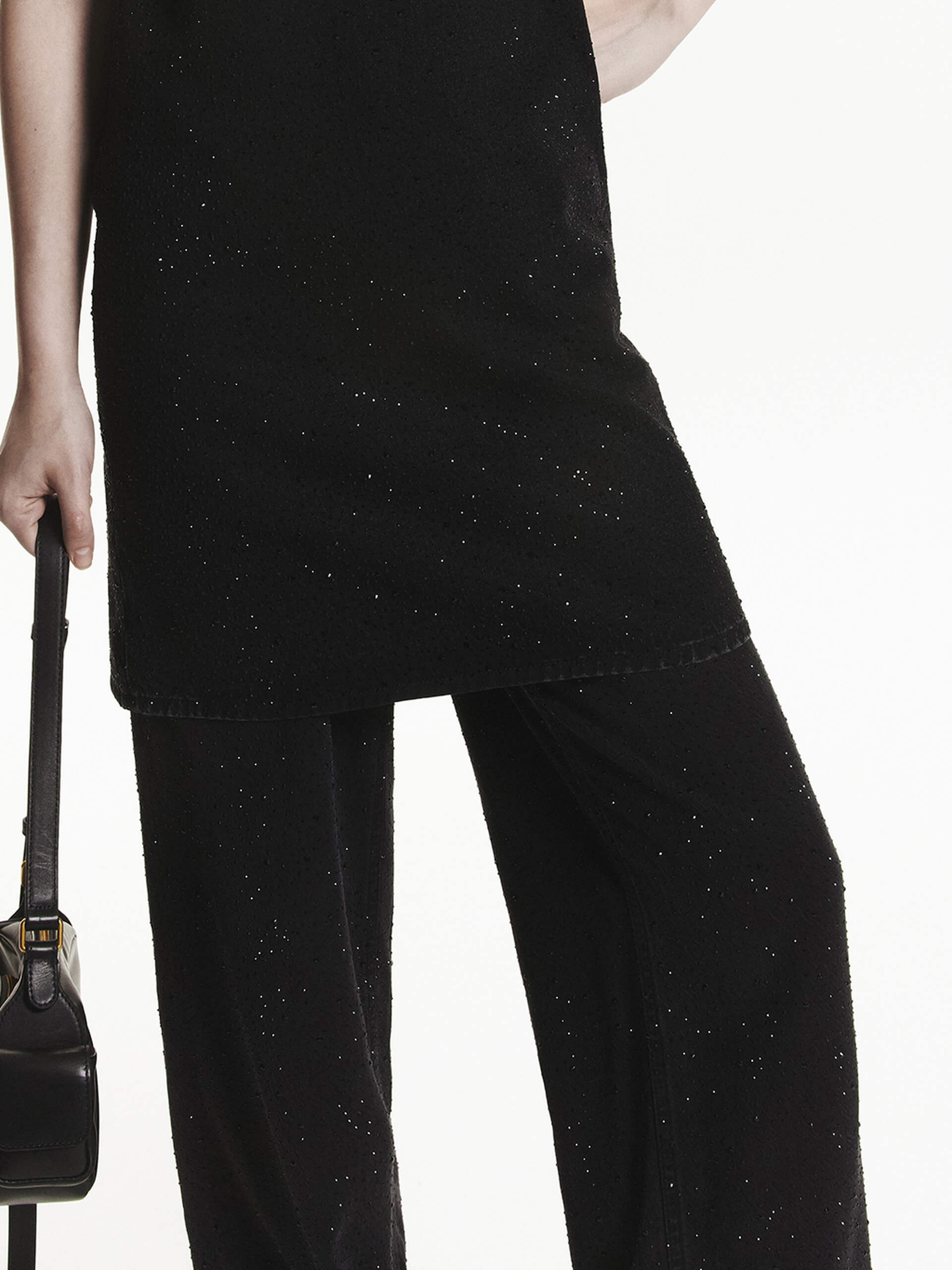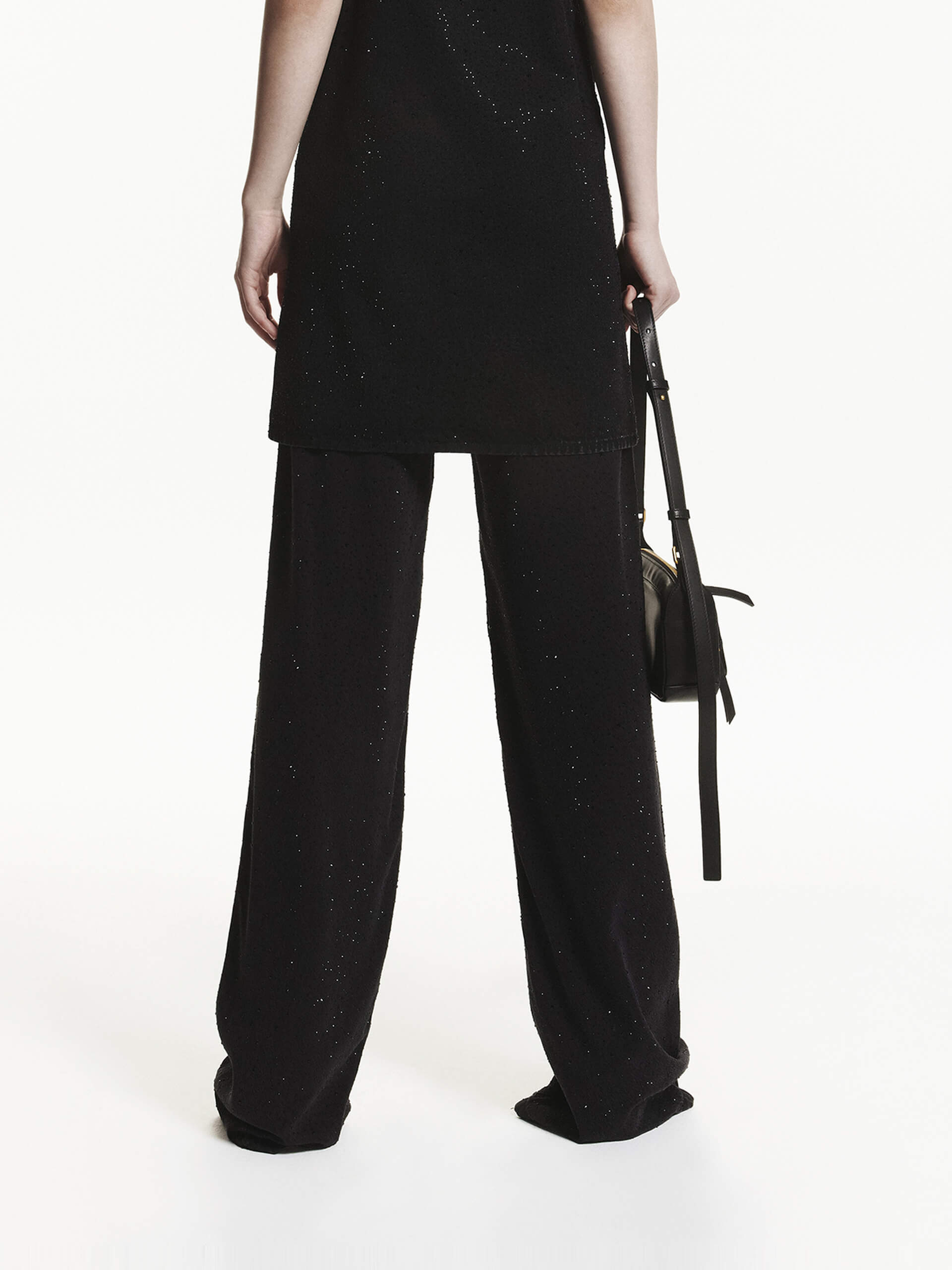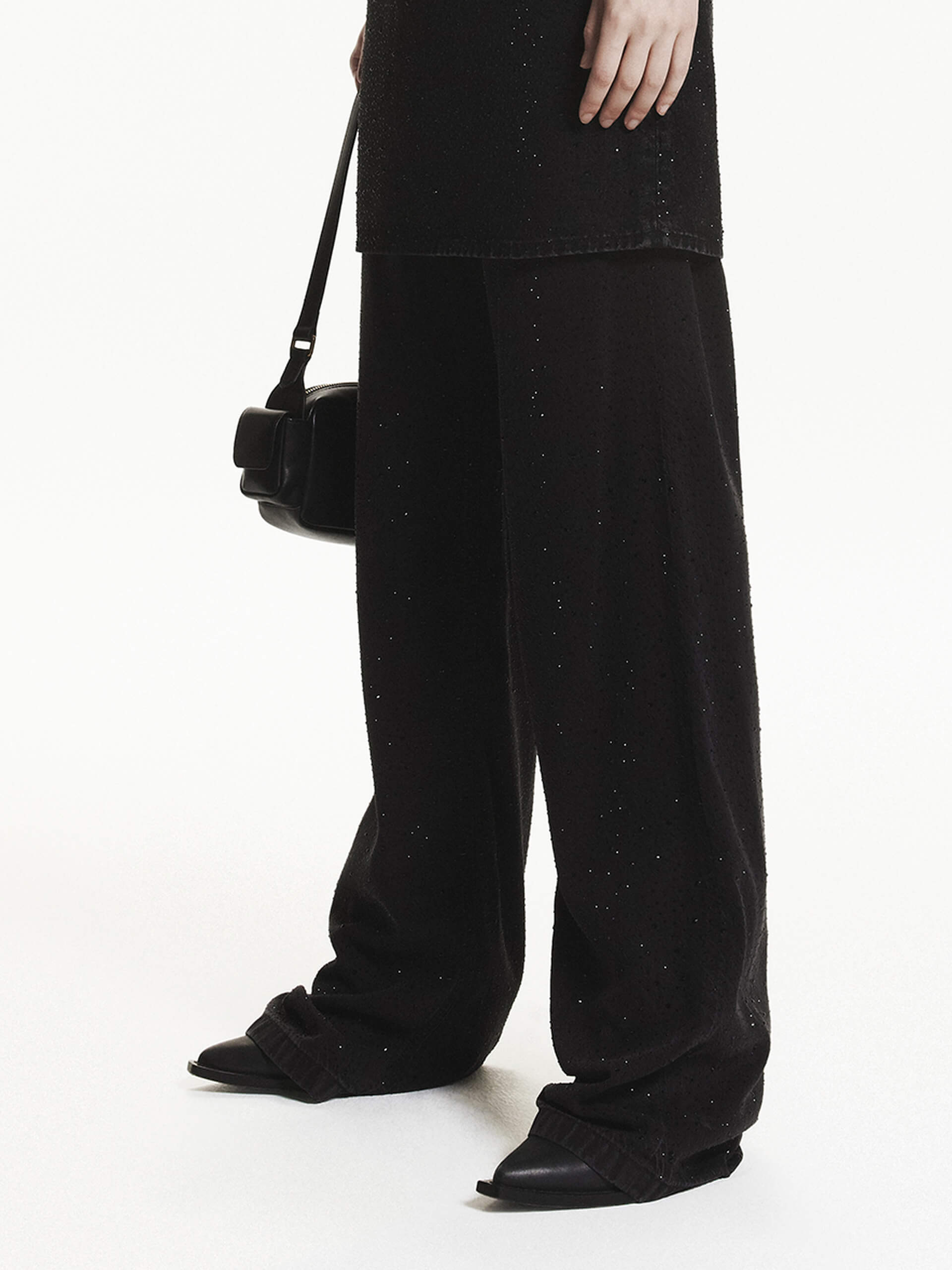 Our team focused on creating fresh takes on wardrobe classics for this season. These versatile jeans feature a loose straight-leg silhouette and rhinestone embellishment. Crafted from 100% Lyocell for fluidity and comfortable fit.