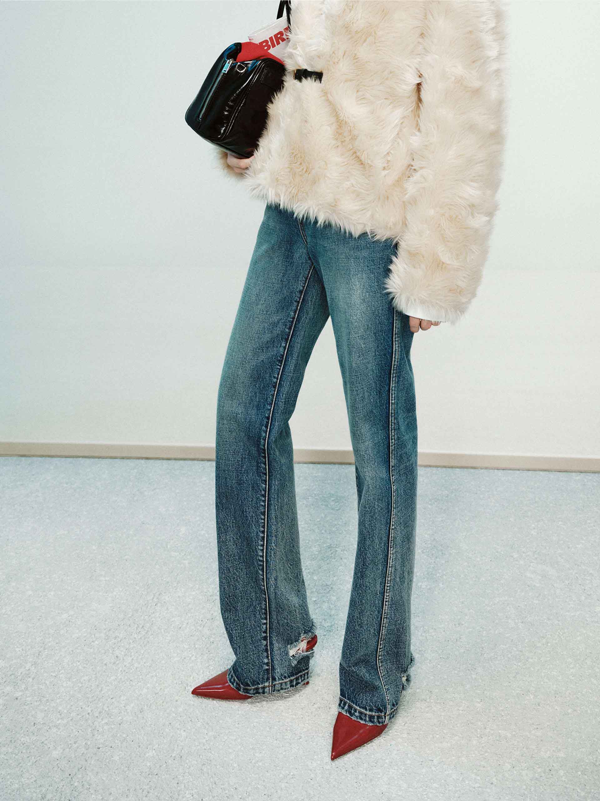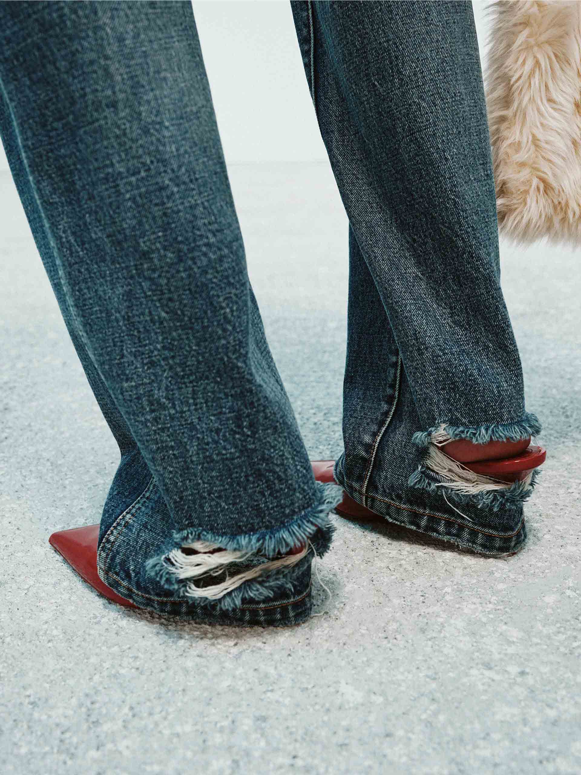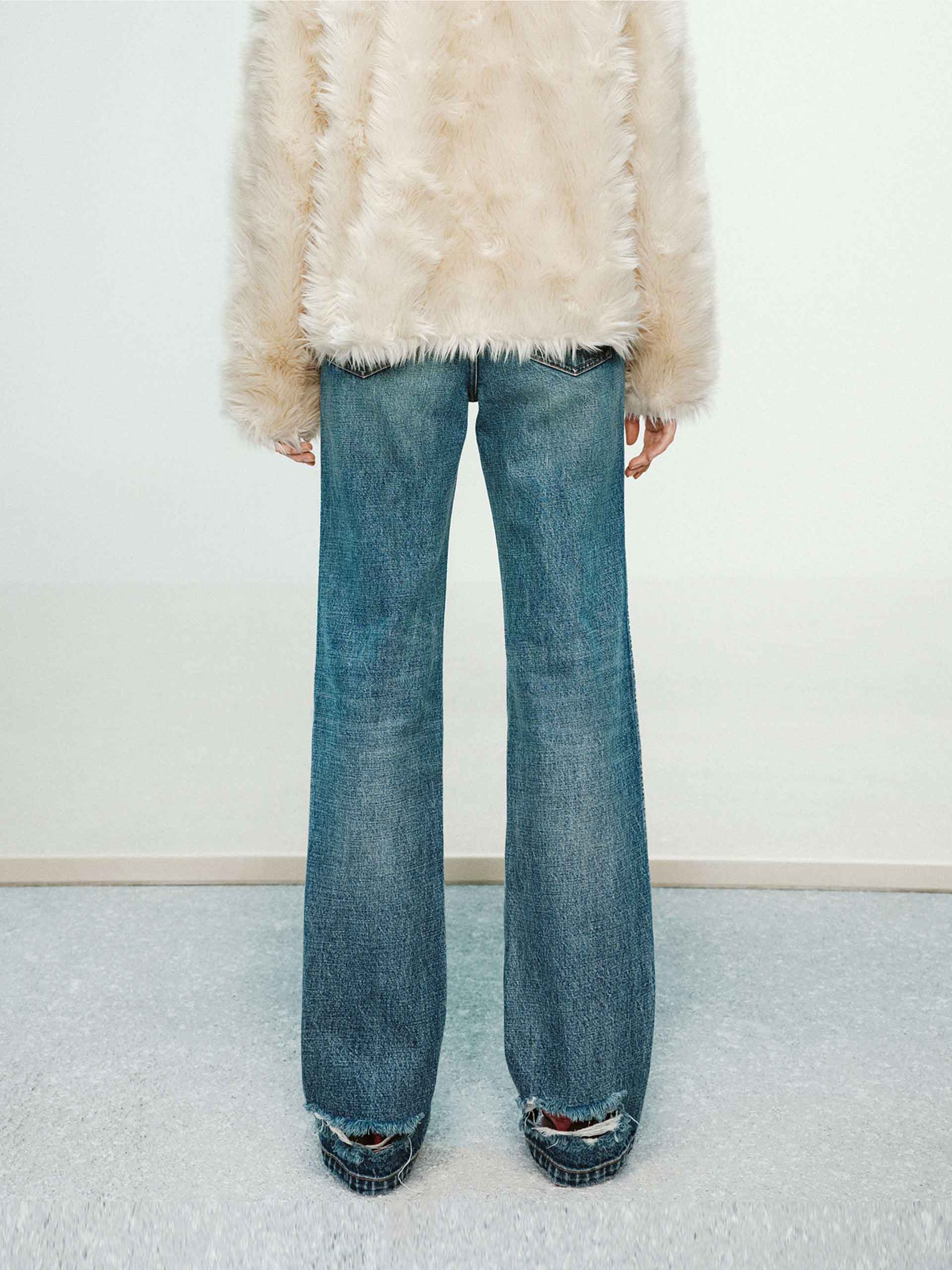 Expertly crafted in collaboration with RECTO, these jeans are made from premium cotton for a comfortable fit. Featuring a classic straight leg and ripped hem detailing in a stylish blue wash, these jeans are a versatile and trendy addition to any top.