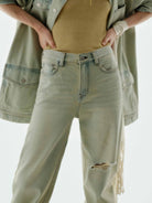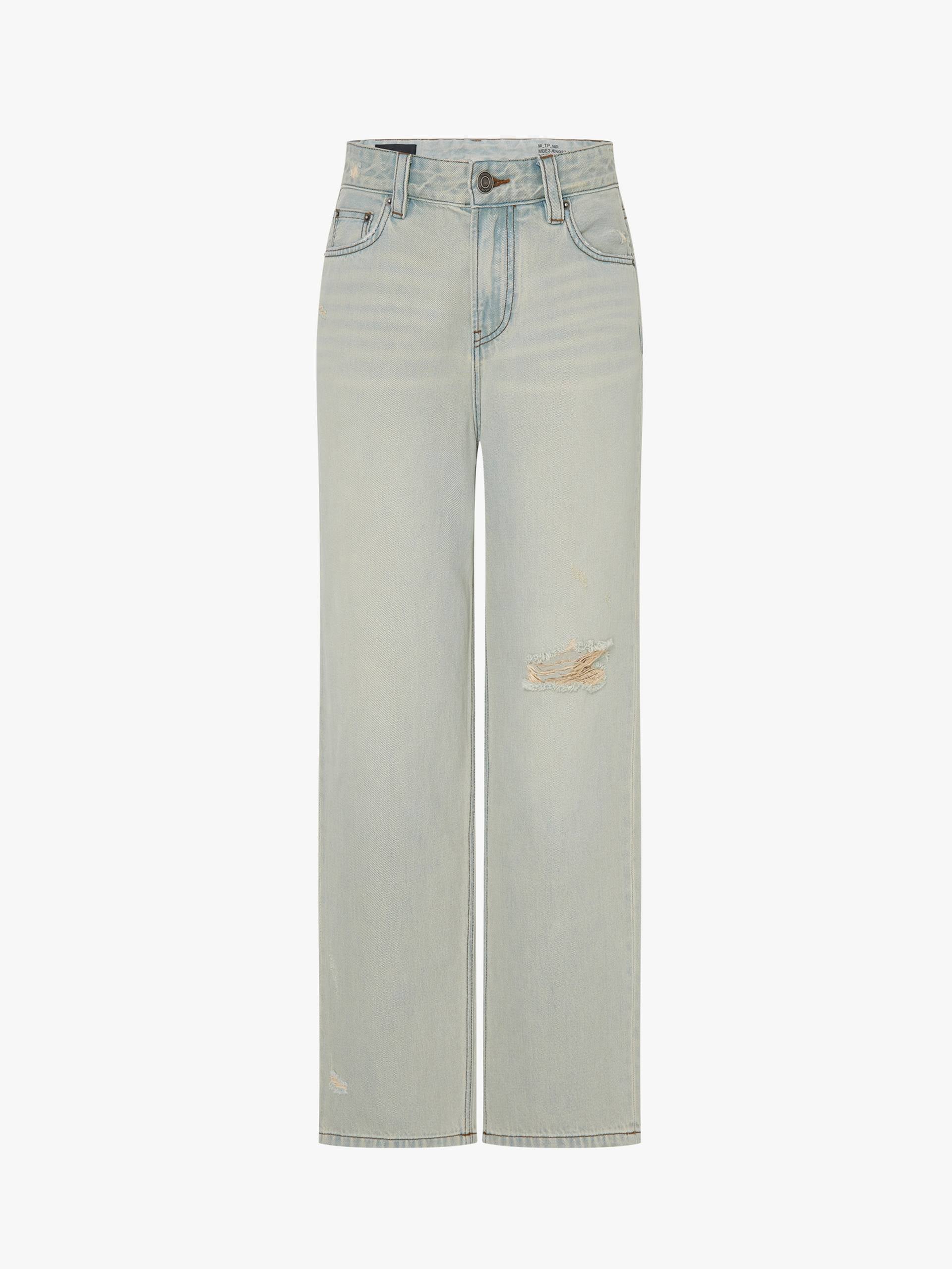 Designed for versatility, these jeans feature a classic five-pocket layout with a secure zip and button closure, ensuring both style and functionality. The strategically placed rips and a lived-in, faded wash create an instantly broken-in, edgy look. The premium leather logo patch at the back waistband adds a subtle touch of elevated craftsmanship.