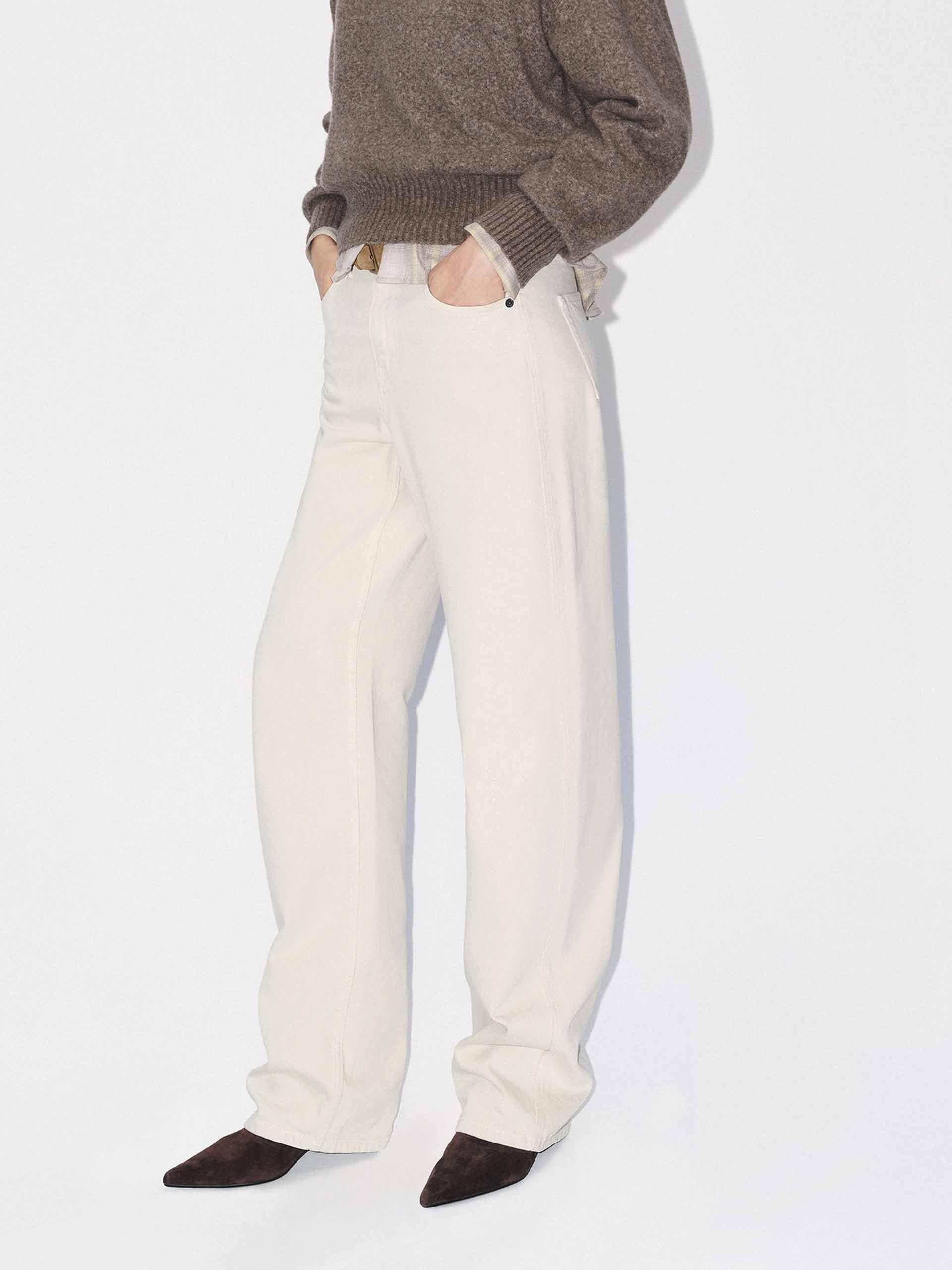 Radiate timeless elegance with these classic white jeans, designed in a regular fit for versatile and flattering wear. Crafted from 100% premium cotton denim, they offer both durability and comfort, making them a staple for any season. The zip and button closure ensures a secure fit, while functional side pockets maintain a clean, streamlined silhouette.