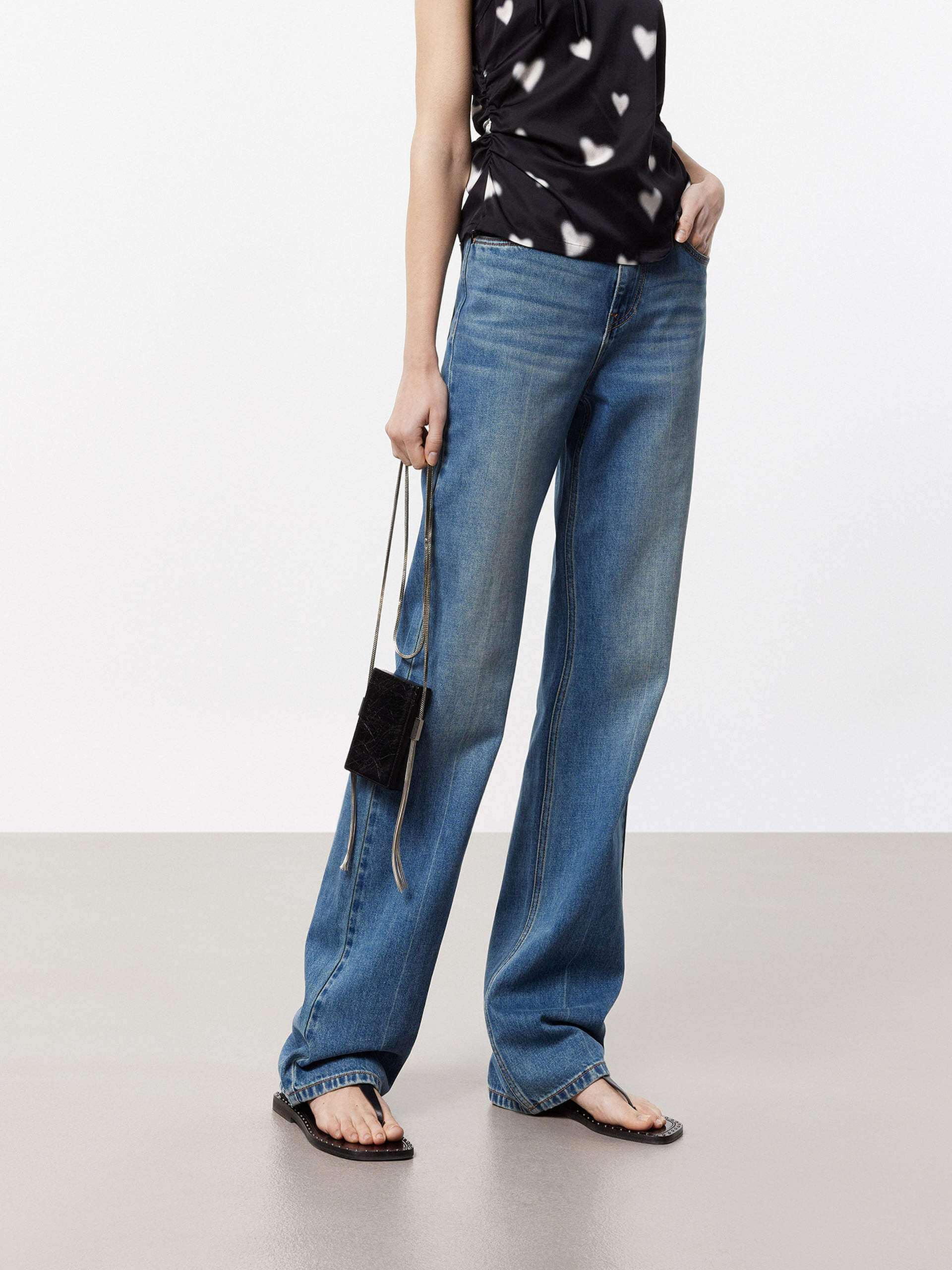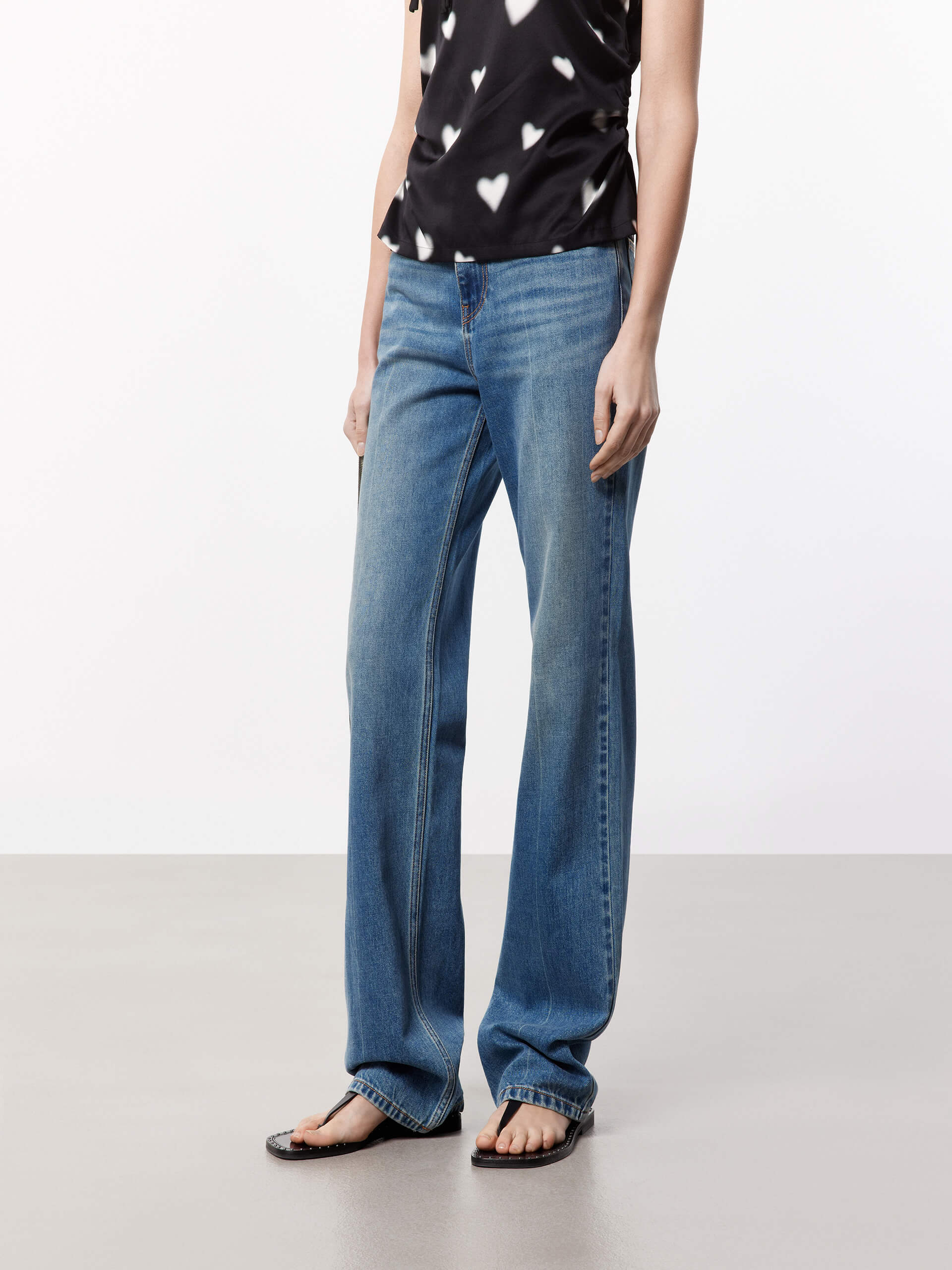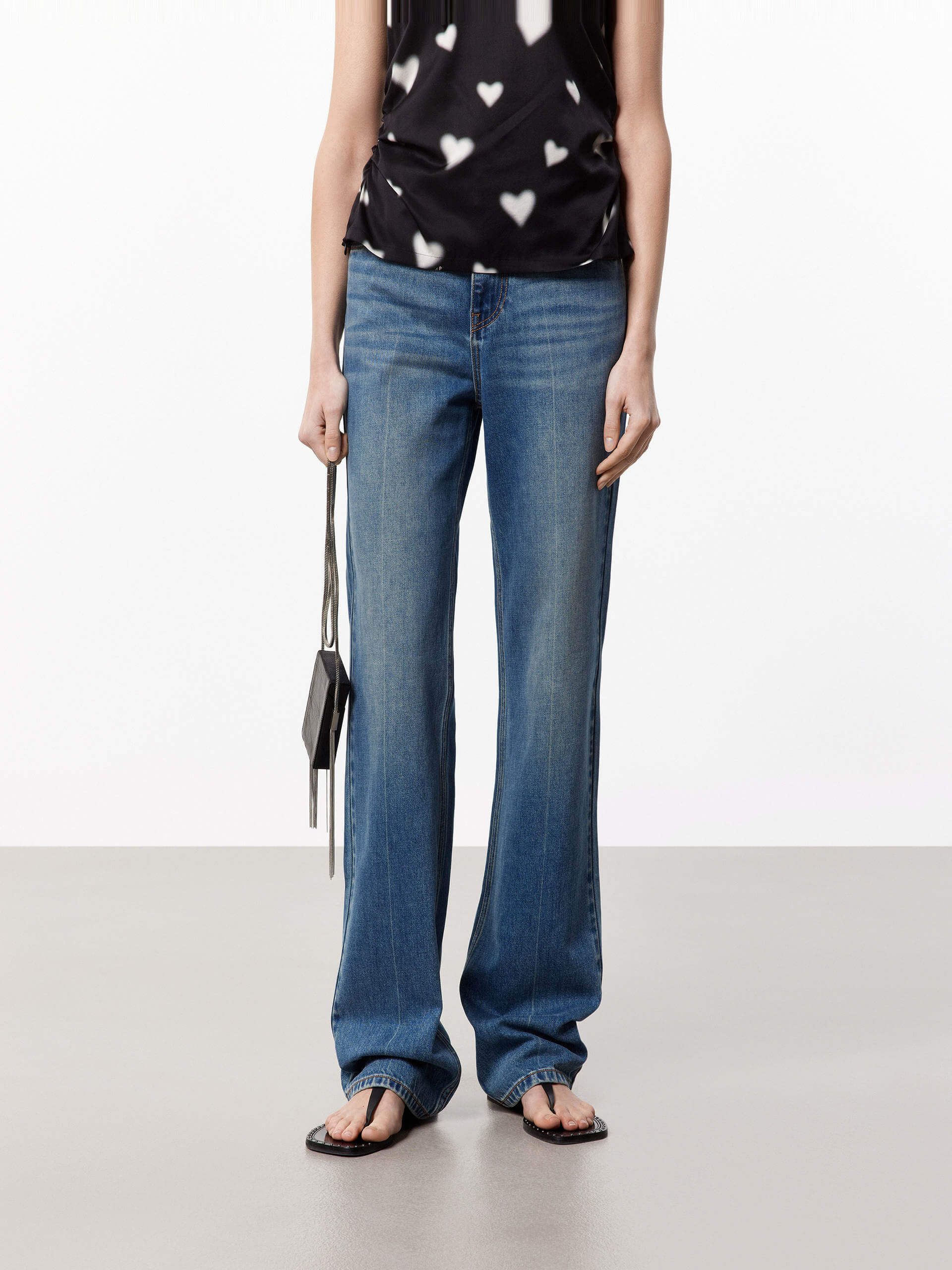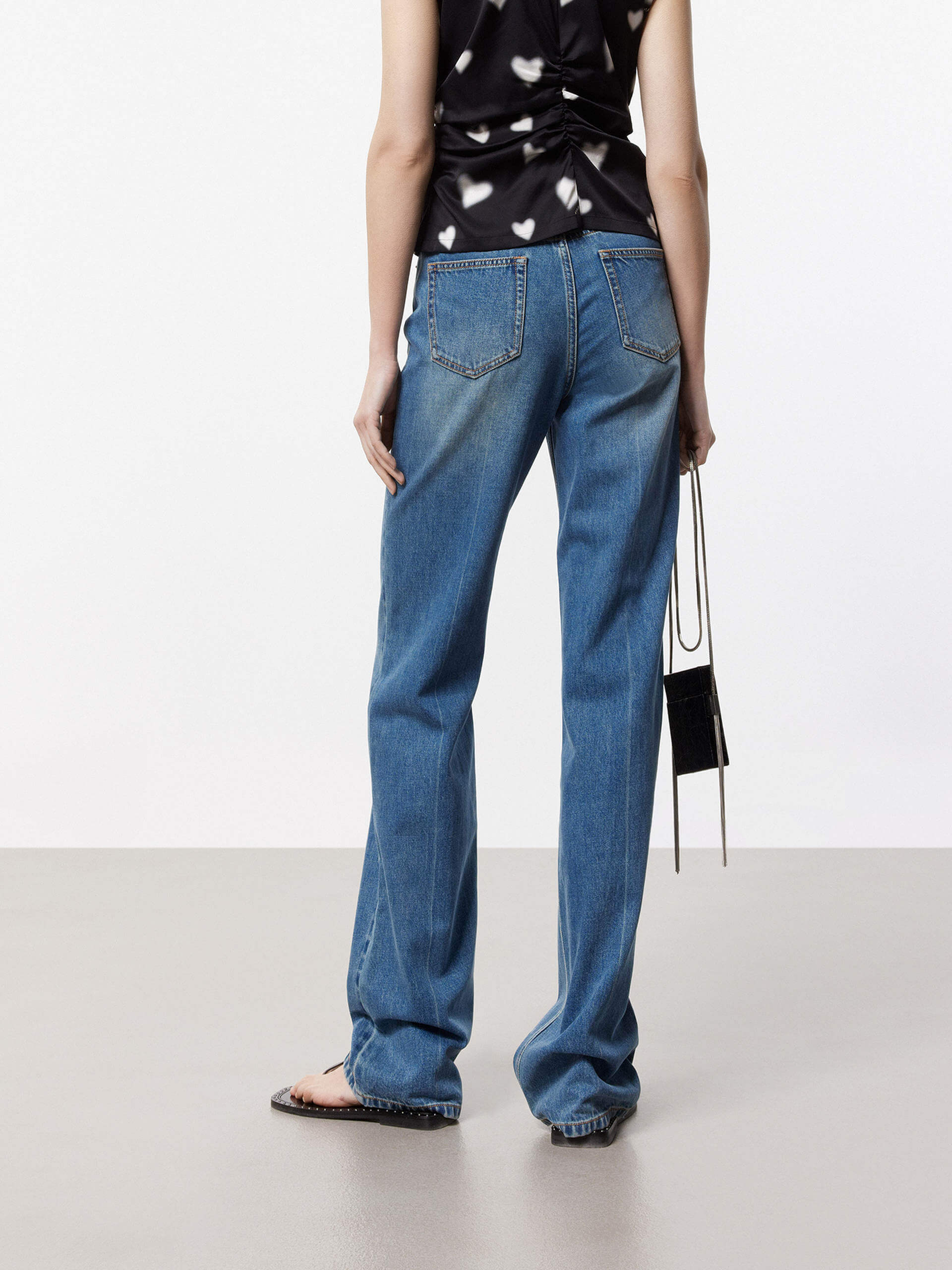 These jeans feature a classic straight cut silhouette that flatters all body types and provides a timeless look. Made from a high-quality blend of cotton and silk, these jeans have a soft and comfortable touch that feels amazing against your skin. The lightly faded blue wash gives them a worn-in, relaxed feel that's perfect for casual occasions. Pair them with a simple t-shirt and sneakers for a laid-back look.