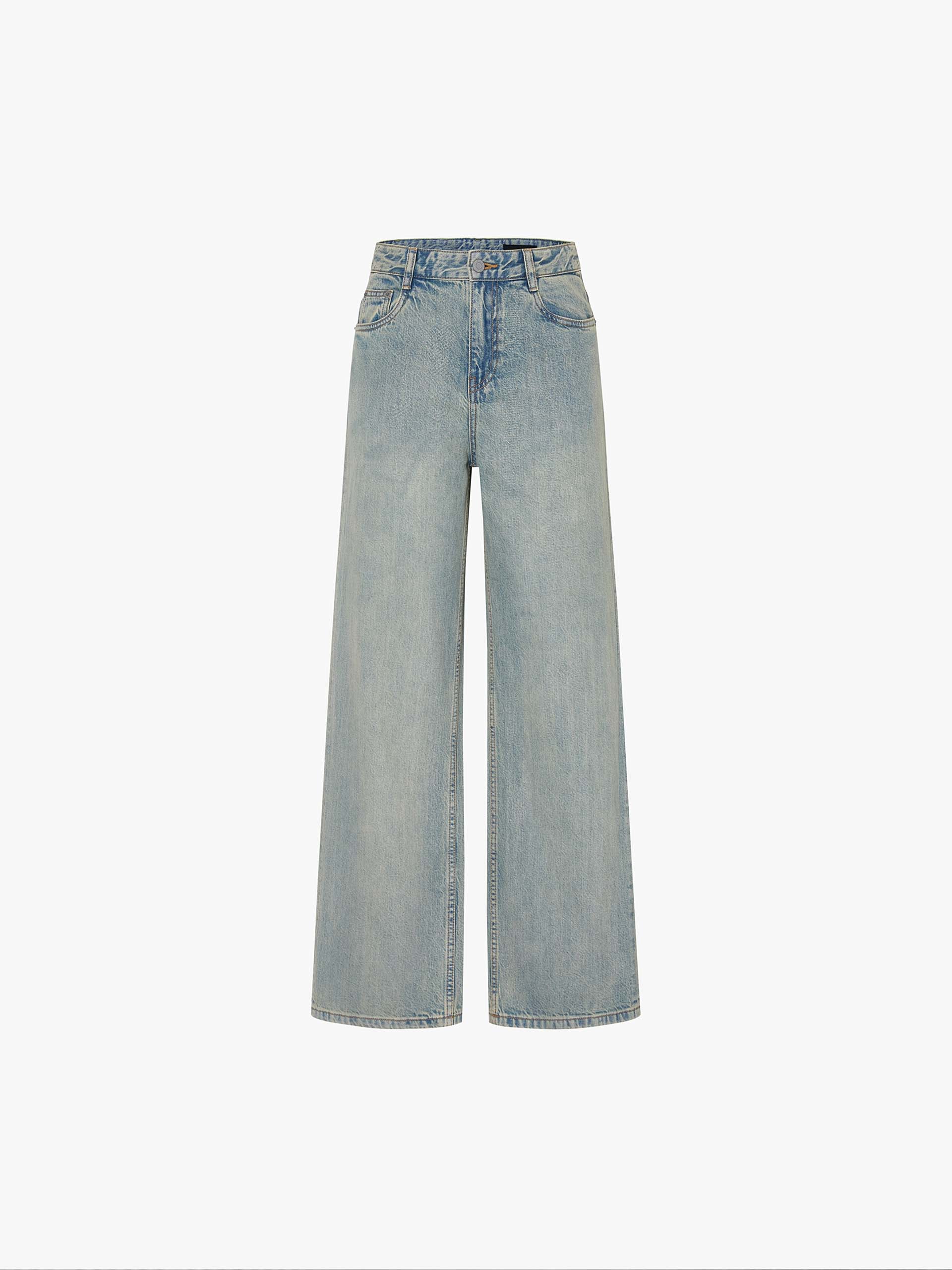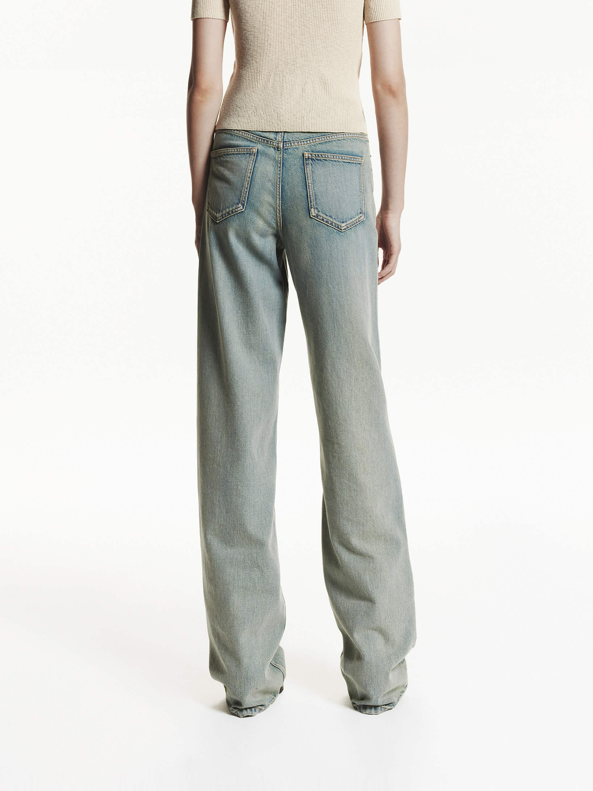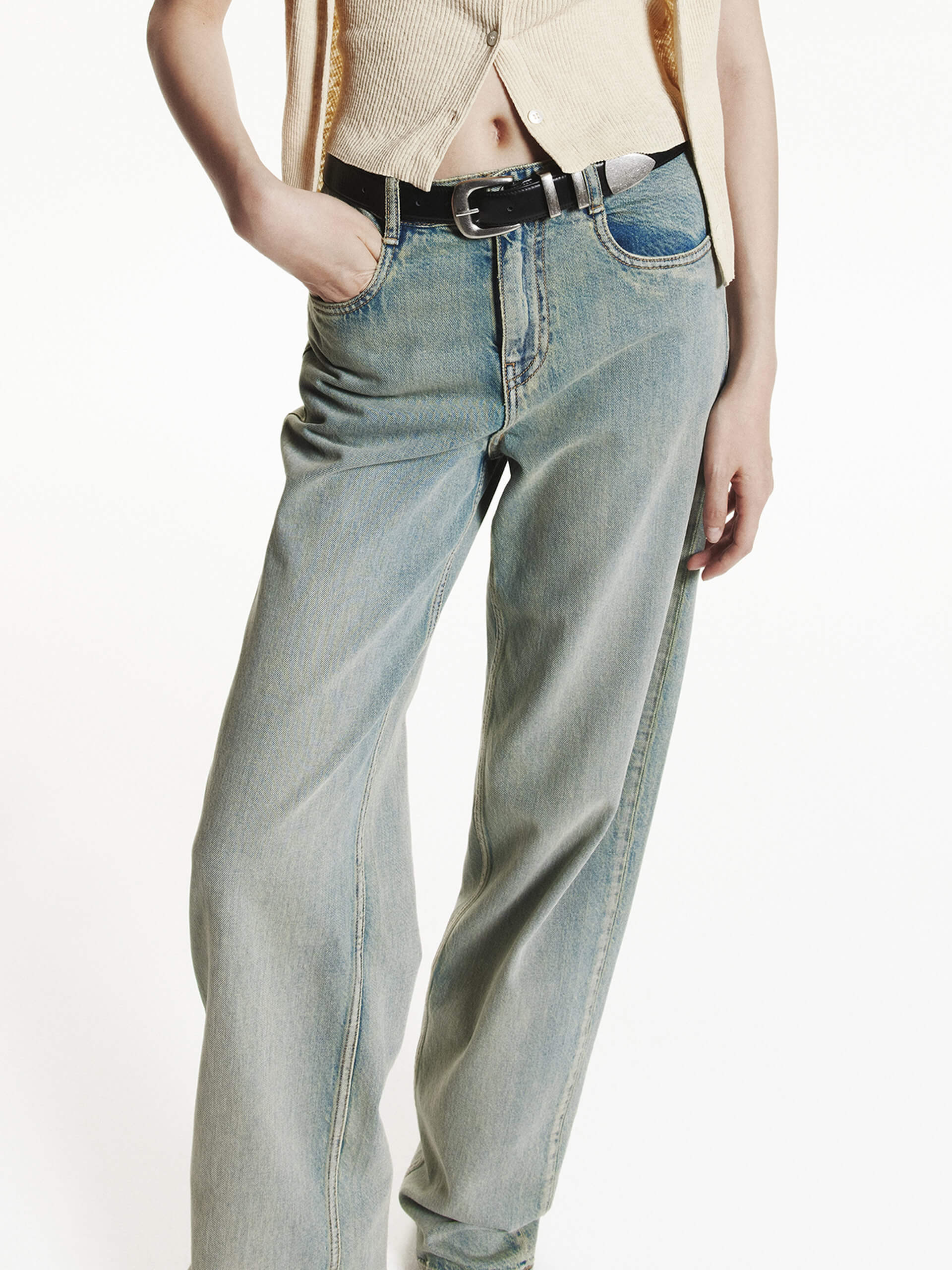 Introducing our timeless straight-leg jeans, crafted from 100% premium cotton for ultimate comfort and durability. The relaxed fit provides a laid-back and effortless style, perfect for everyday wear. Featuring a retro-washed light blue finish, these jeans have a vintage look that's both fashionable and nostalgic.