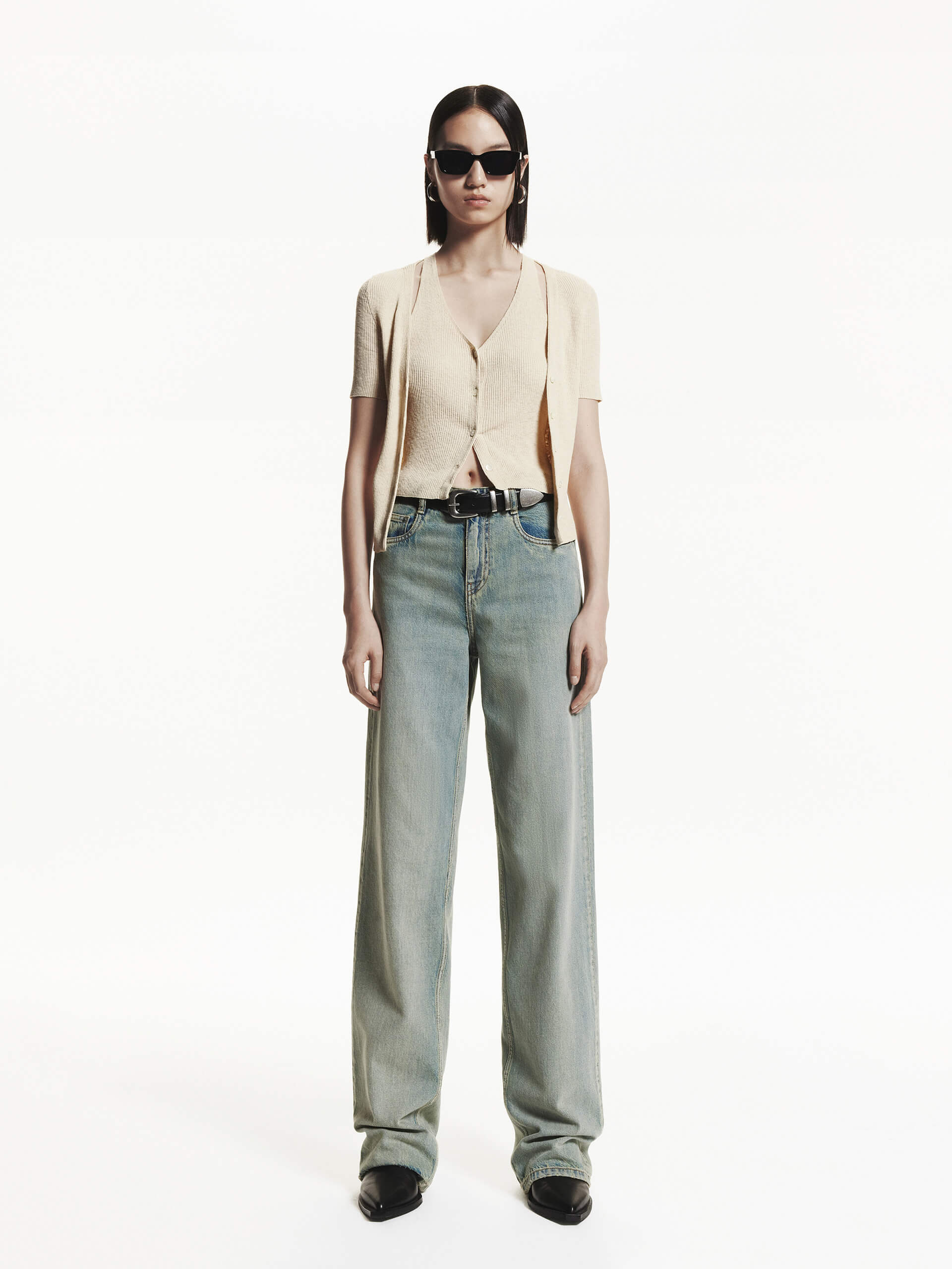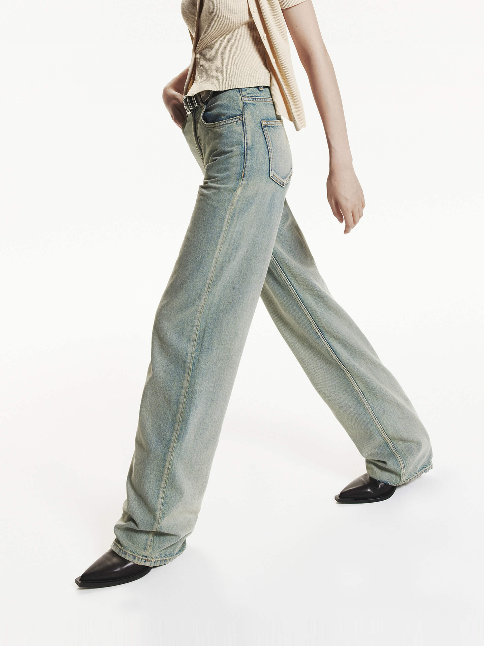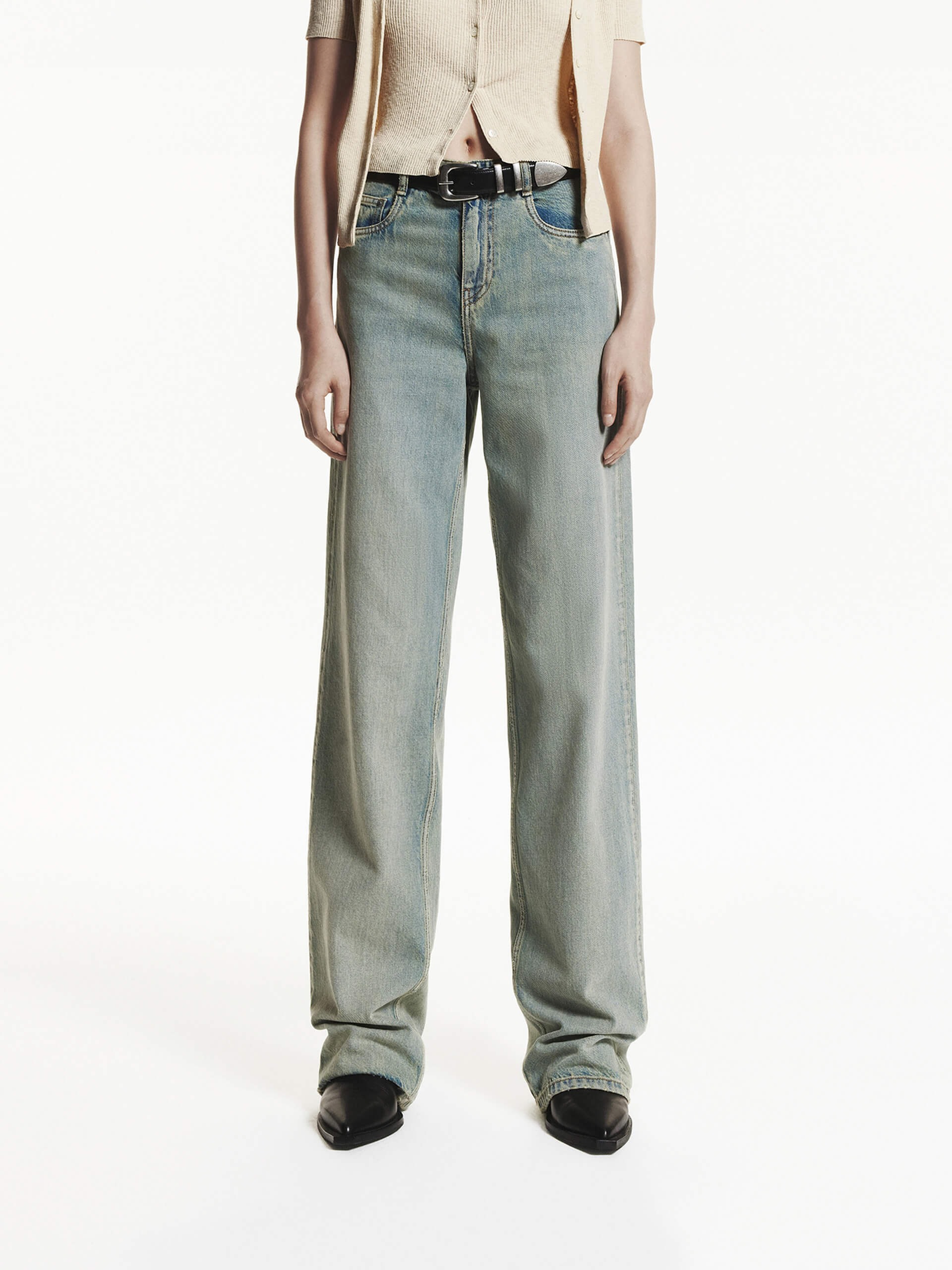 Introducing our timeless straight-leg jeans, crafted from 100% premium cotton for ultimate comfort and durability. The relaxed fit provides a laid-back and effortless style, perfect for everyday wear. Featuring a retro-washed light blue finish, these jeans have a vintage look that's both fashionable and nostalgic.