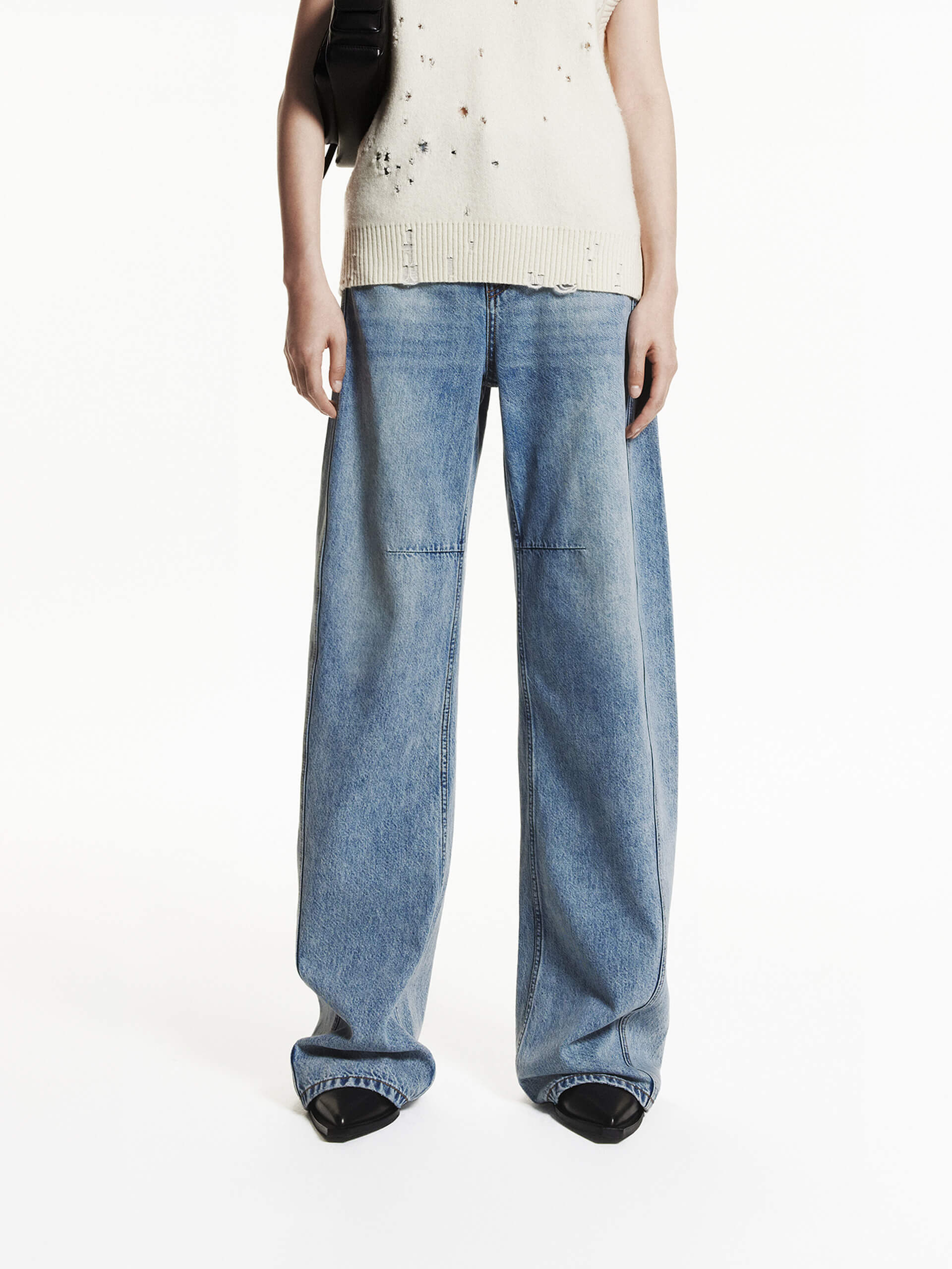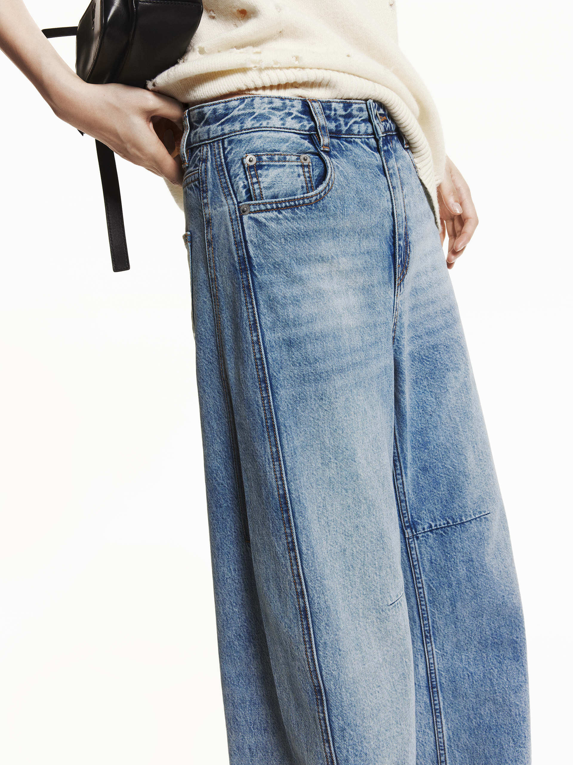 Step into timeless style with these jeans, featuring a bold, voluminous silhouette that nods to classic '90s fashion. The unique barrel-shaped cut flares subtly from the knee, creating a striking yet balanced look, while strategic darts and wrap-around seams enhance structure and movement.