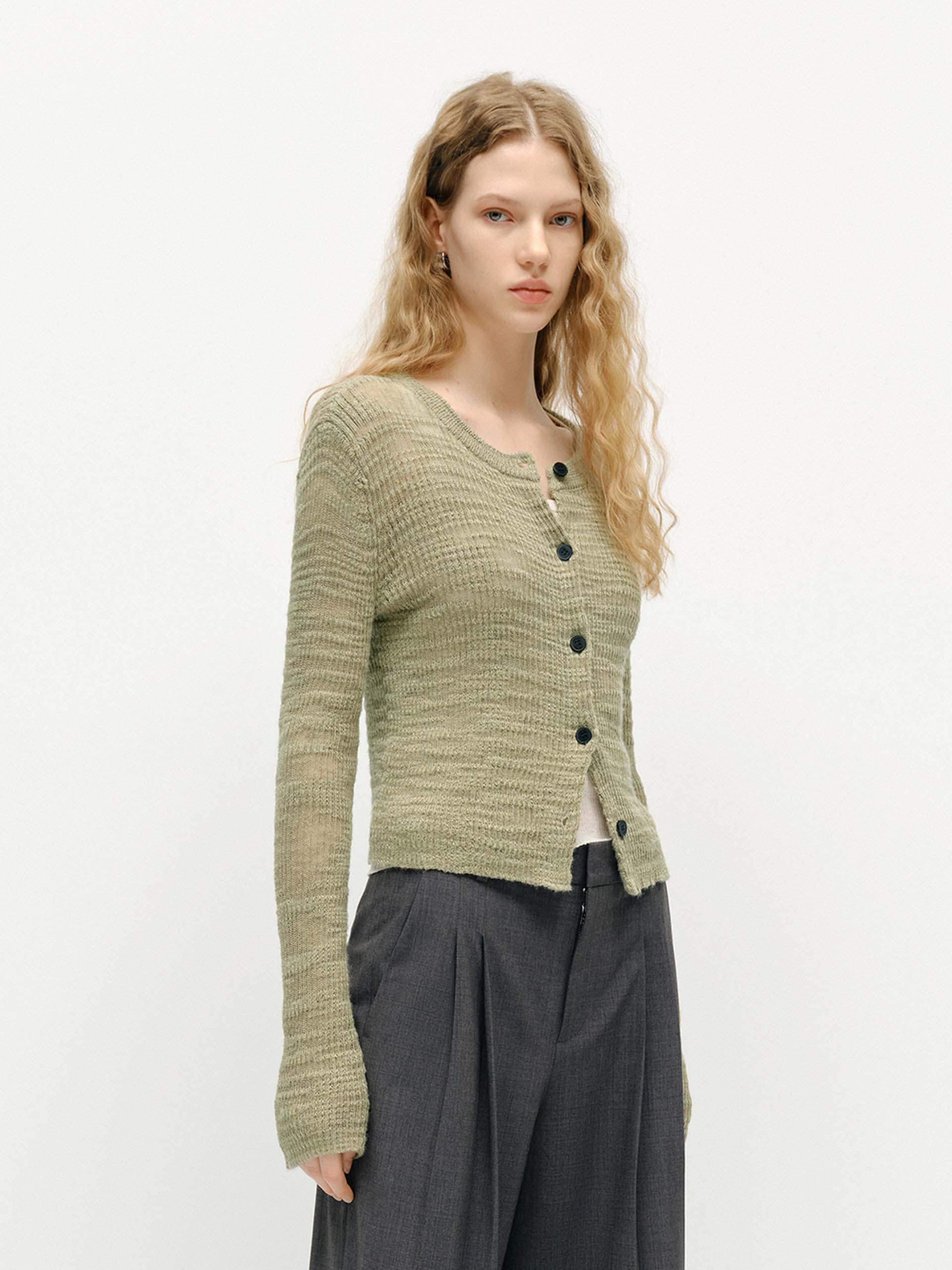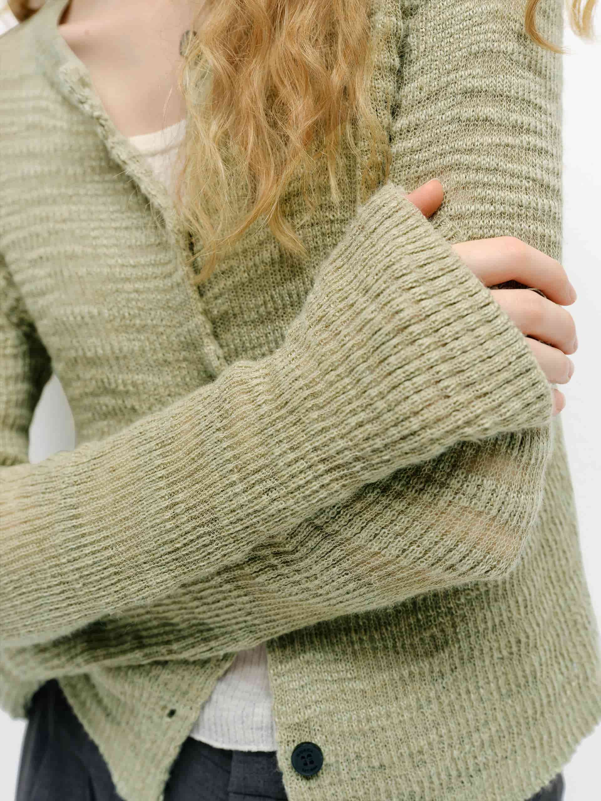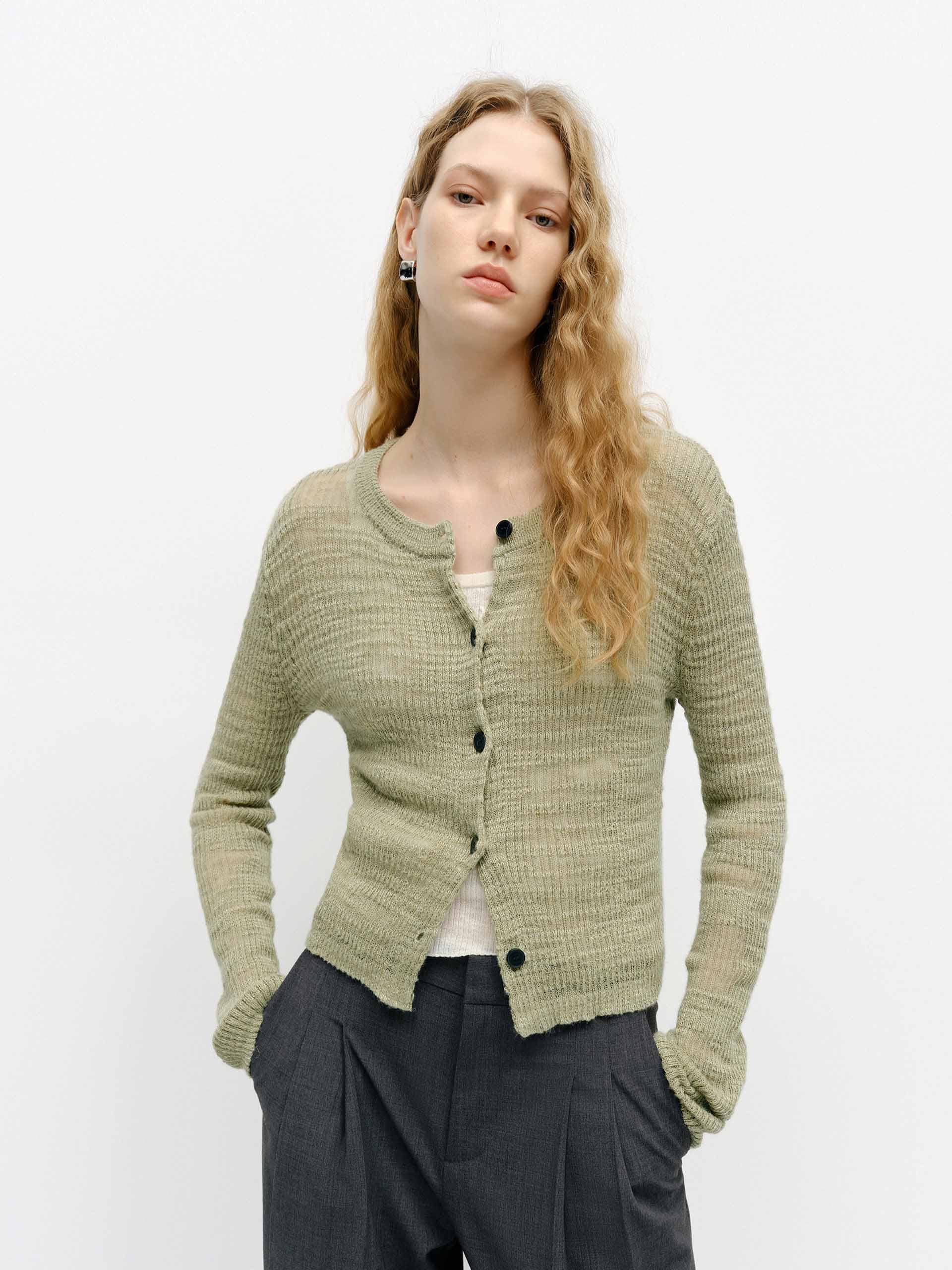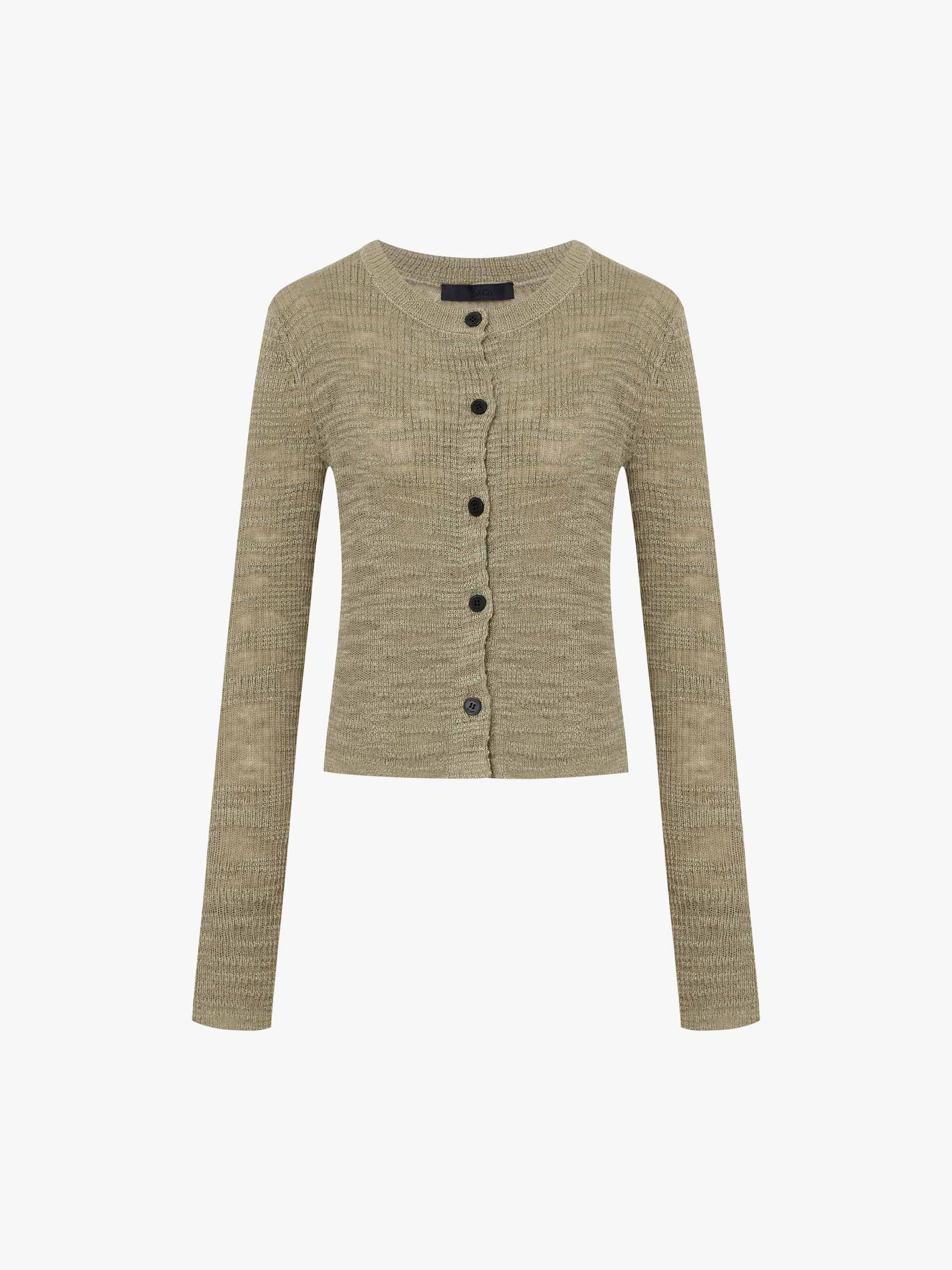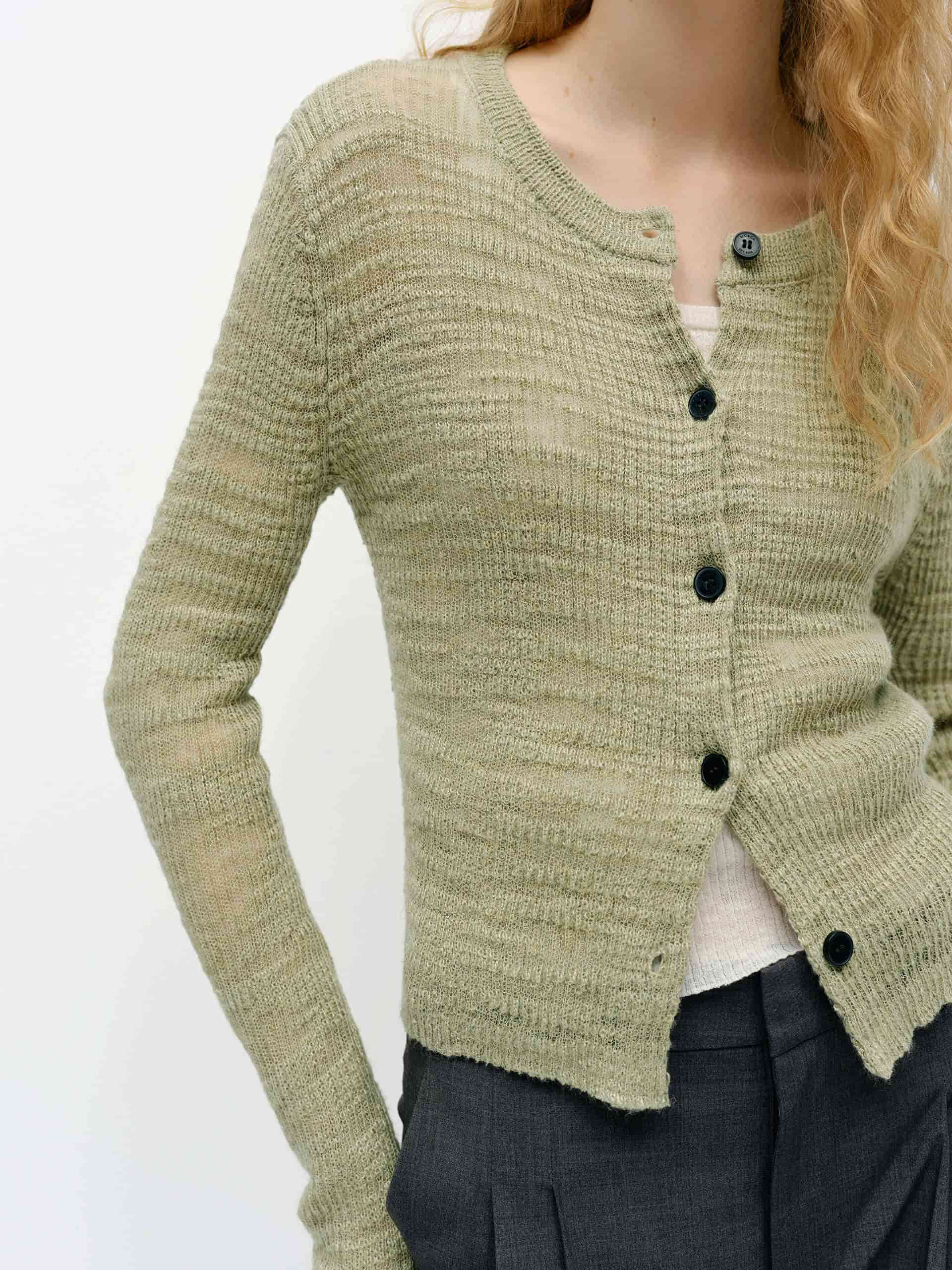 Perfect for spring styling, this cardigan is made from a soft and comfy linen blend for a gentle touch. Featuring a classic round neck and button closure, it’s a versatile piece that combines comfort and effortless elegance for the season.