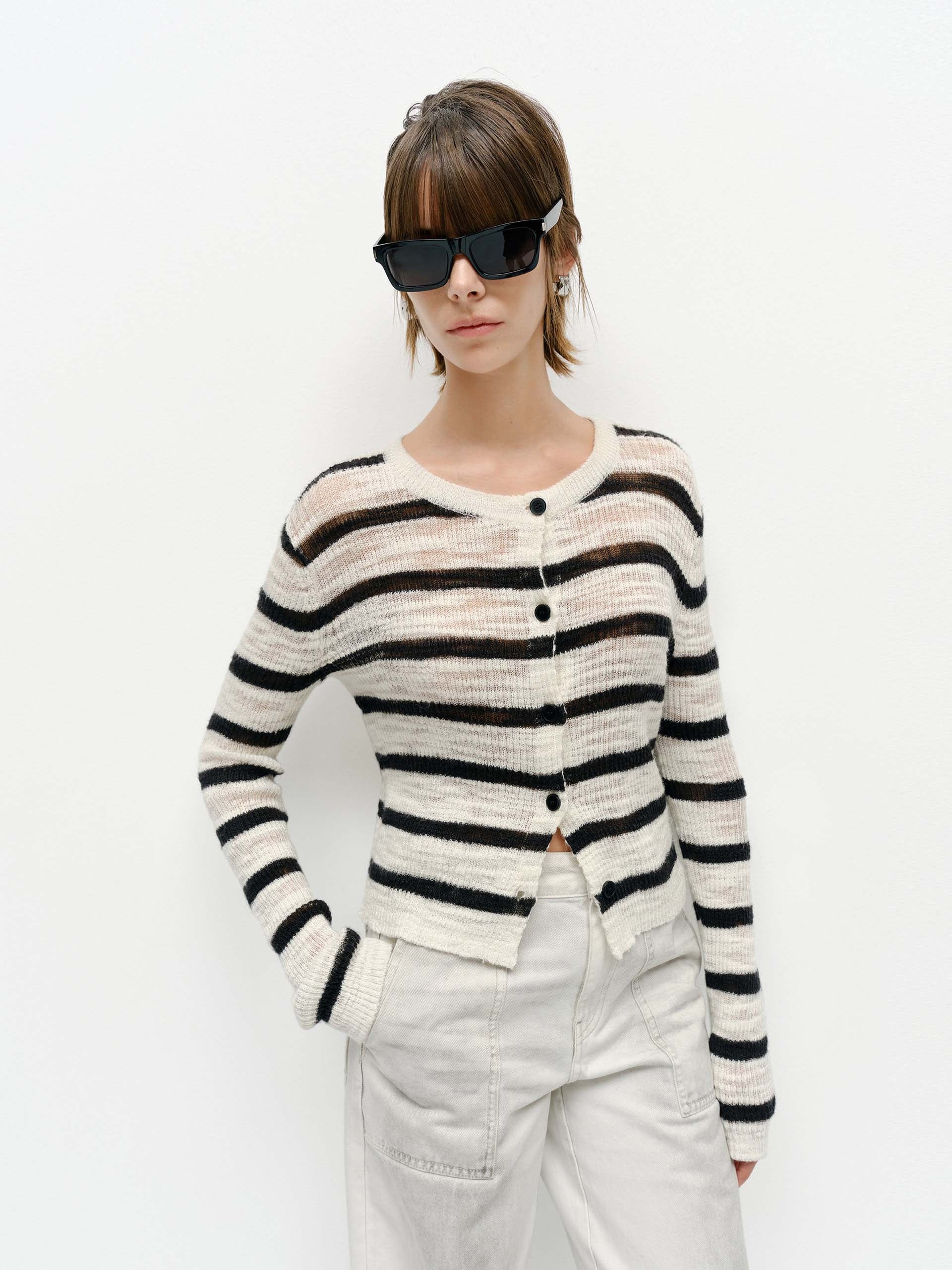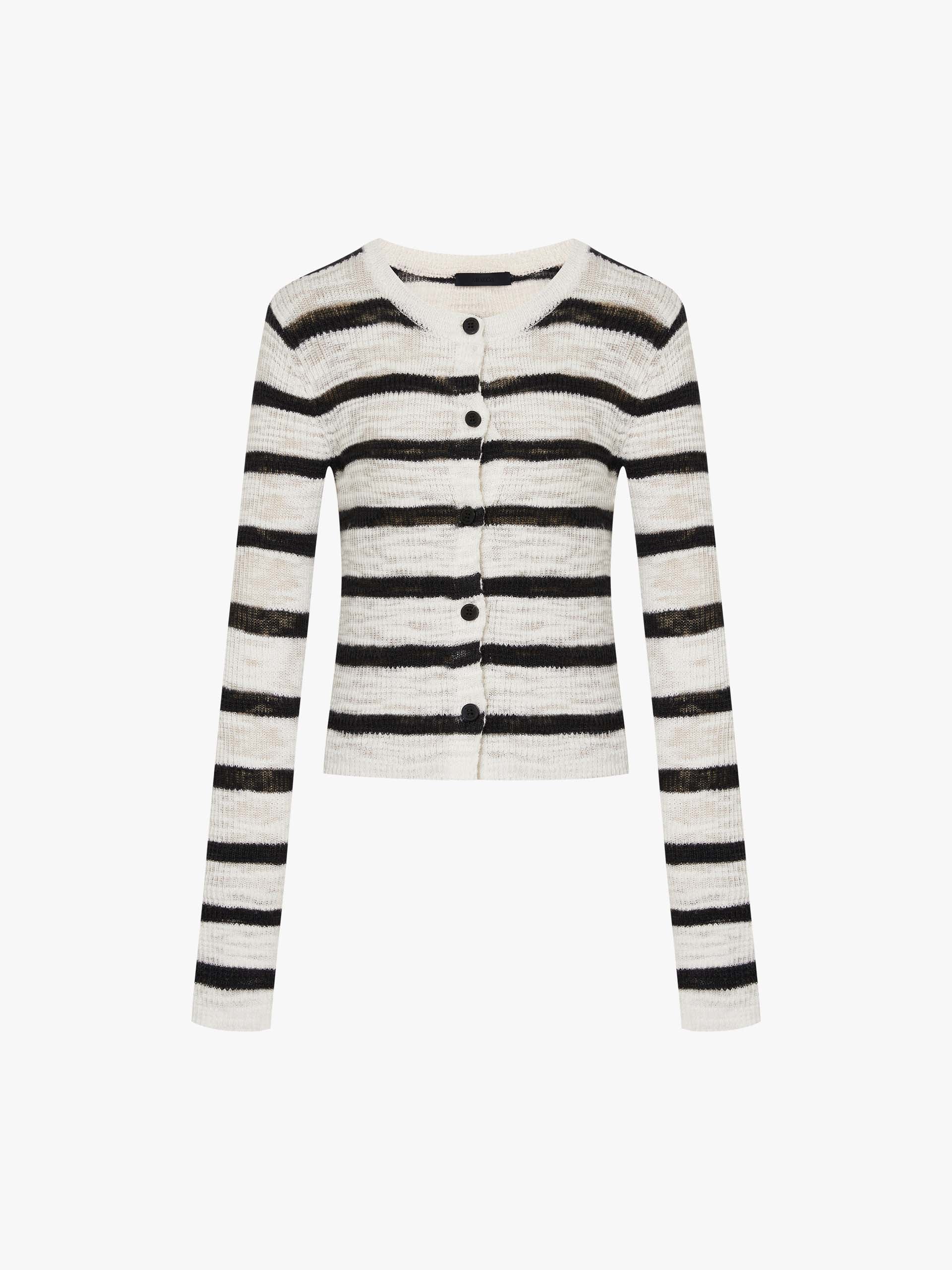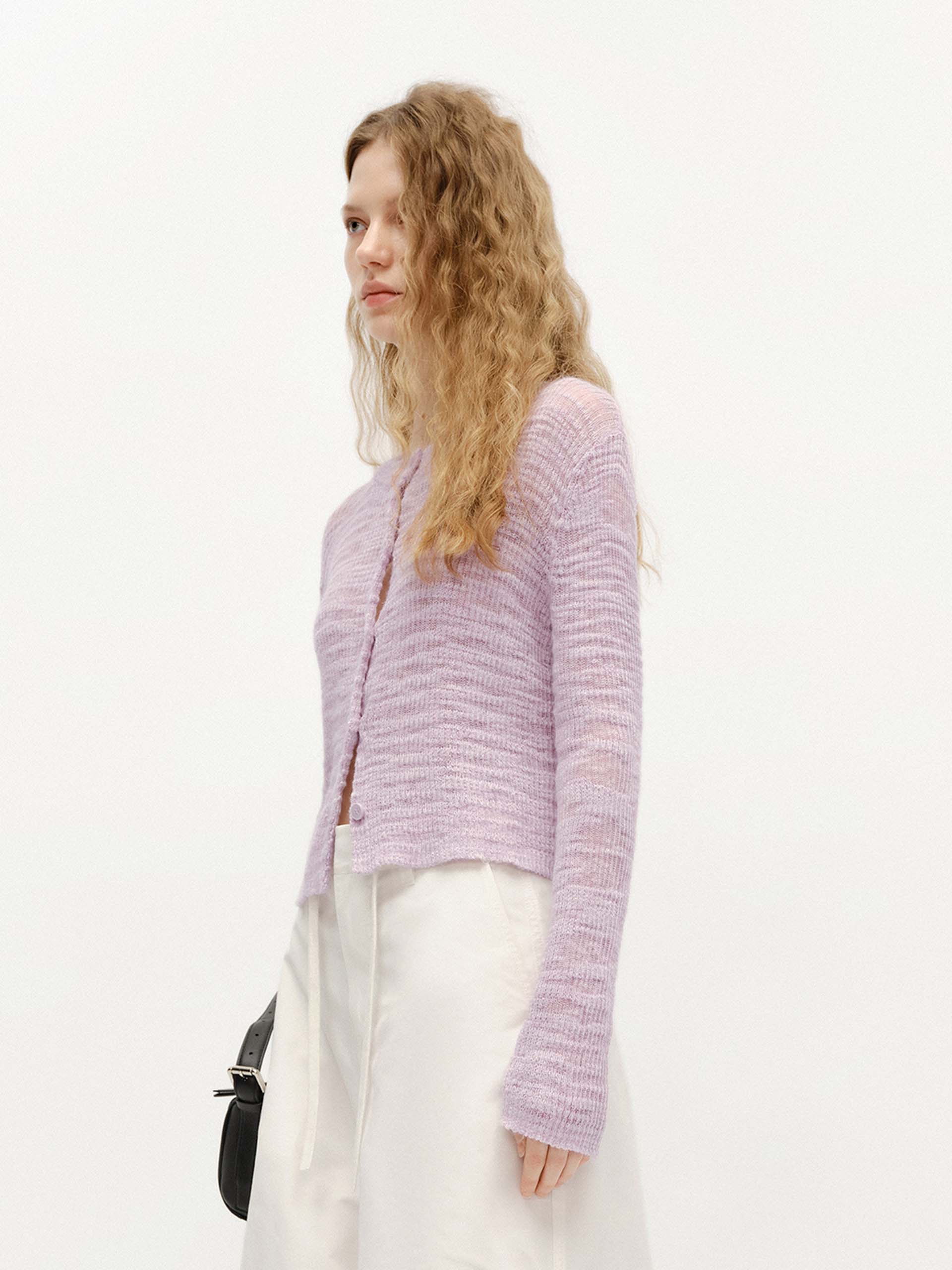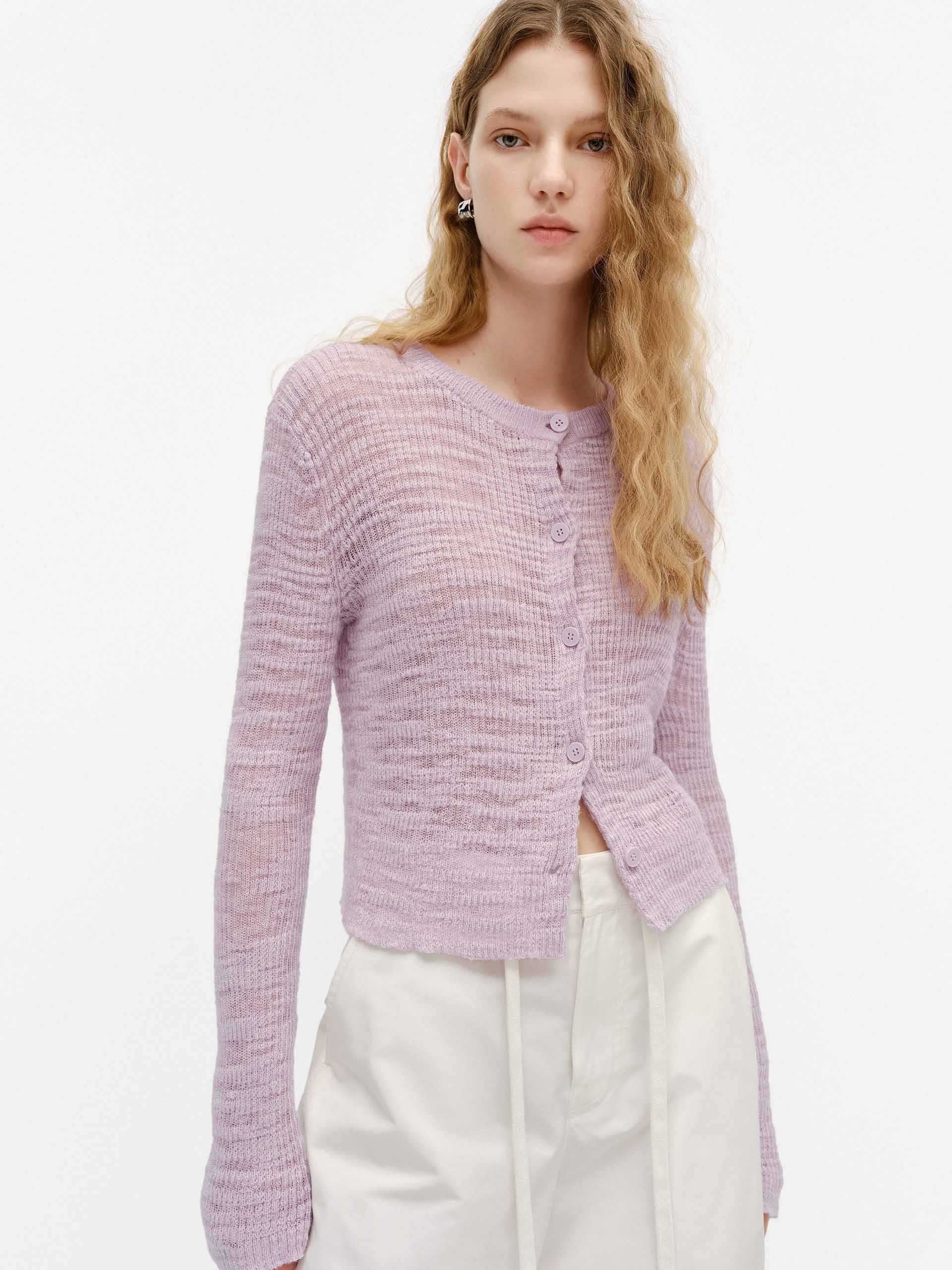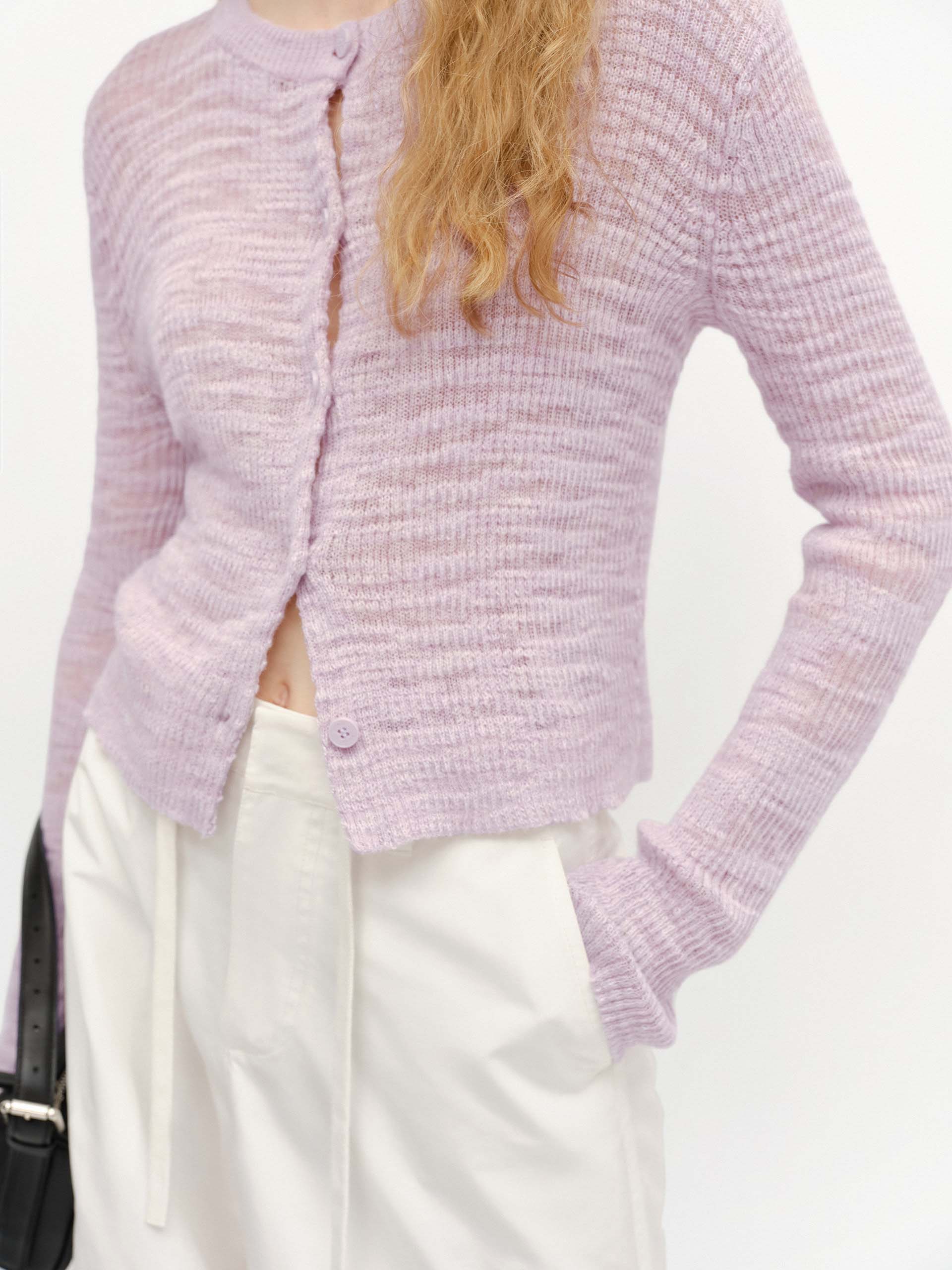 Perfect for spring styling, this cardigan is made from a soft and comfy linen blend for a gentle touch. Featuring a classic round neck and button closure, it’s a versatile piece that combines comfort and effortless elegance for the season.