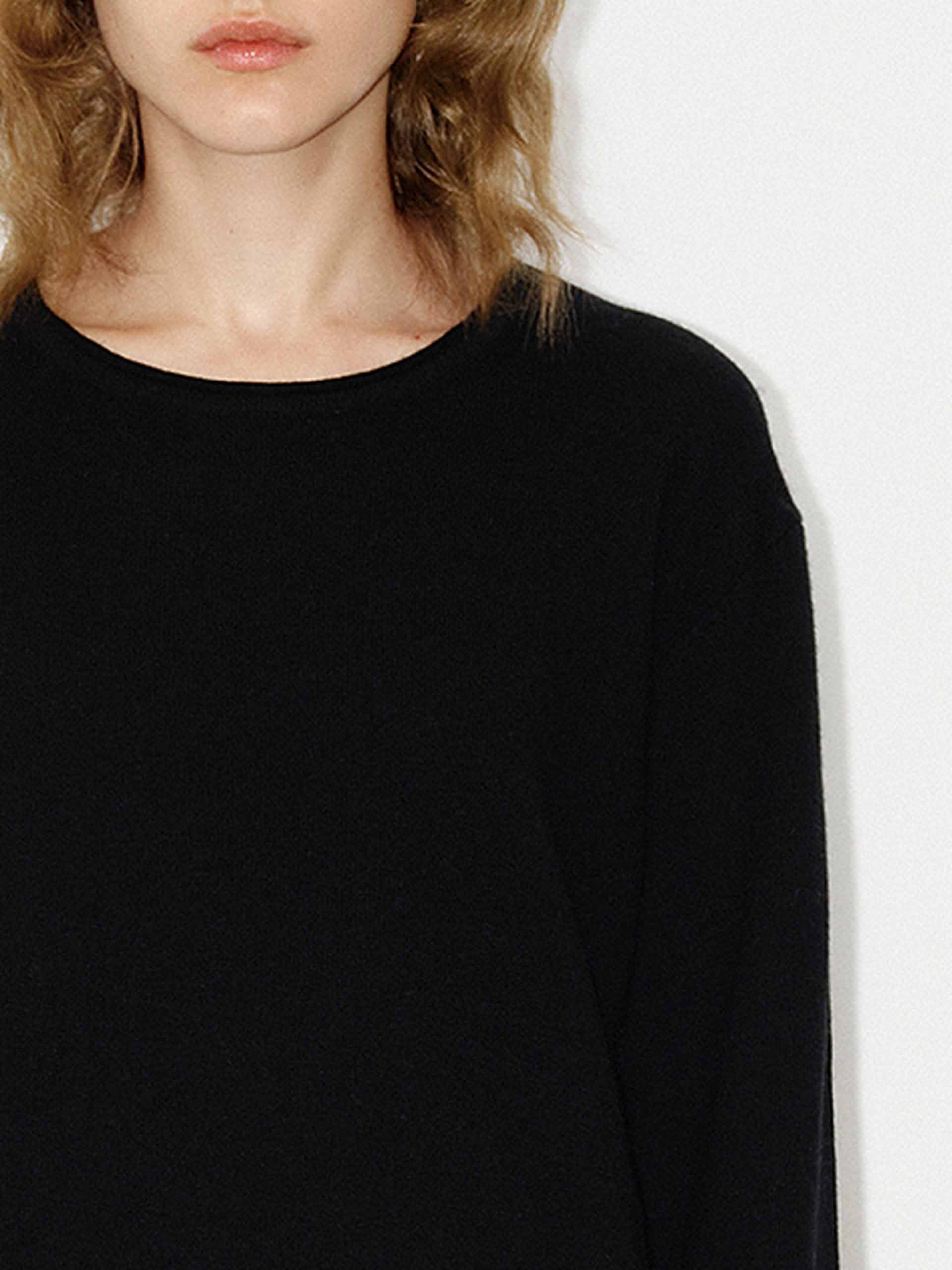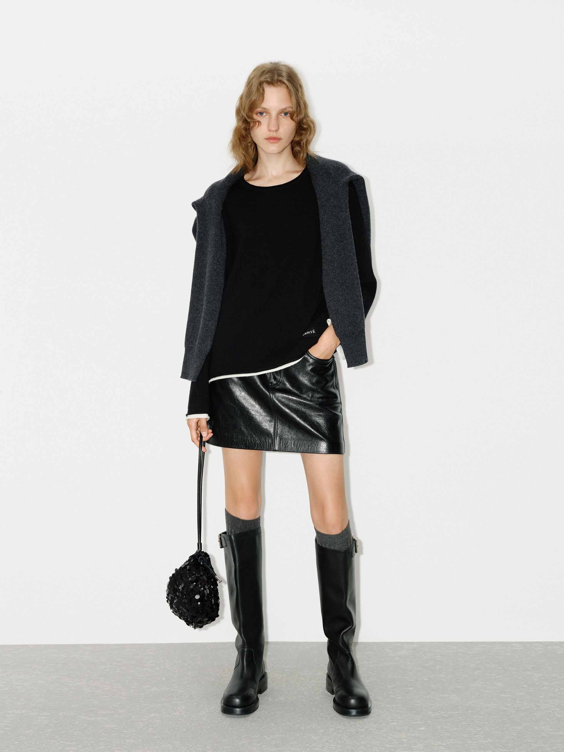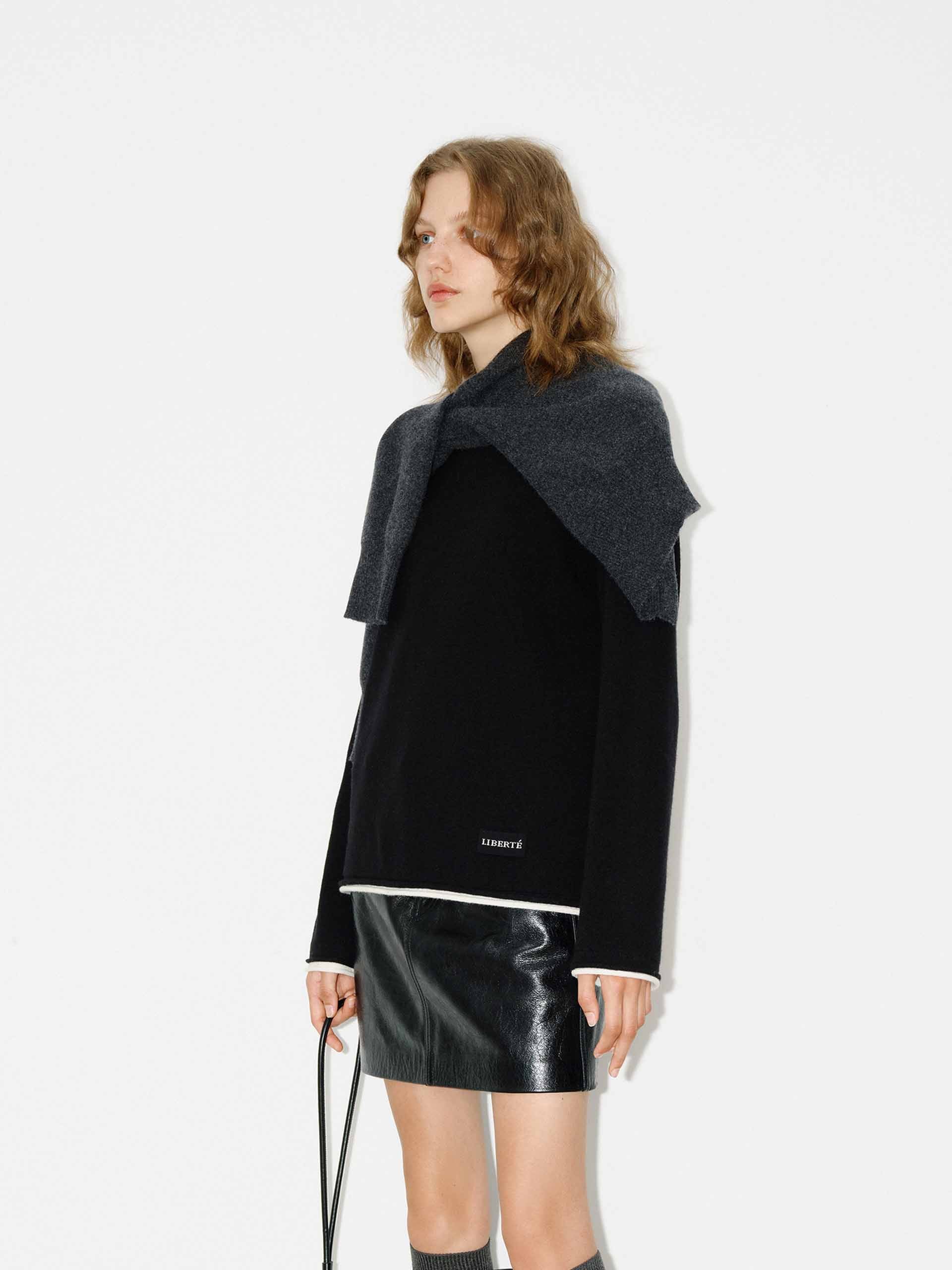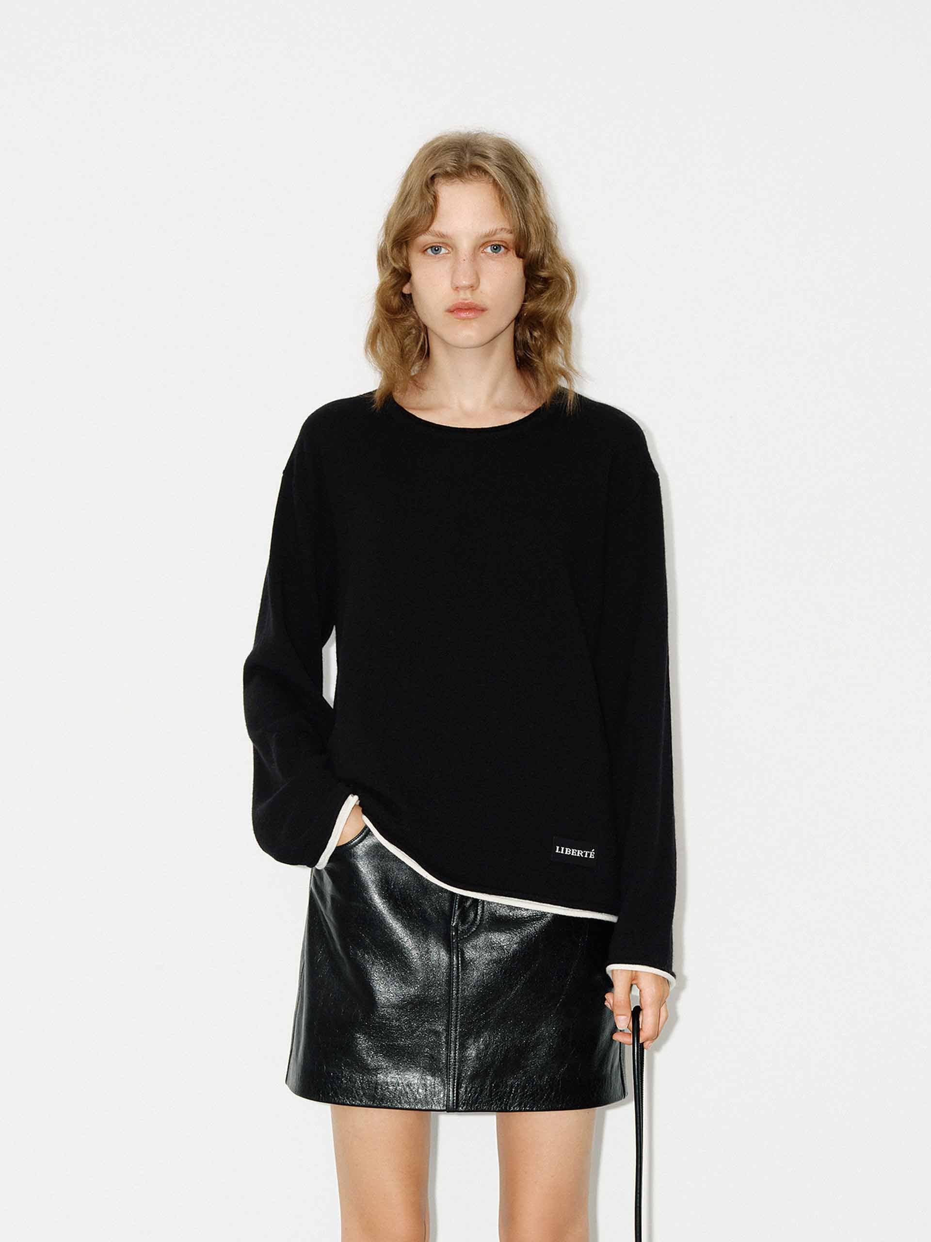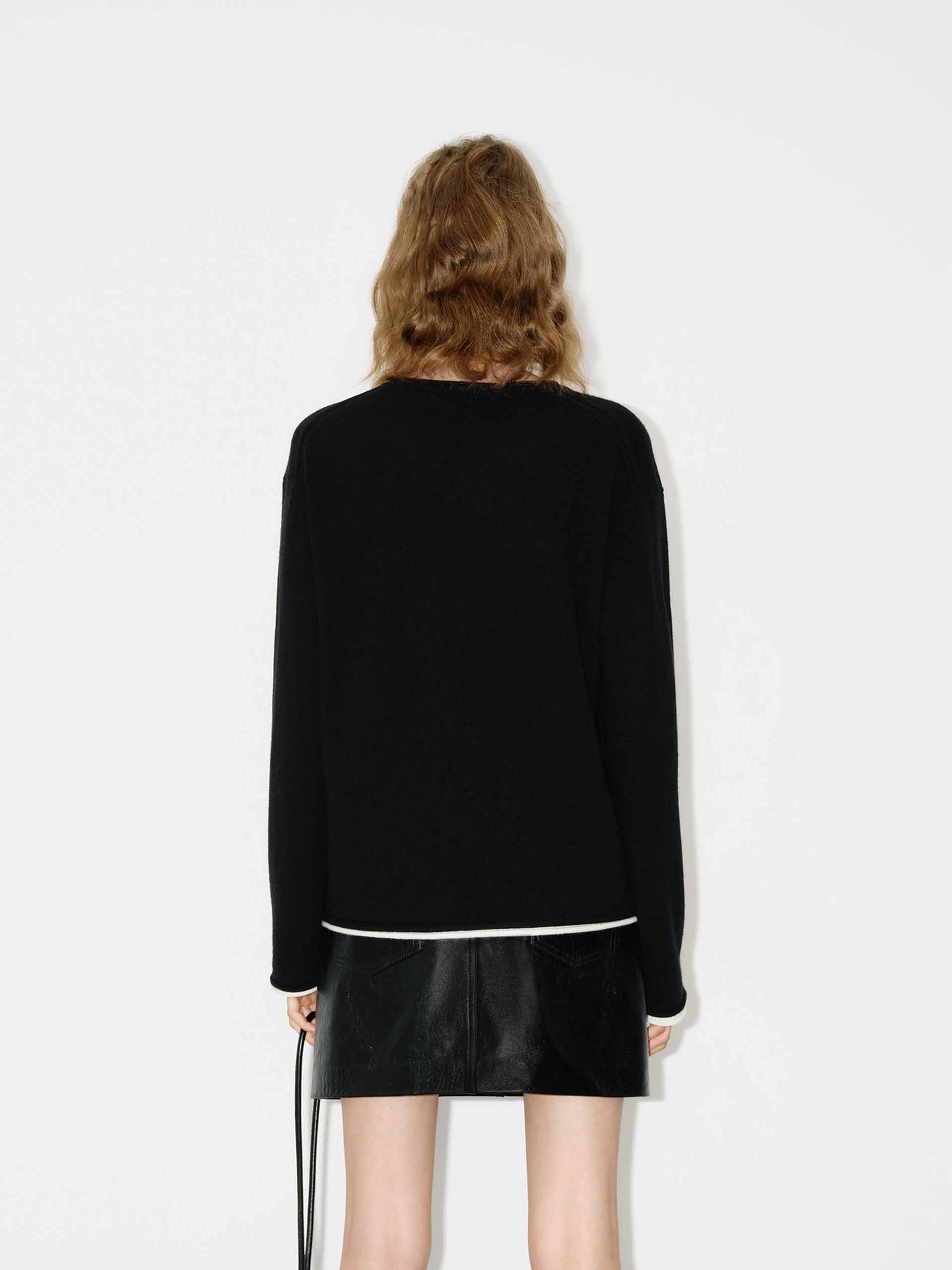 Expertly crafted from a blend of soft wool, cashmere, and acetate, this sweater offers a luxurious feel and comfortable fit. The contrast trim at the hem and cuffs adds a layered effect, making it both stylish and versatile. Perfect pair it with a leather skirt for cool, chic winter looks.