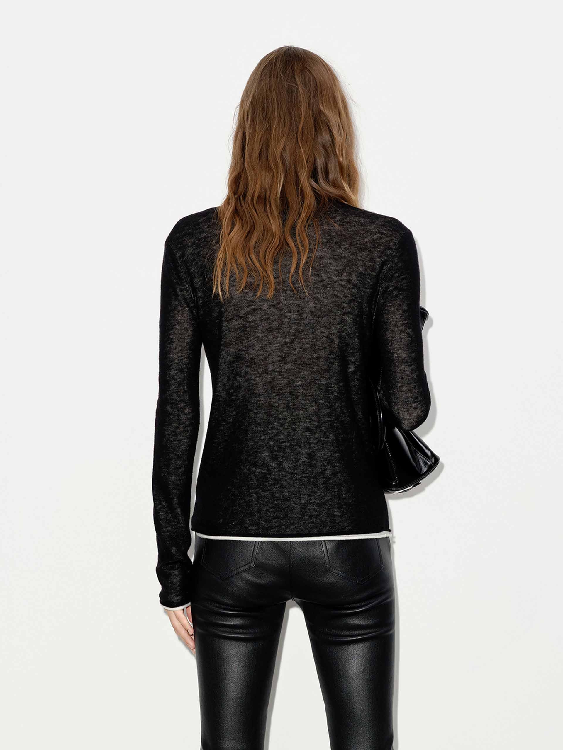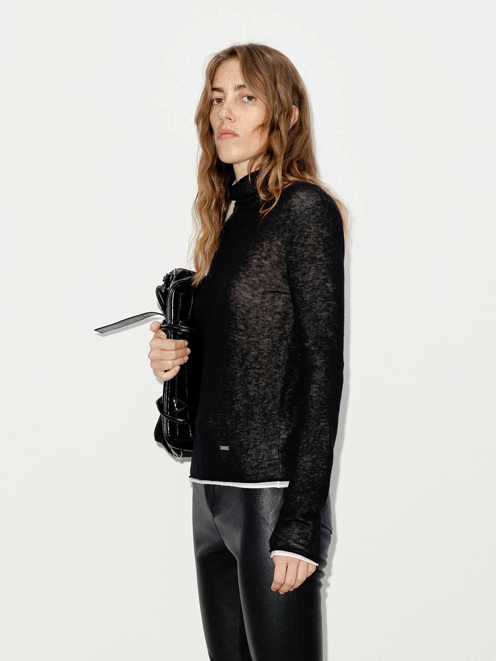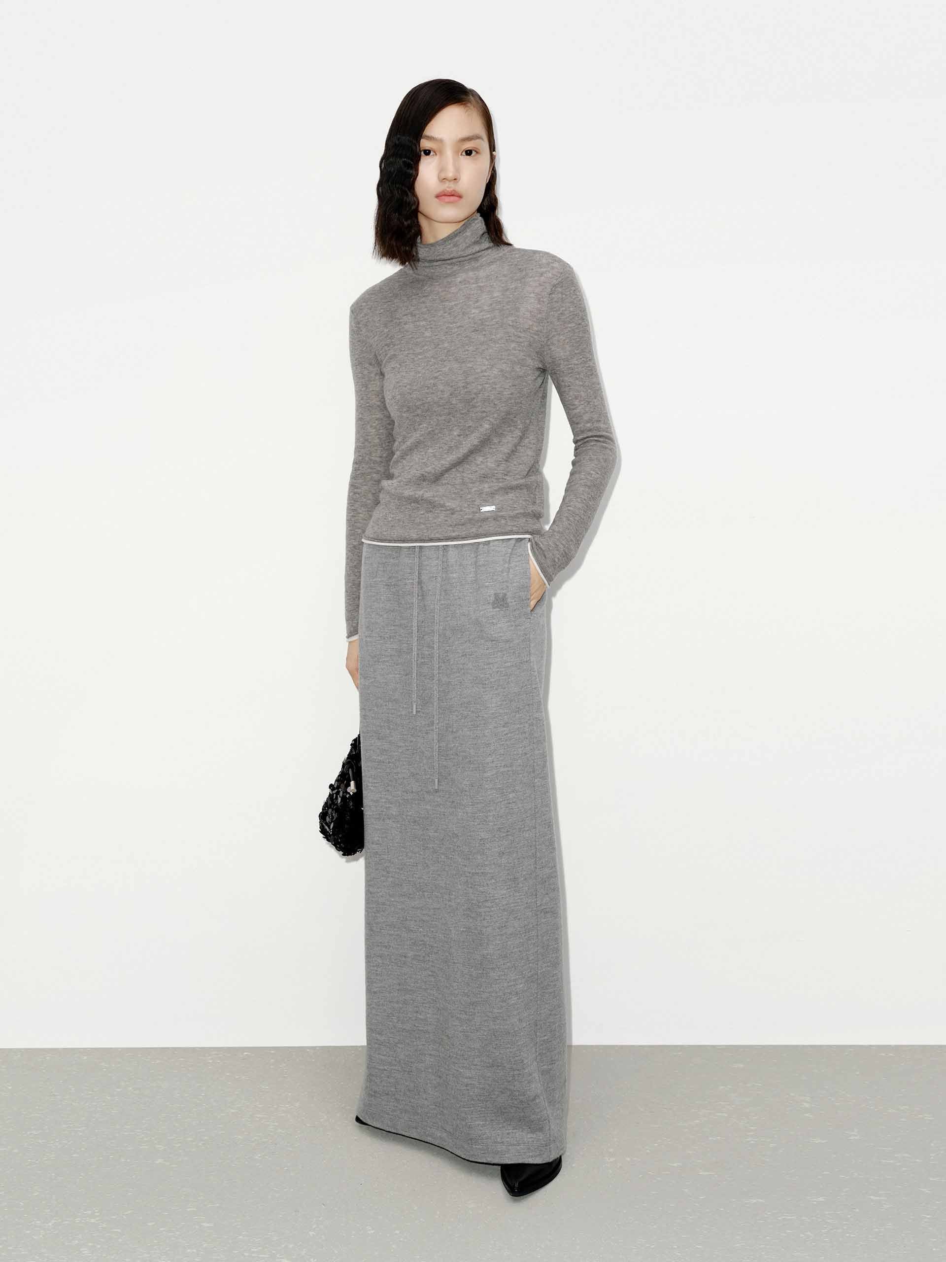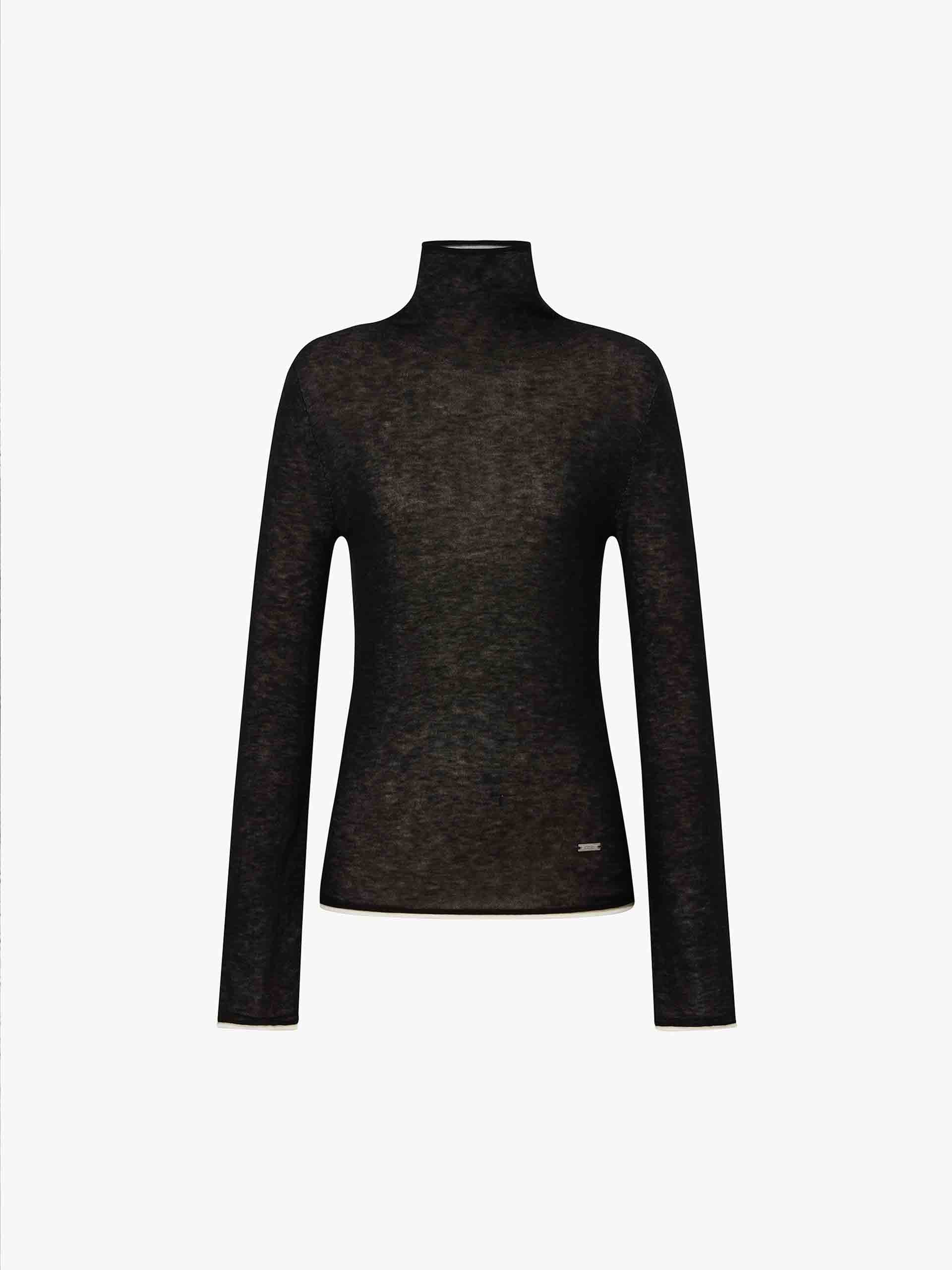 Crafted from pure wool, this knit top offers both style and functionality. The contrast trim at the hem and cuffs adds a touch of sophistication to the turtleneck design. With its slim fit, this top is the ideal layering piece for transitioning between seasons.