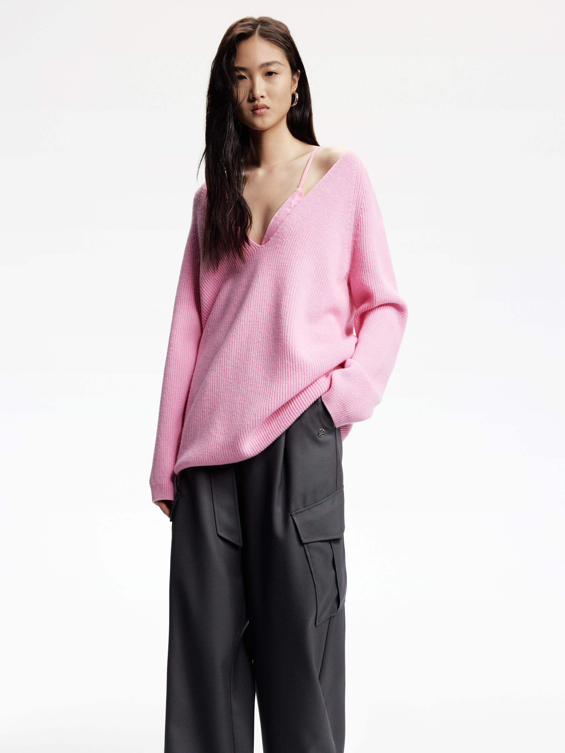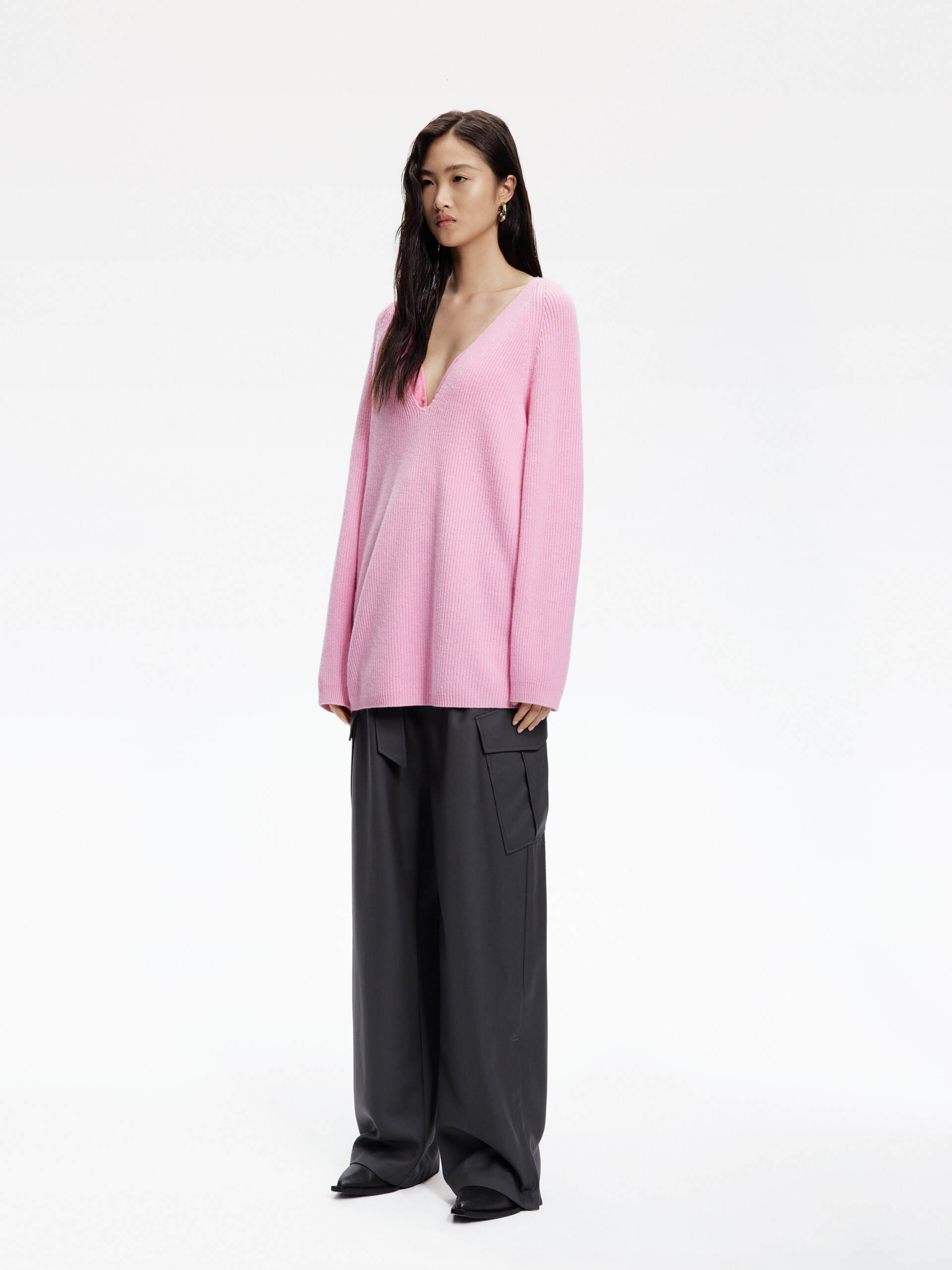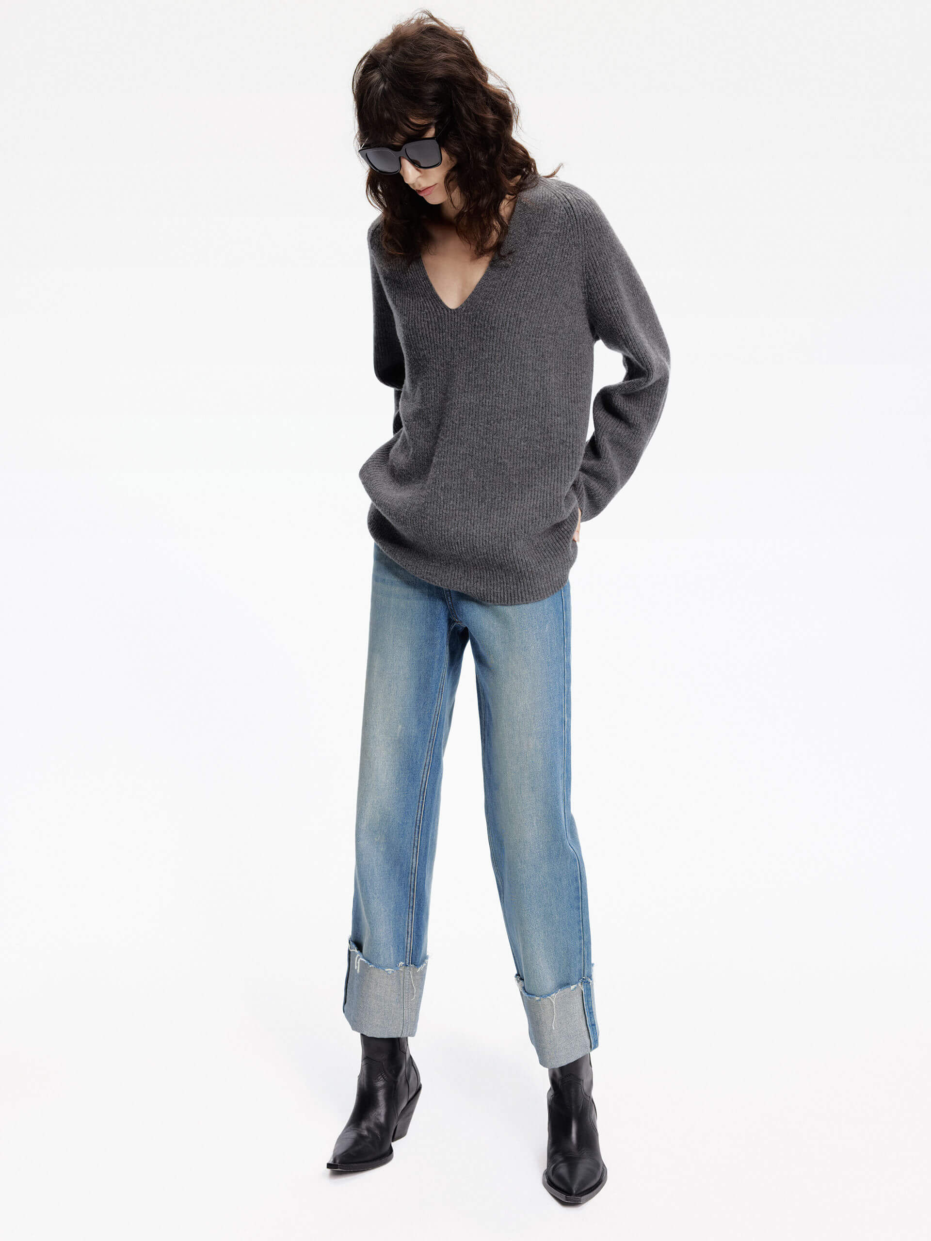 Indulge in warmth and comfort with our sweater. Crafted from luxurious Merino wool, this oversized silhouette exudes effortless style. The deep V-neck and dropped shoulders pair perfectly with a fitted knit top for a chic look.