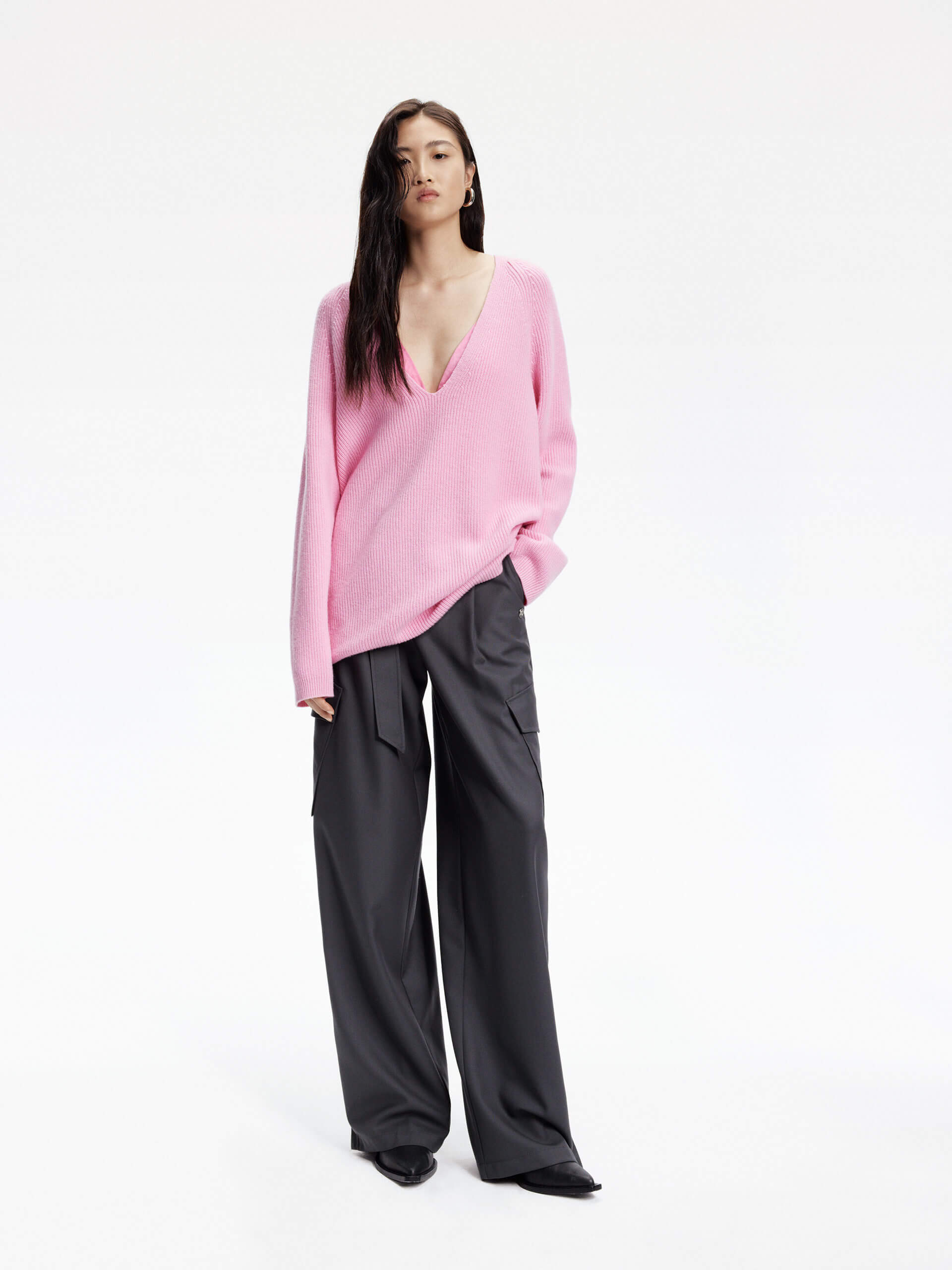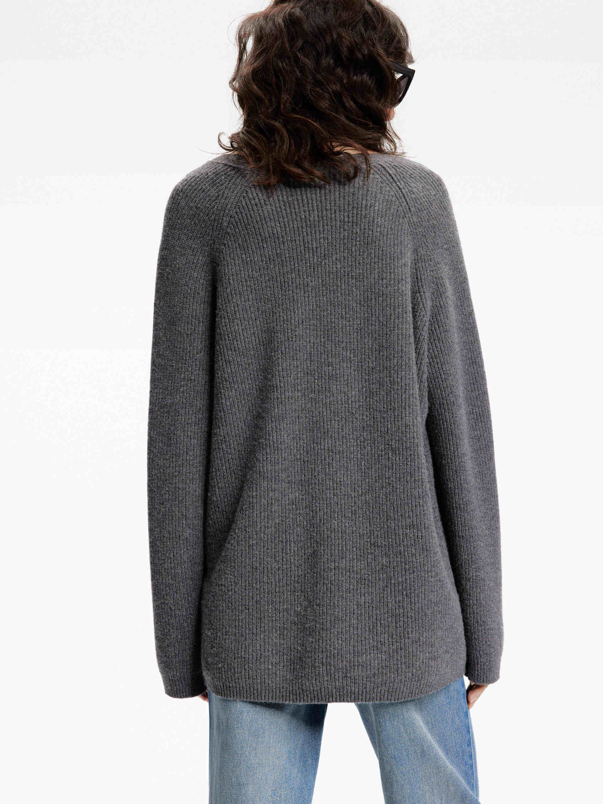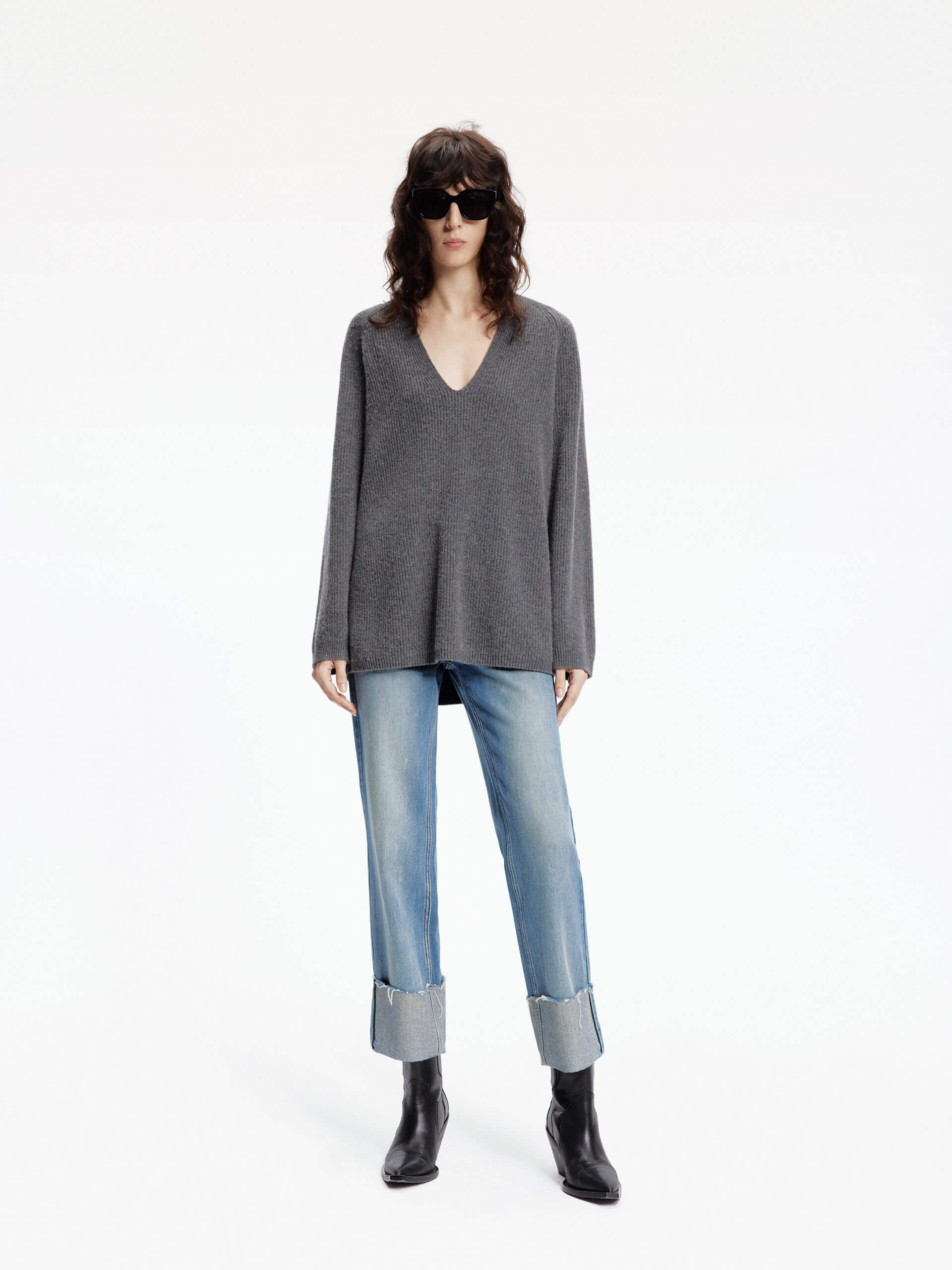 Indulge in warmth and comfort with our sweater. Crafted from luxurious Merino wool, this oversized silhouette exudes effortless style. The deep V-neck and dropped shoulders pair perfectly with a fitted knit top for a chic look.