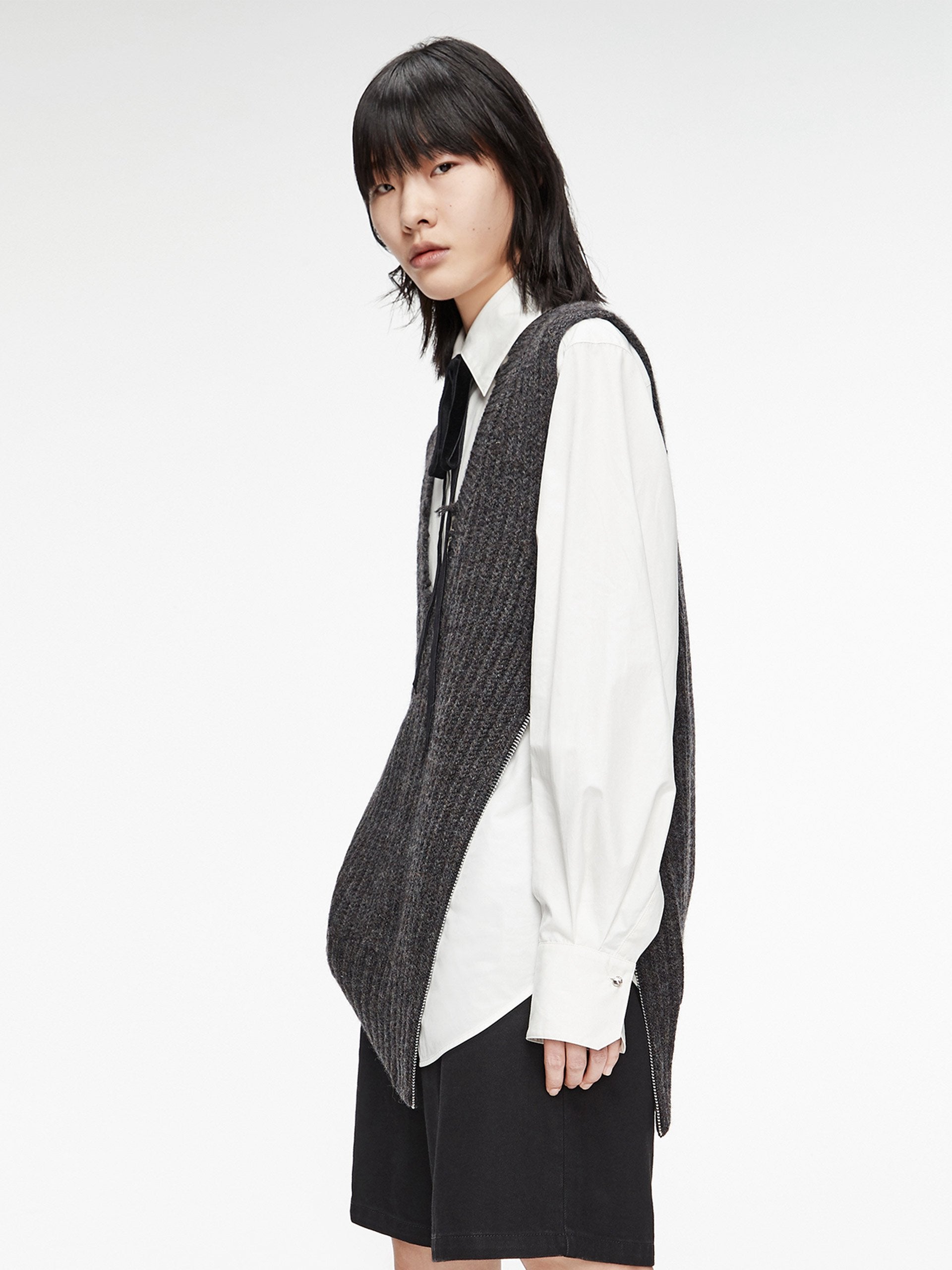 Frayed V-Neck Wool Knit Vest