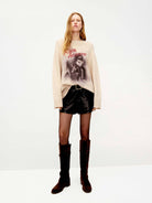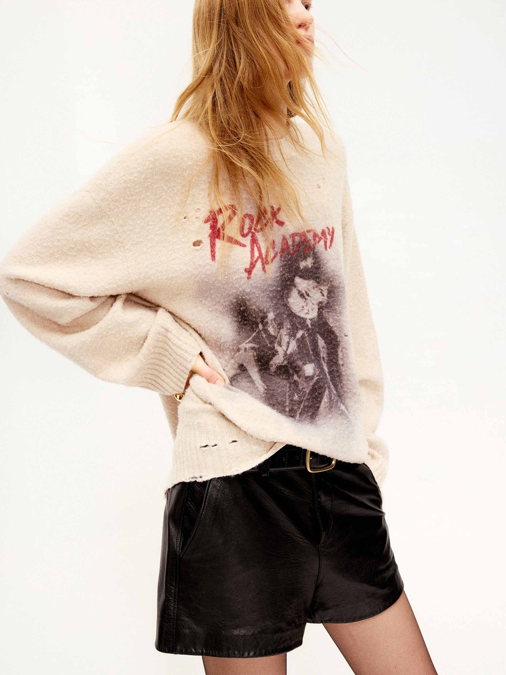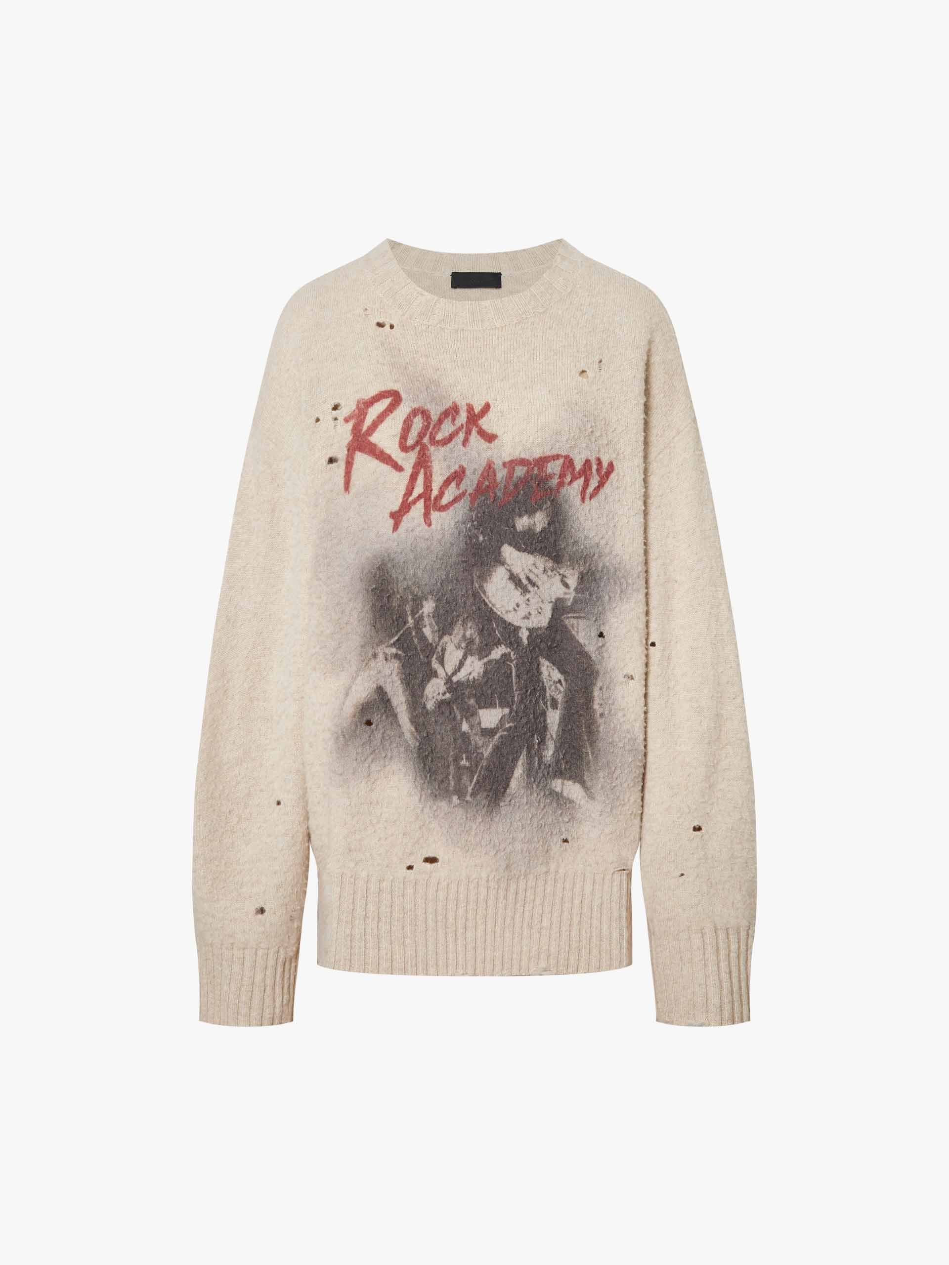 Elevate your knitwear rotation with this masterfully crafted piece. Blending the exceptional warmth of premium wool with the unparalleled softness of cashmere, this sweater offers a luxurious hand-feel in a modern loose fit. The intentionally pilled texture and ripped design create a sophisticated "distressed" aesthetic, while the bold front print injects a contemporary energy.