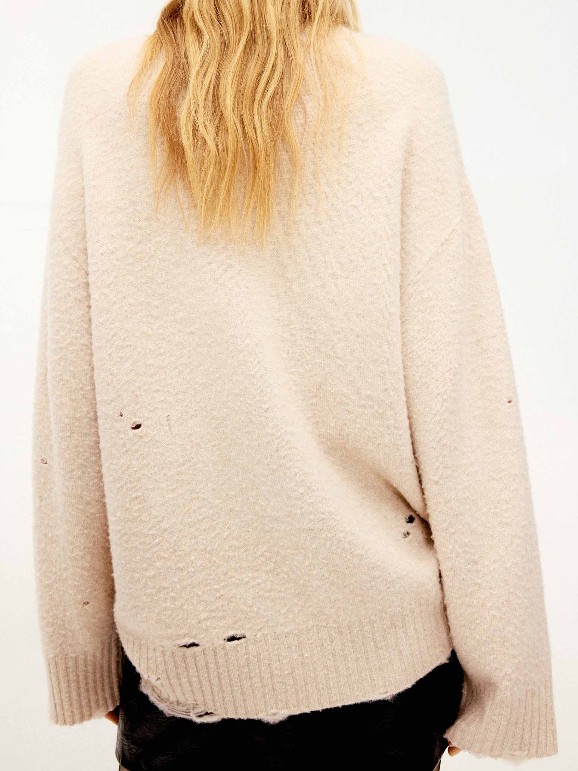 - Pilled texture and ripped design