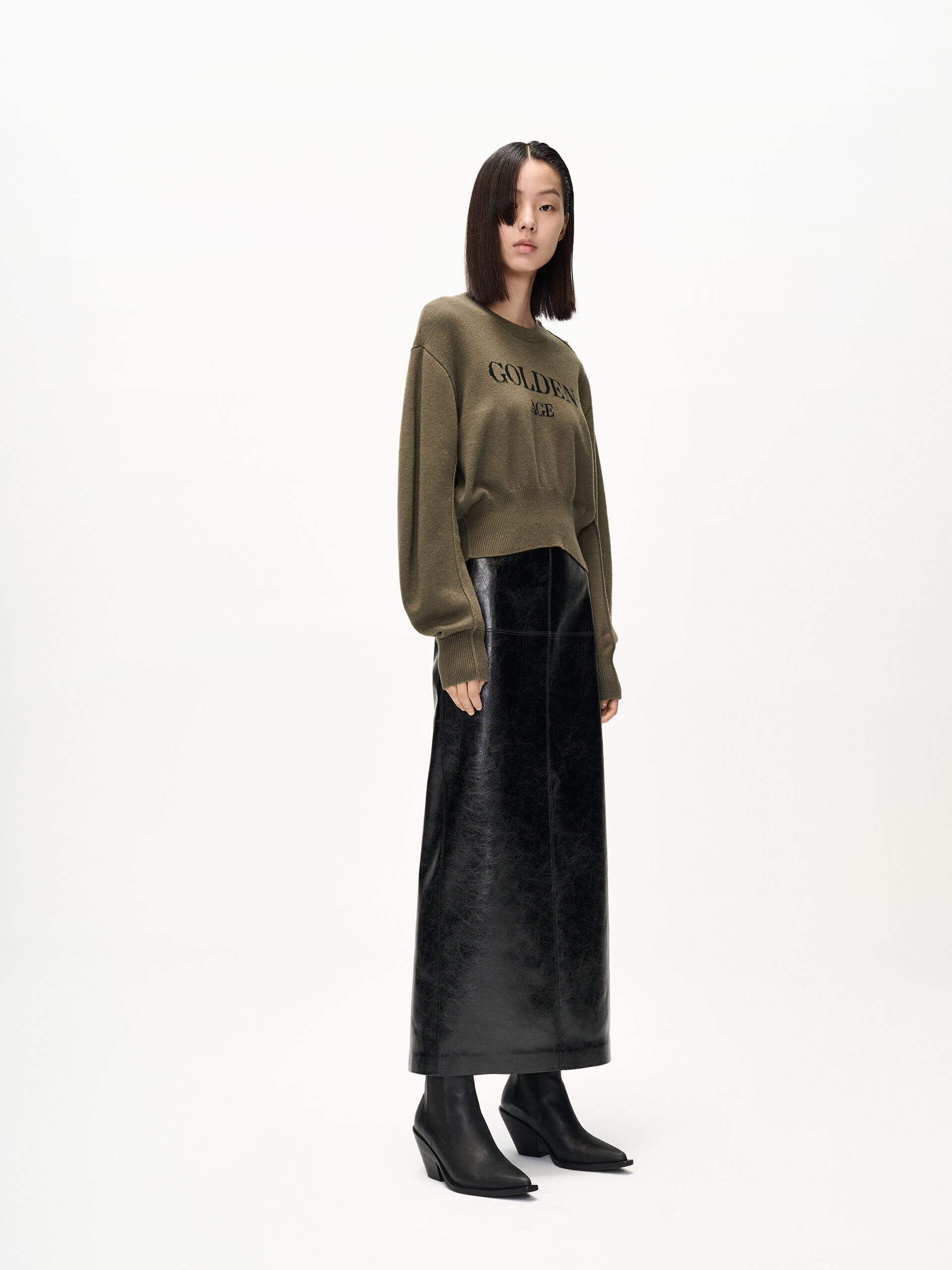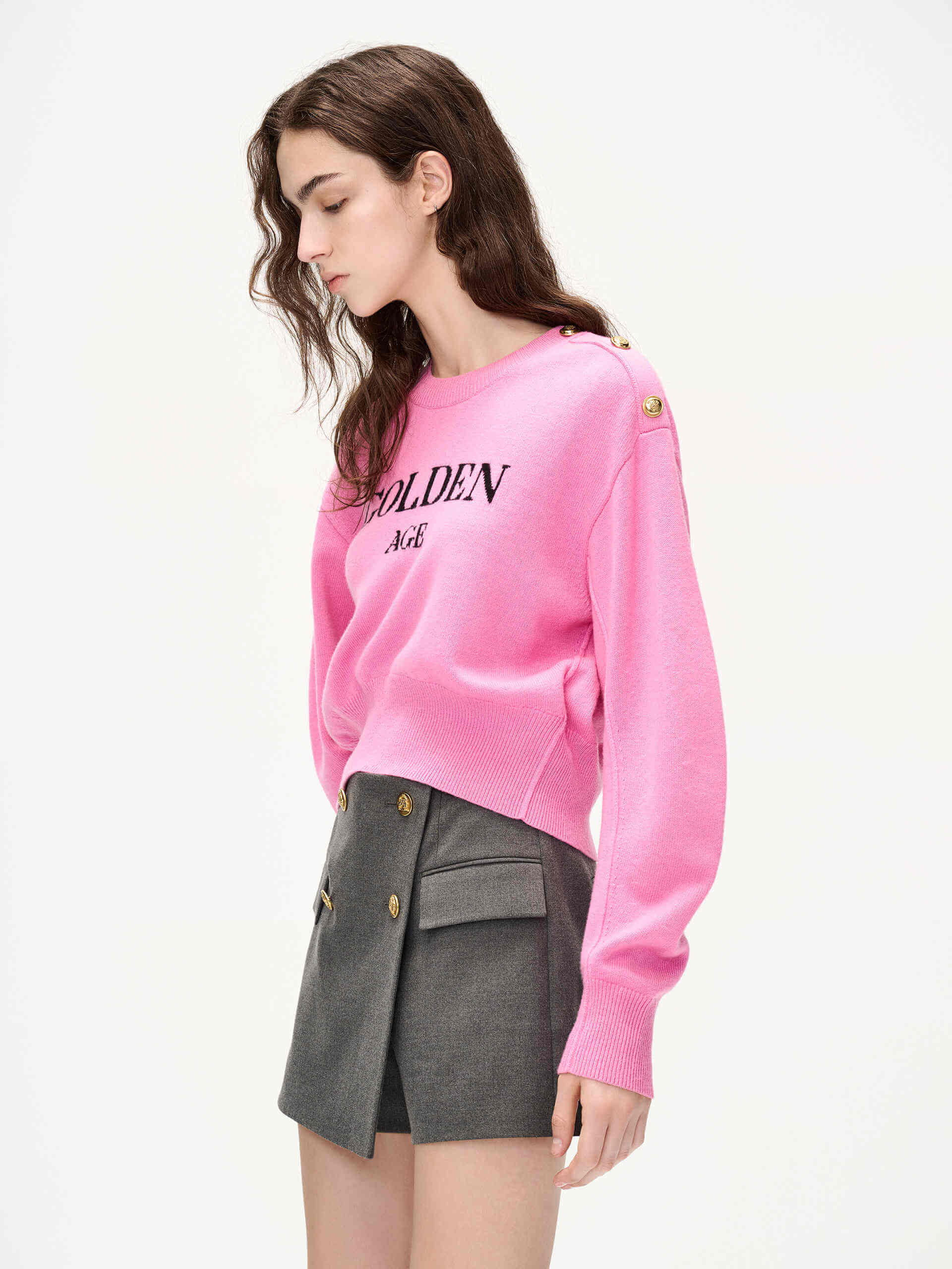 Made from fine Merino wool, this sweater features a bold letter print and ribbed trim for a flattering fit. Create an effortlessly cool look when you pair it with your favorite shorts or trousers.