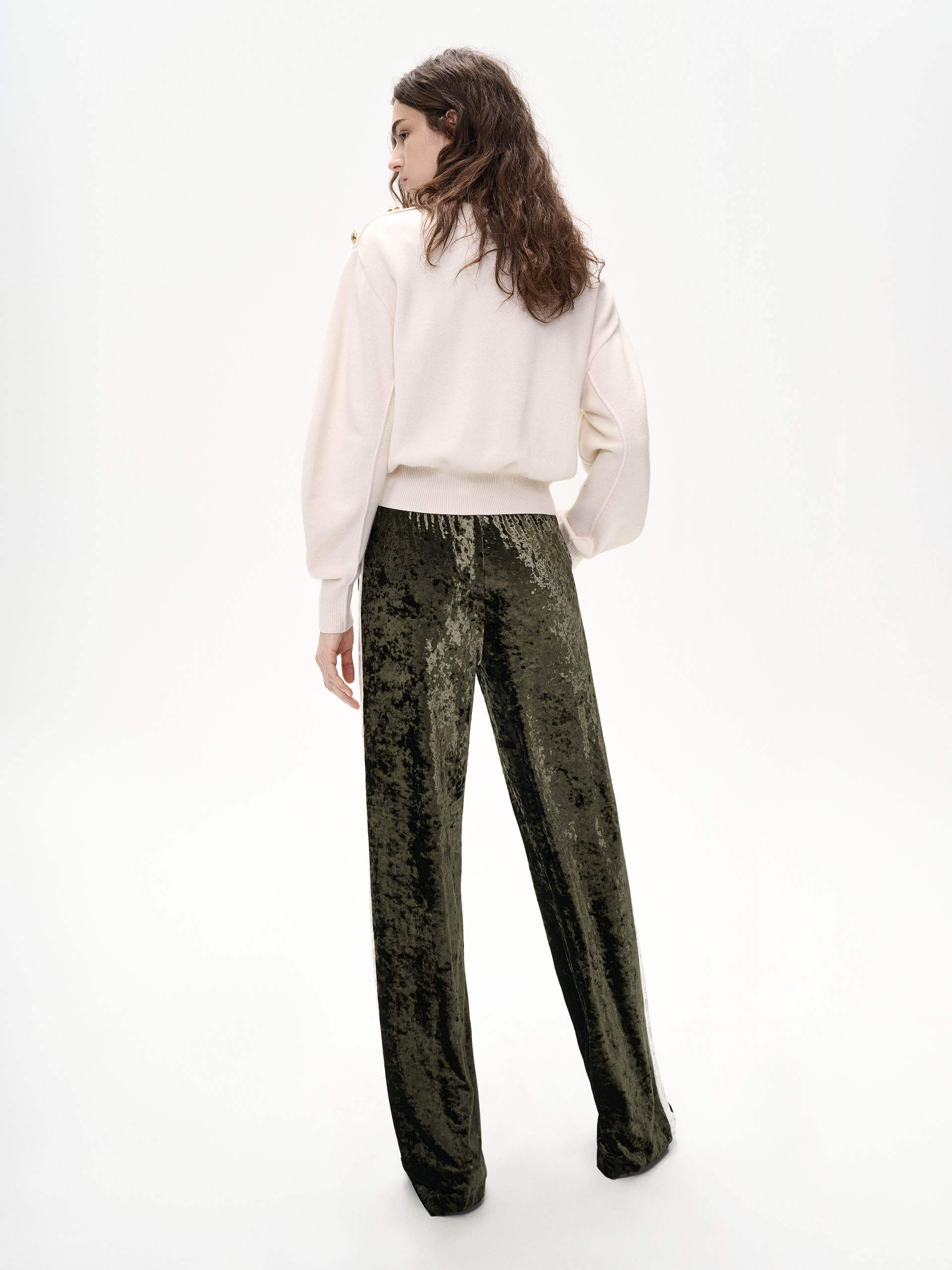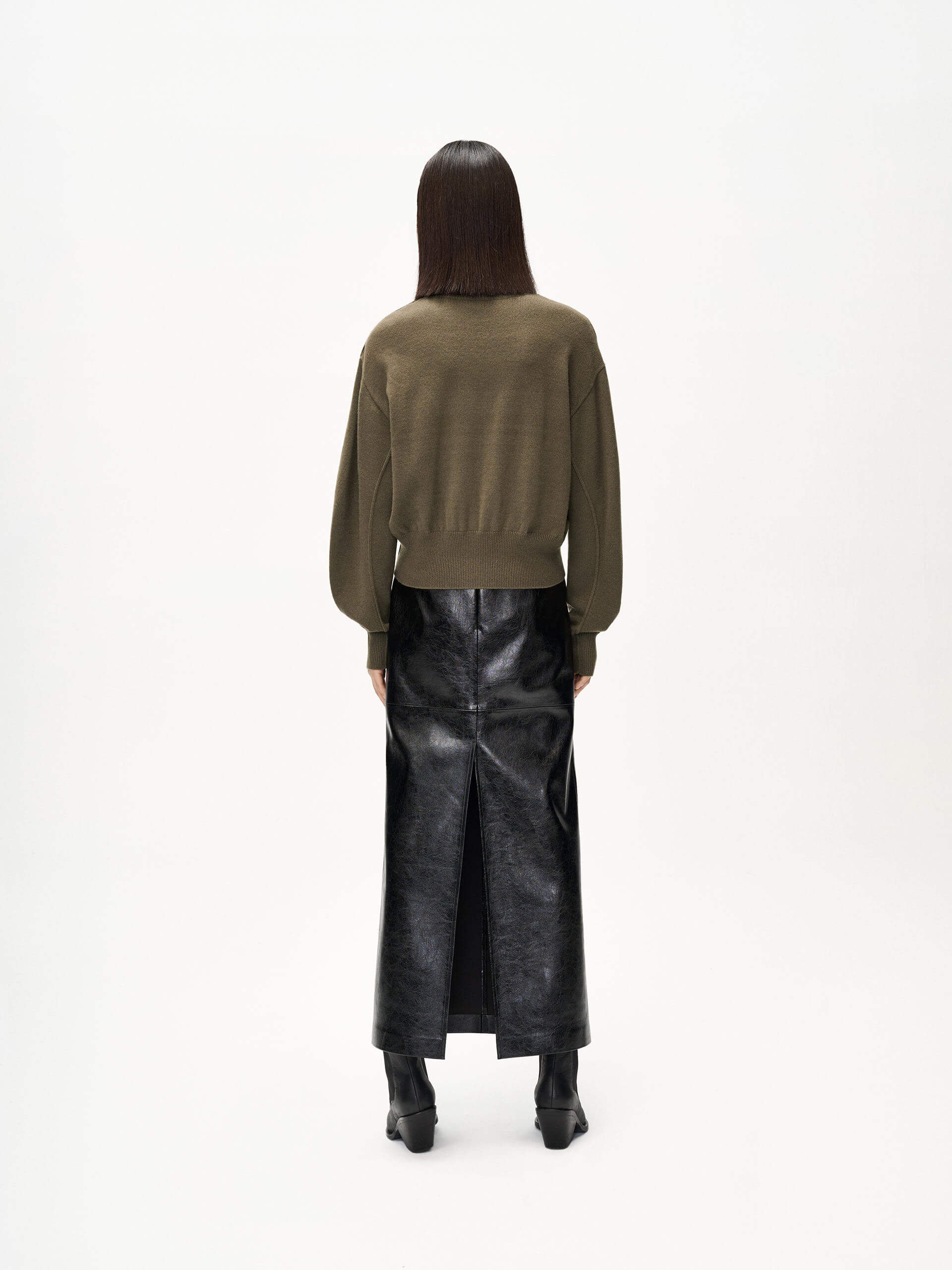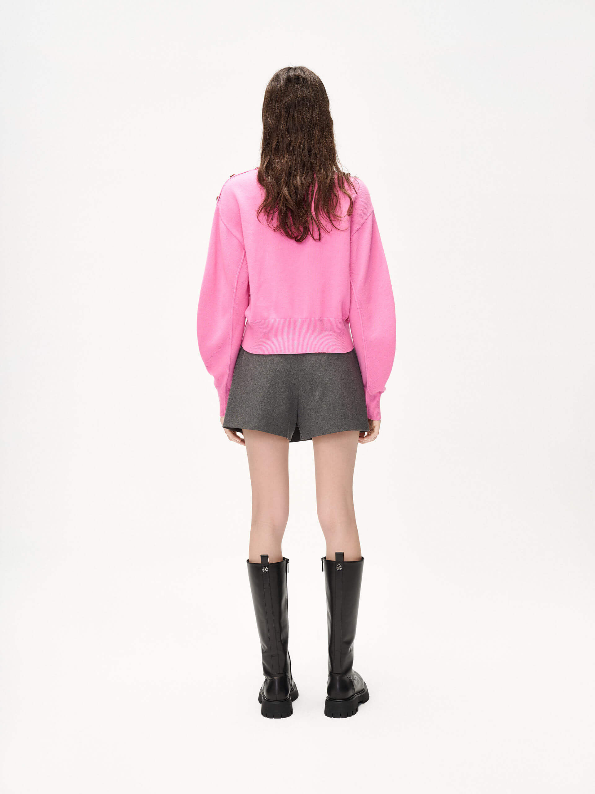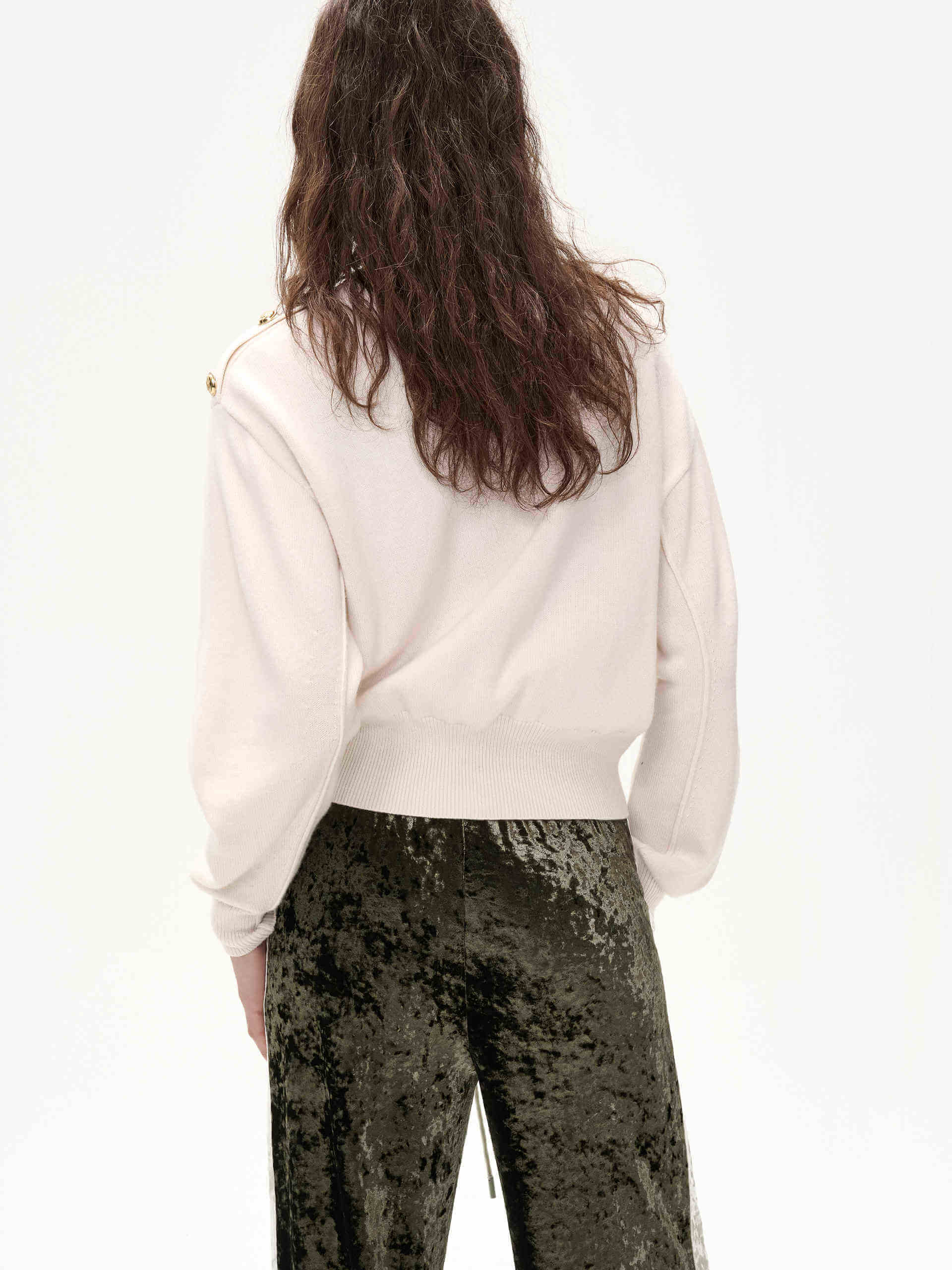 - Rounded sleeves, ribbed trims, and nipped-in waist