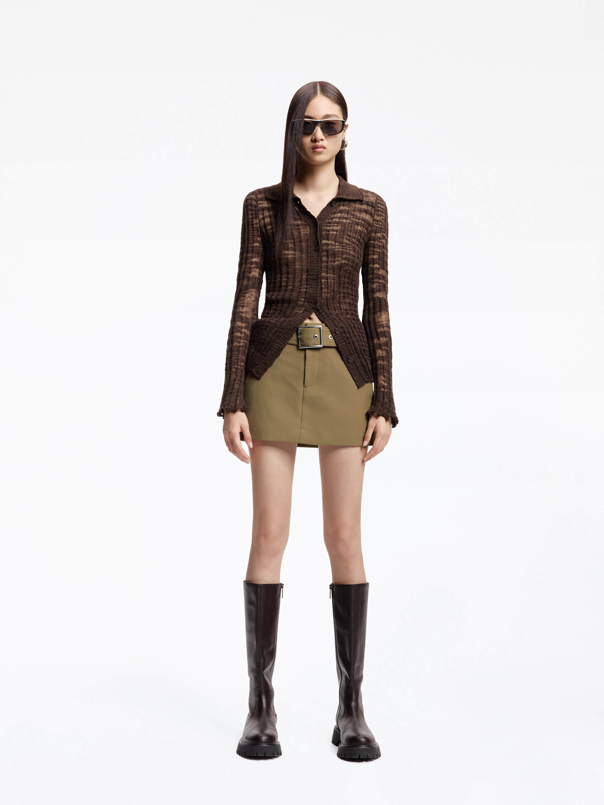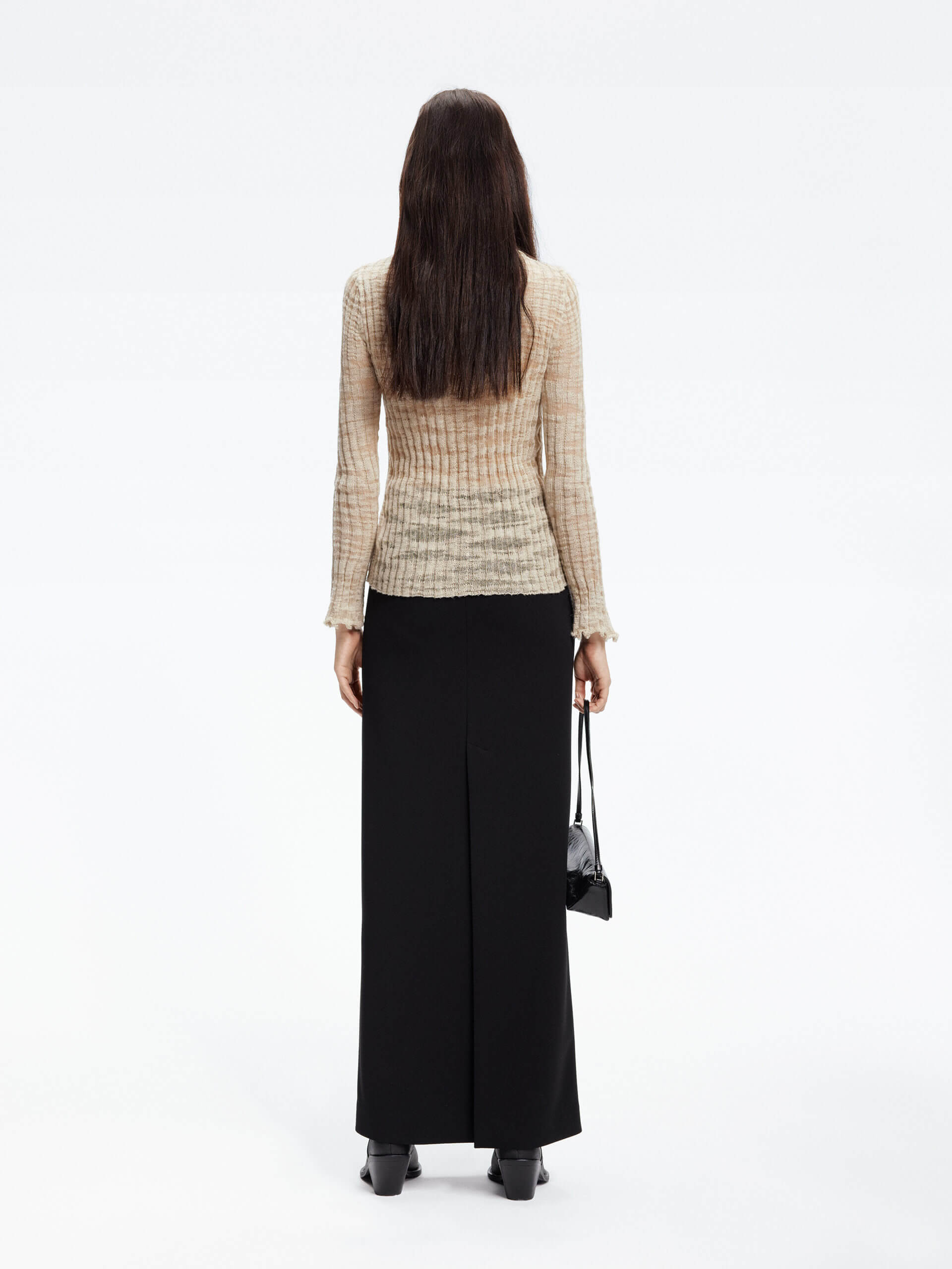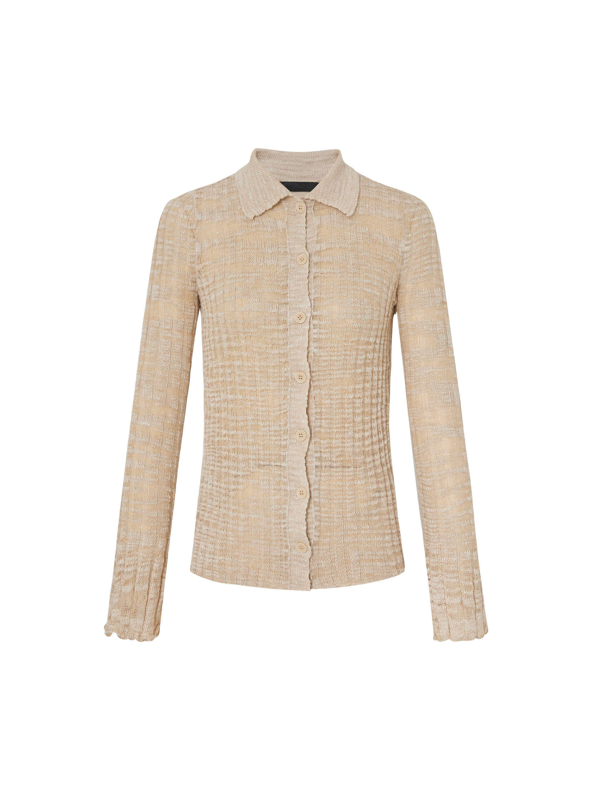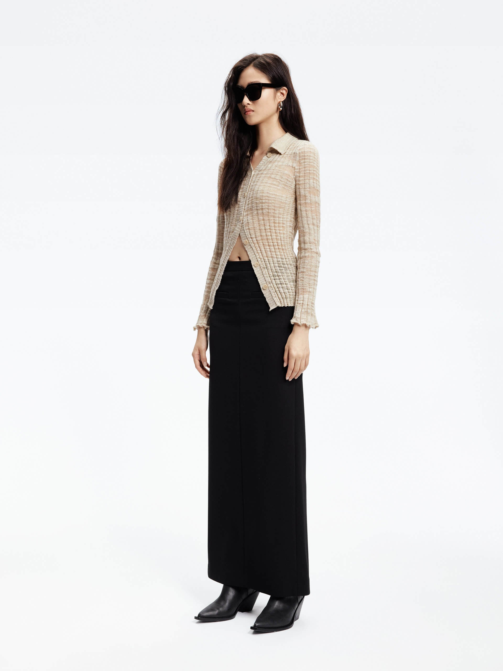 Our team has updated the classic tailoring code for spring. The soft, slightly sheer fabric offers a delicate touch. The trumpet cuffs add a touch of elegance. Its slim fit pairs perfectly with high-waisted skirts and pants, making it a fashion-forward and unique addition to your wardrobe.