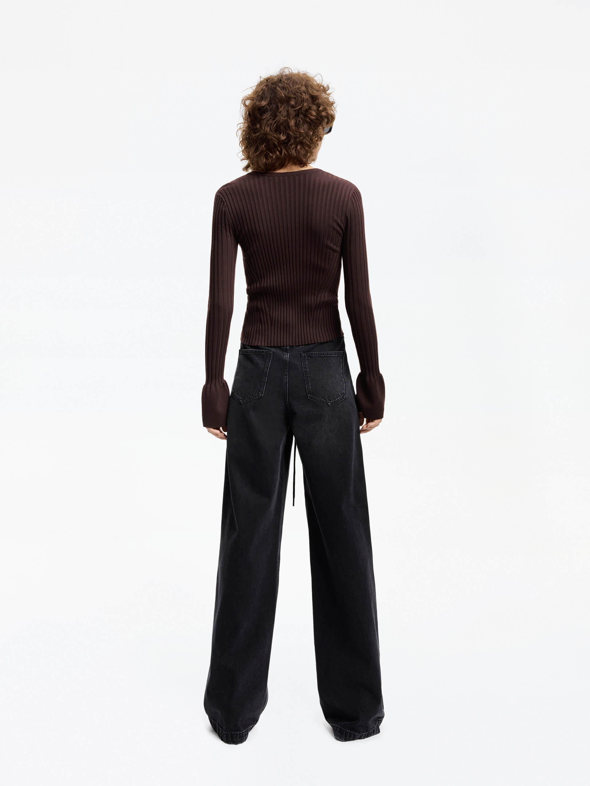 MO&Co. Women's Trumpet Cuff Ribbed Sweater