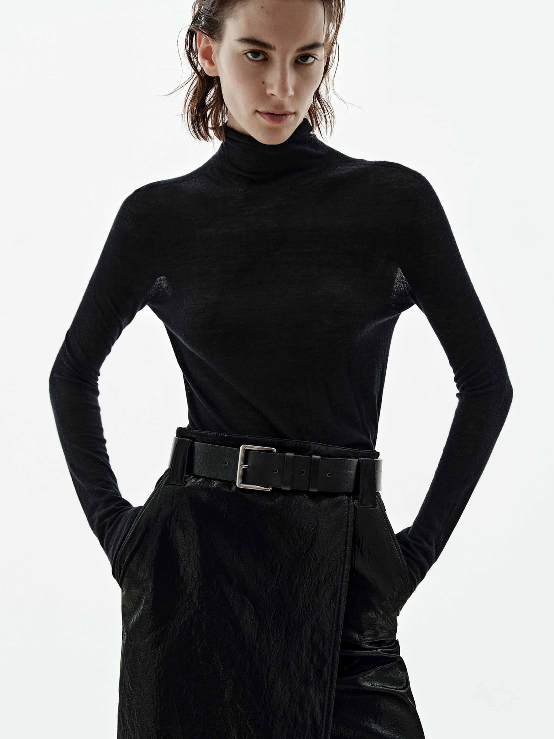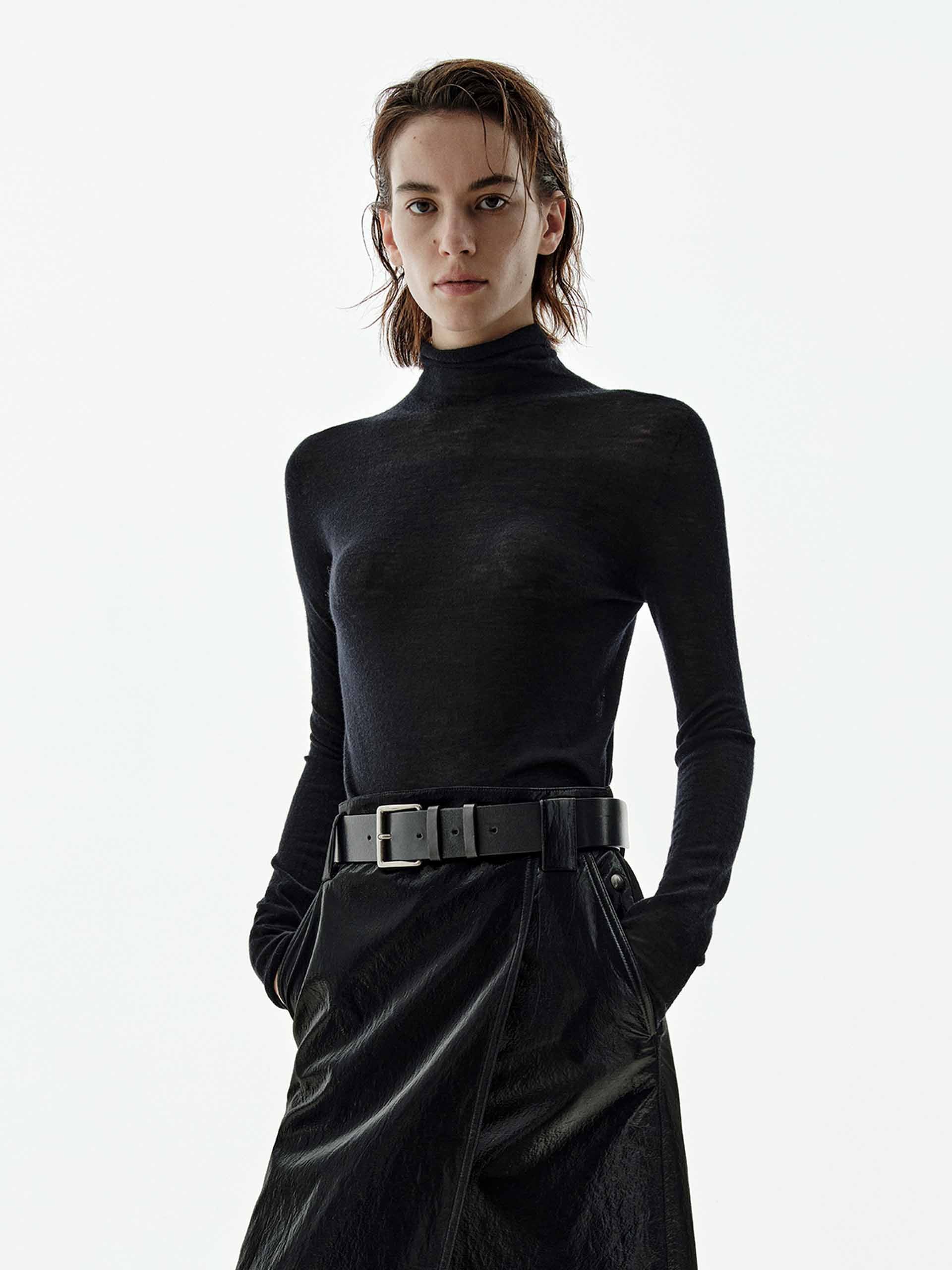 Indulge in unparalleled luxury with our sweater, meticulously crafted from 100% soft and comfy cashmere for a supremely lightweight and warm experience. This slim fit piece offers a sleek, modern silhouette, enhanced by a classic turtleneck design that provides both elegance and cozy comfort. A subtle yet distinctive metal patch at the back adds a unique, contemporary finish to this timeless essential.