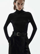 - Turtleneck design, metal patch at the back