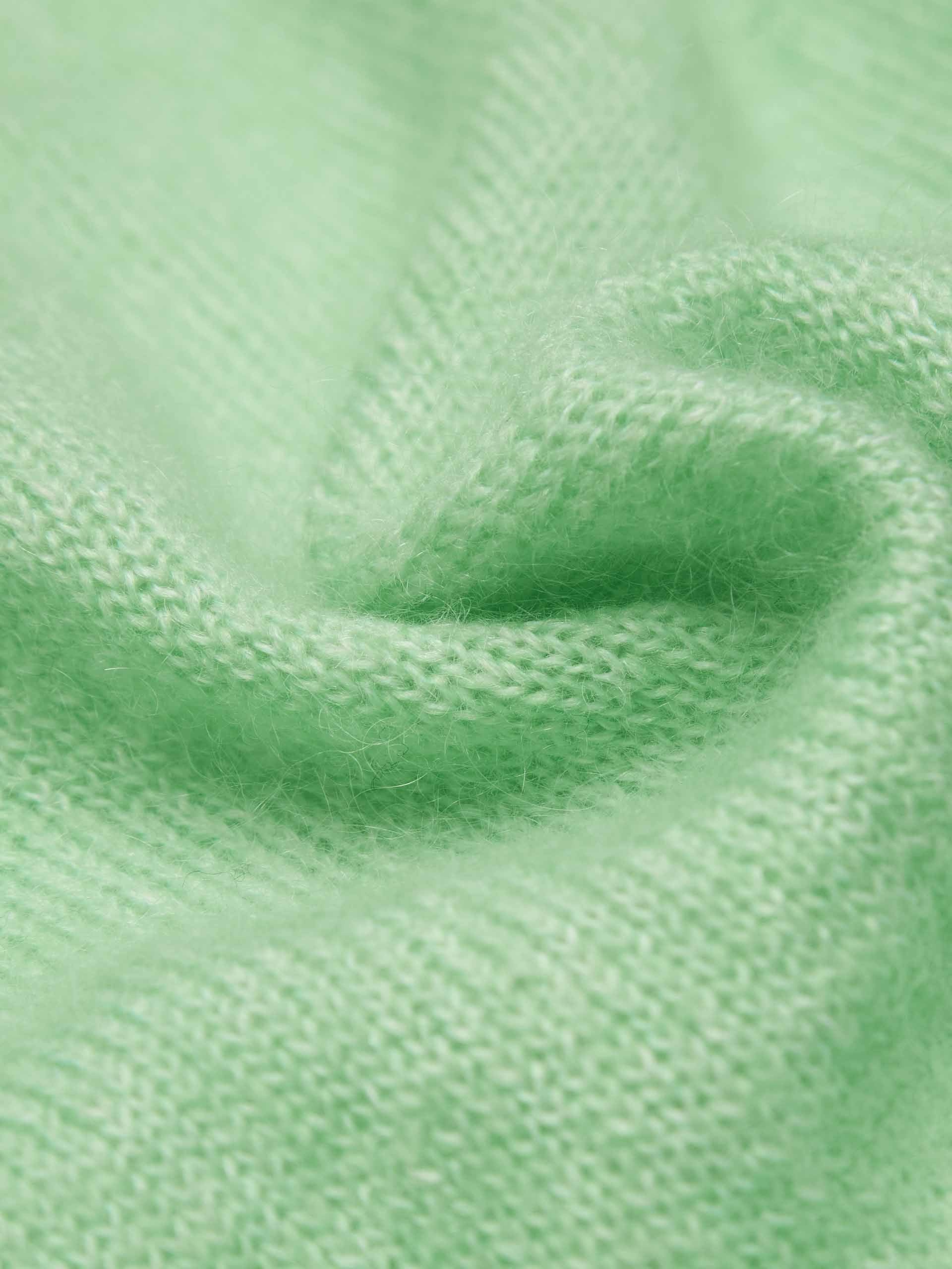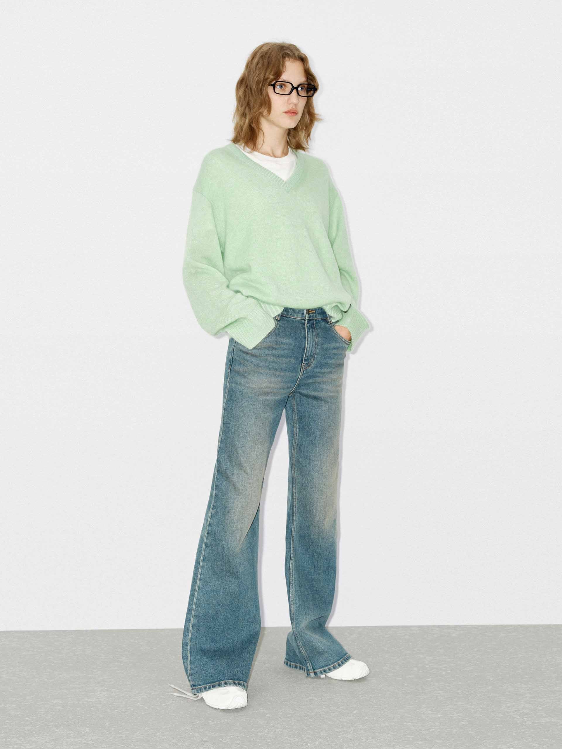 Offer in a mint hue, it's knitted from soft mohair, wool and polyamide. Features a classic V-neck, neatly ribbed trims, and cut in a relaxed shape. A perfect pair with jeans or a skirt for a chic and effortless look.