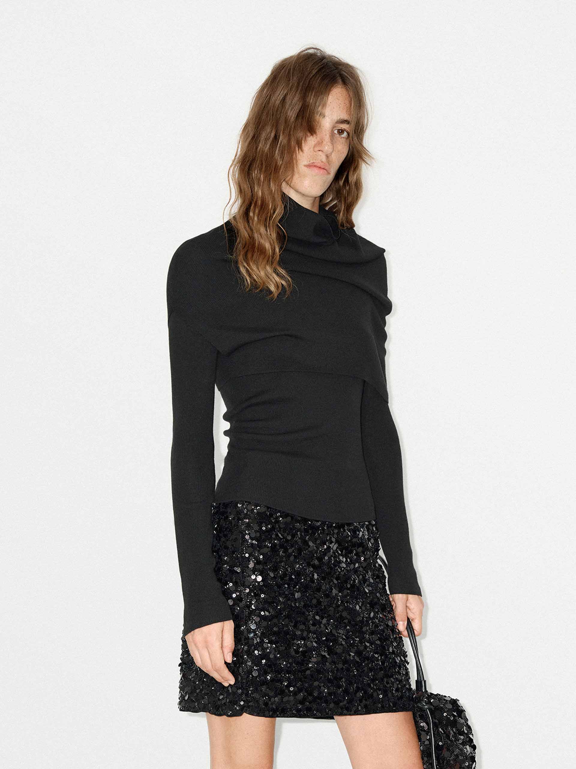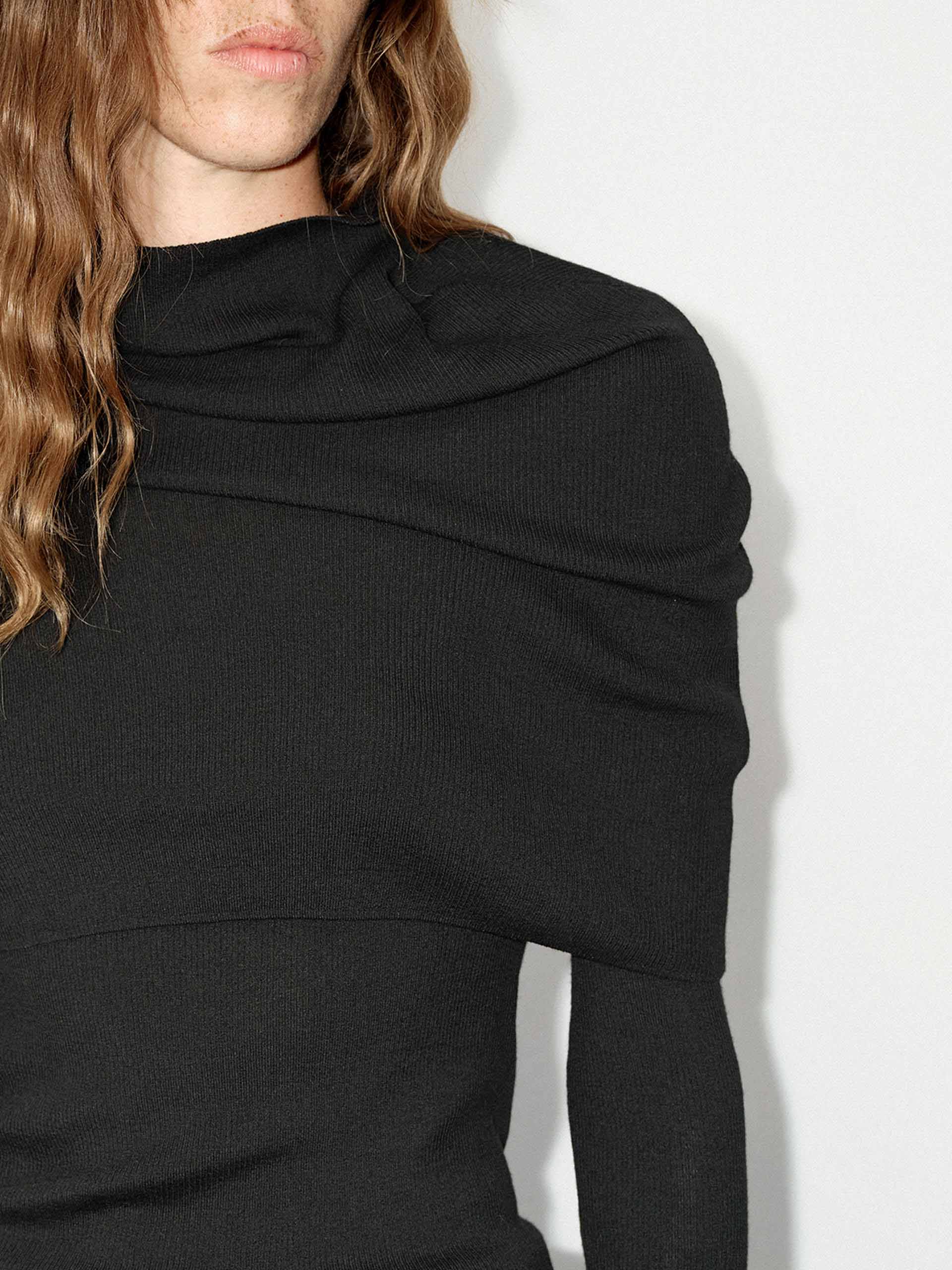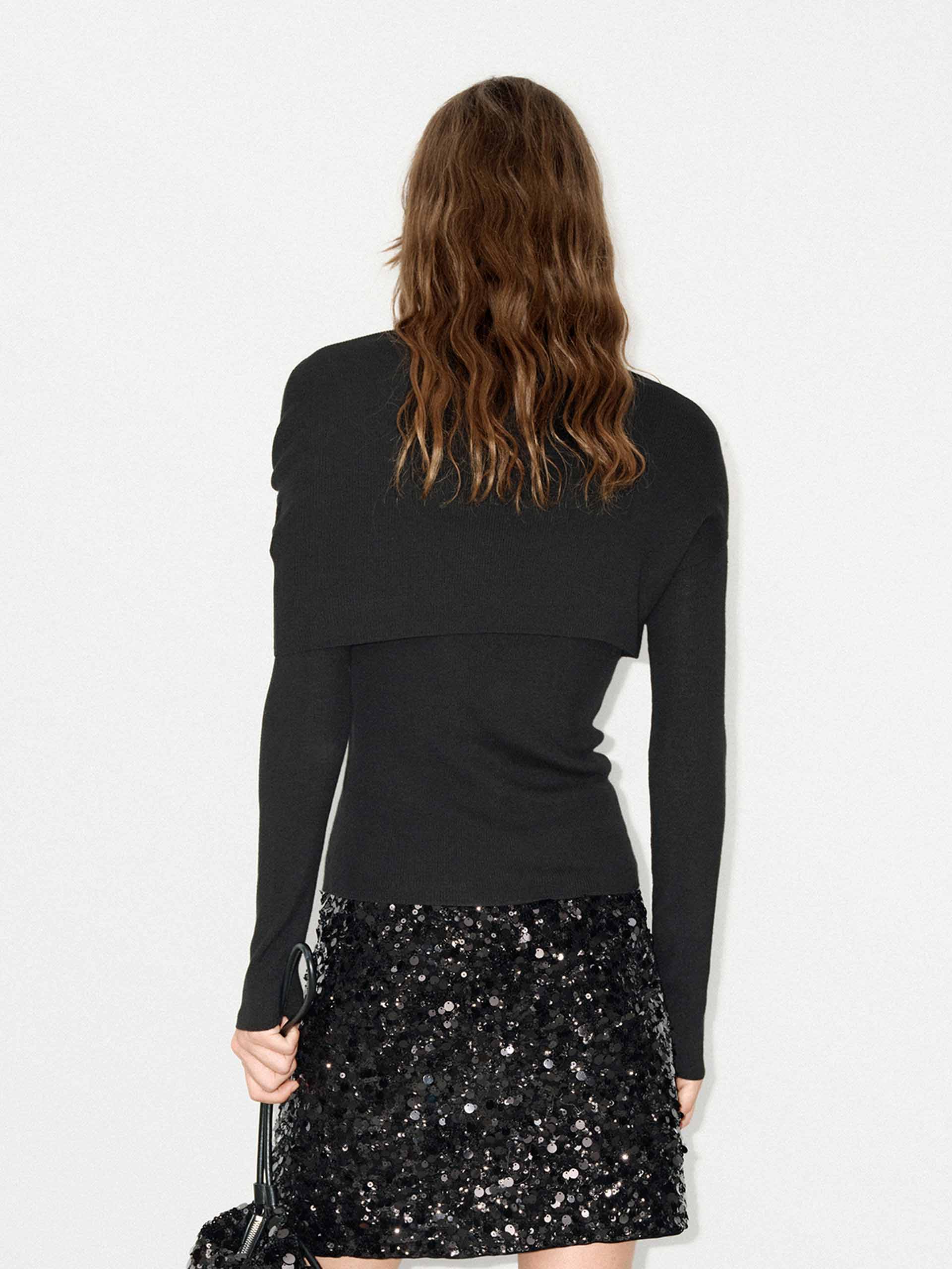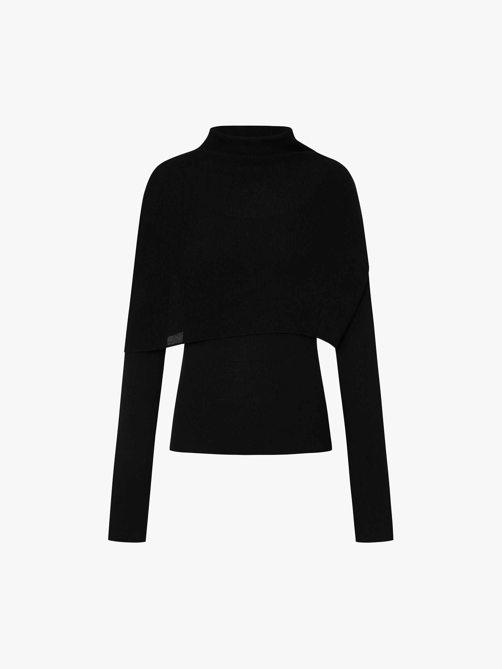 This knitted top is made from comfy and warm wool. Its close fit and round neckline create a flattering silhouette, while the cape details add a touch of sophistication. With its versatile design, you can easily achieve multiple stylish looks.