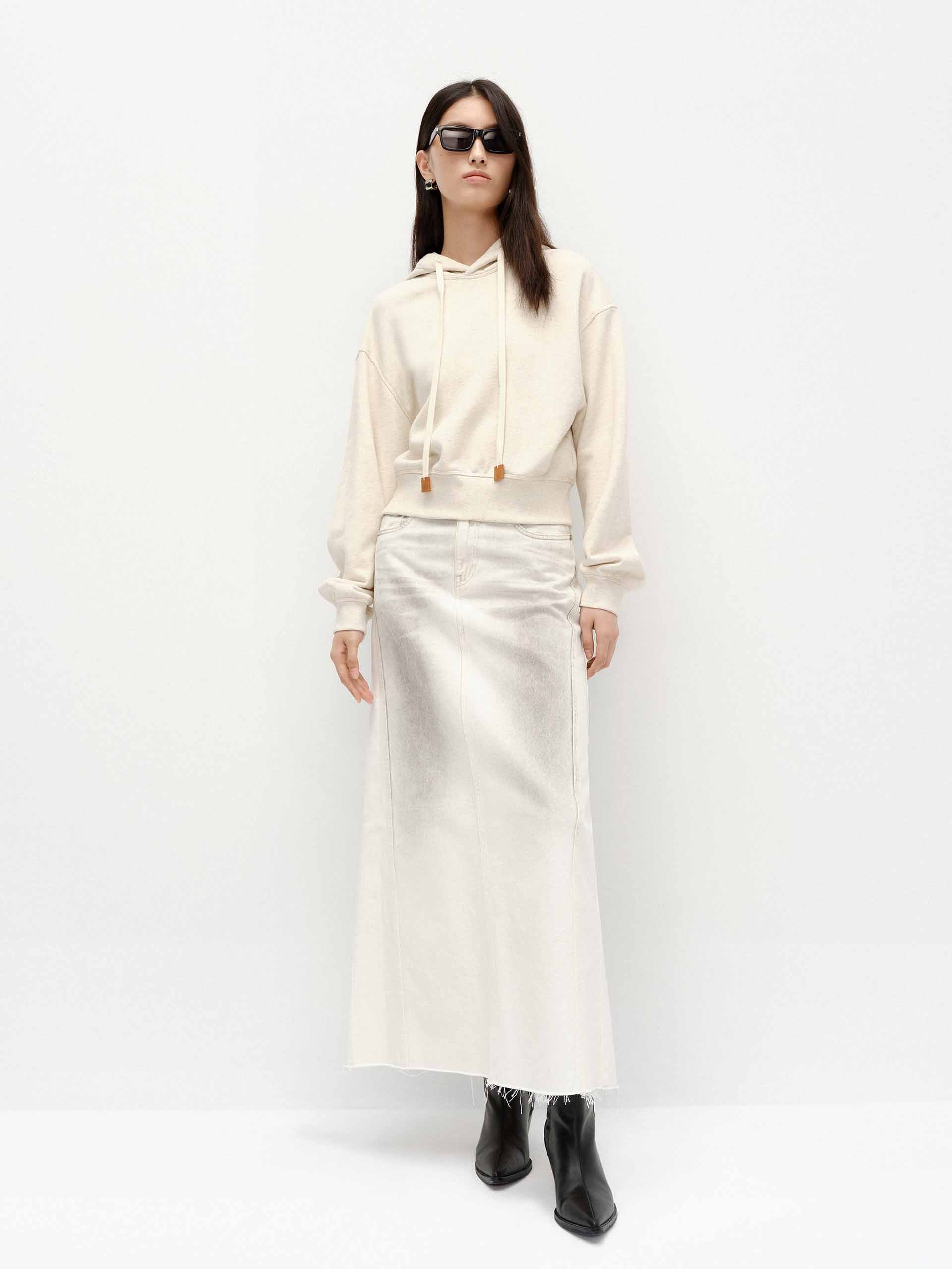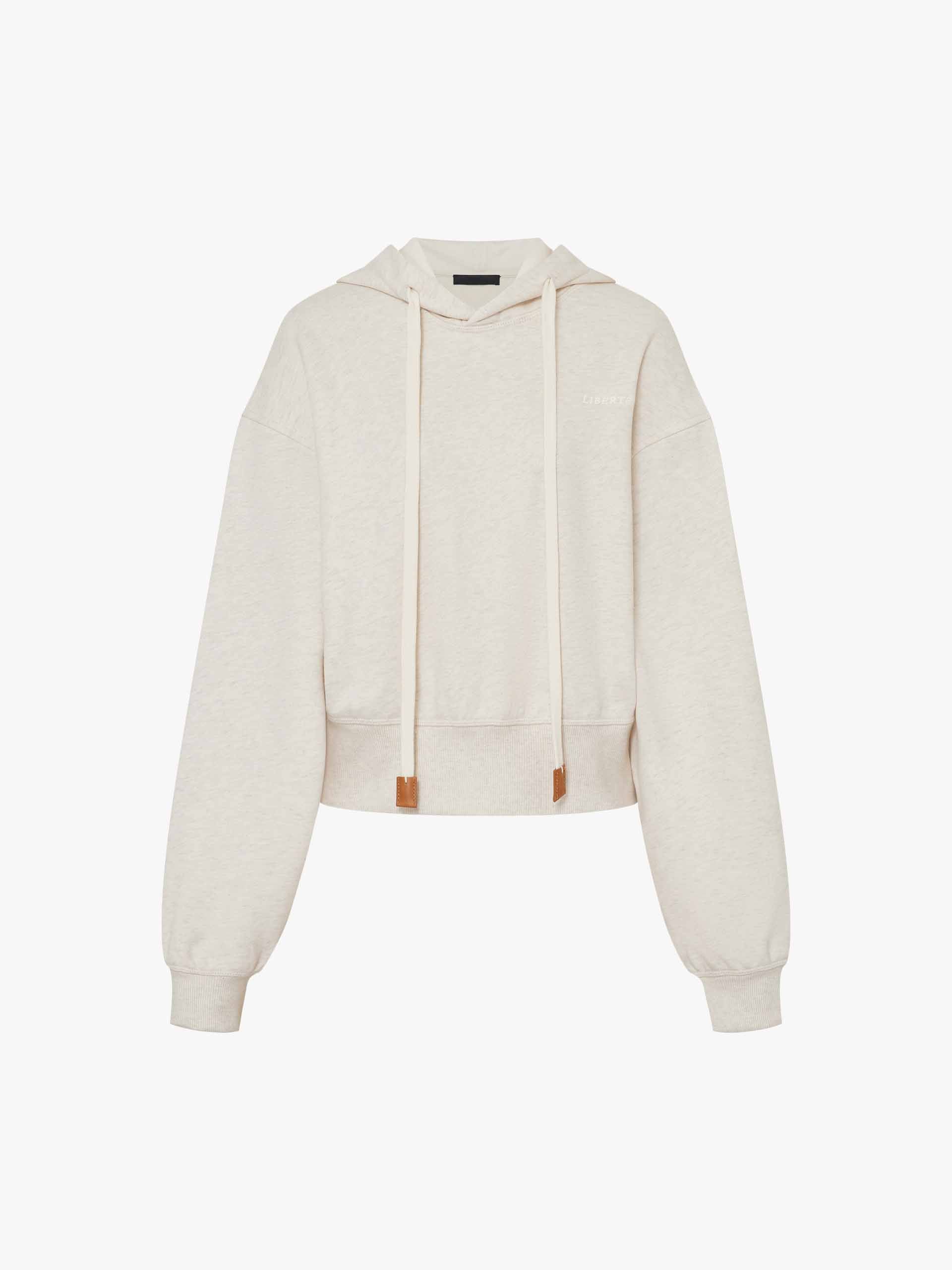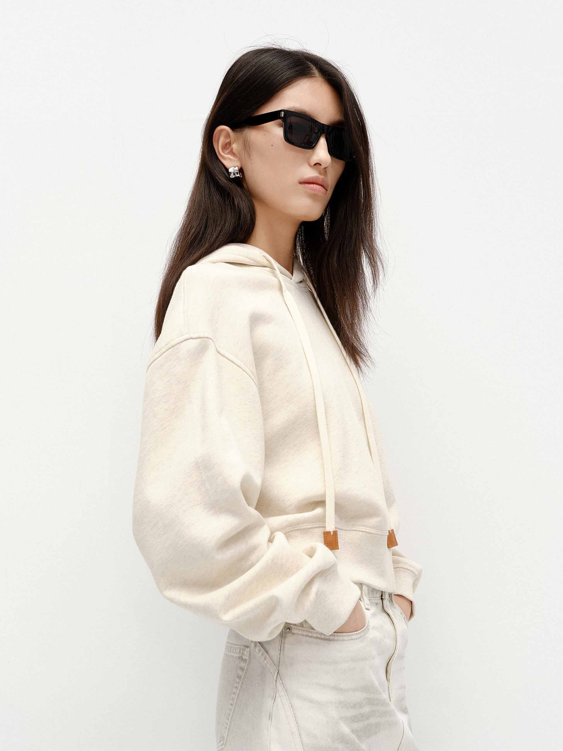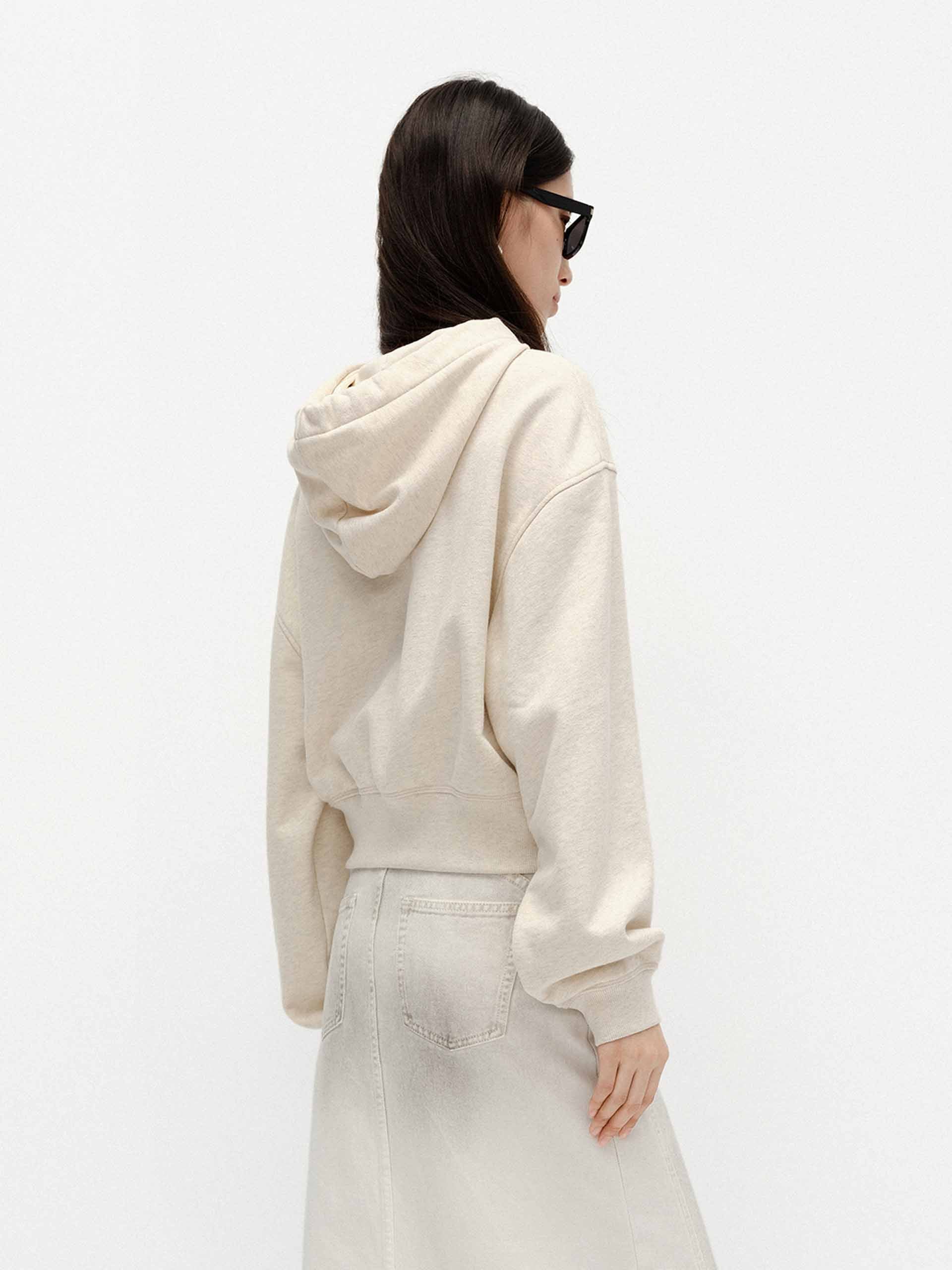 Made from cotton with a hint of durable hemp, this sweatshirt features a short length, drop shoulder and hood design for a fashionable and cozy fit. Offered in a light hue, pair it with any denim skirt or jeans.