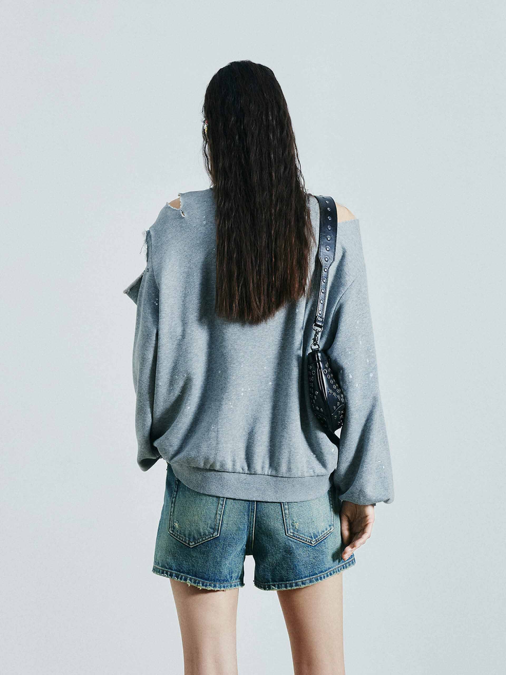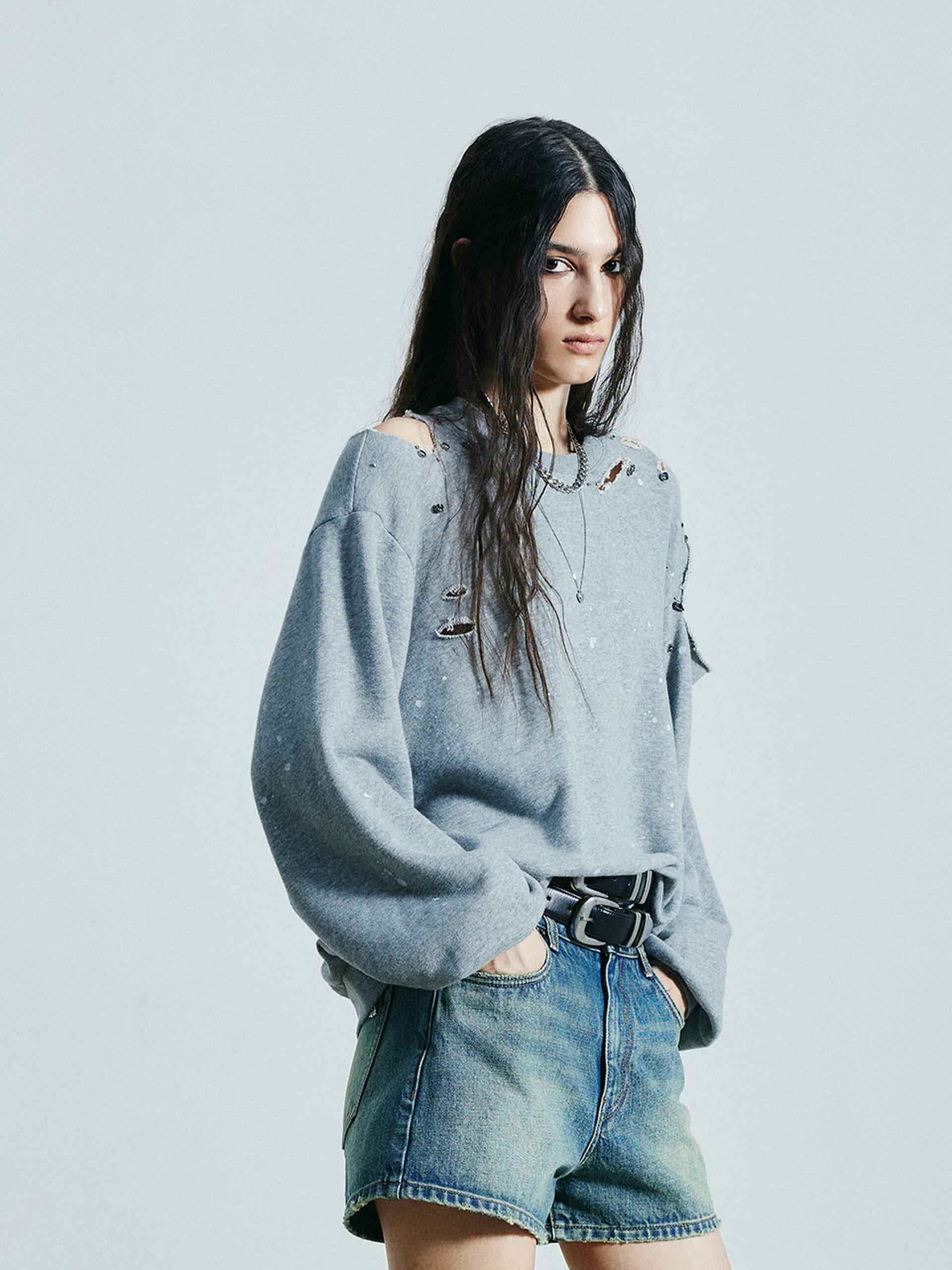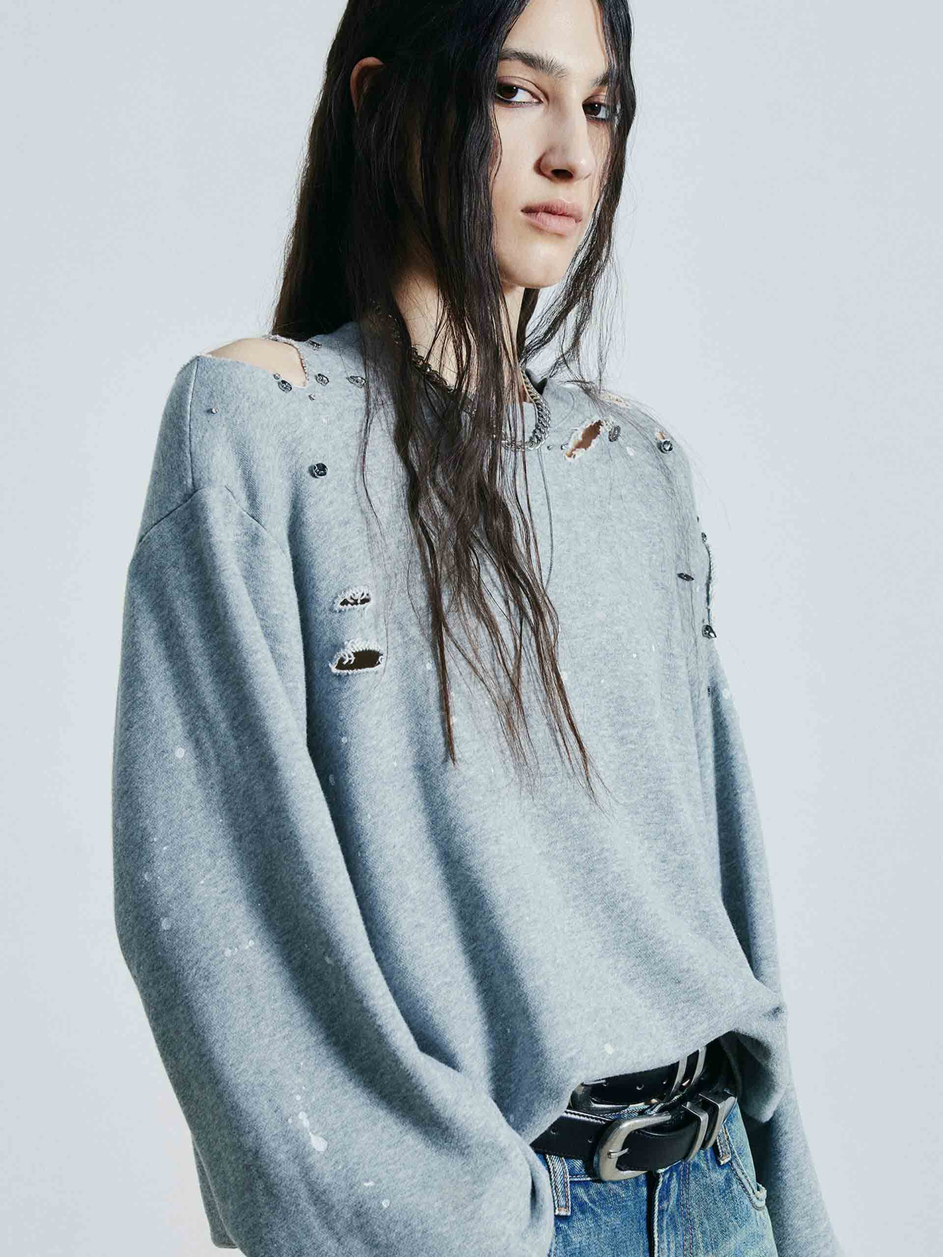 Destroyed Detail Loose Sweatshirts