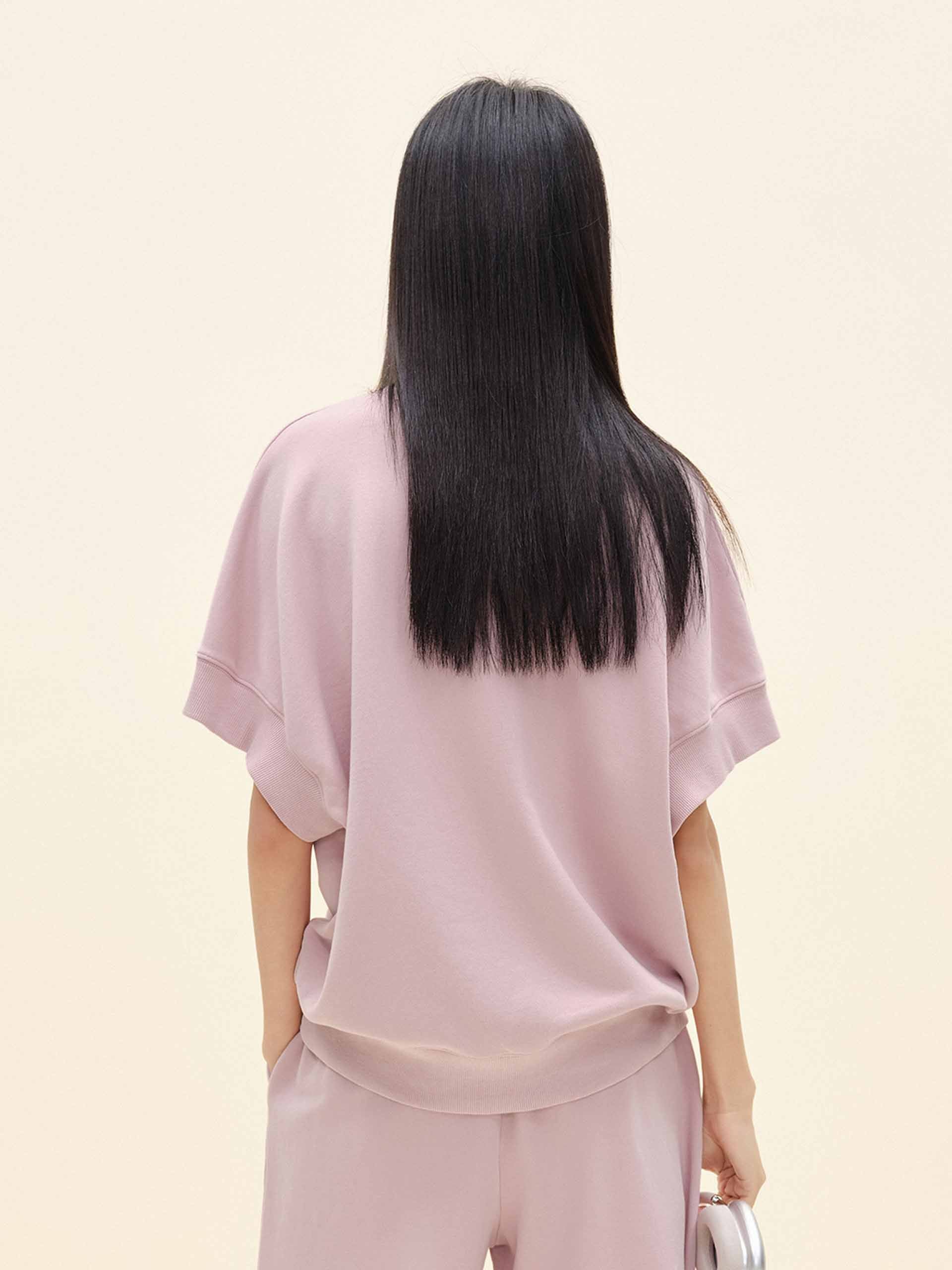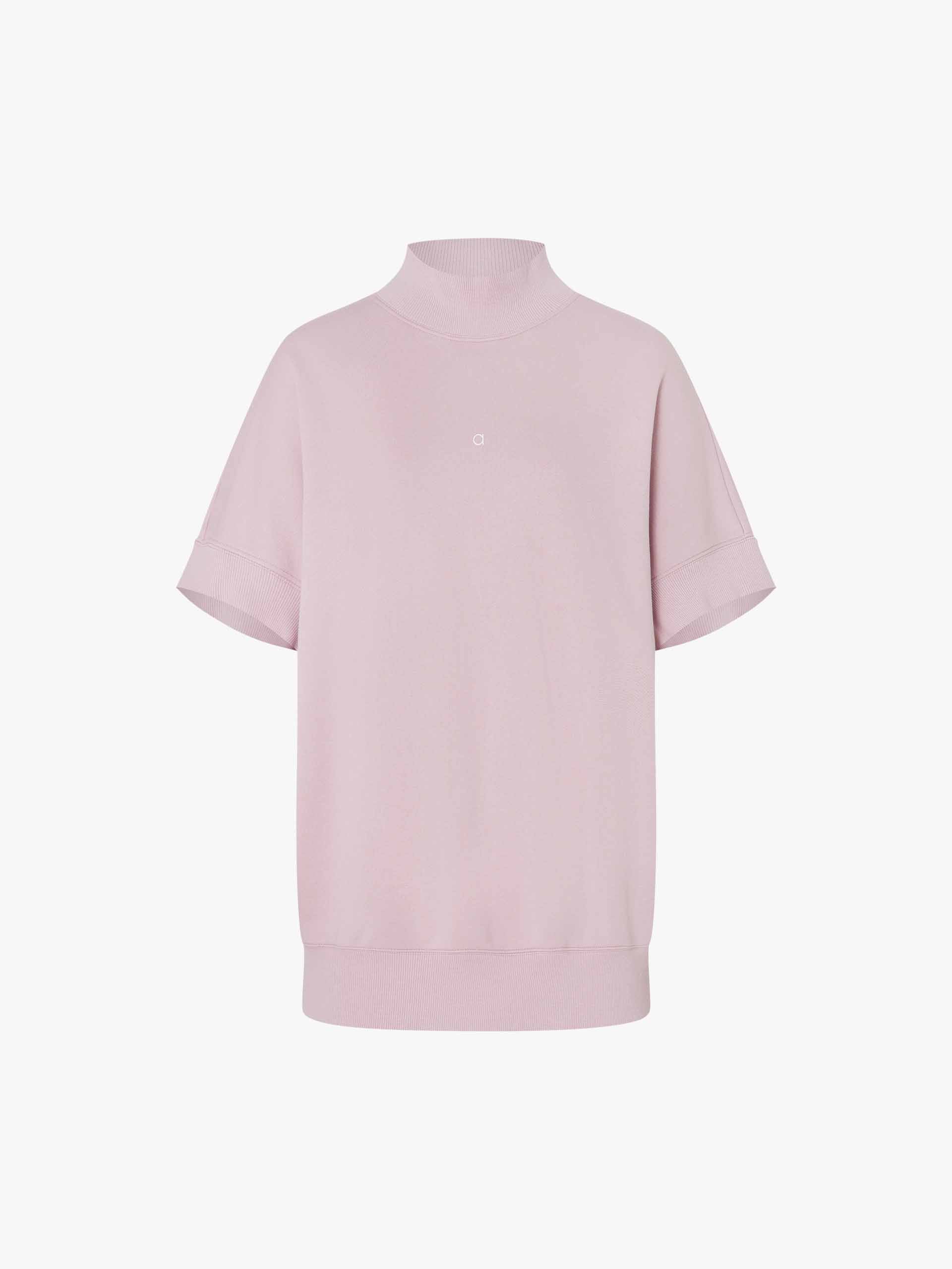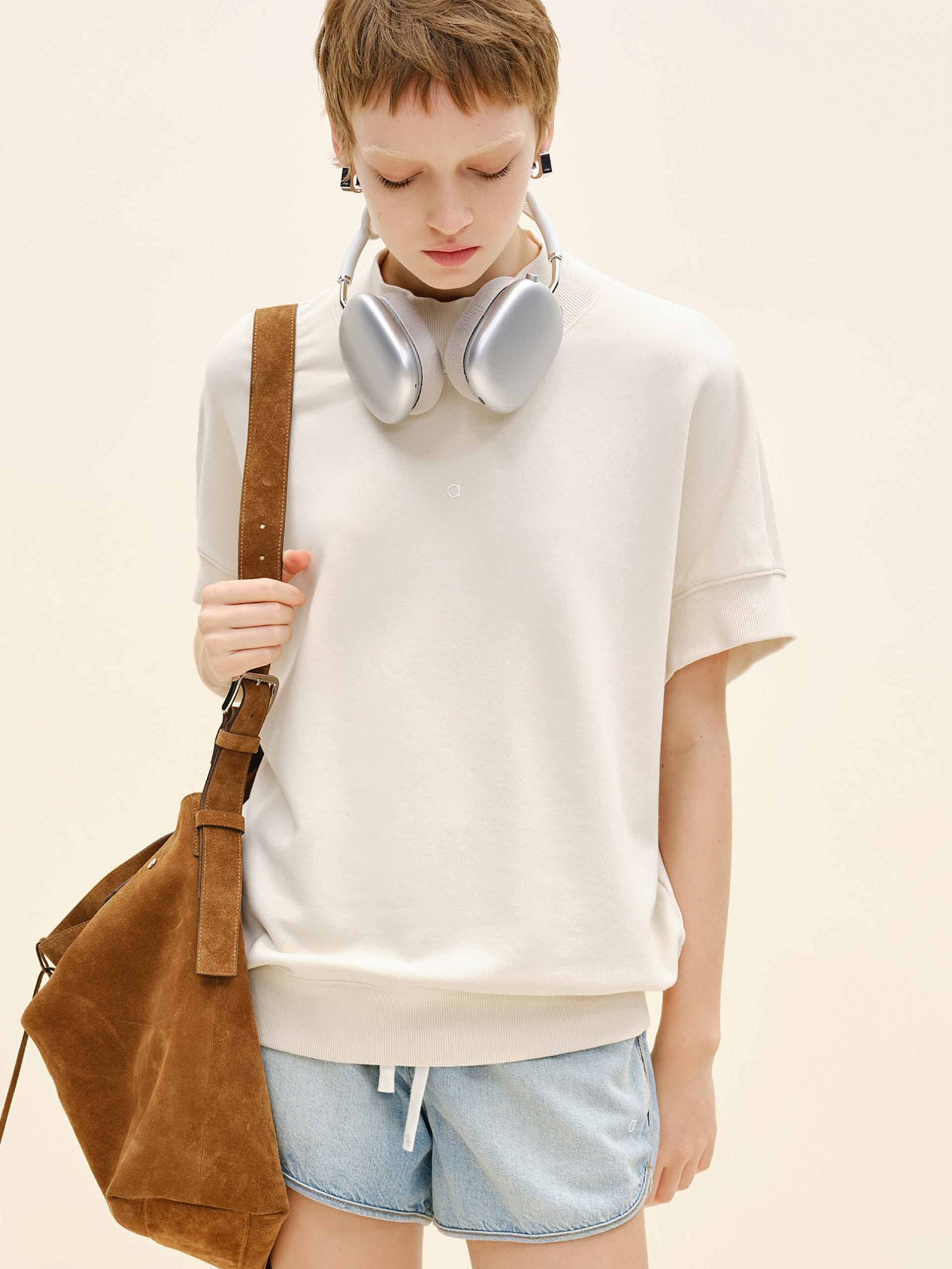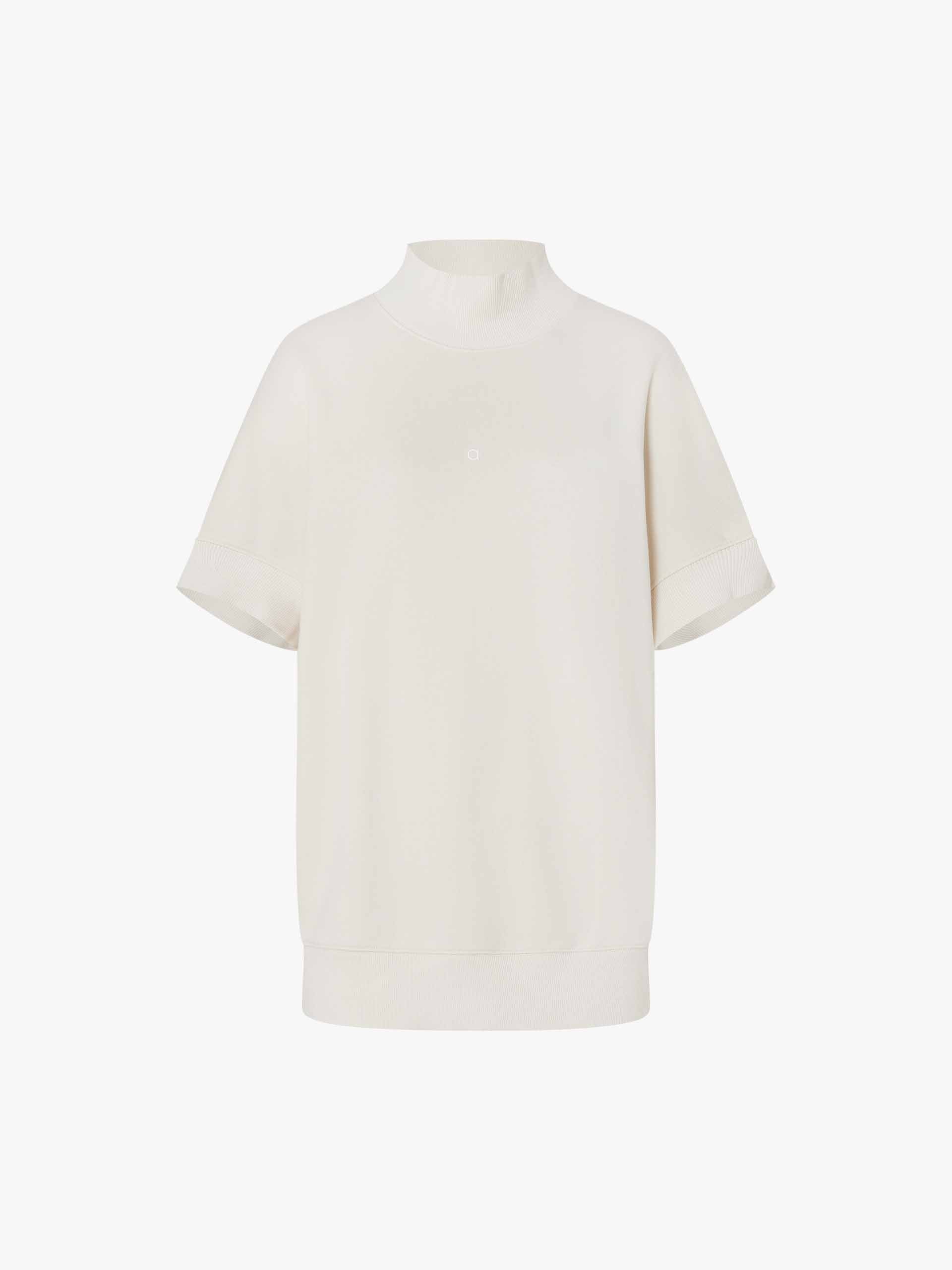 Crafted from breathable 100% pure cotton, this sweatshirt ensures softness and ease all day long. The bold turtleneck detail adds an unexpected touch of refinement, while the short sleeves keep the look fresh and seasonally adaptable. Finished with a tailored ribbed hem design for structure and a sleek fit.