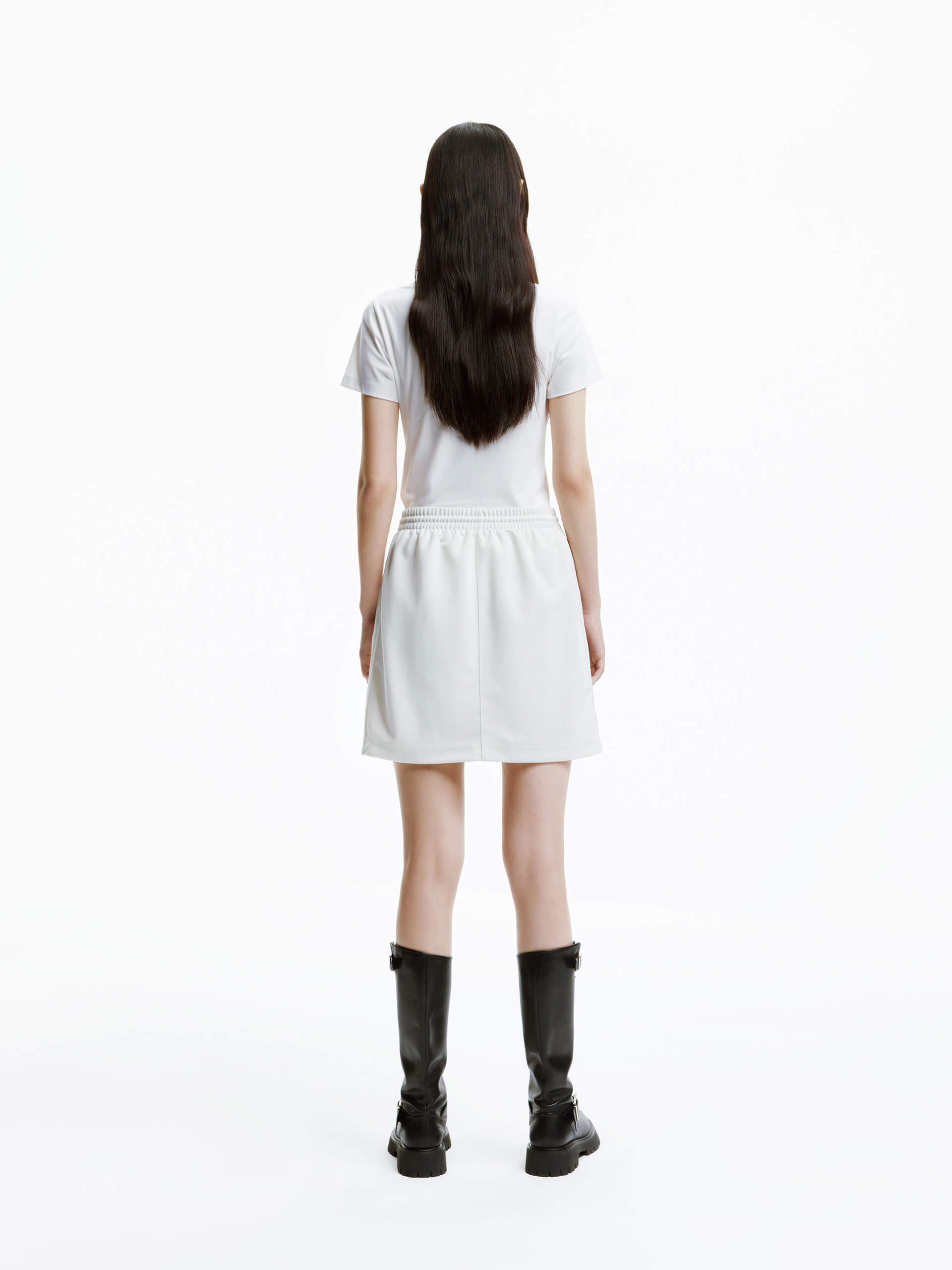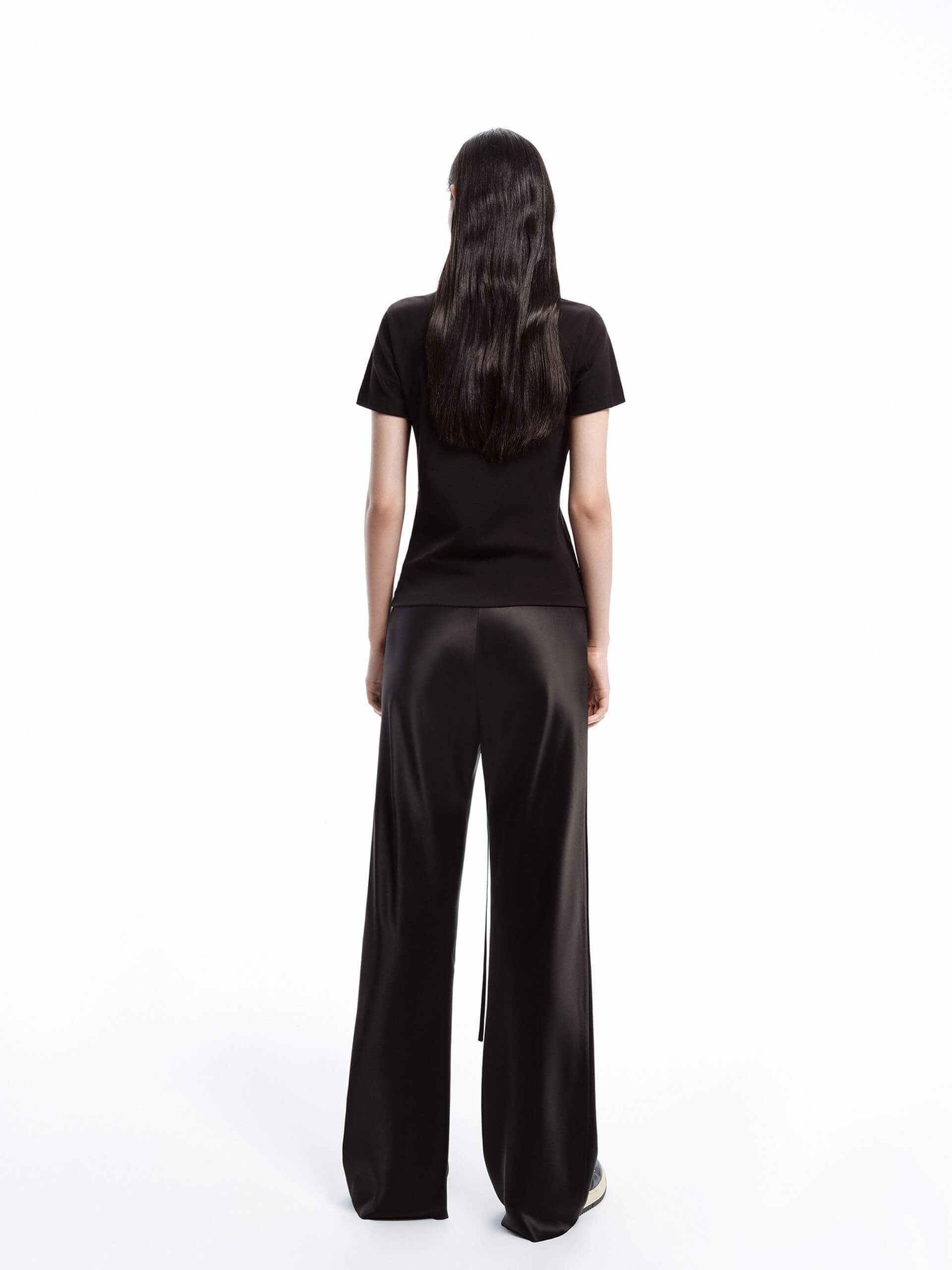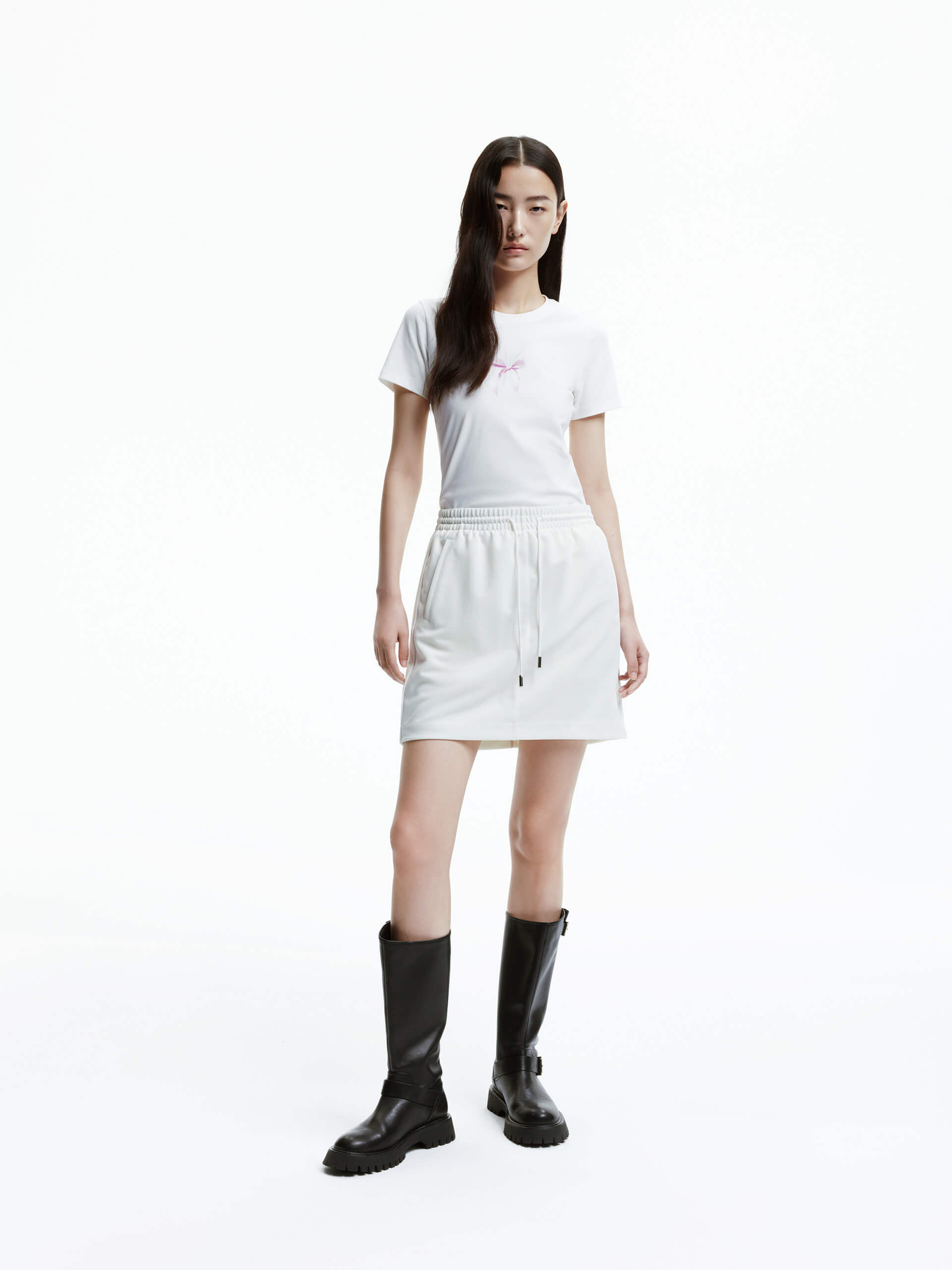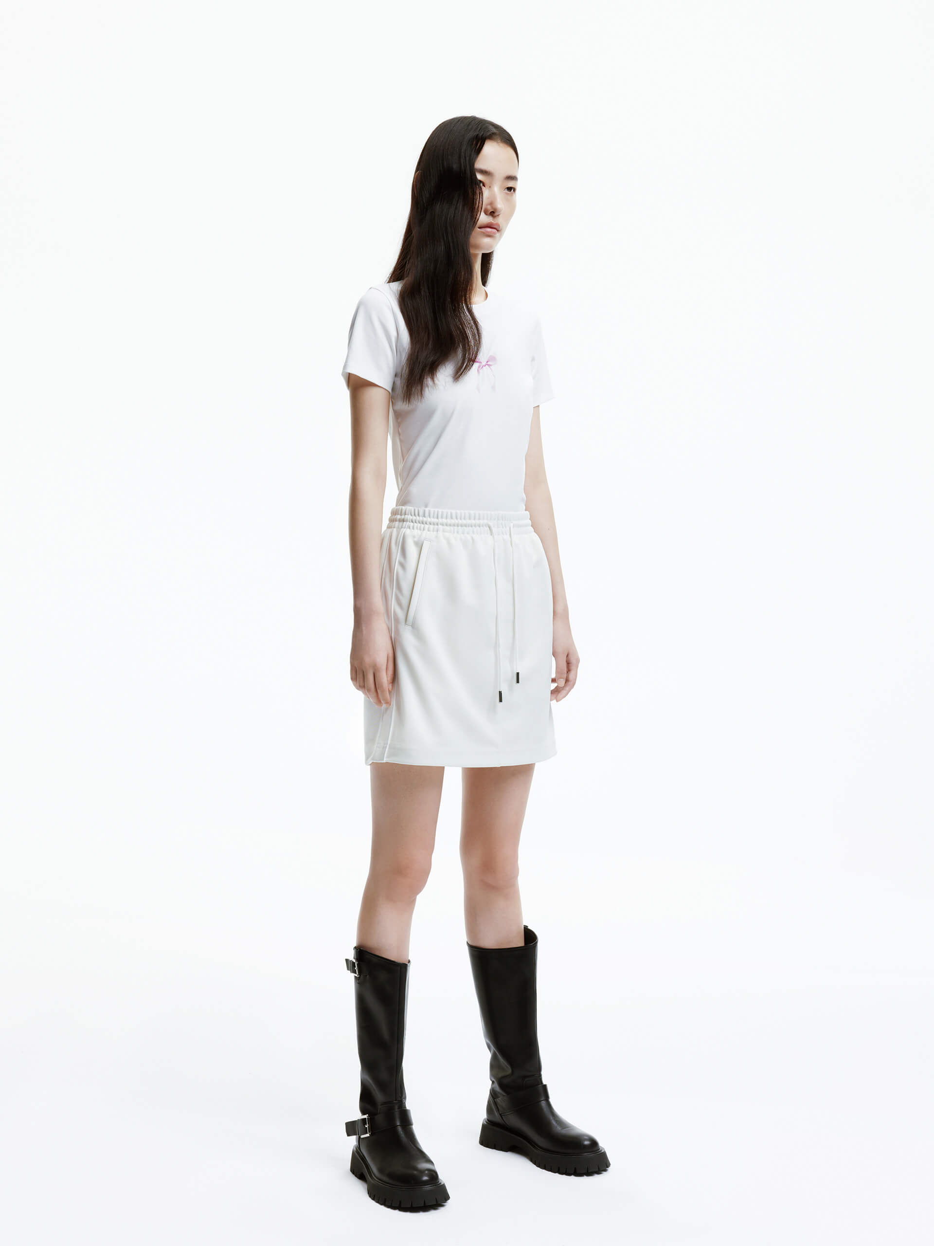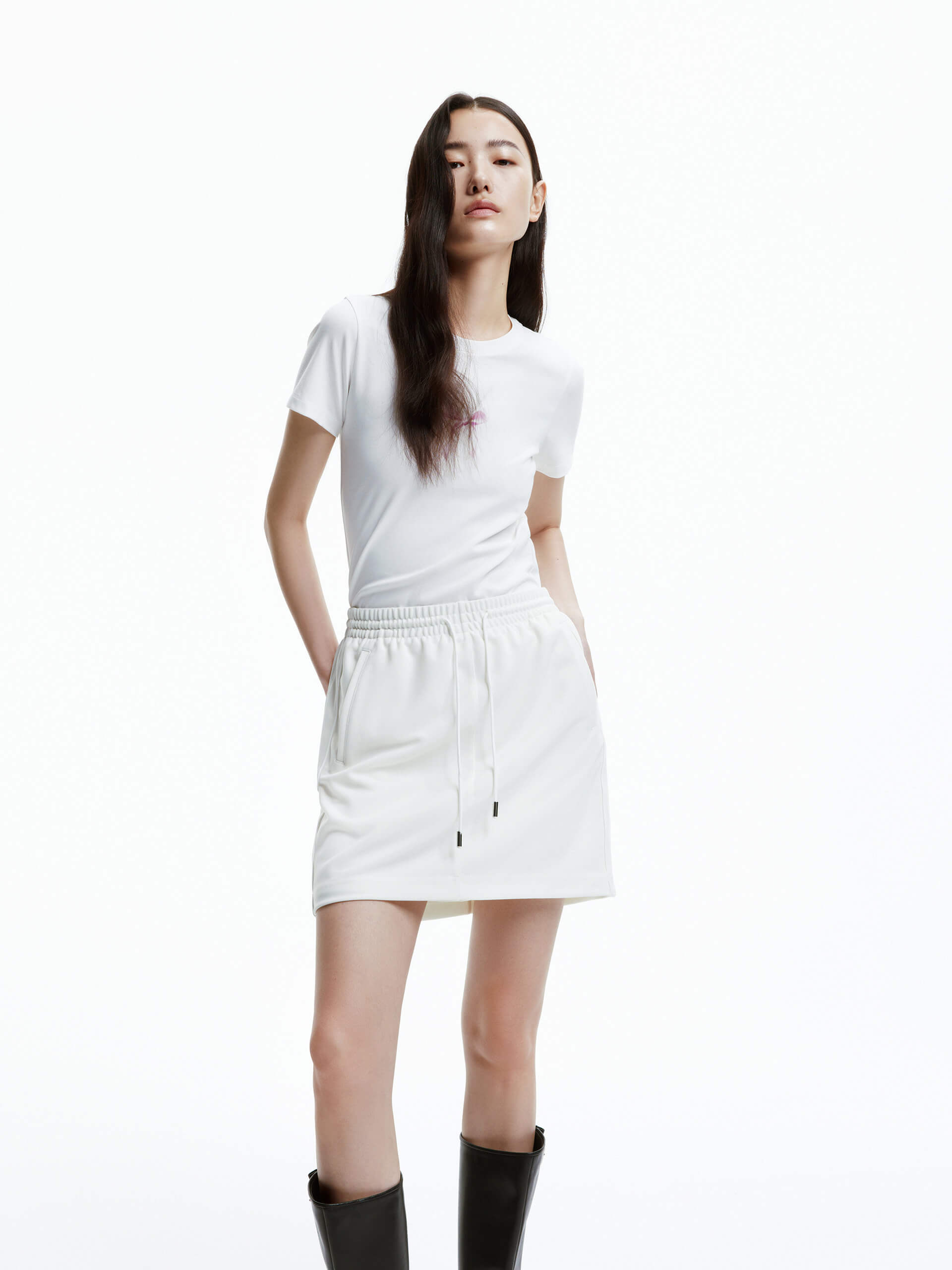 It's hard to overstate the versatility of a classic T-shirt. This staple tee is crafted from premium cotton blend jersey and shaped for a neat fit that has slight definition. Wear it with mini skirts or pants – just about anything goes.