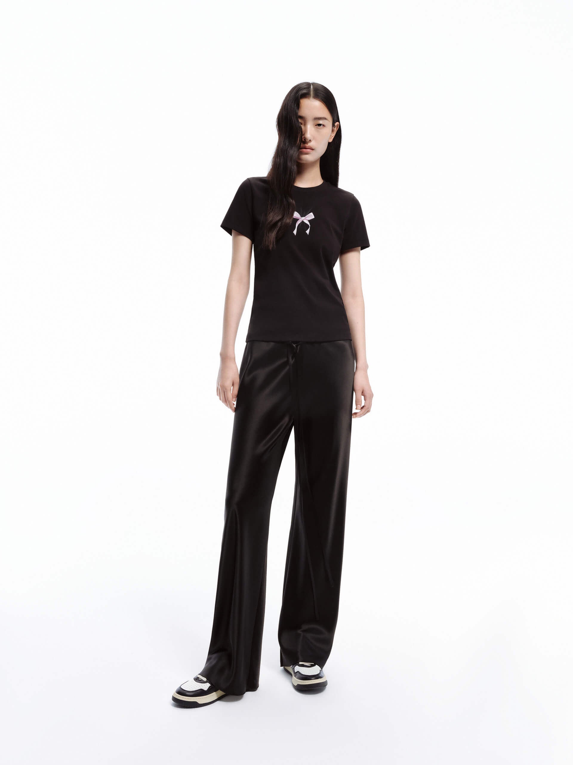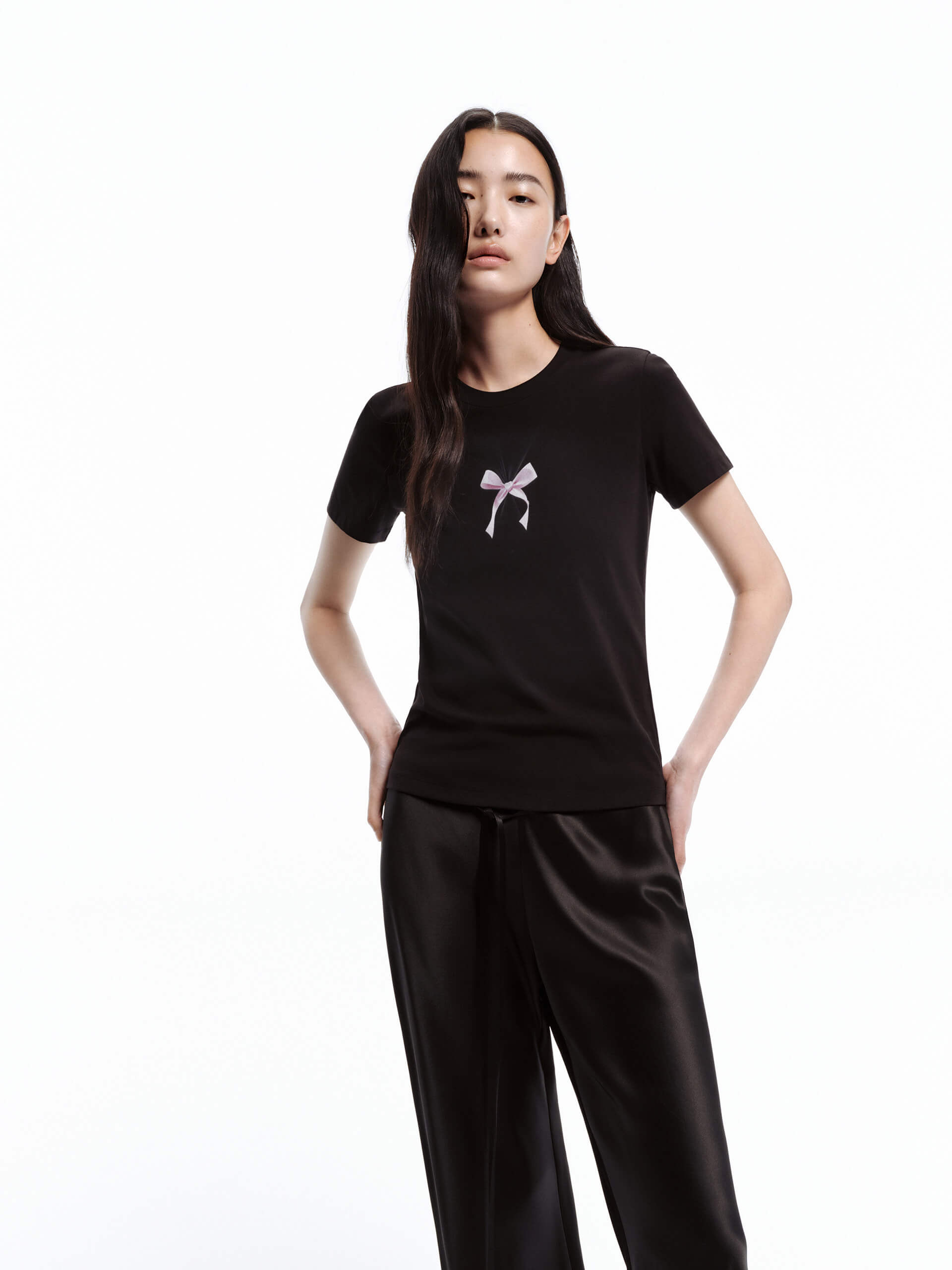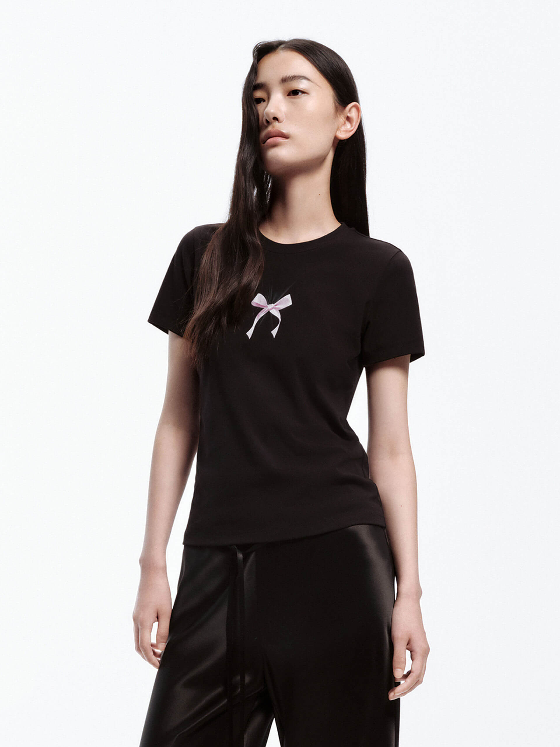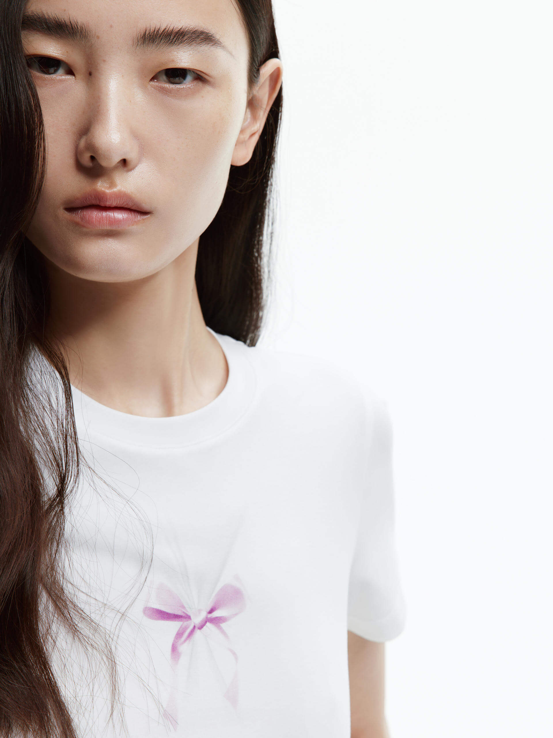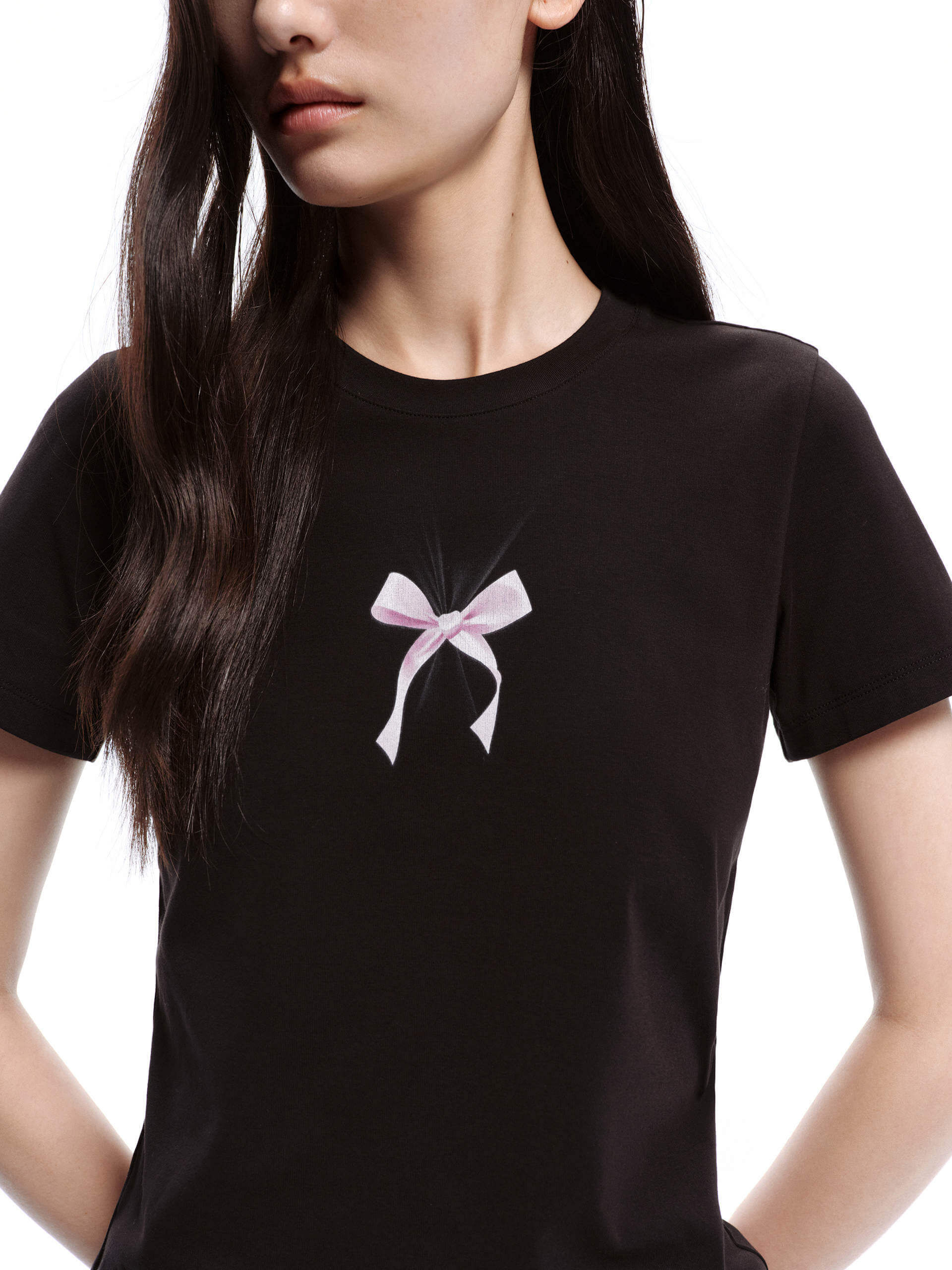 MO&Co. Women's Bow Print Cotton Blend T-shirt