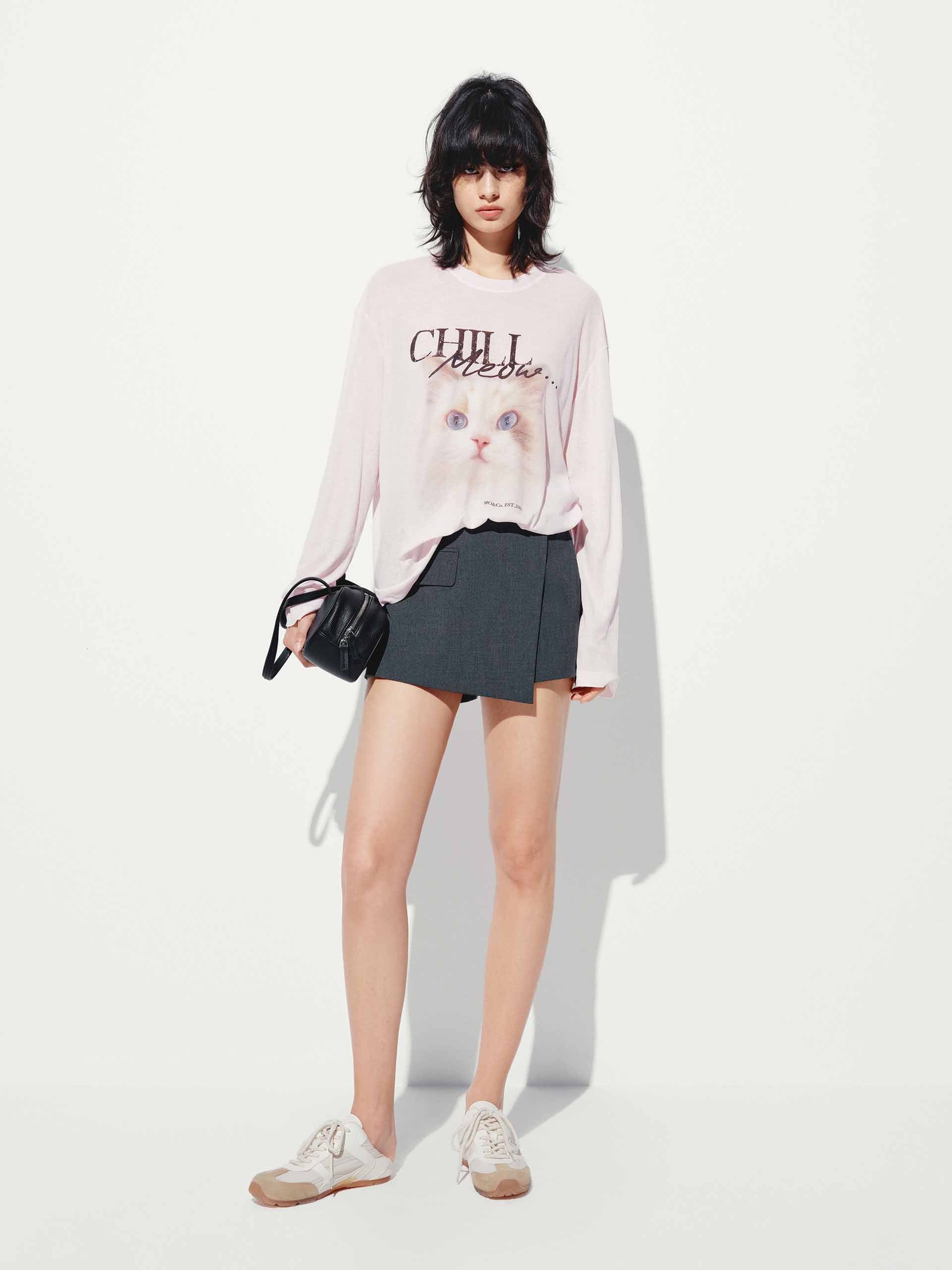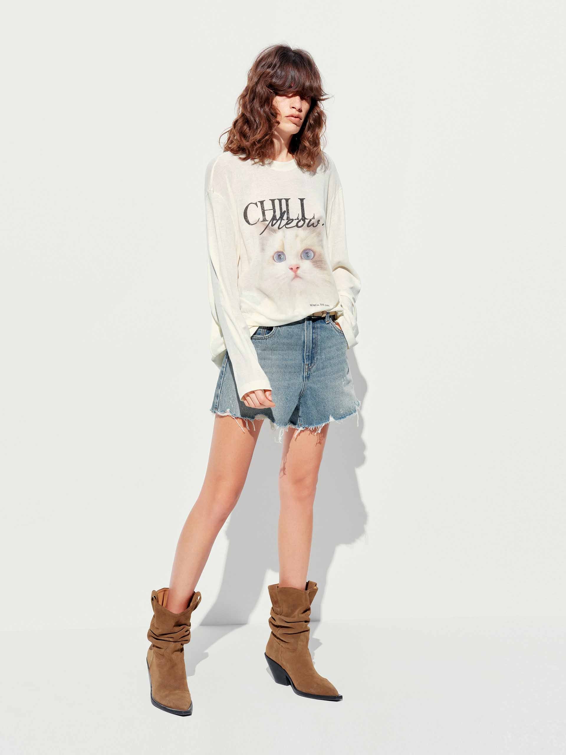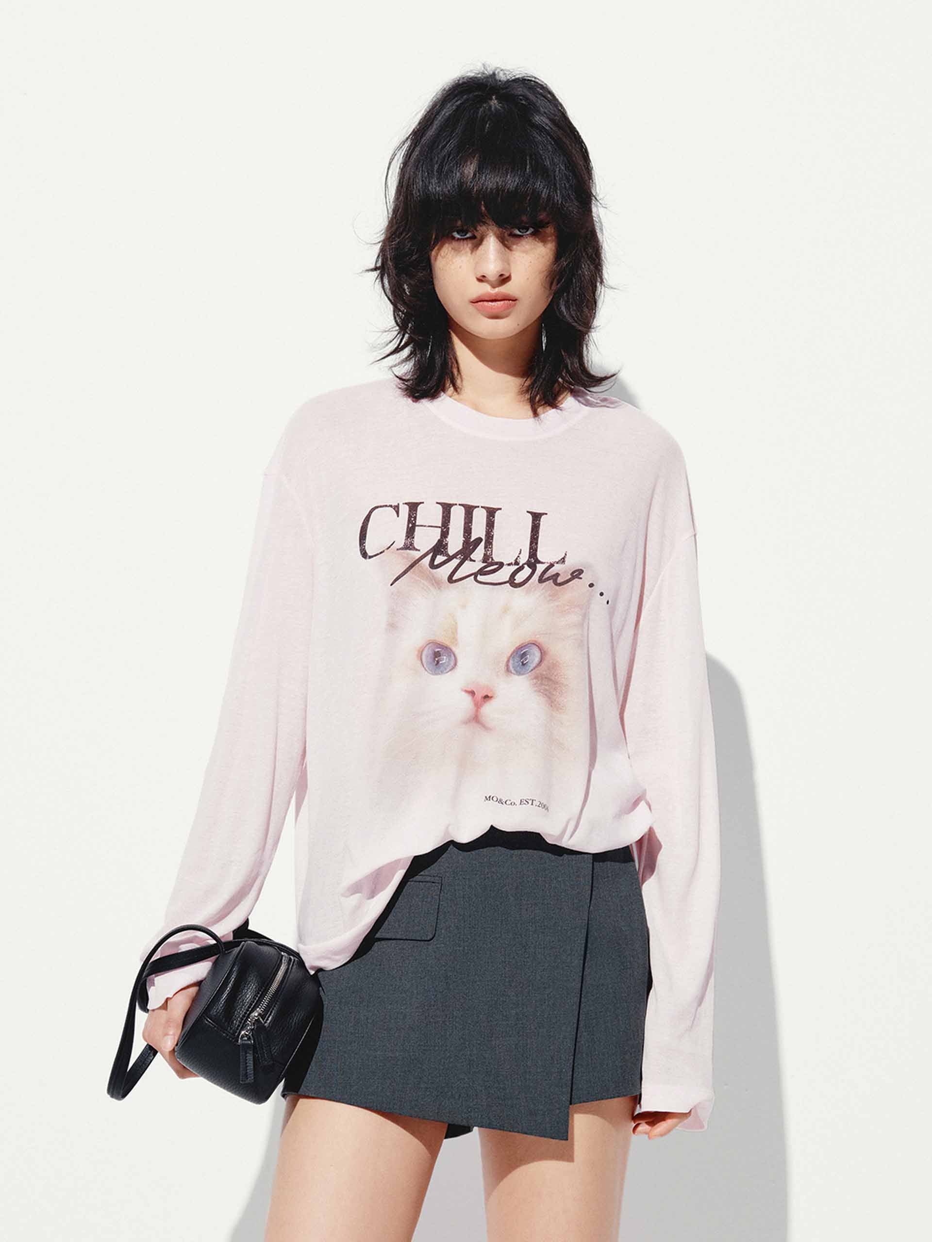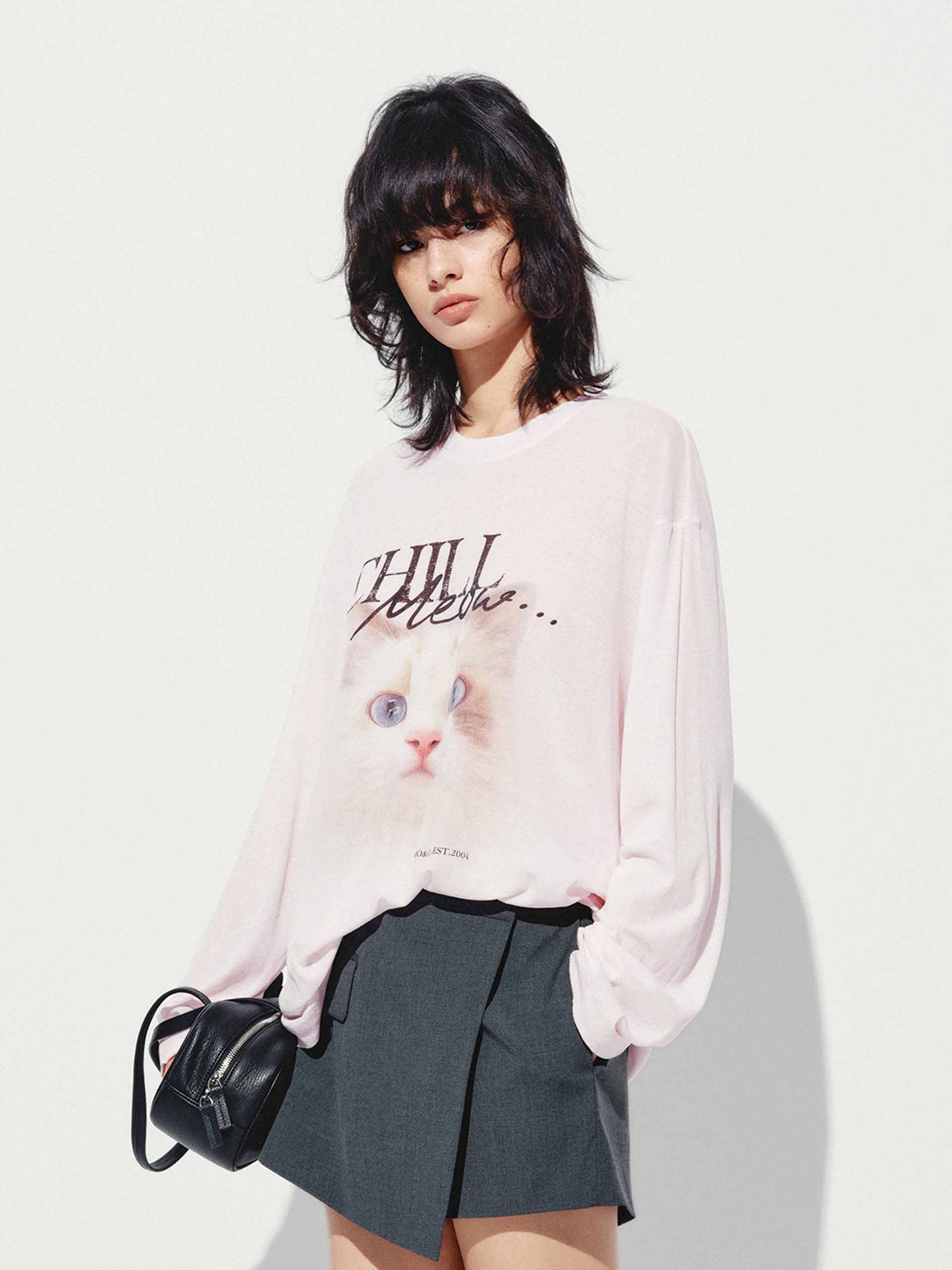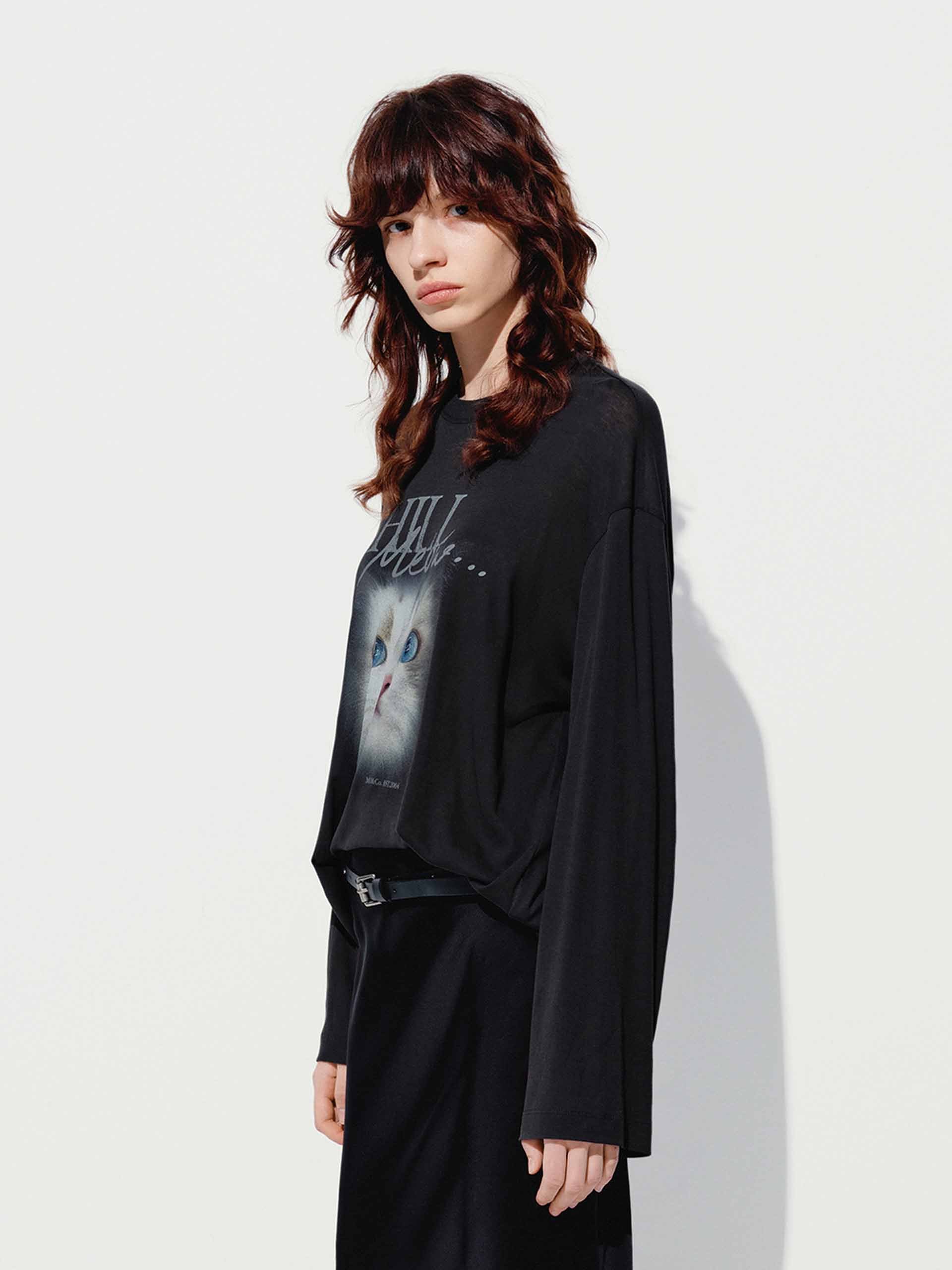 Introducing our cozy T-shirts, crafted from soft and comfortable cotton for ultimate wearability. Designed with a relaxed, easy-going fit, these tees feature stylish drop shoulders and long sleeves for a laid-back vibe. Adding a touch of personality, each shirt showcases a charming front cat design paired with playful slogan print details, making it for everyday comfort and style!