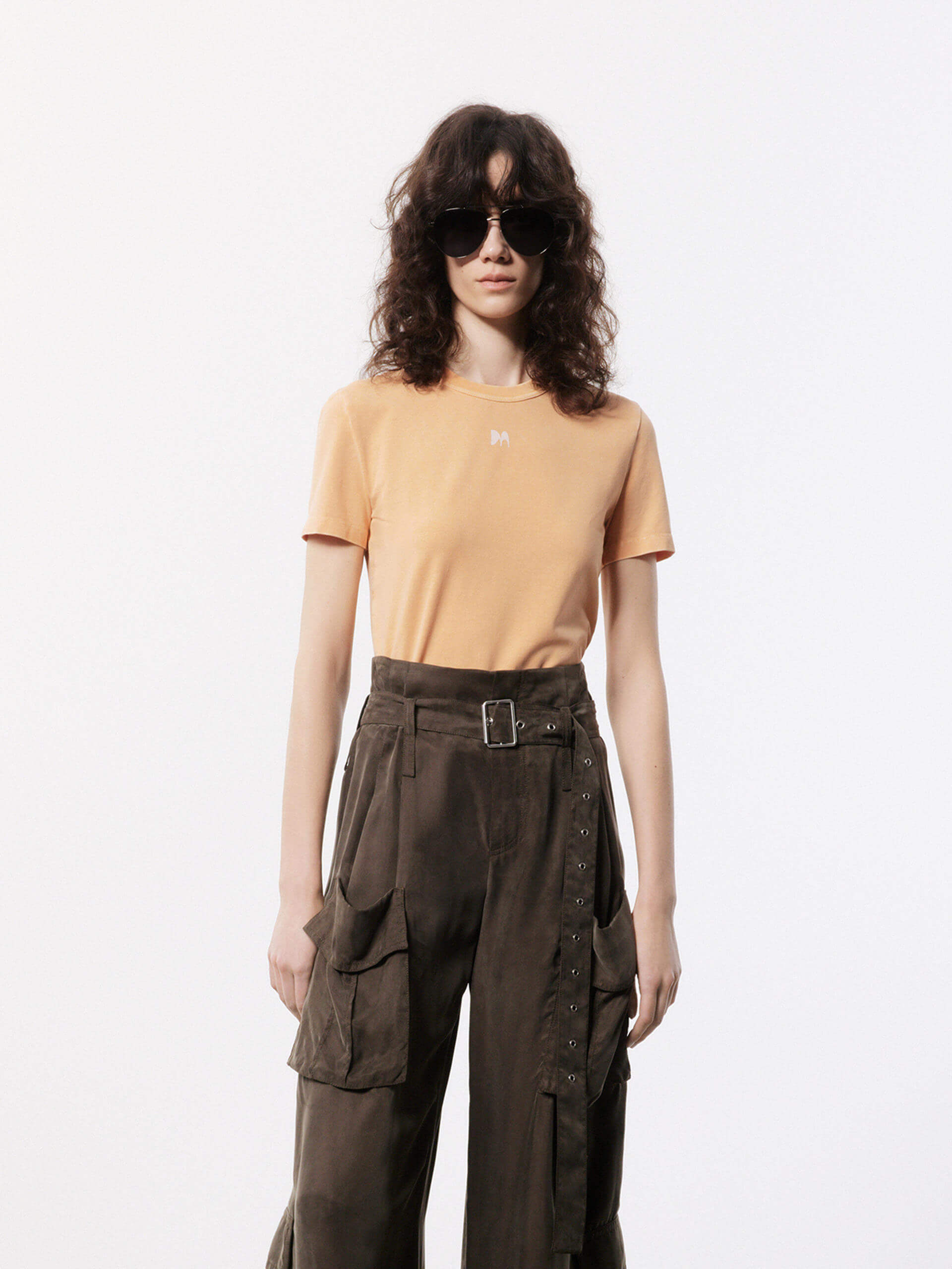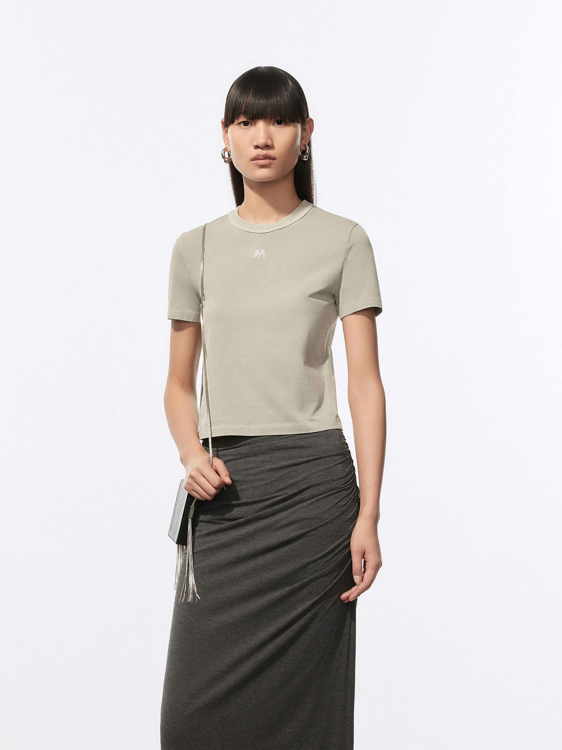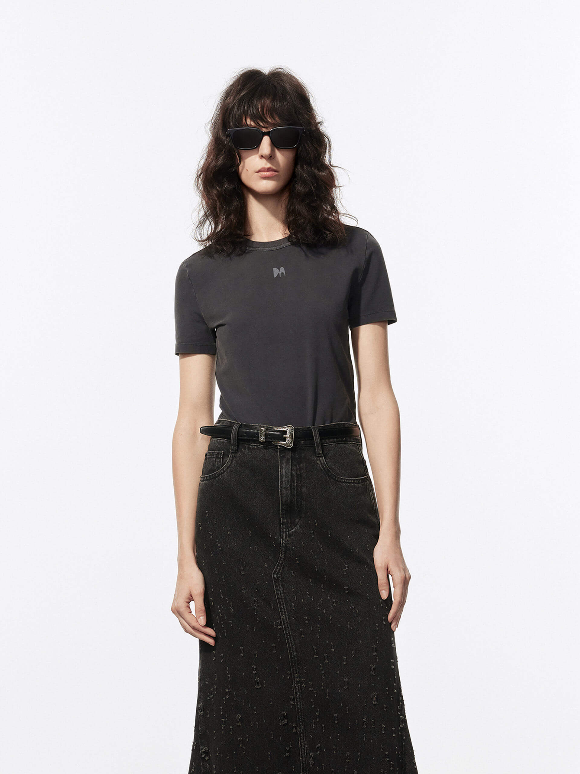 This T-shirt is the perfect blend of simplicity and style. Made from high-quality cotton fabric, it offers comfort and breathability. The front M letter print adds a touch of chic to its basic style. Pair with a high-waist skirt or pants for a stylish look.