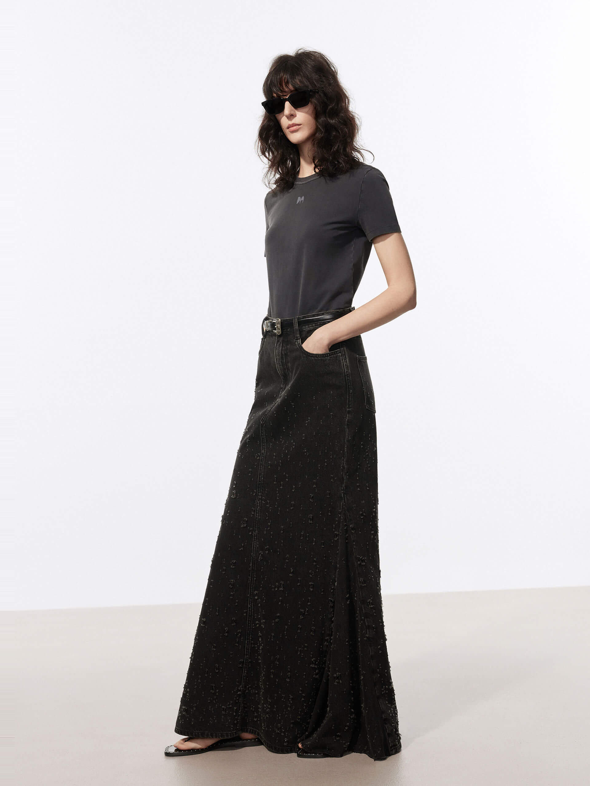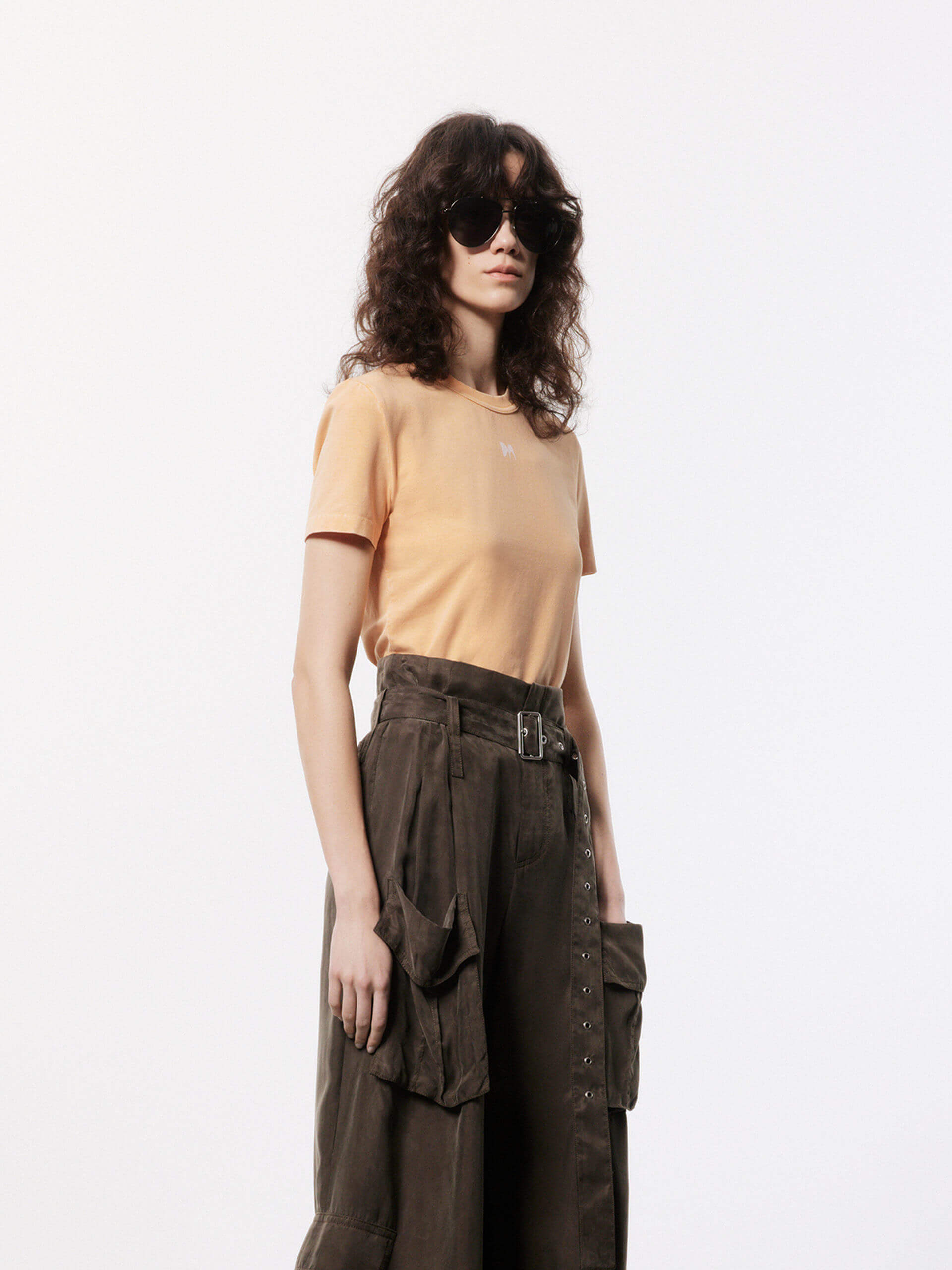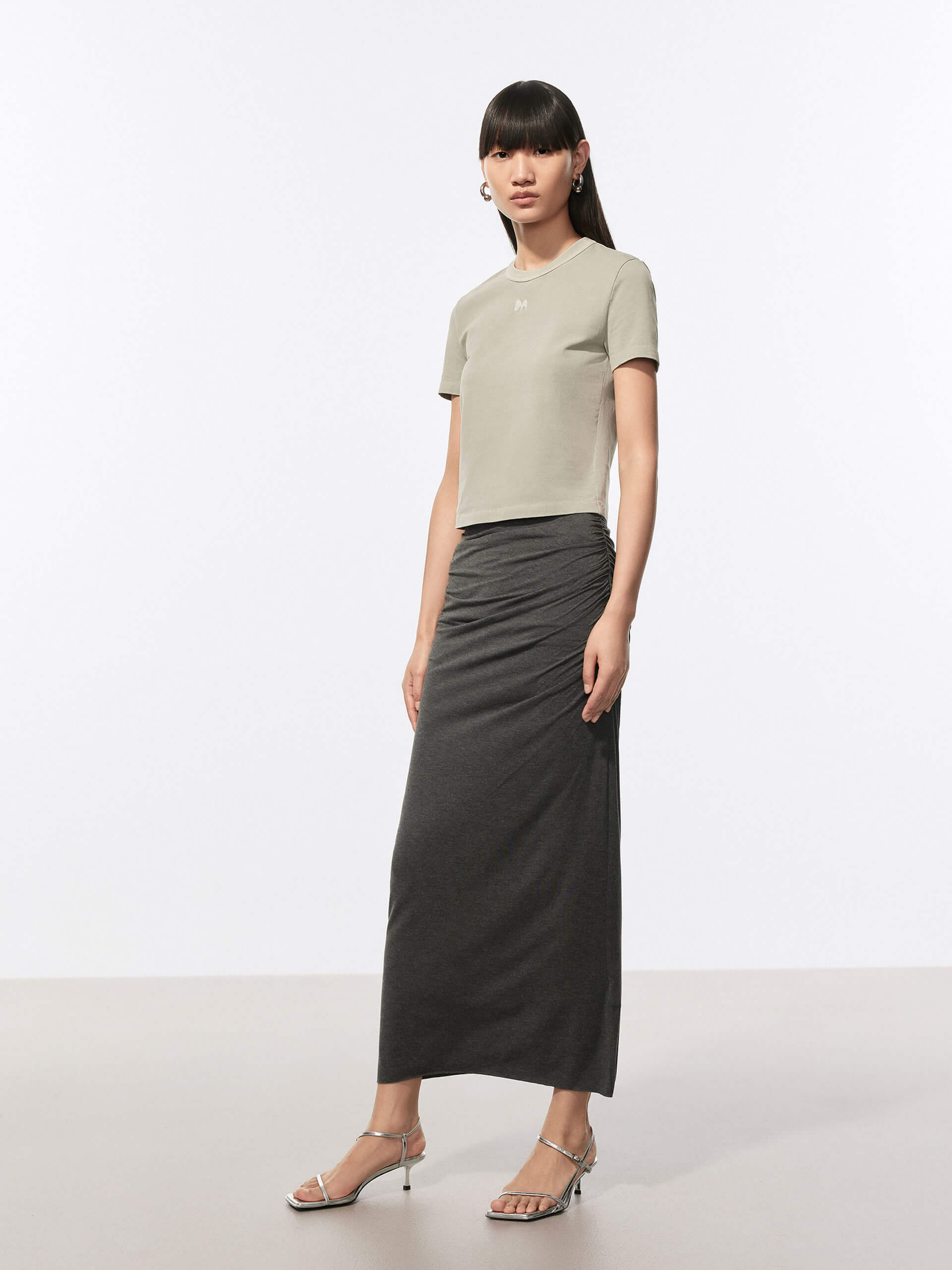 This T-shirt is the perfect blend of simplicity and style. Made from high-quality cotton fabric, it offers comfort and breathability. The front M letter print adds a touch of chic to its basic style. Pair with a high-waist skirt or pants for a stylish look.