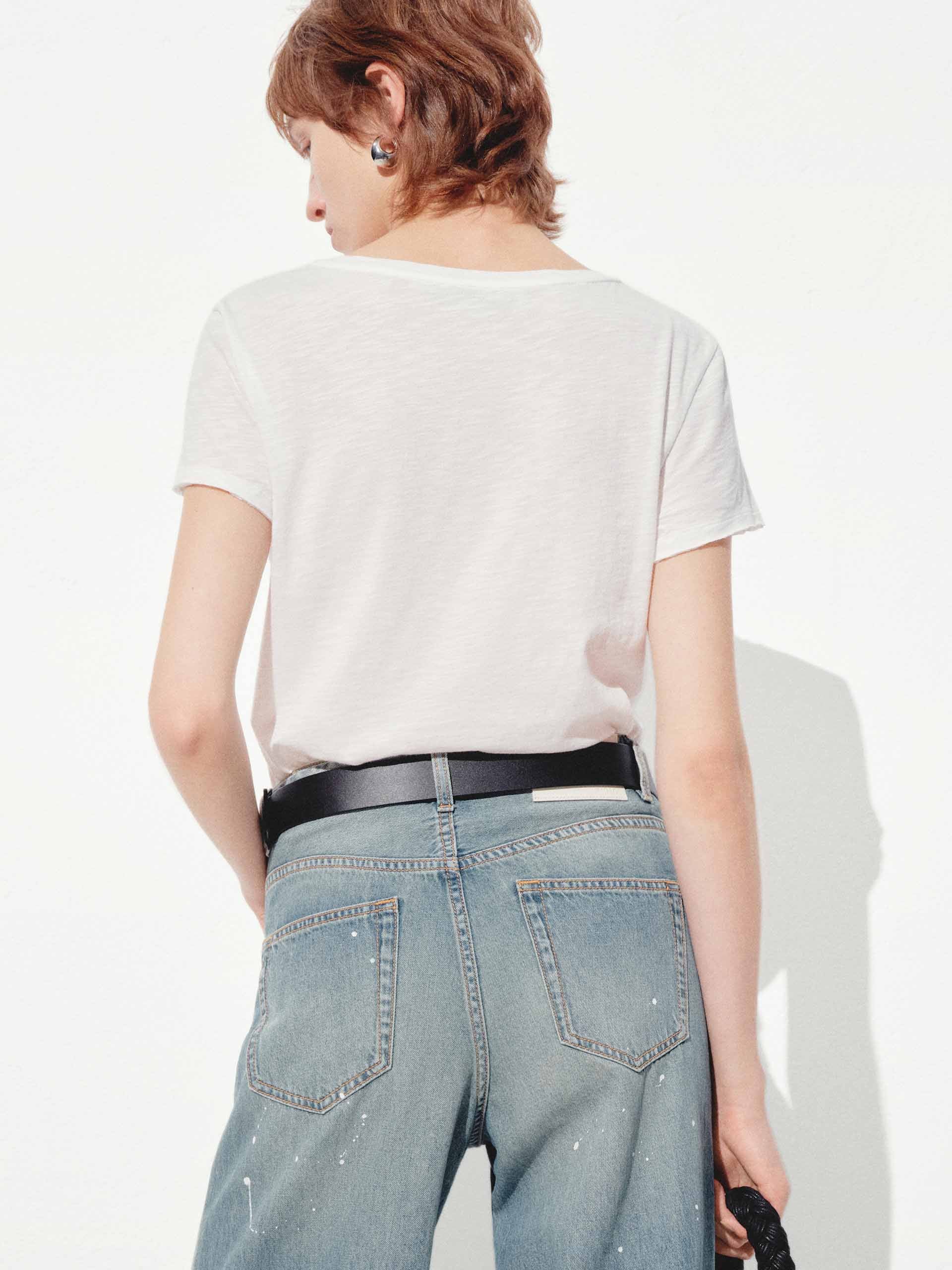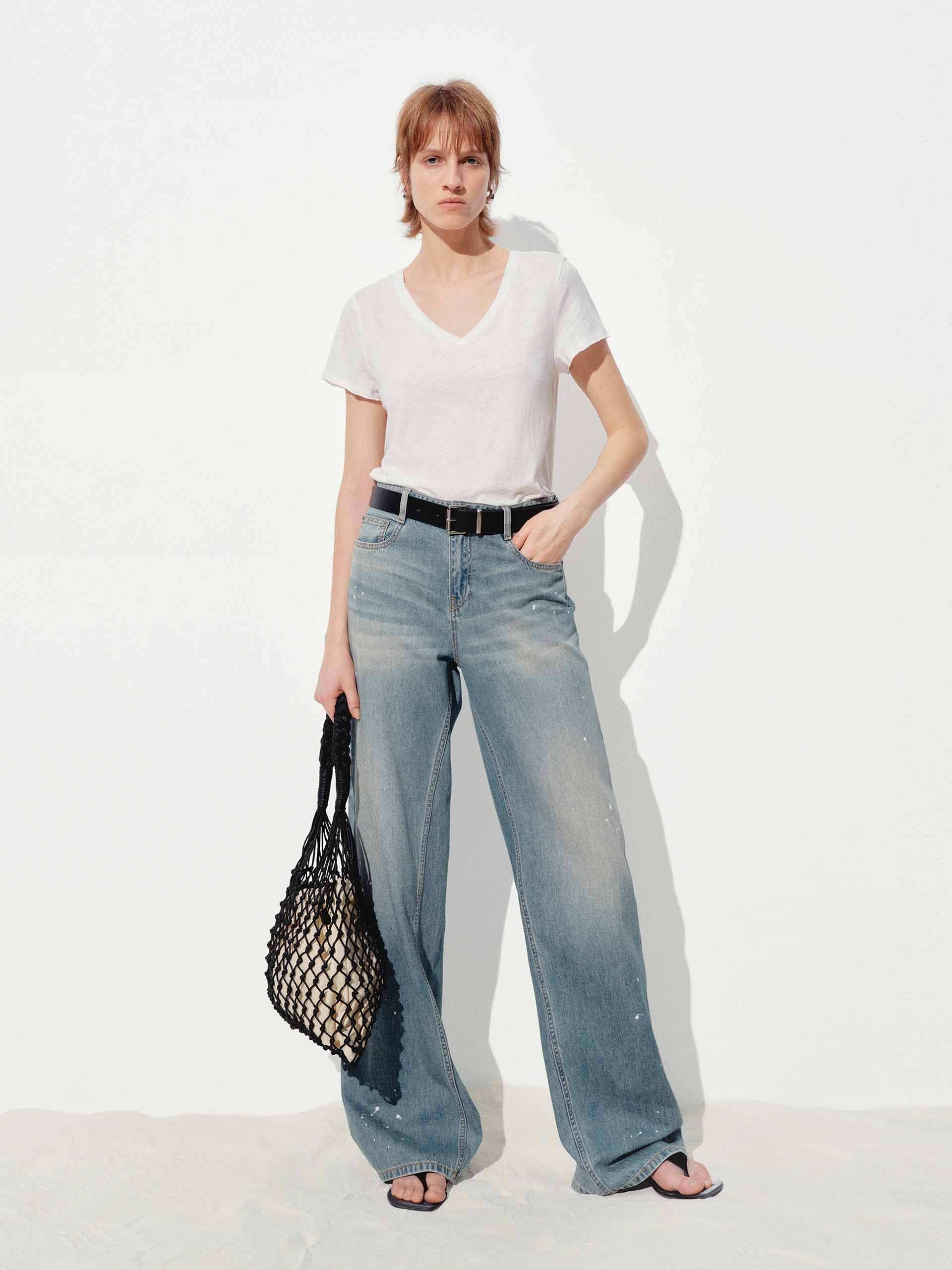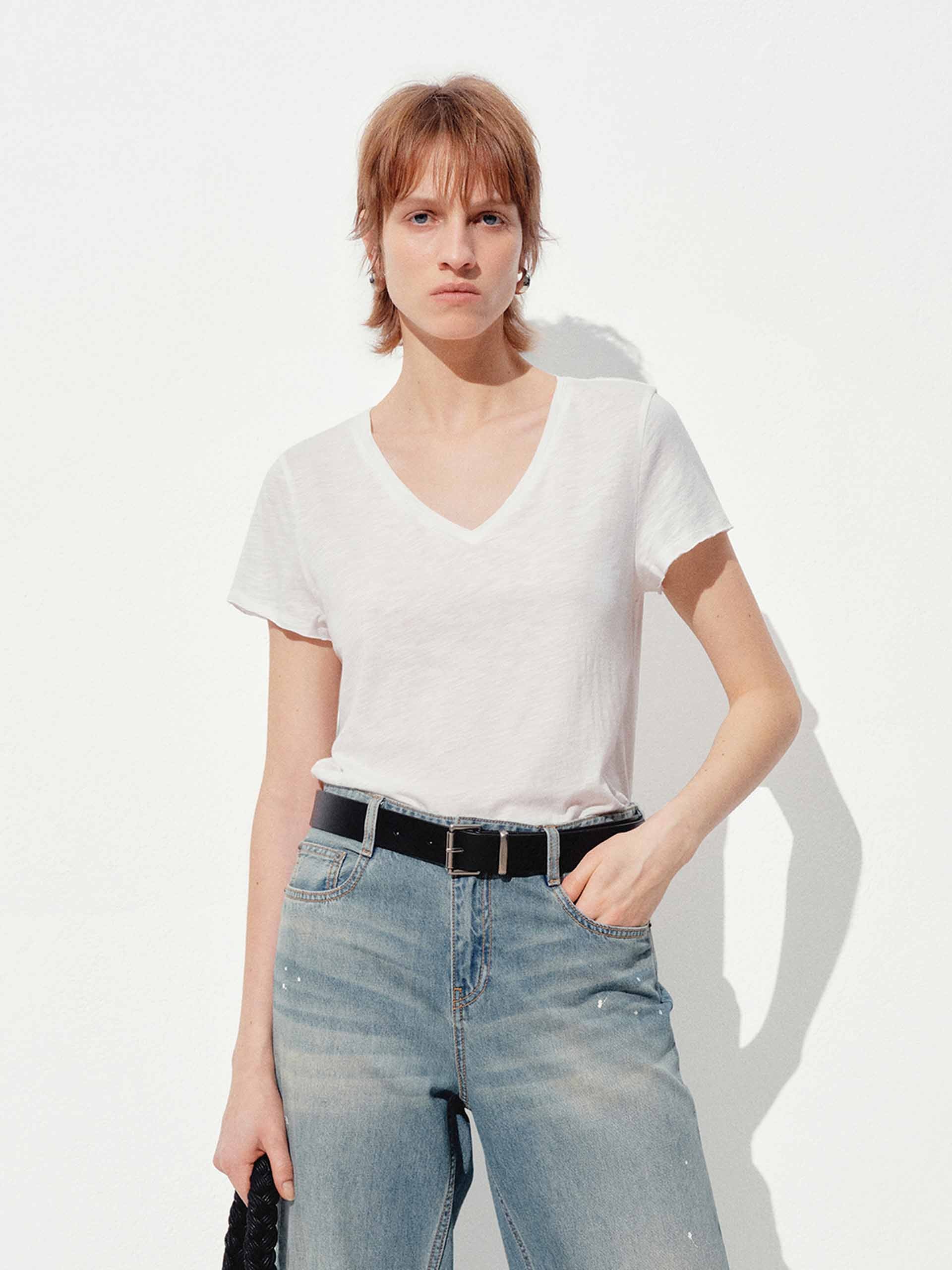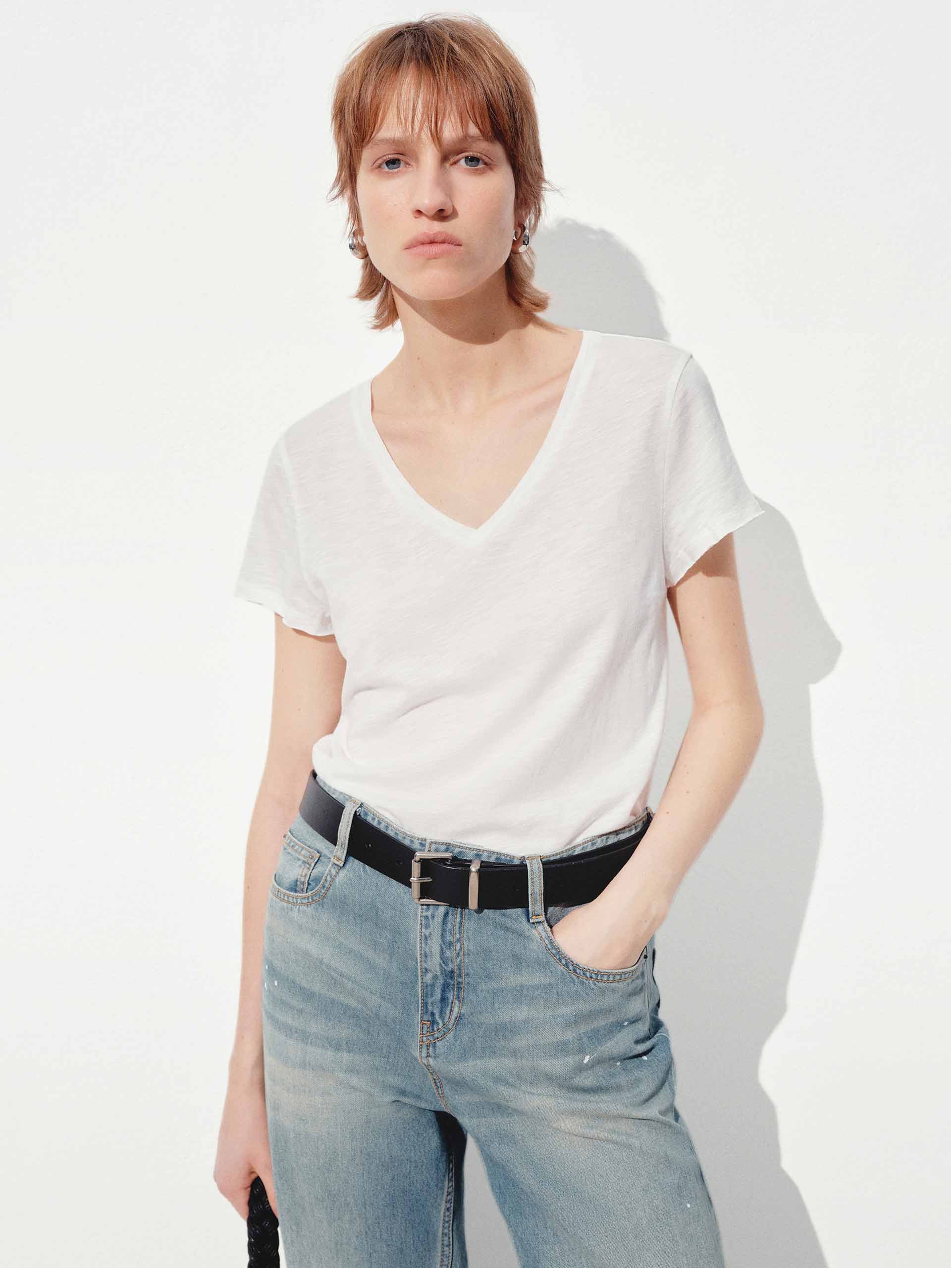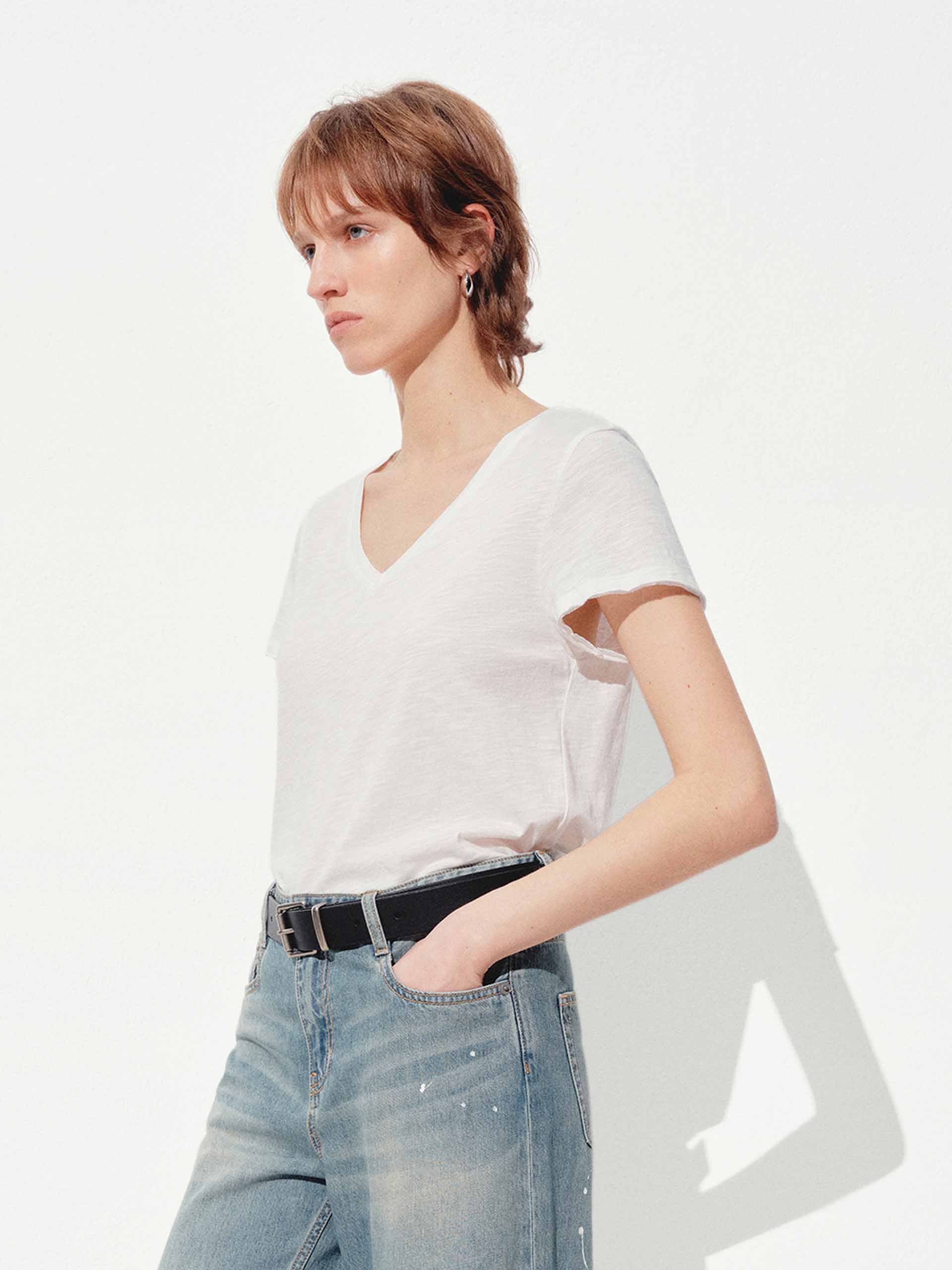 Elevate your everyday style with our t-shirt, a timeless essential designed for effortless versatility. The regular fit offers a comfortable, flattering silhouette, while the classic V-neckline adds a subtle touch of sophistication to this minimalist staple. The short sleeves keep you cool during warmer days.