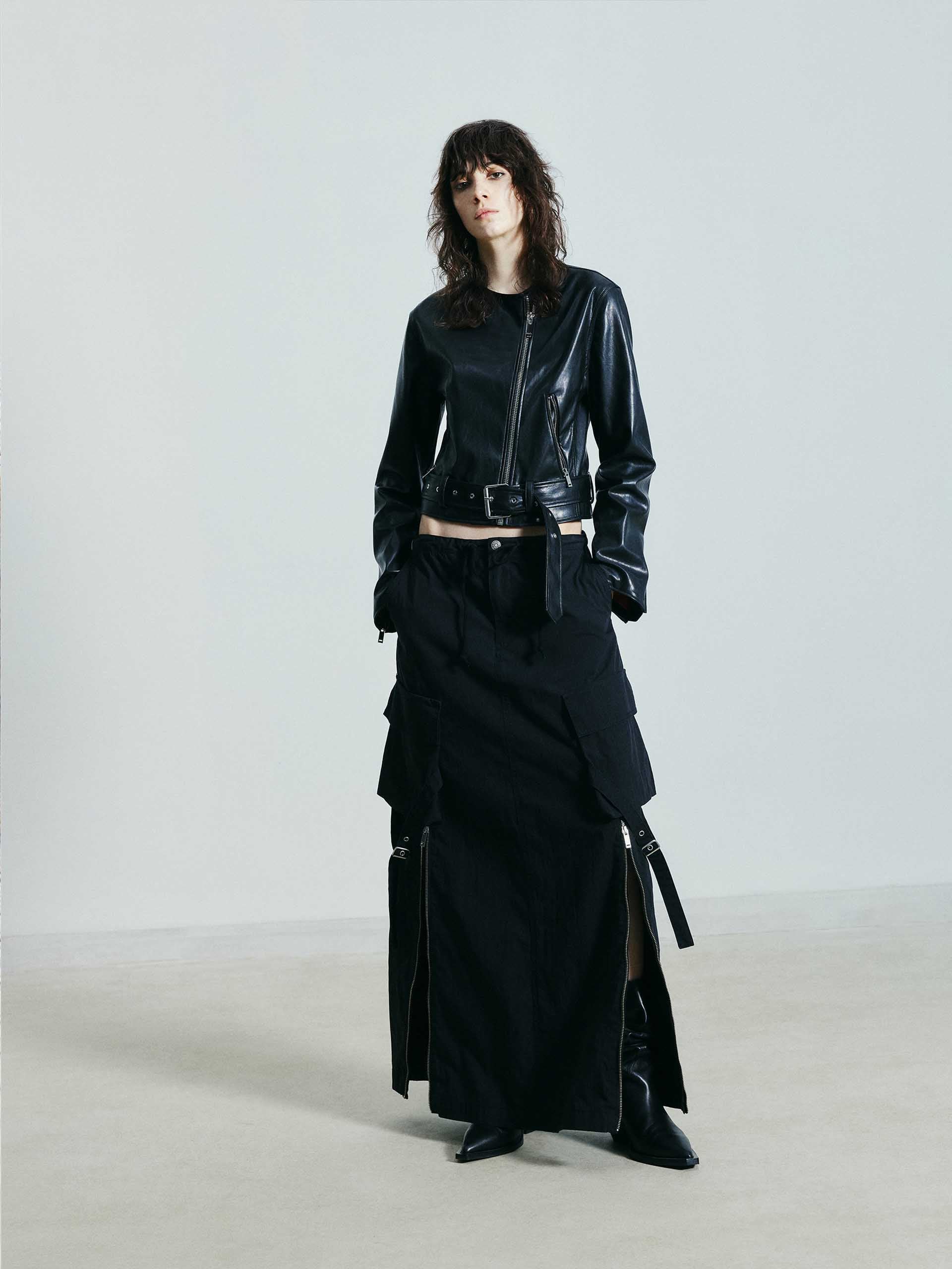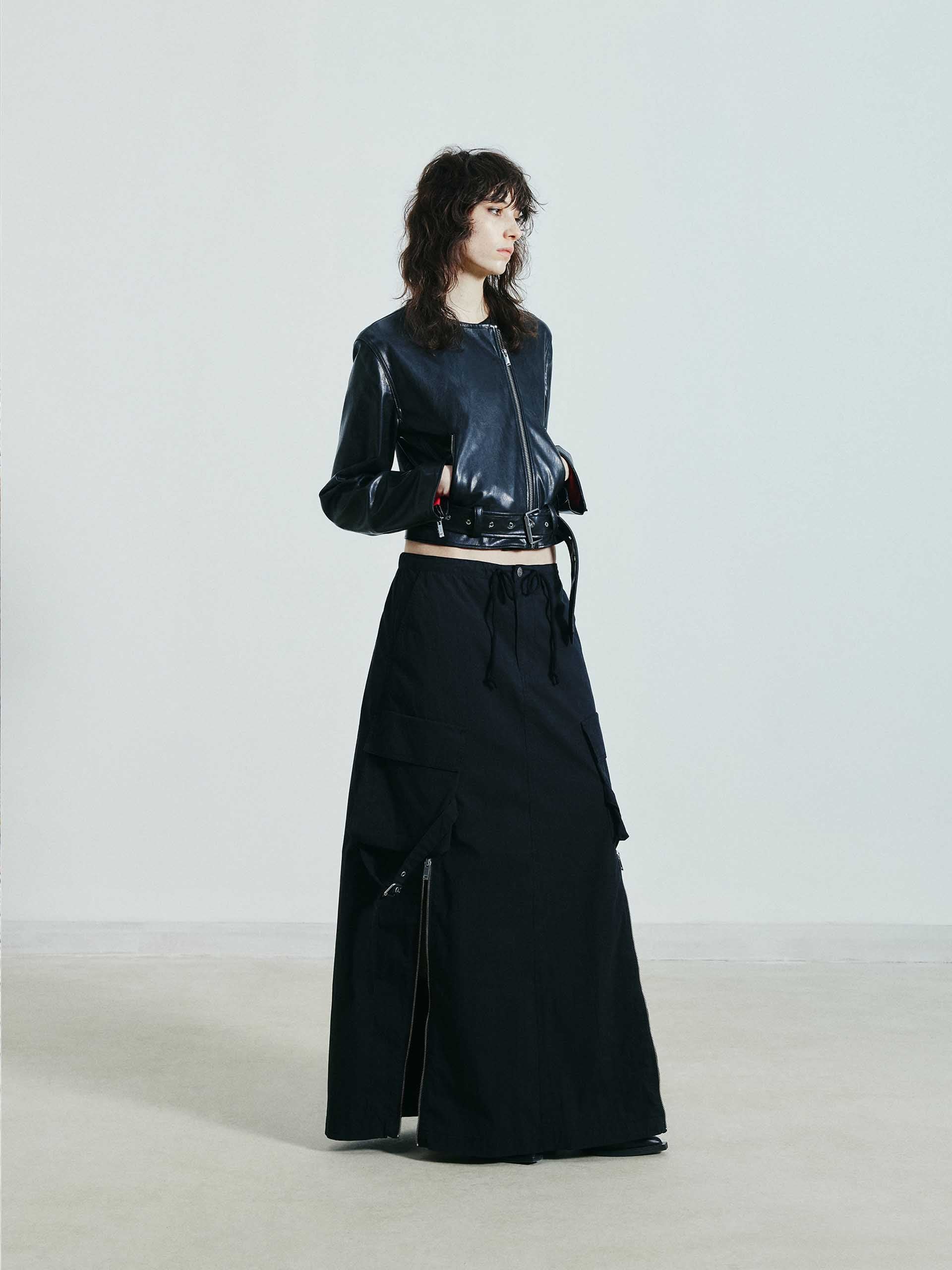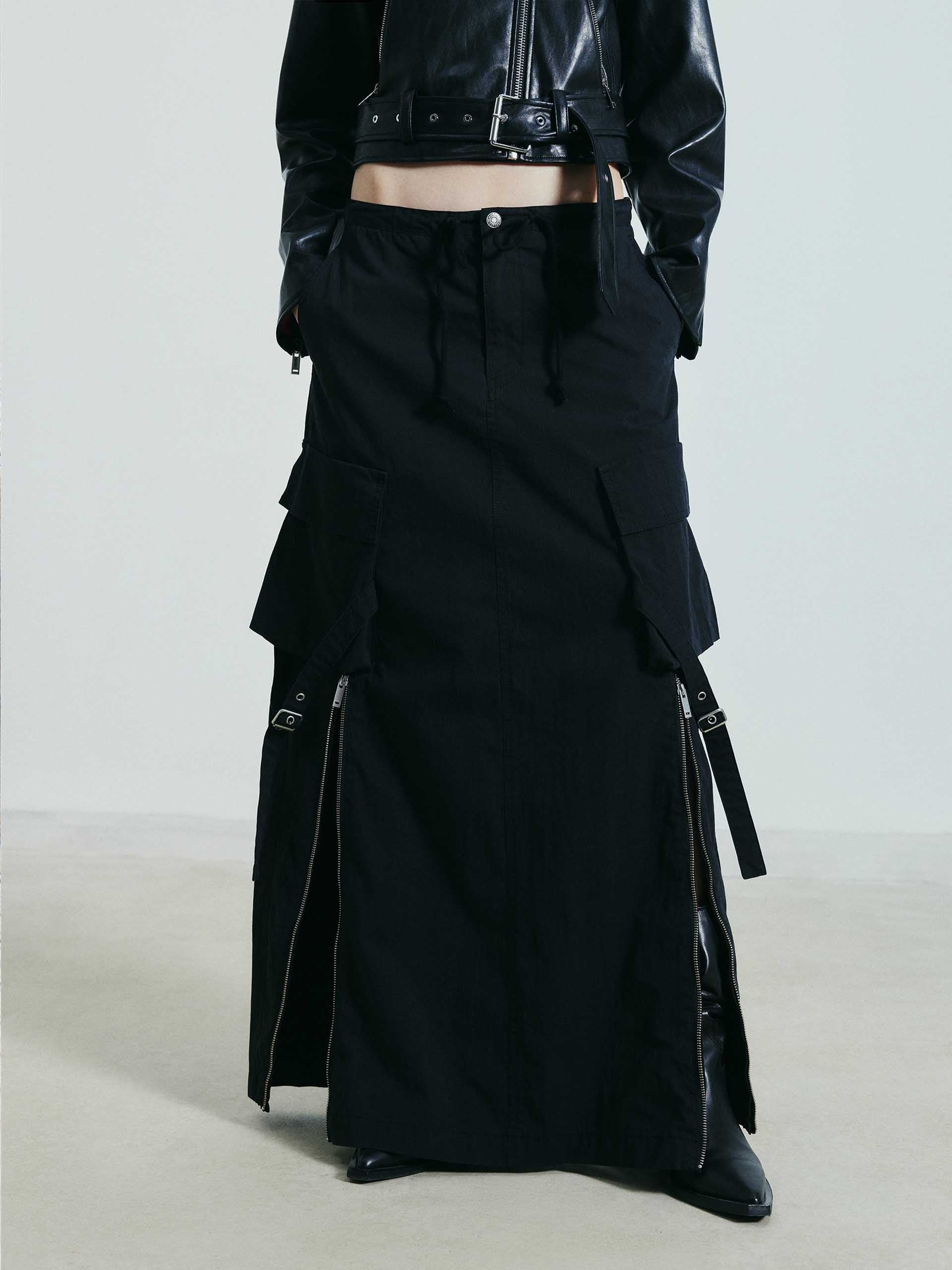 Upgrade your wardrobe with this skirt, designed for both comfort and effortless style. Featuring a utilitarian cargo-inspired design, it combines fashion with functionality. The zip and button closure ensures a secure fit, while the back slit adds a touch of movement and flair. Practicality meets trend with side pockets and a front zipper slit detail, offering a modern edge.