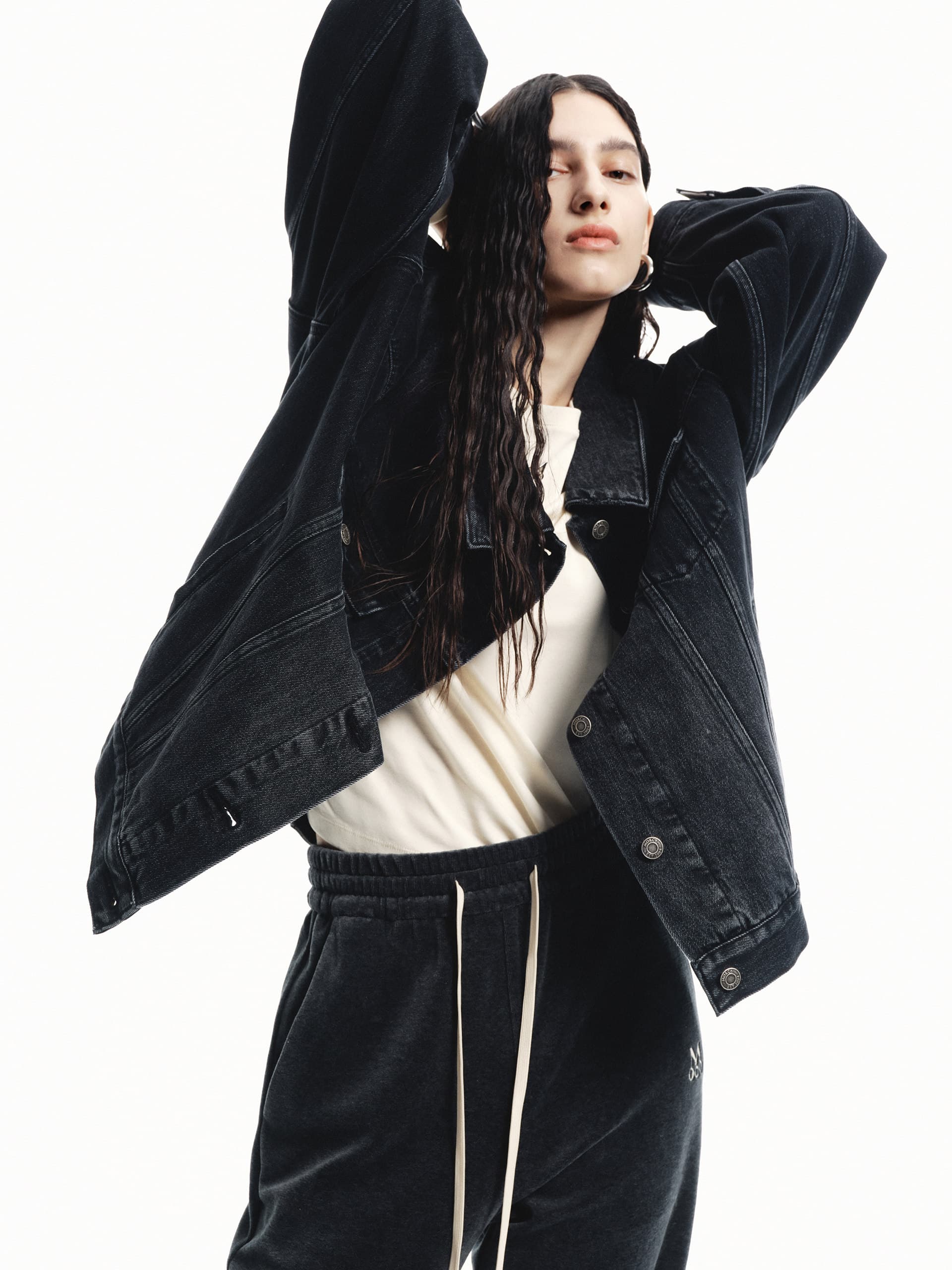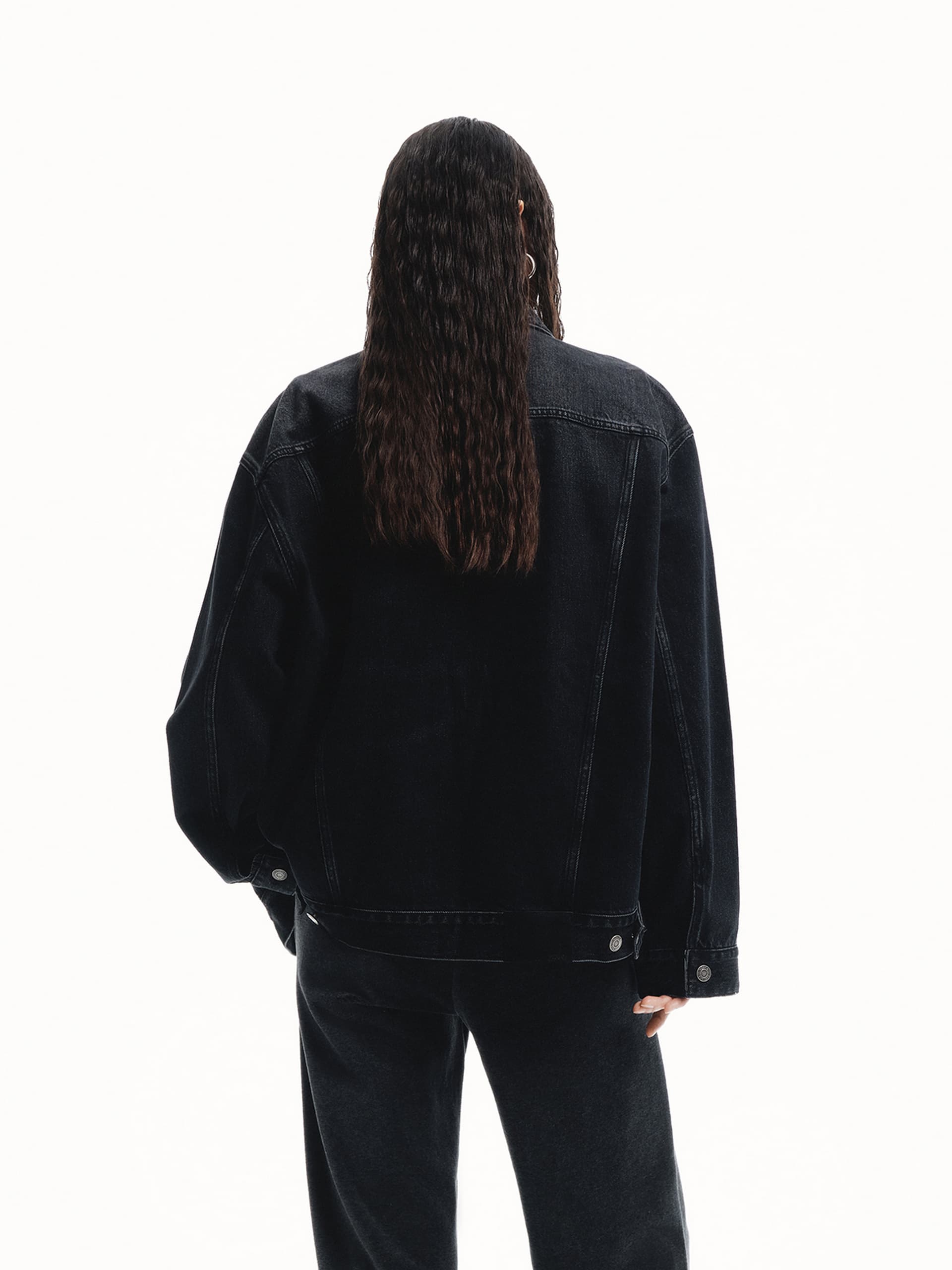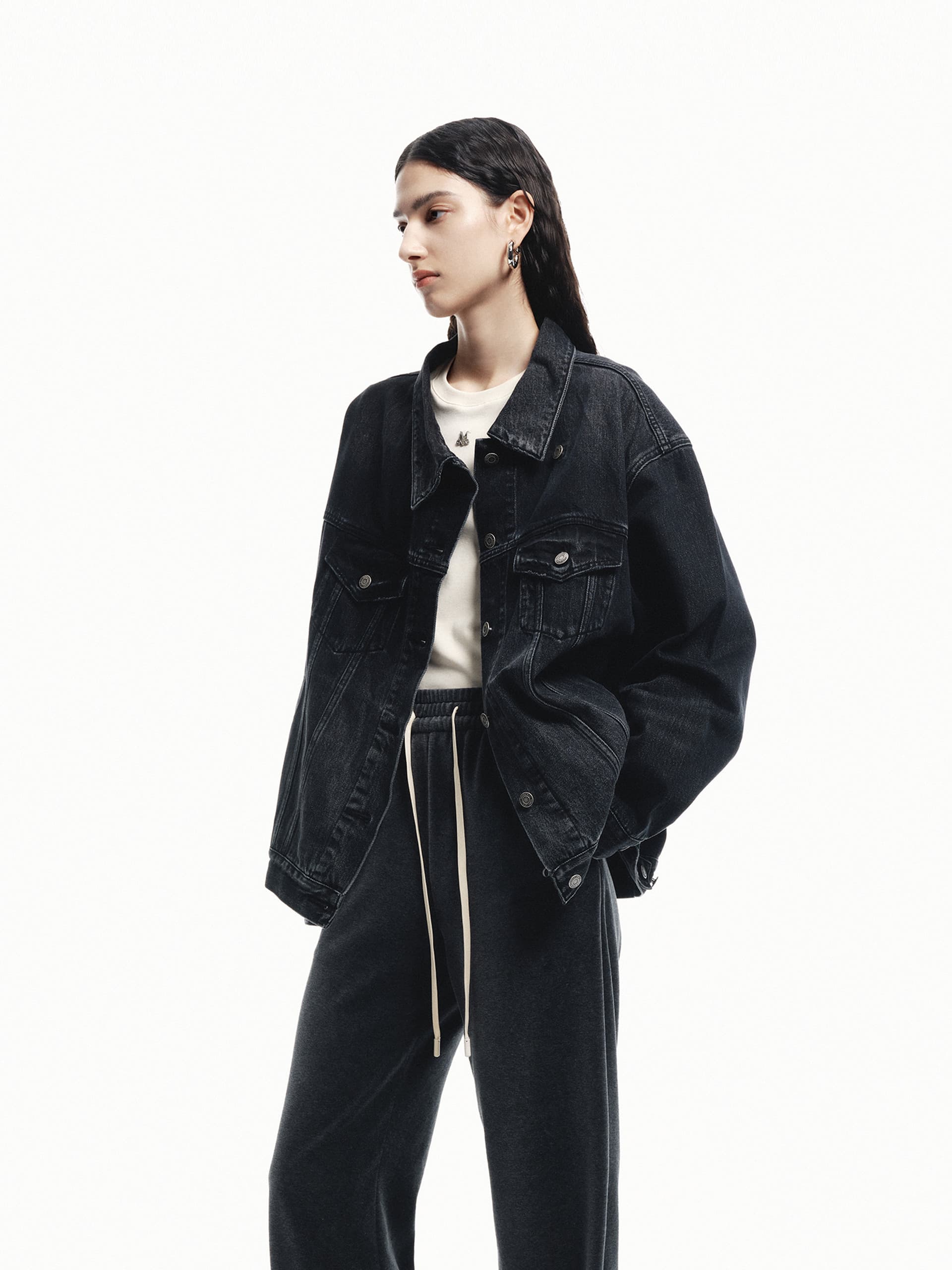 This jacket is made from 100% cotton and features a button closure for a secure fit. With a washed denim look and a loose fit, it provides both comfort and style.