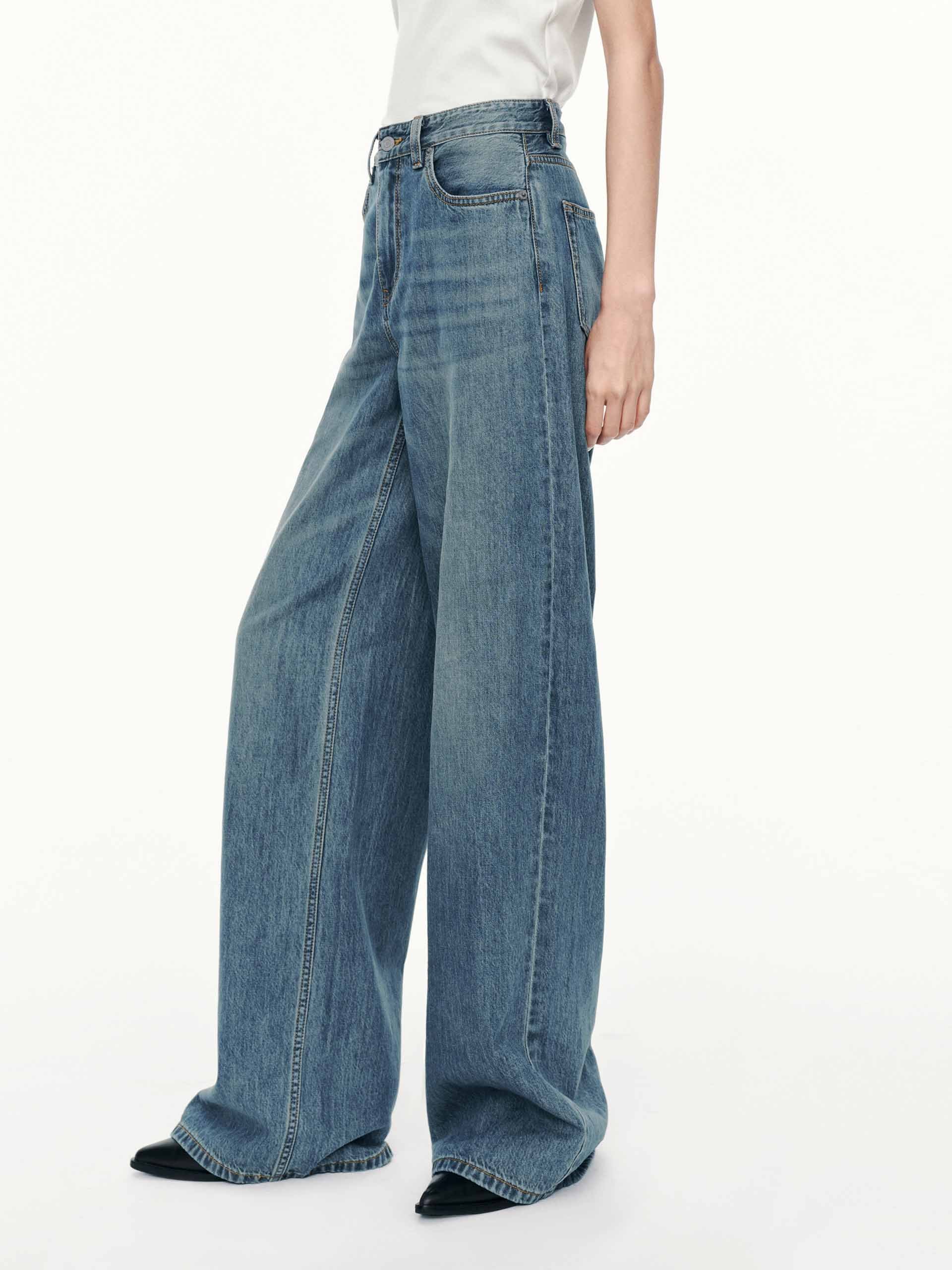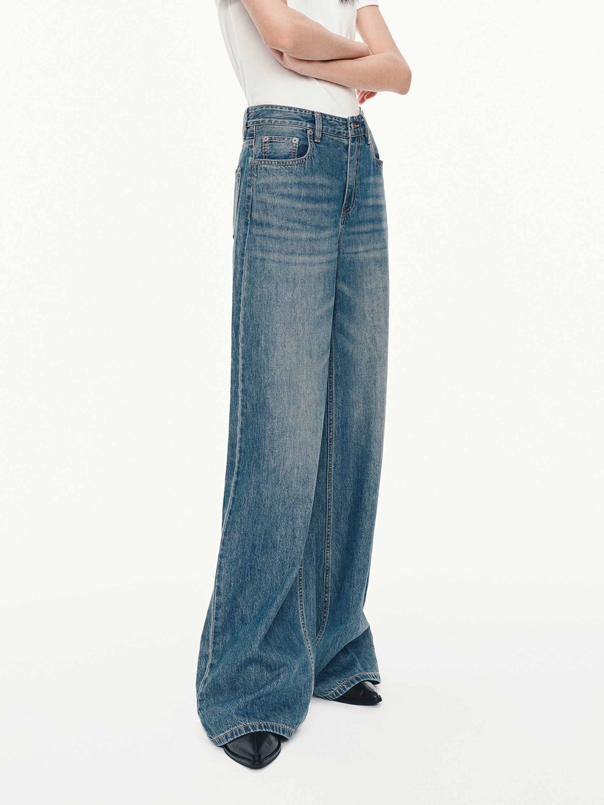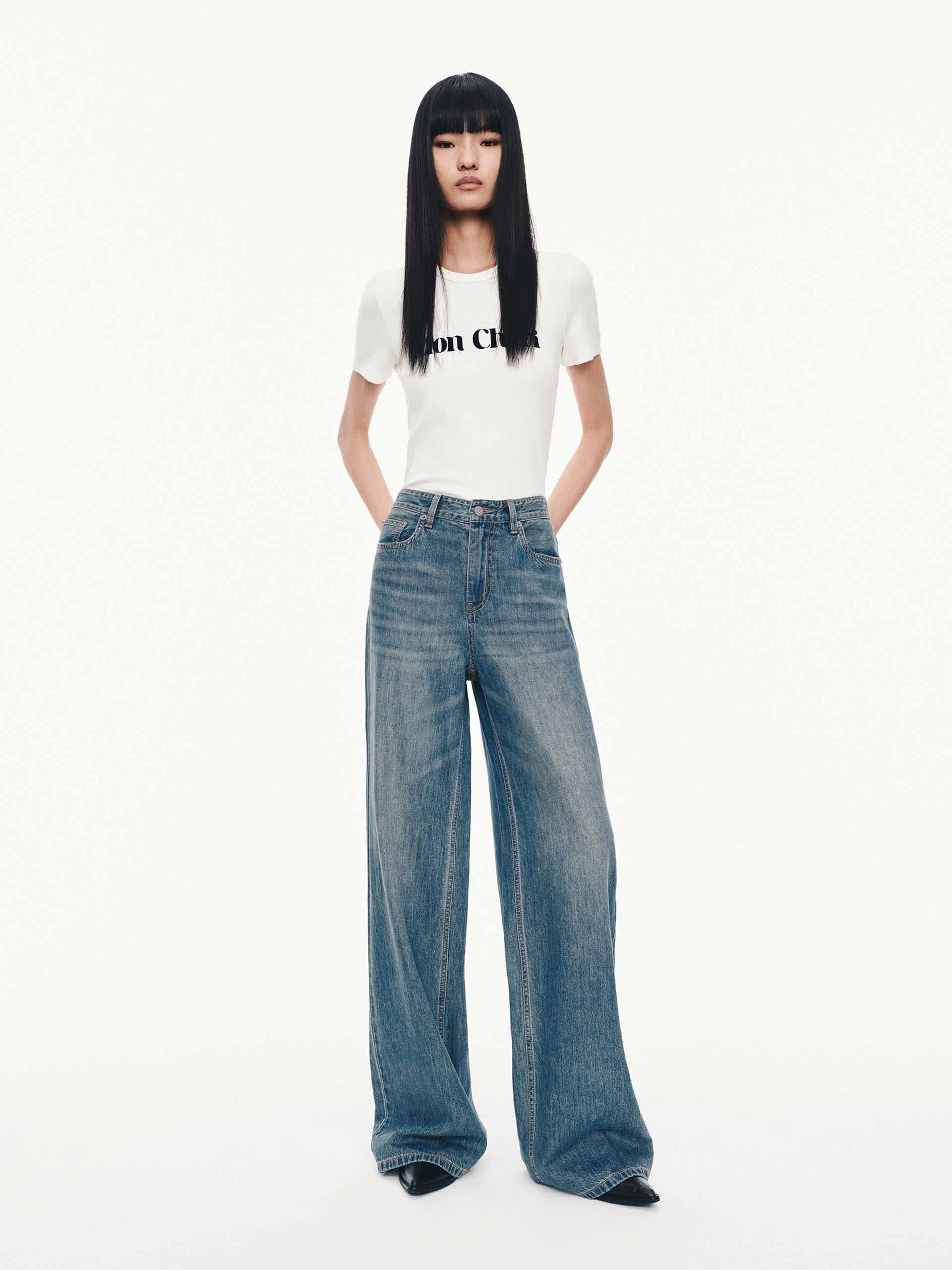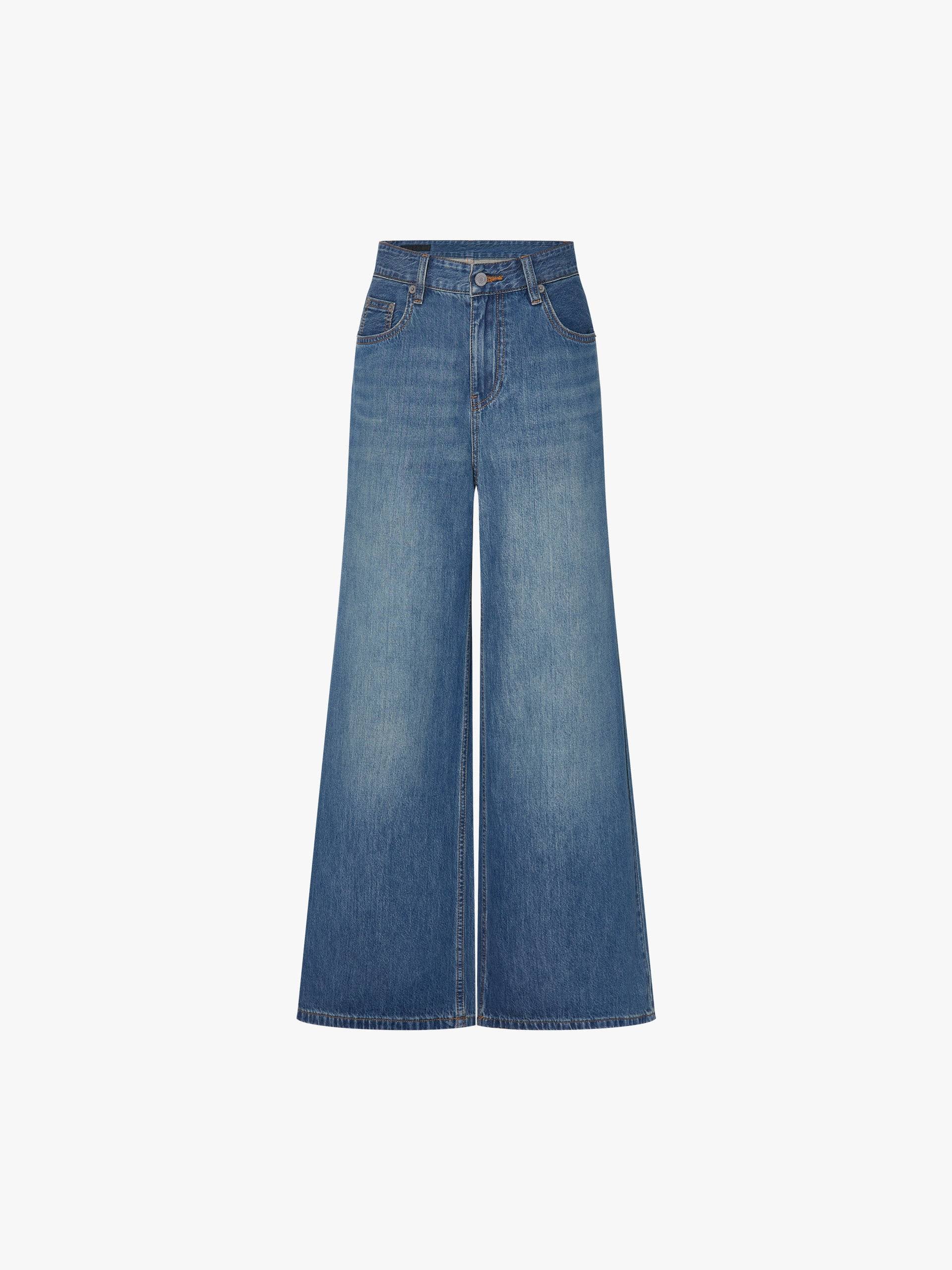 Effortlessly blend '70s-inspired flair and contemporary comfort in these jeans. The structured high waist smooths and elongates, while the leather logo patch at the back adds a subtle luxe touch to this everyday staple. Built for real life, they feature a secure zip-button closure and classic five-pocket styling—functional yet fashion-forward.