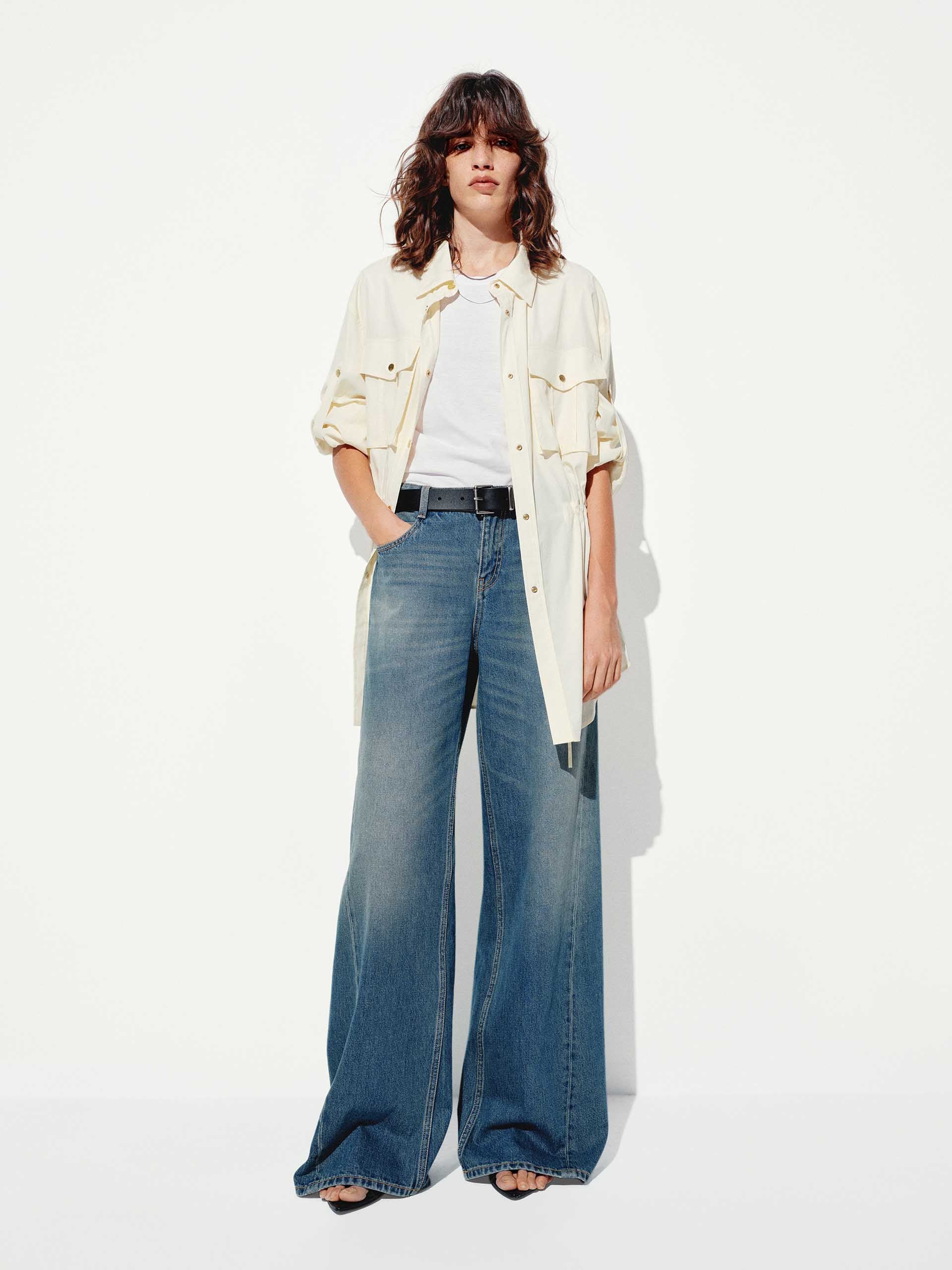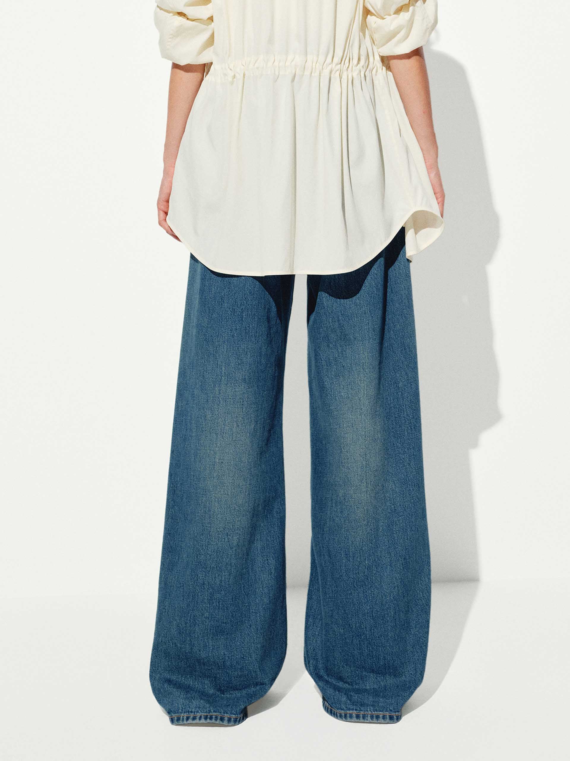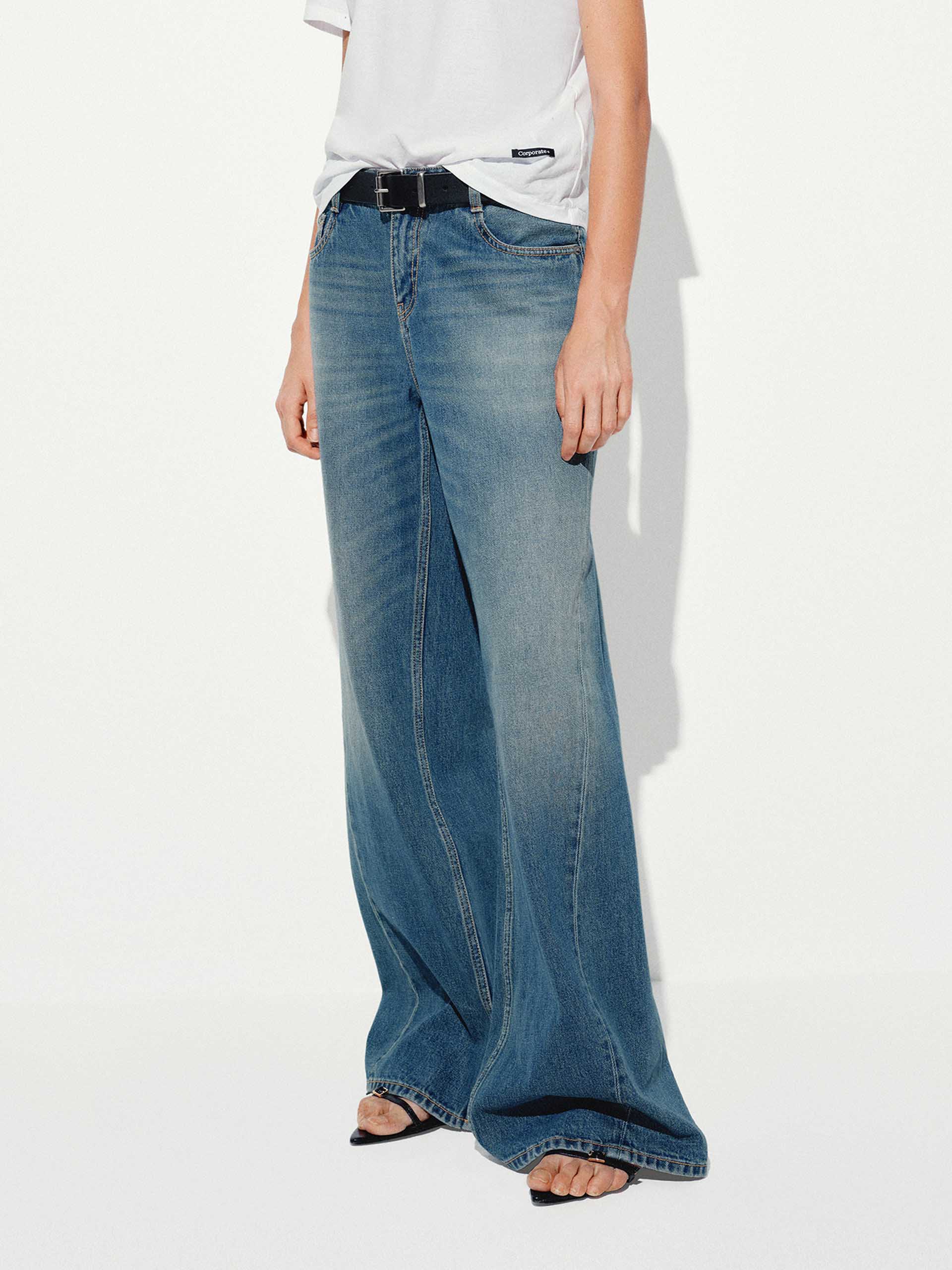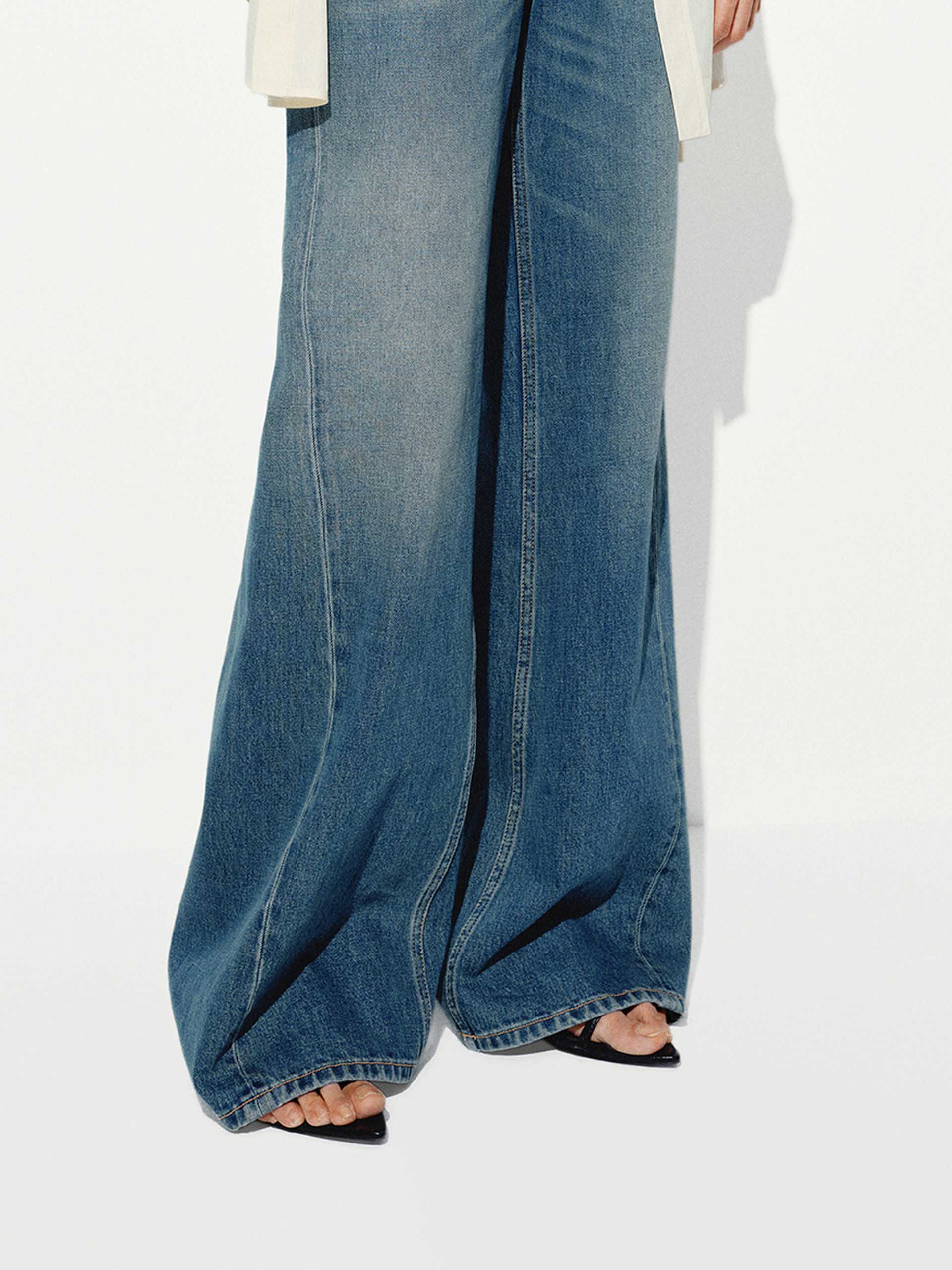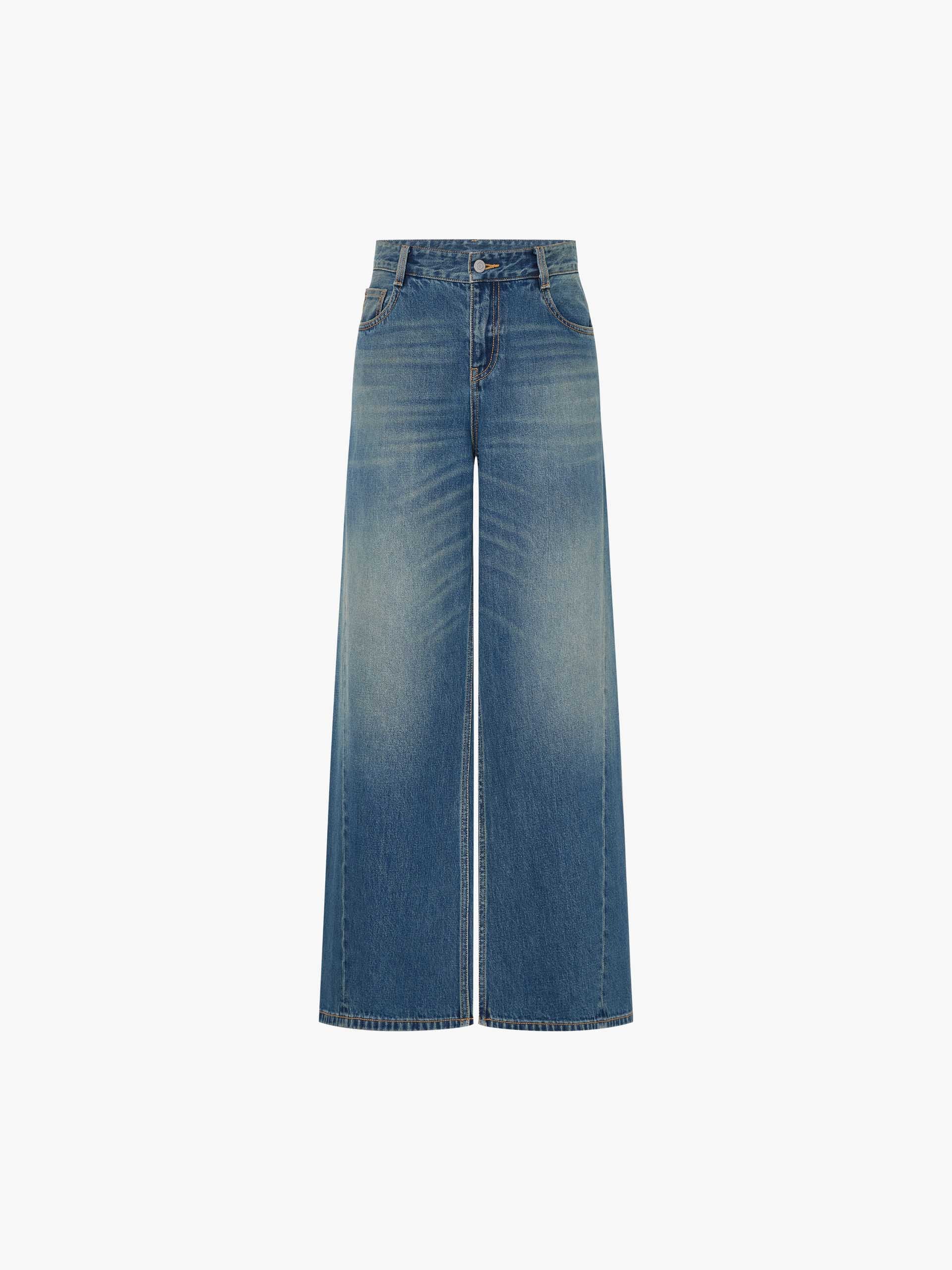 Designed for the modern urbanite, the high waist design with a zip button closure sculpts your silhouette while ensuring all-day comfort. The full-length wide-leg cut flows gracefully, complementing both sneakers and heels. Crafted from premium pure cotton, these jeans feature functional back pockets and a lightly faded wash for that lived-in vintage appeal.