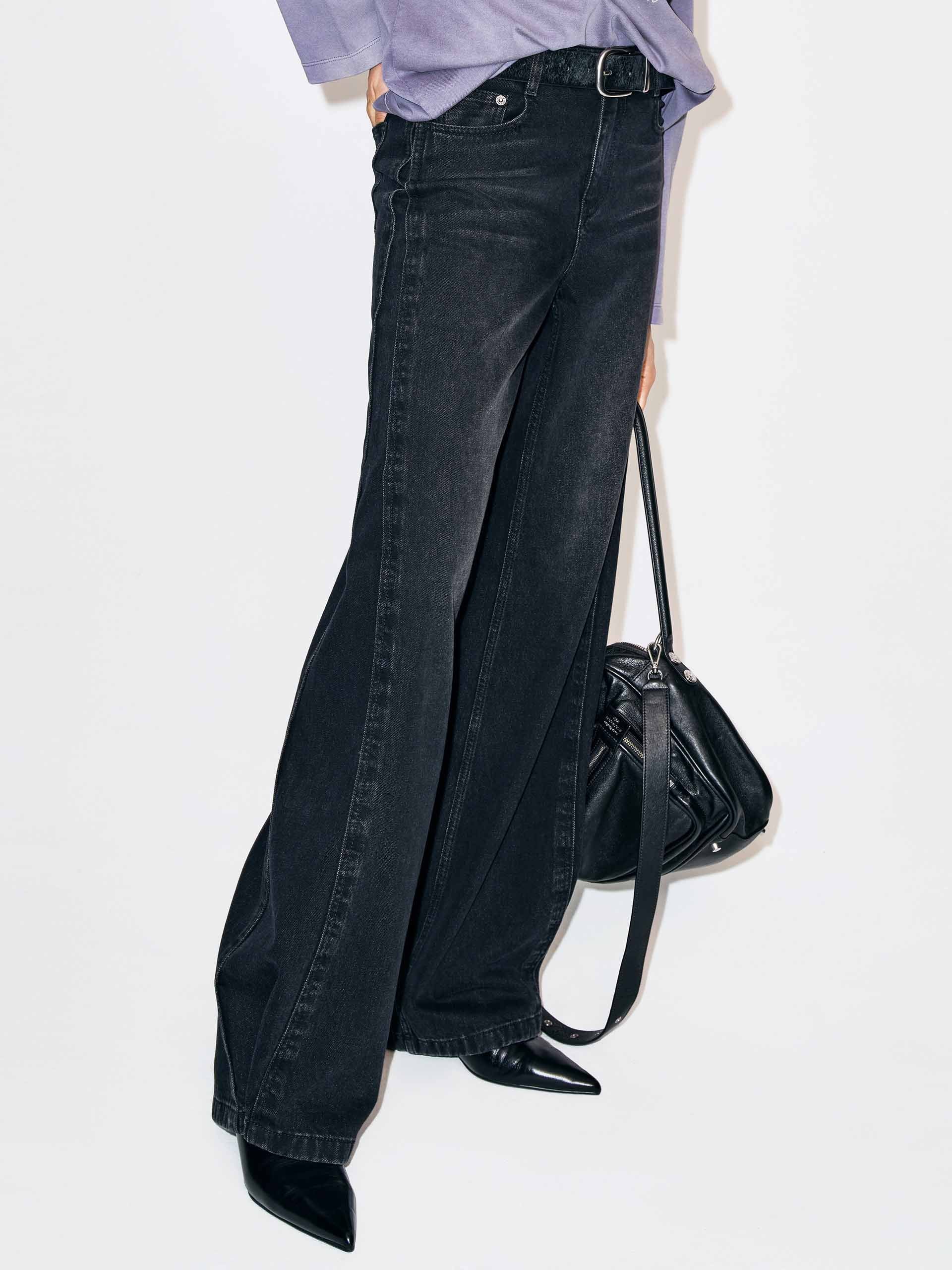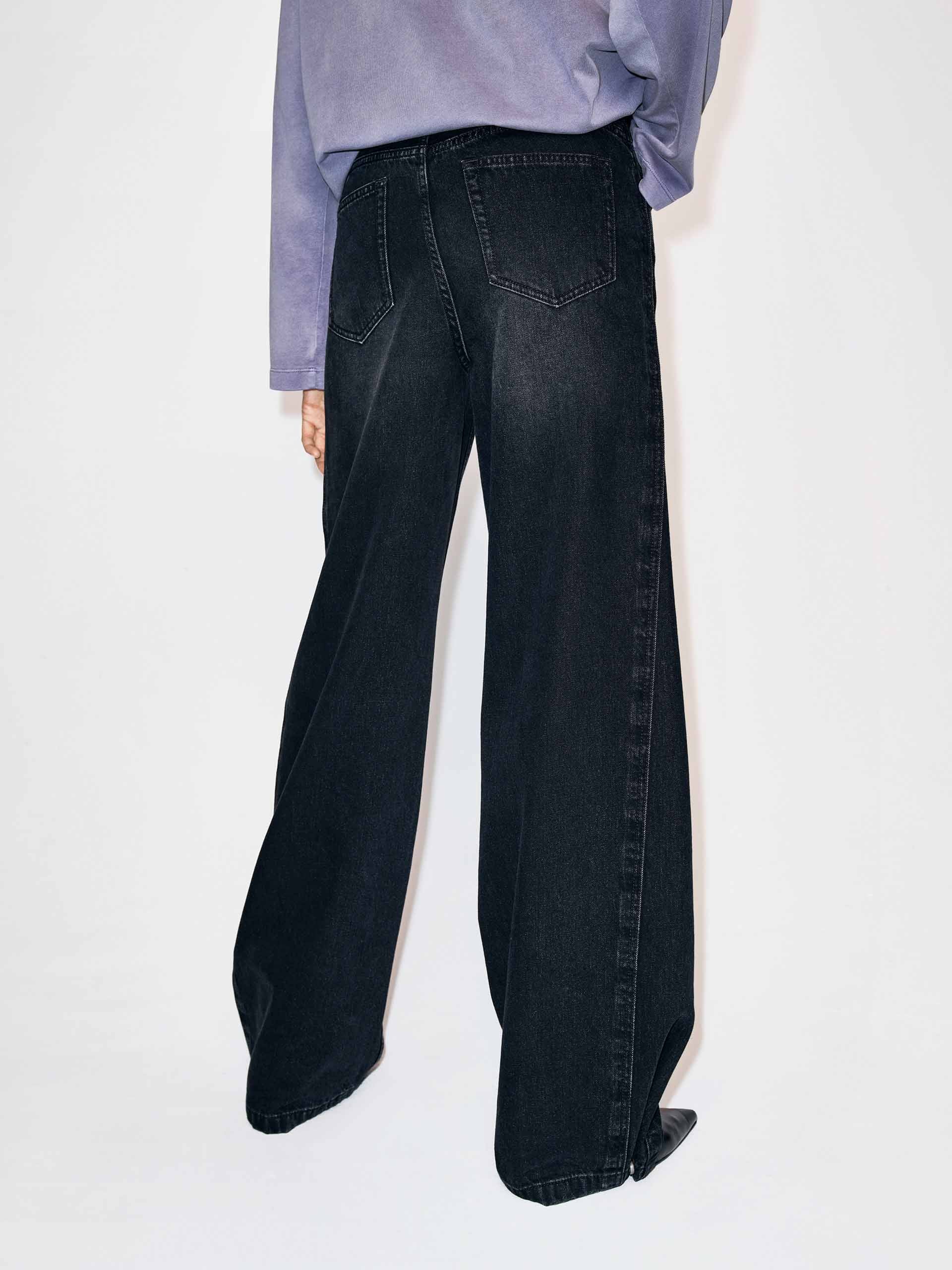 Crafted for timeless appeal and everyday comfort, these jeans offer a clean and versatile silhouette. Featuring pronounced side seams that add a modern, streamlined accent, they are designed with attention to detail. The unique snap button at the hem allows for subtle styling flexibility, while the practical zip-button closure and five-pocket design ensure familiar functionality.