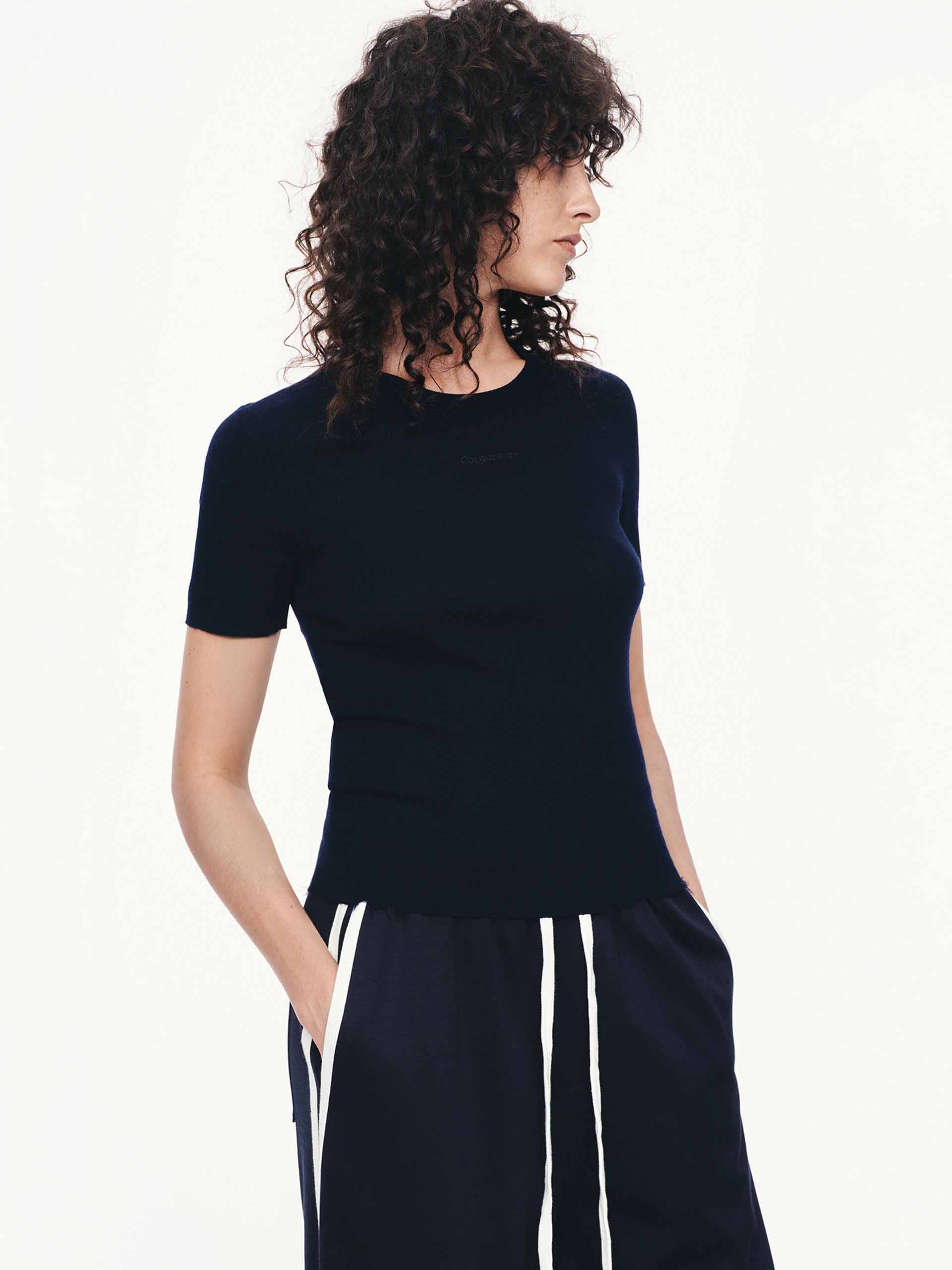 - Round neck and short sleeves detail